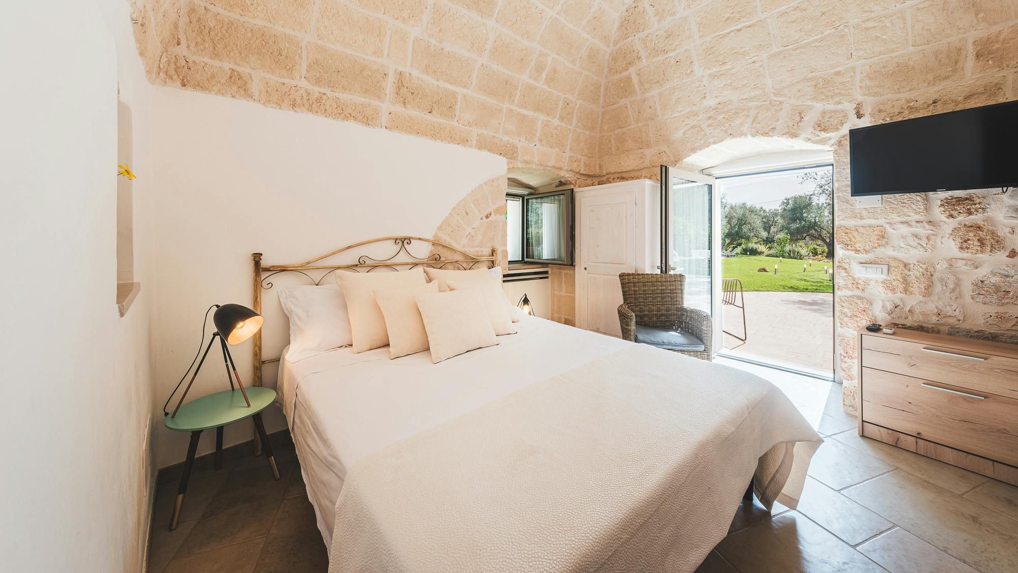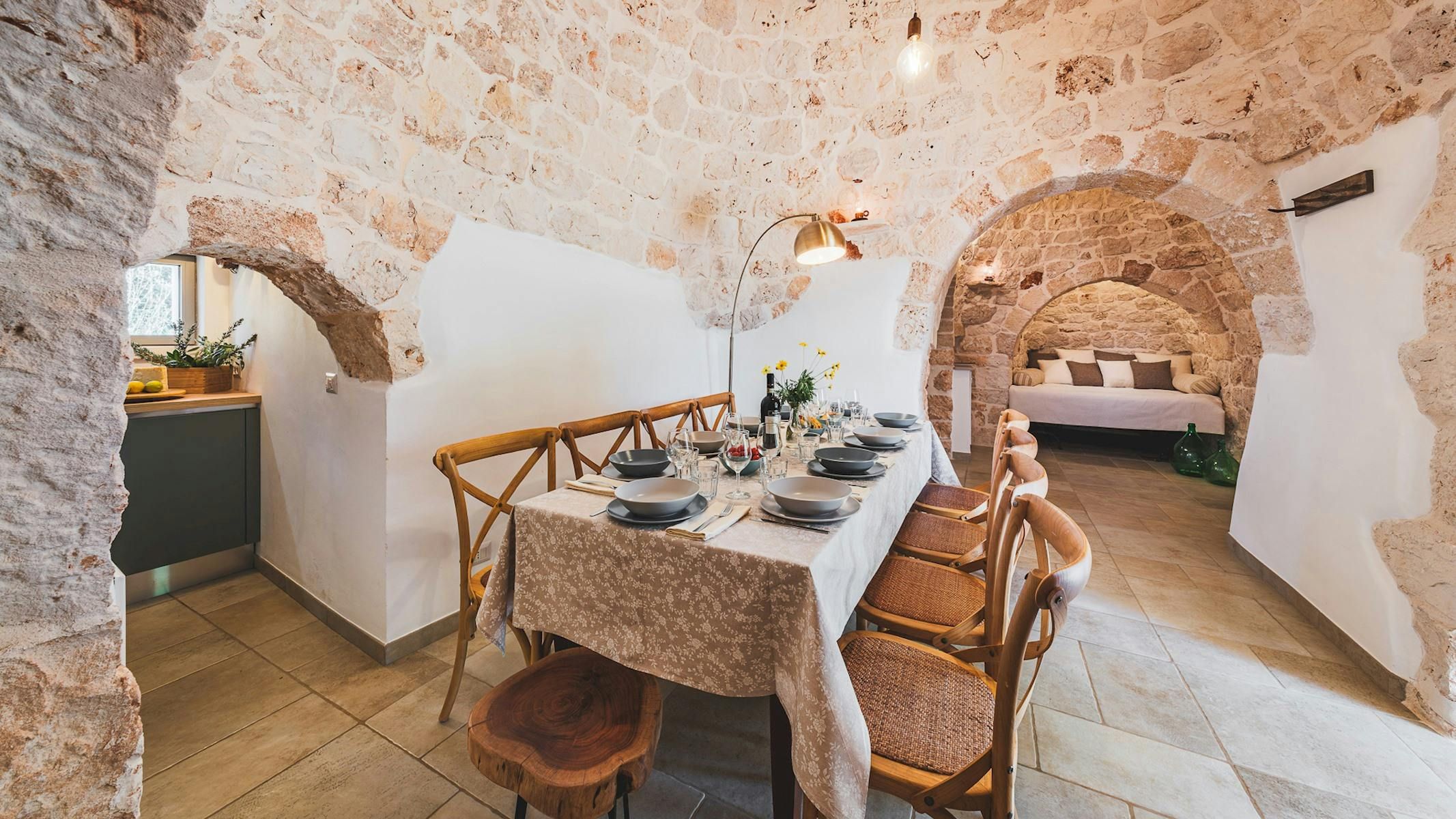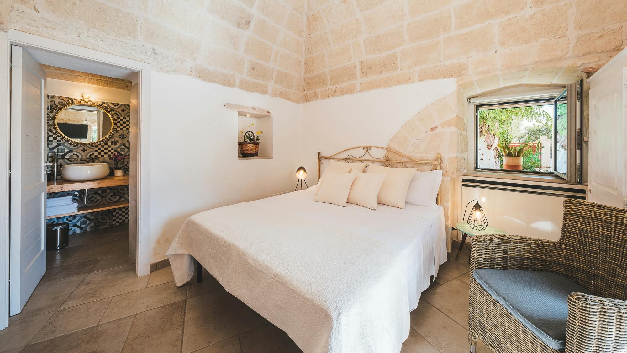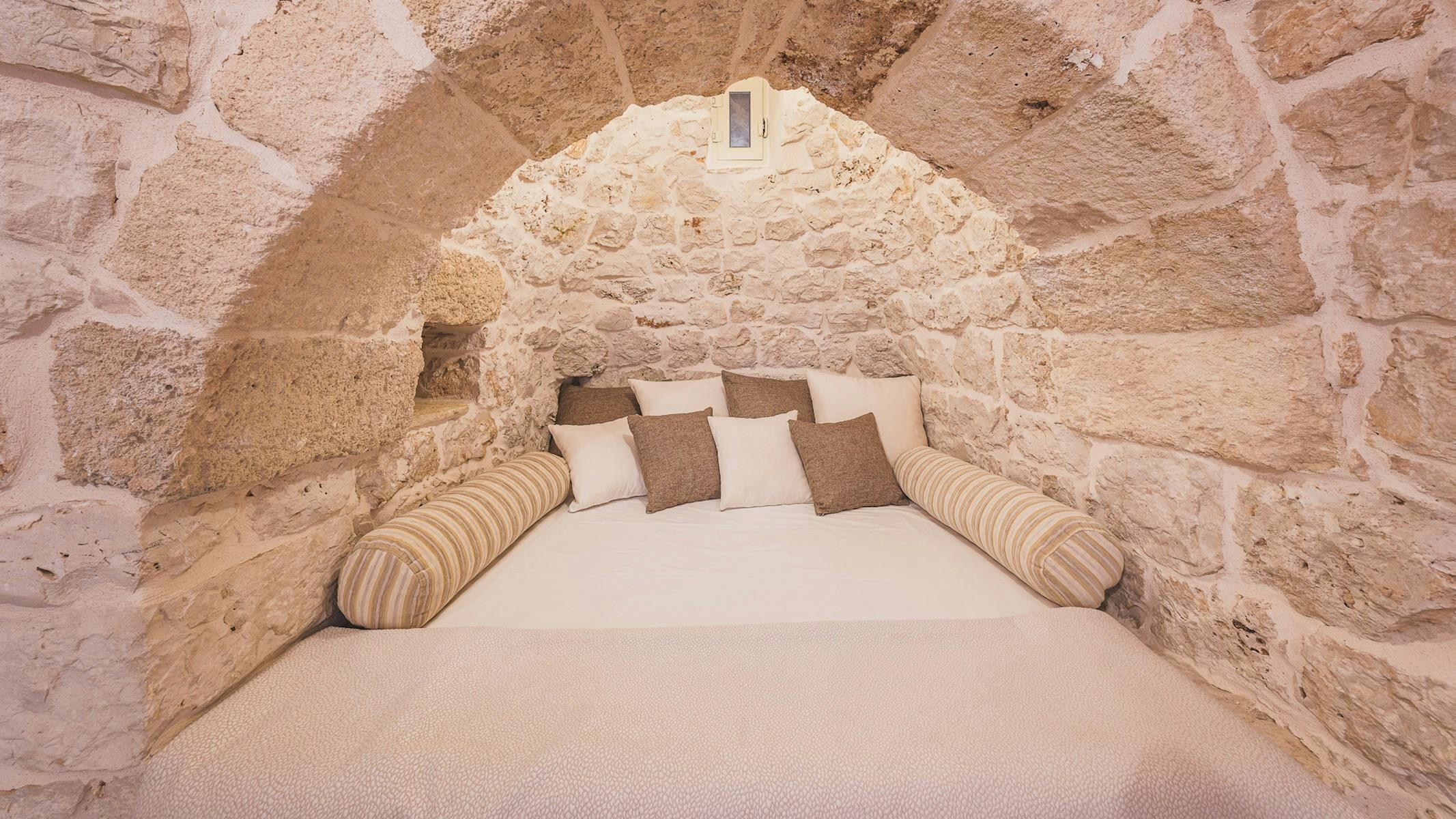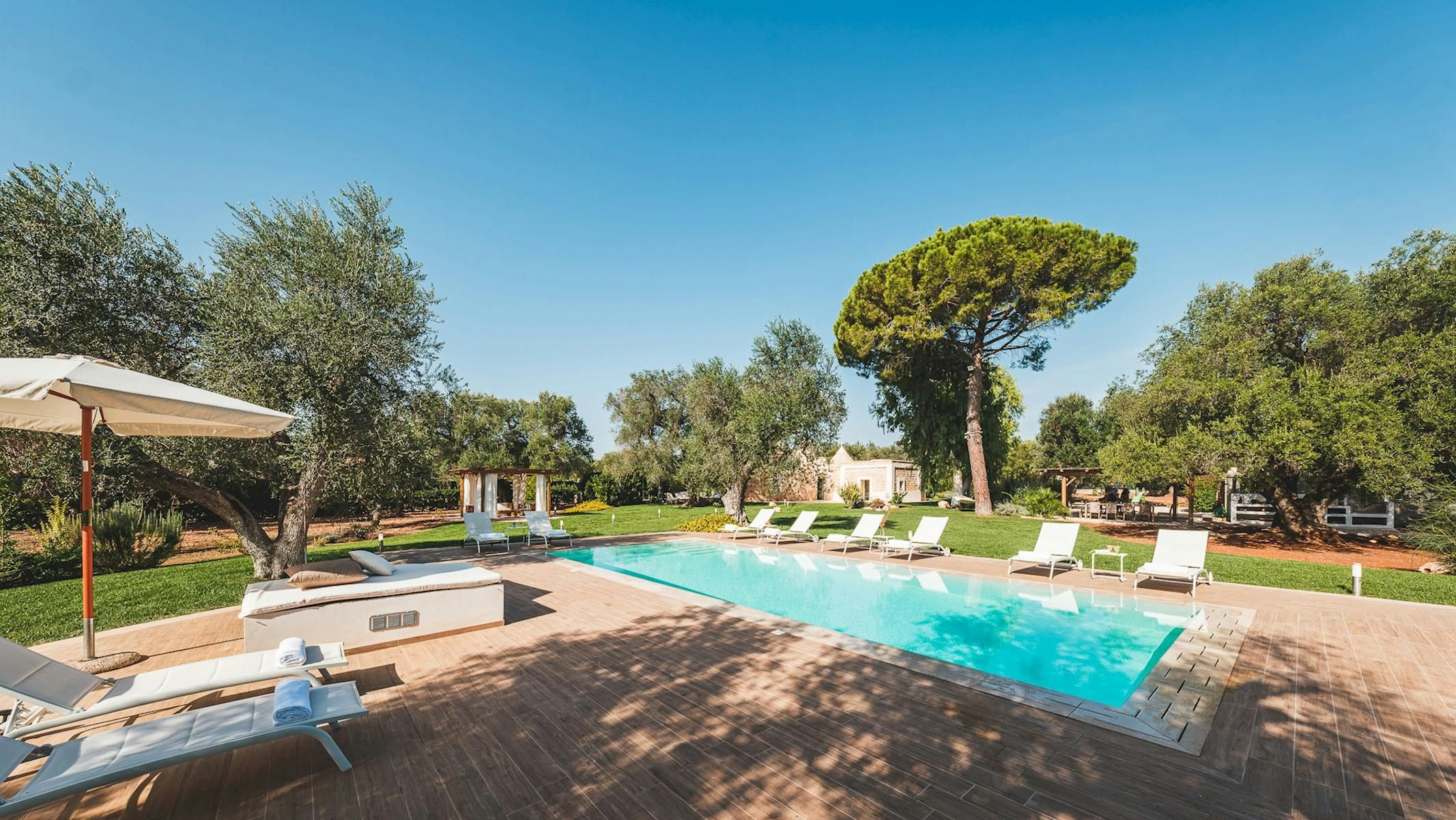 Amidst centuries-old olive trees, this trullo will captivate anyone in search of traditional Italian charm. Lovingly restored by the owners, every detail of this unique setting inspires instant relaxation. There’s a private pool and a shaded terrace with beautiful views across the garden. The rooms are set across the main trullo and a neighbouring annexe – making this a great option for groups looking to stretch out and socialise. Your host is on hand to help organise sweet extras like a private chef. Plus, it’s in a great location with easy access to the marina of Brindisi, as well as the vineyards and farms of the Itria Valley.