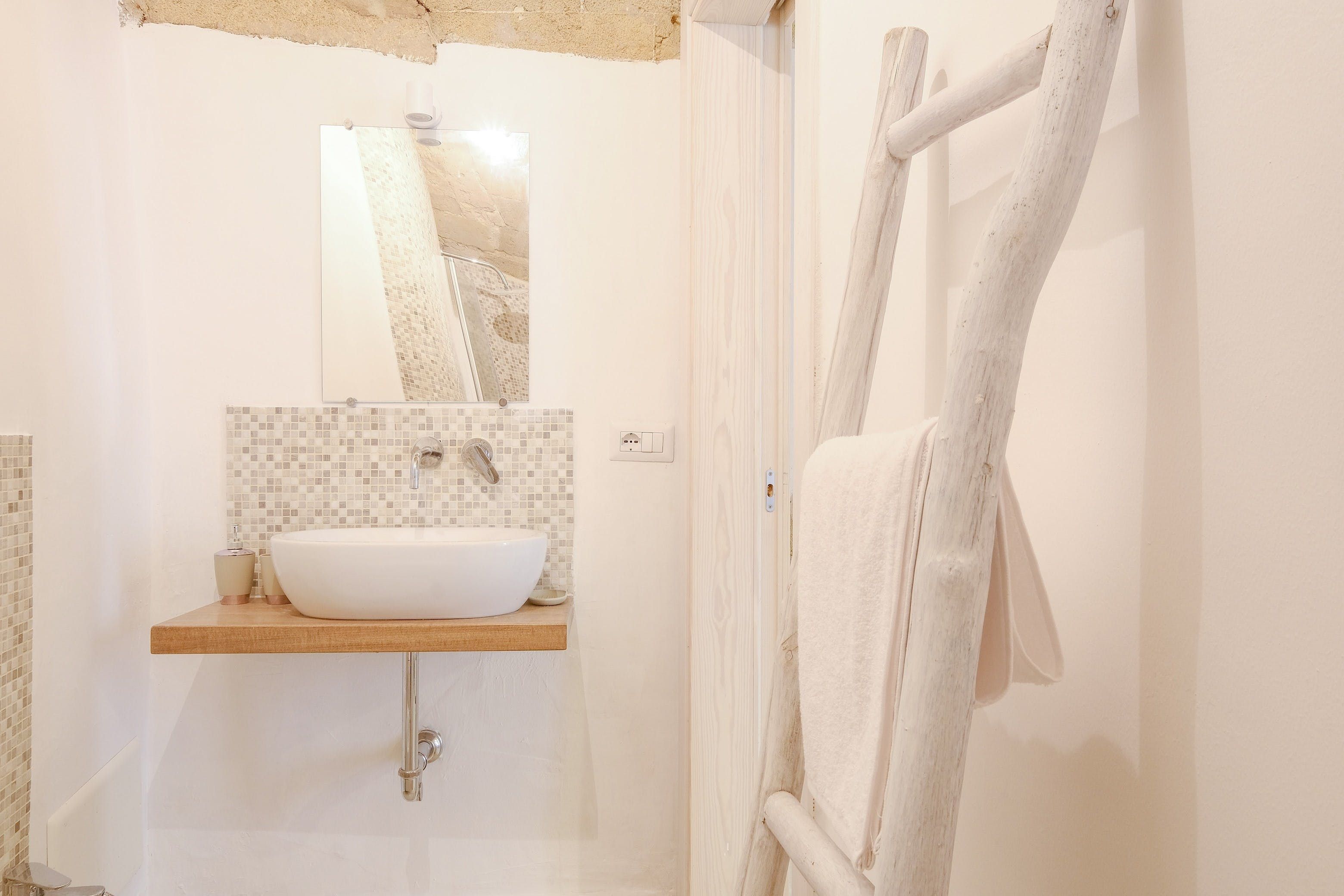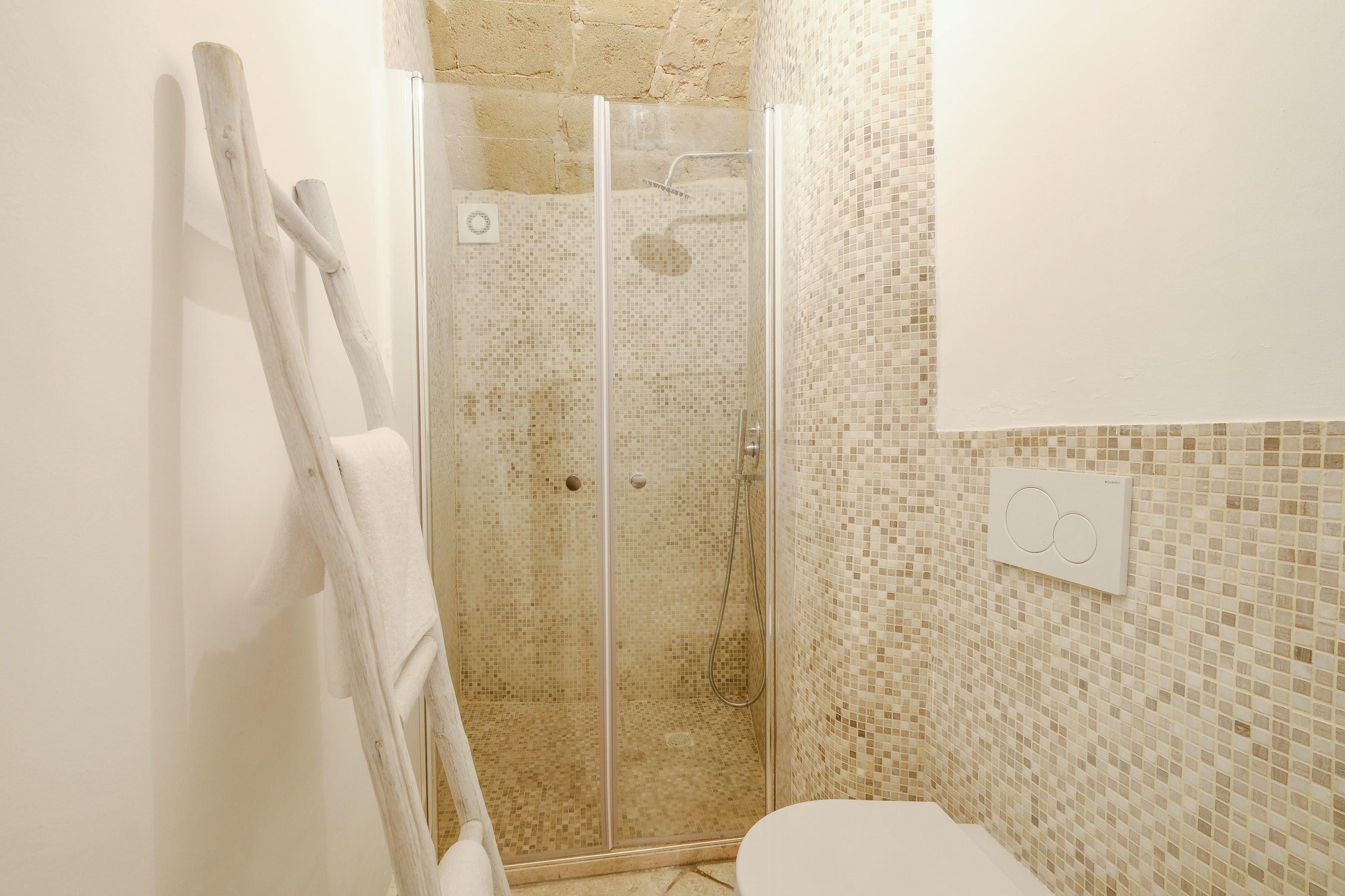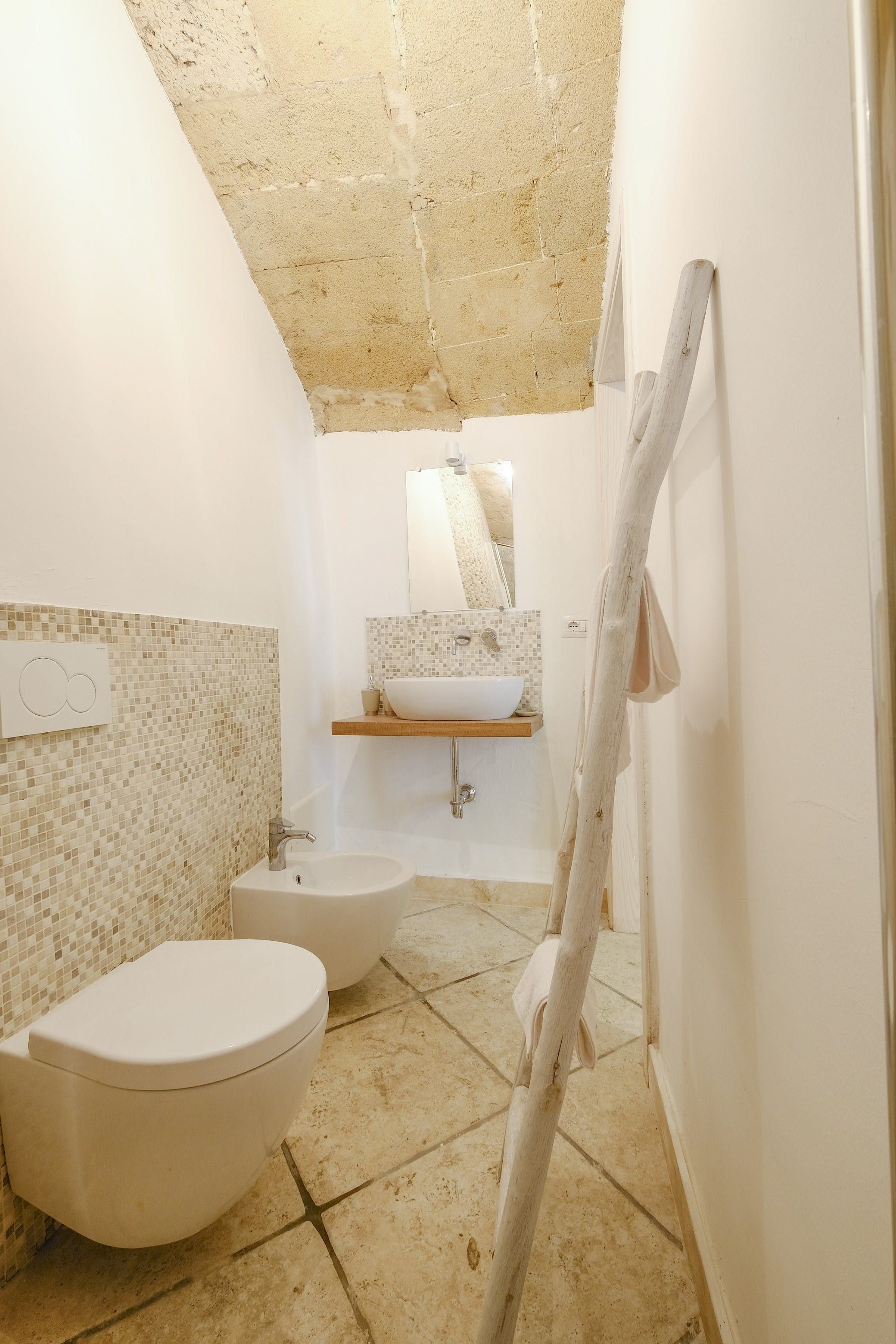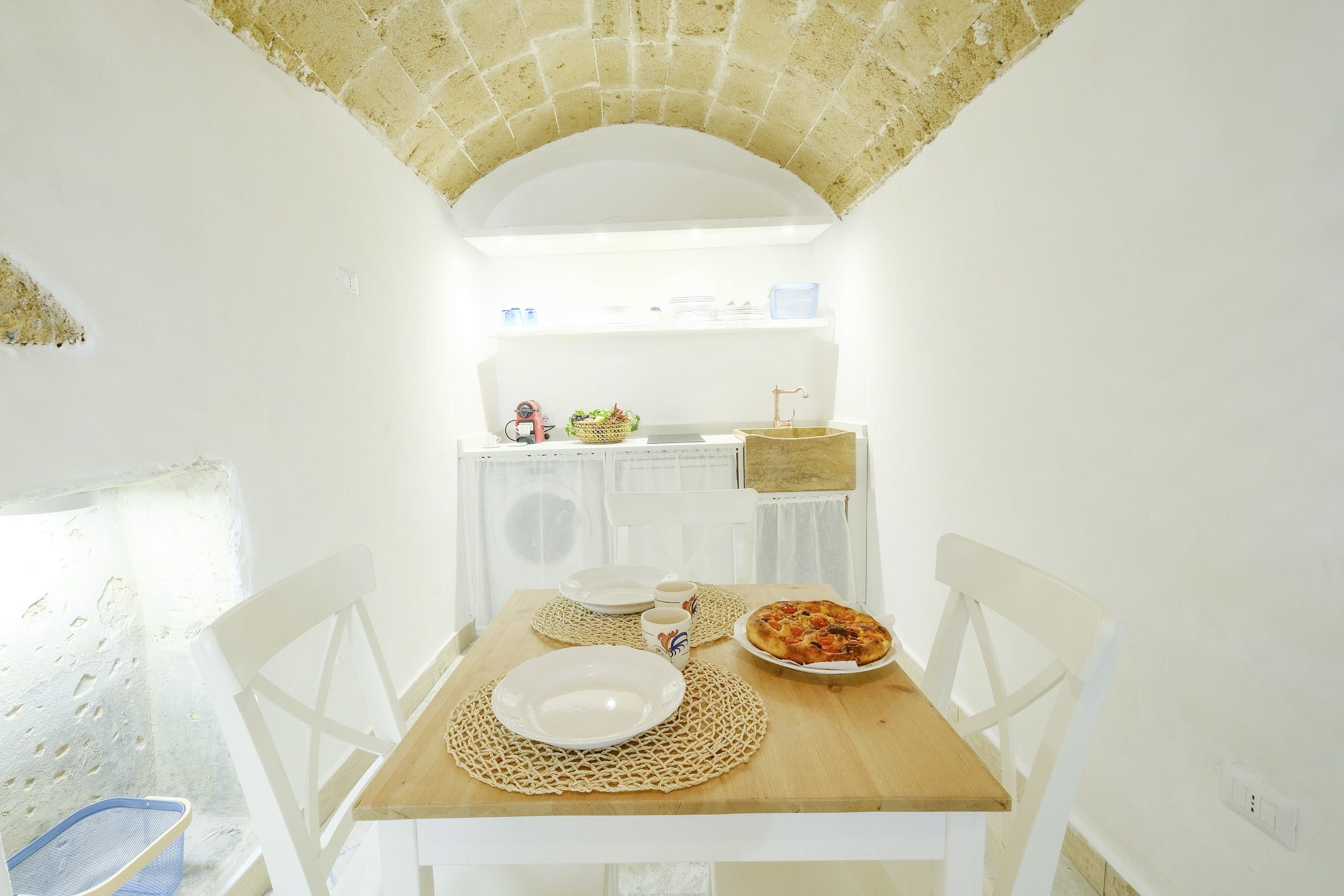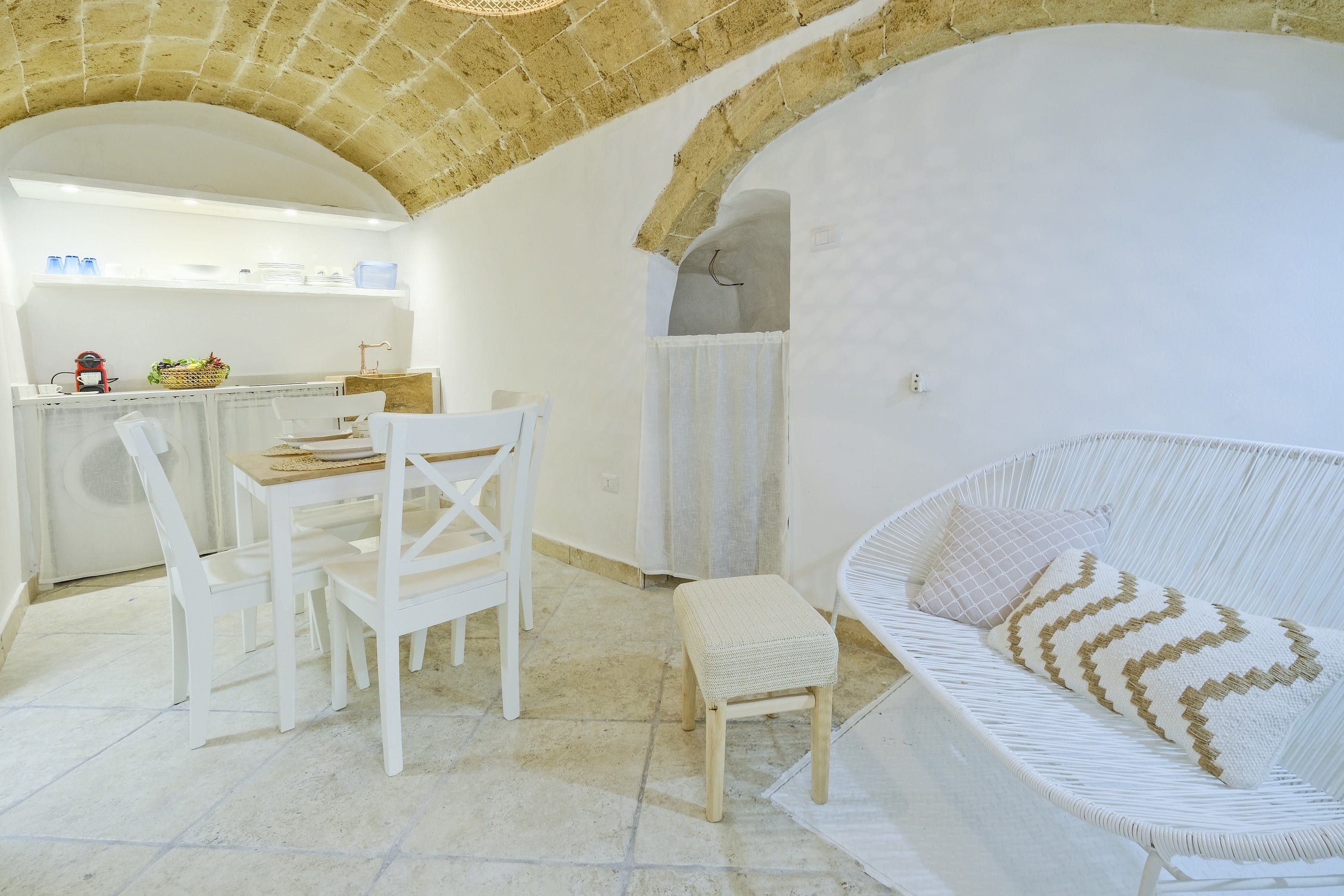 French doors open straight from the narrow street into the living area, which still retains ancient stone archways and barrel-vault ceilings. A design palette of bright white and honey-brown matches the historic touches of this apartment and slipping off to sleep in the boho-chic bedroom is a delight. The kitchenette may not have an oven, but there’s enough here to accommodate breakfast, quick meals and morning espressos. Besides, the charming restaurants of the old city are on your doorstep, so who wants to bother cooking anyway?