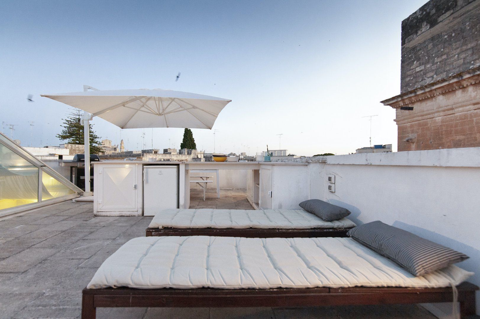 Nestled in the heart of the historic Italian city of Lecce lies this boutique apartment, spread over two floors. While away the hours up on the beautiful private rooftop terrace where you can enjoy a drink, lie back on the sun loungers or prepare some antipasti in the outdoor kitchen to nibble on as you socialise and bask in the Italian sunshine. If you need to get some last-minute remote work done during your stay before you can relax, set yourself up at the dining table downstairs. Stand at the Juliet balcony in the main bedroom in the morning and look down at the street below as you sip your morning coffee, and make the most of this gorgeous city.