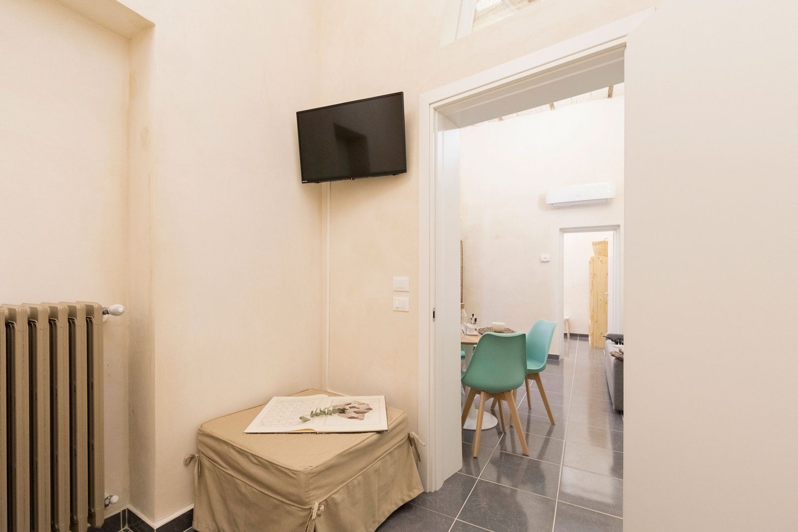 Step through the door into this ground-floor apartment, seamlessly blending modern elements with timeless Salento architecture. Cosy and welcoming, you'll settle in in no time before heading out to explore the city on your doorstep. The kitchen here is small and best suited for light bites rather than daily feasts, but that won't be a problem with the assemblage of ambrosial restaurants within easy walking distance. Choose whether to check yourself in on arrival or to be greeted by your host for a friendly first introduction to your new home away from home. In the evening, pull out the sofa and transform the main living space into a cosy bedroom to recharge for another busy day.