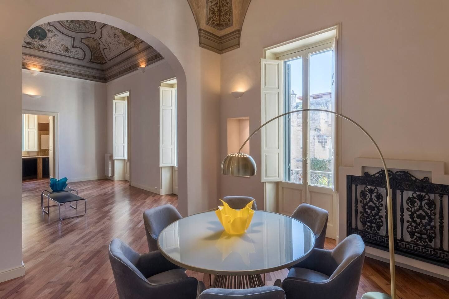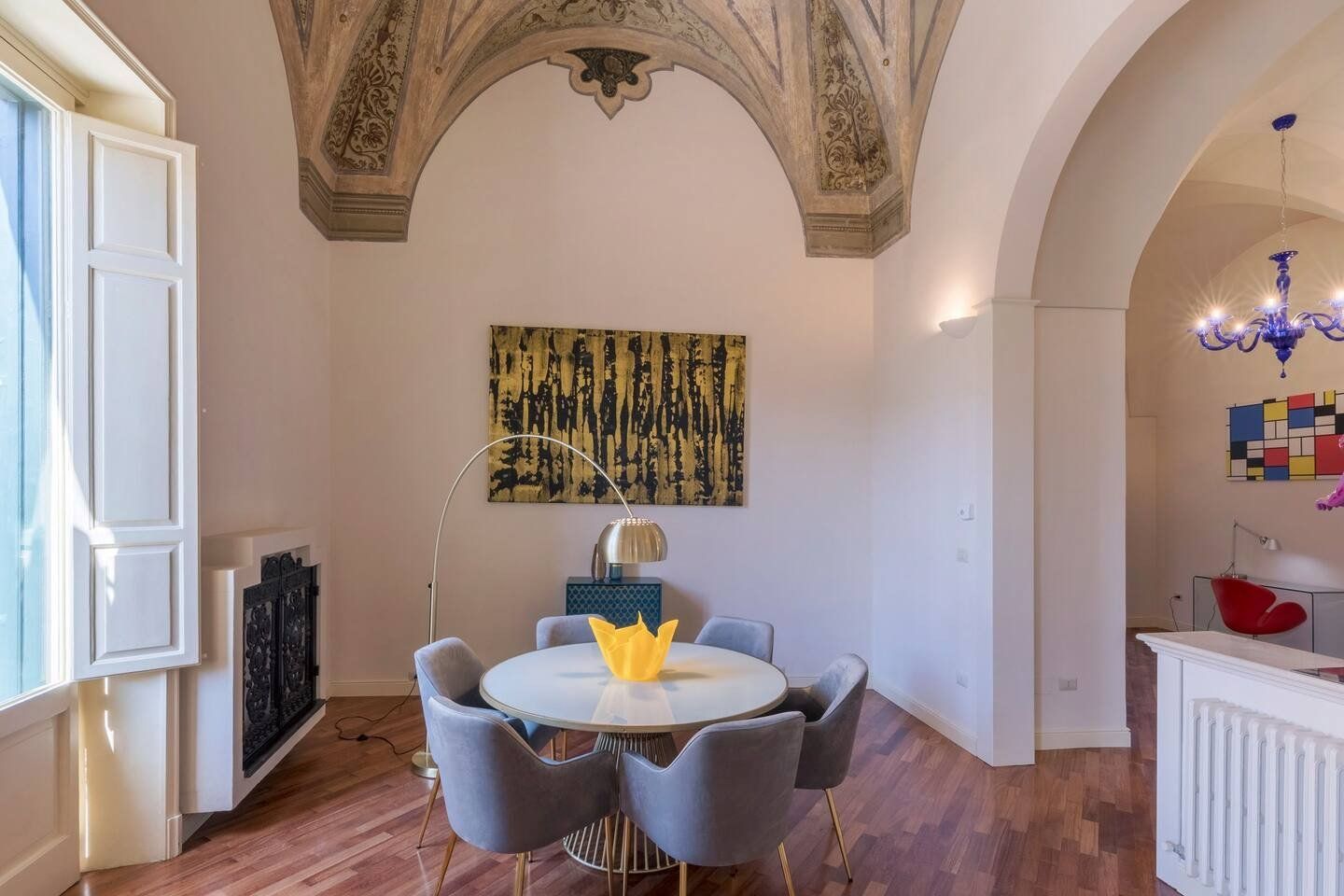 With its beautiful frescoed ceiling, arched walls, and cavernous spaces, this apartment makes for an atmospheric stay in the heart of the Baroque city of Lecce. Alongside historical features such as traditional shutters, the home has pops of modernity, from the bright artwork to the blue chandeliers. Unusually for this packed-in city, this home has a private swimming pool – perfect for cooling off in the height of Puglia's summer. The sheltered terrace looks over the pool and we love the idea of long lunches or late dinners with friends here. Alternatively, Lecce's many seafood restaurants are only a short stroll along the cobbled streets. The house is in the centre of the city, with Roman amphitheatres, medieval castles, and grand cathedrals all jostling for space. On warmer days, it's less than a thirty-minute drive to the Mediterranean and many seaside tavernas.