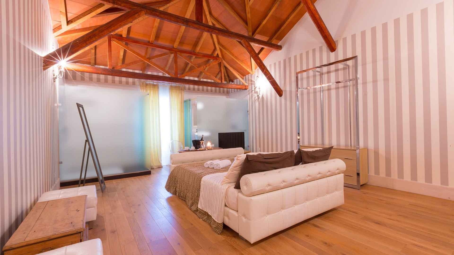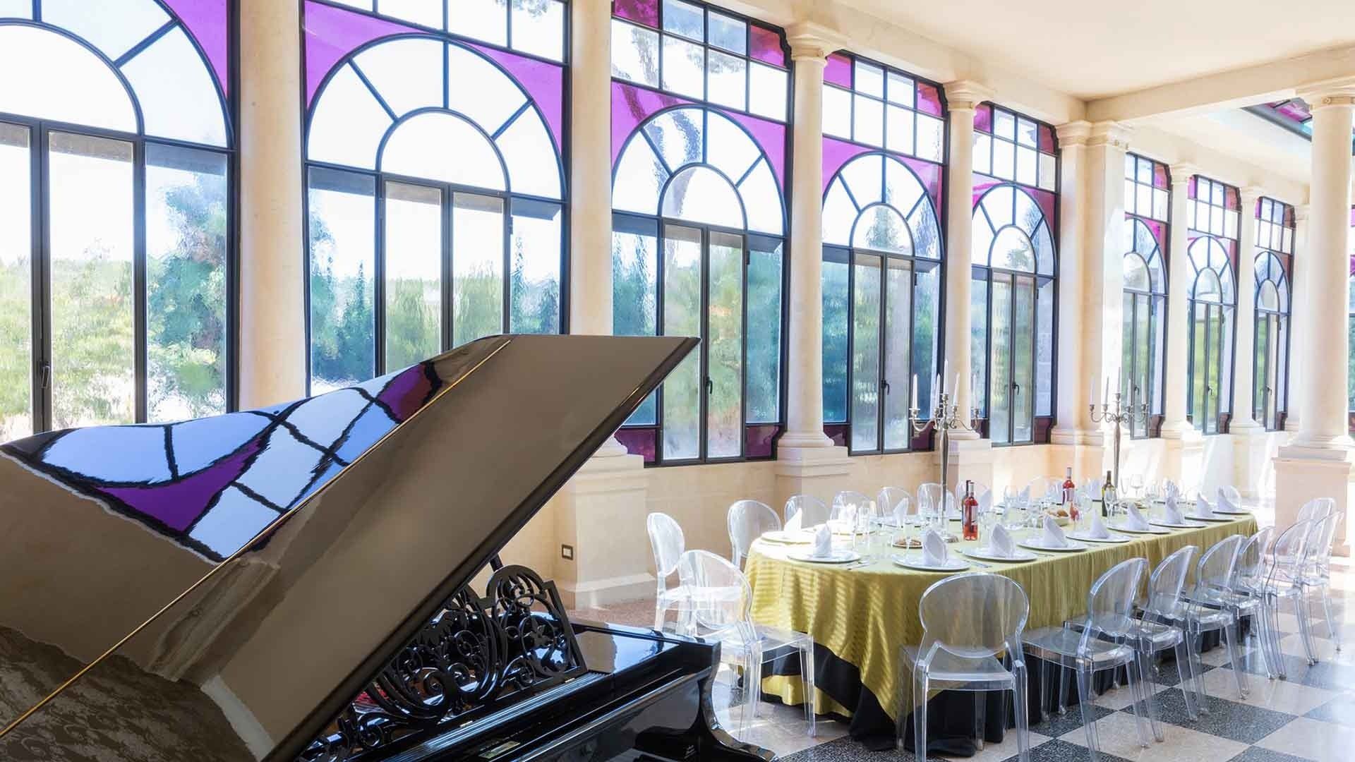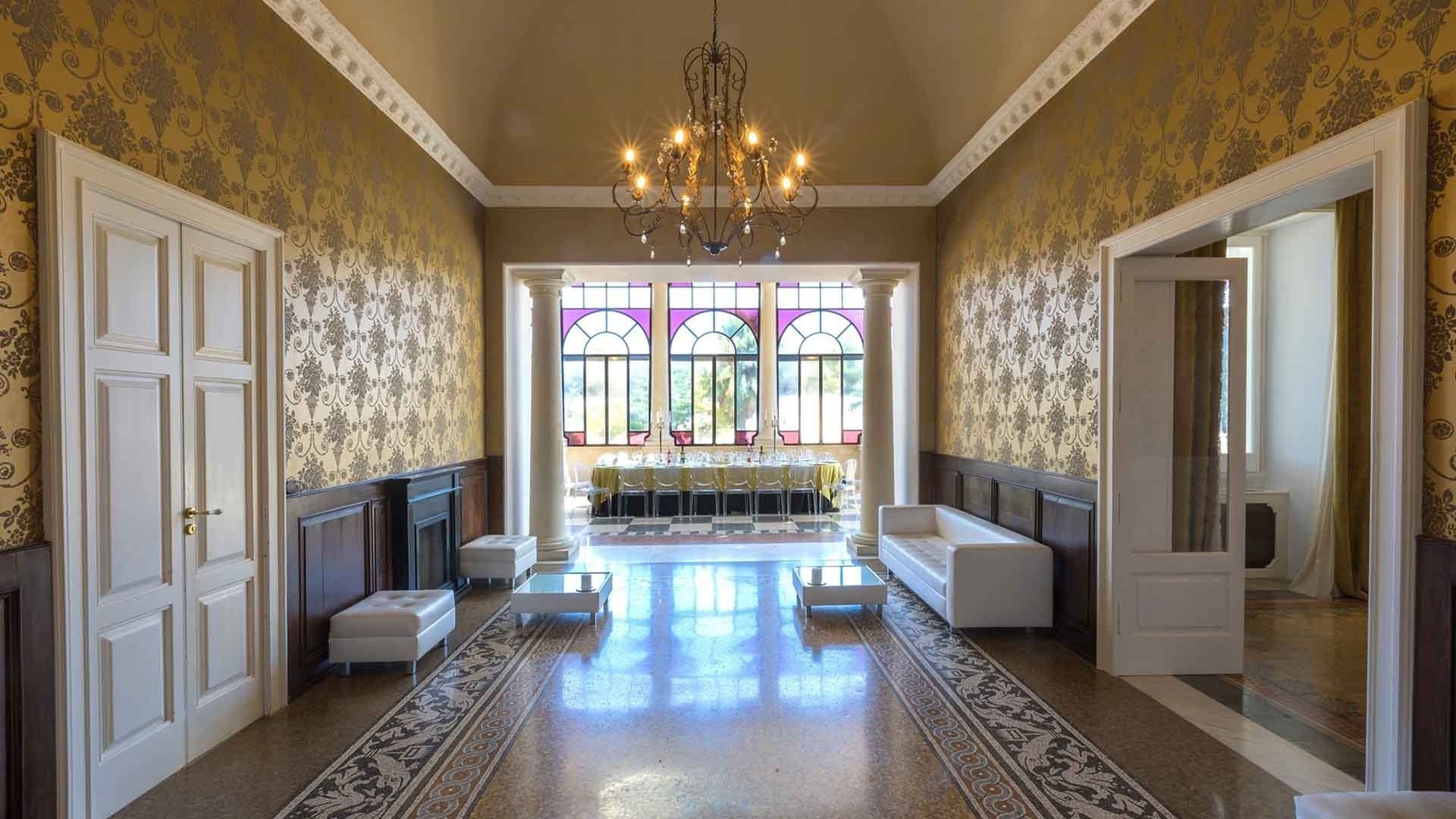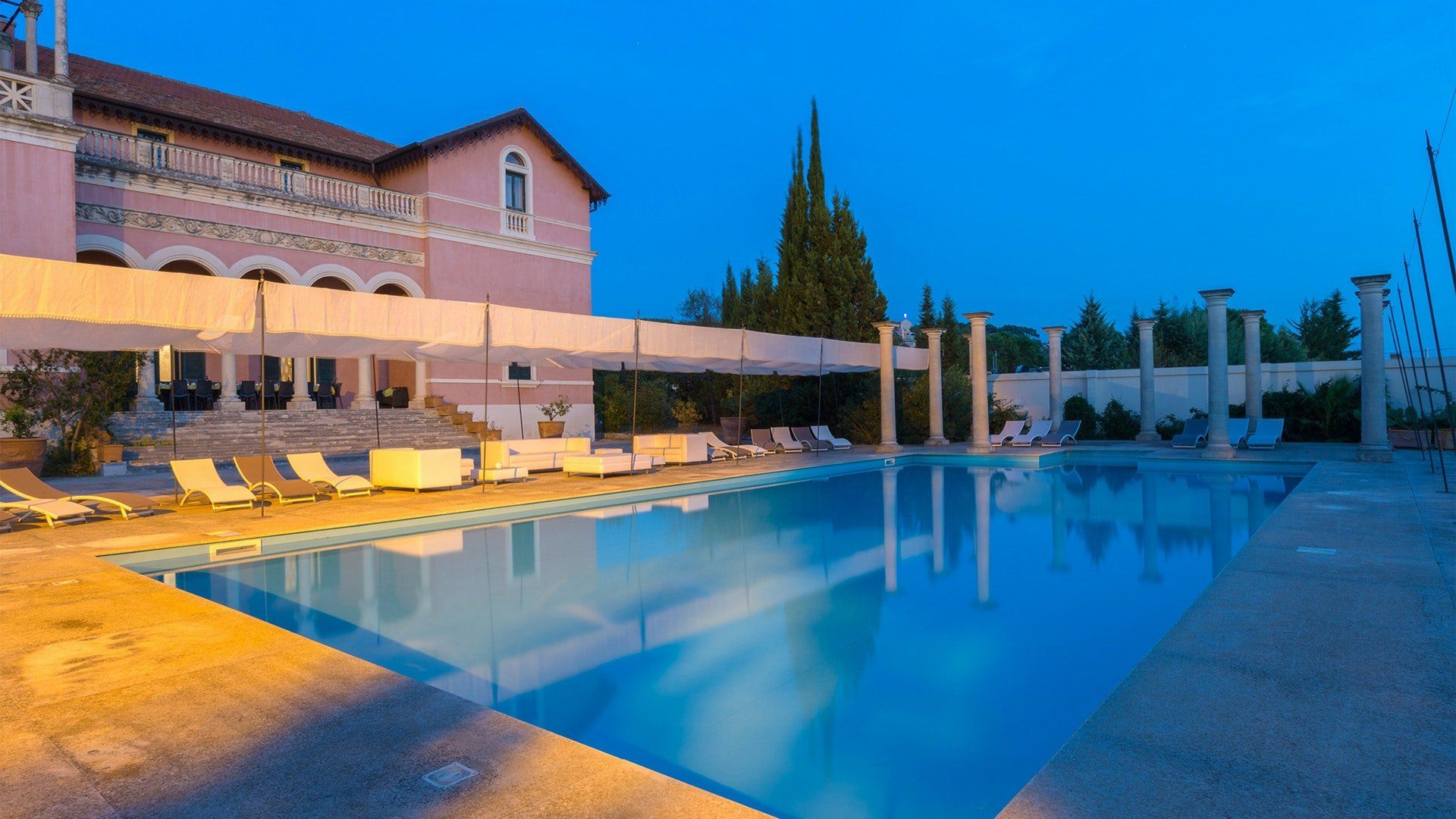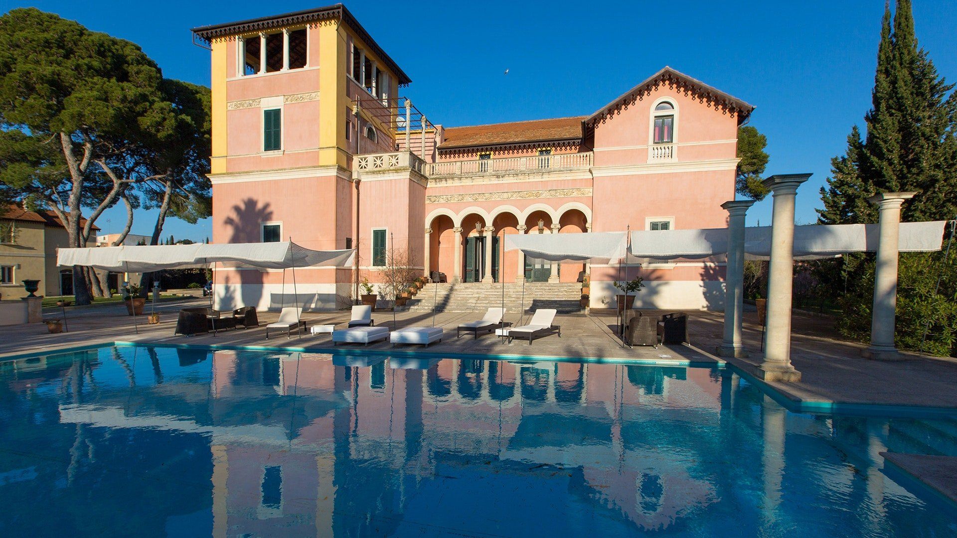 This Art Nouveau-style villa dates back to the early 18th century and is a rare gem for those who love art and design. Outside, you’ll find an elegant portico with columns made of Lecce stone, as well as a courtyard with a private pool. And inside, the living room looks almost like a museum, with large purple stained glass windows reflecting light onto stark white furniture. Enjoy a family meal in the opulent dining area which exudes timeless charm with printed wallpaper and a large table with contrasting modern transparent chairs. Or, try your hand at the grand piano for some after-dinner entertainment. Just wandering through this home is a delight in itself, with precious vases, stunning chandeliers, friezes and mosaics at every turn. But if you can tear yourself away, Casarano allows easy access to the entire province of Lecce and, in particular, the seaside towns of Gallipoli and Santa Maria di Leuca.