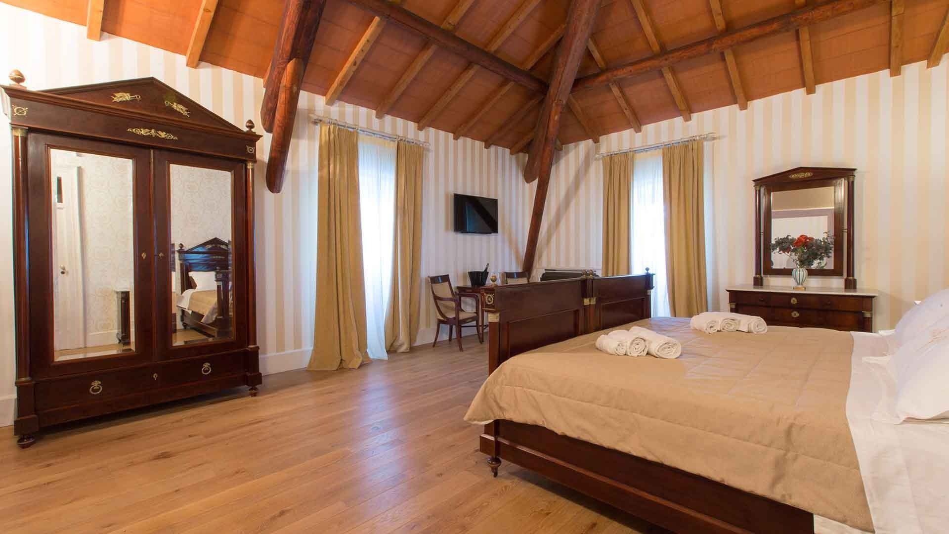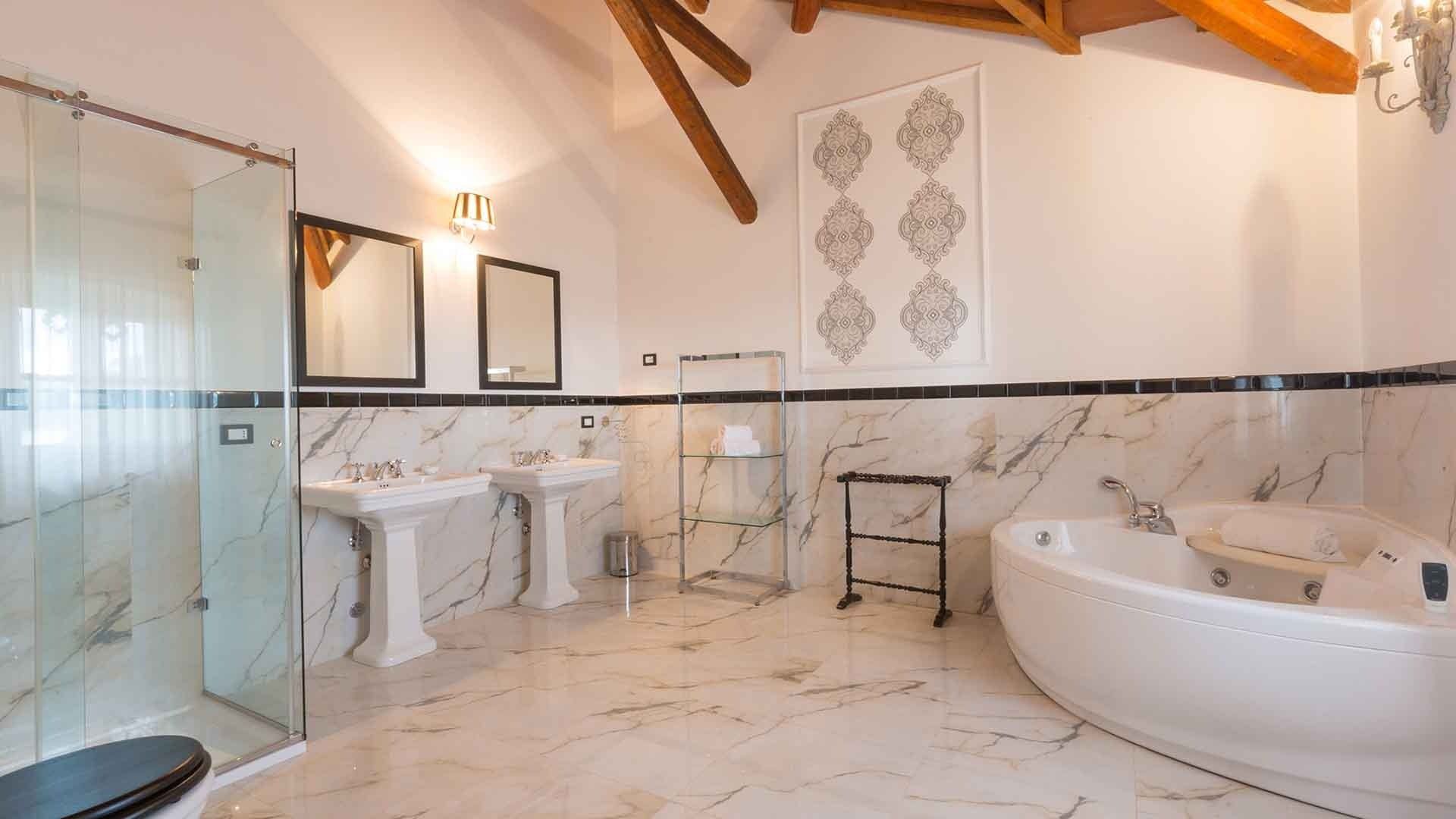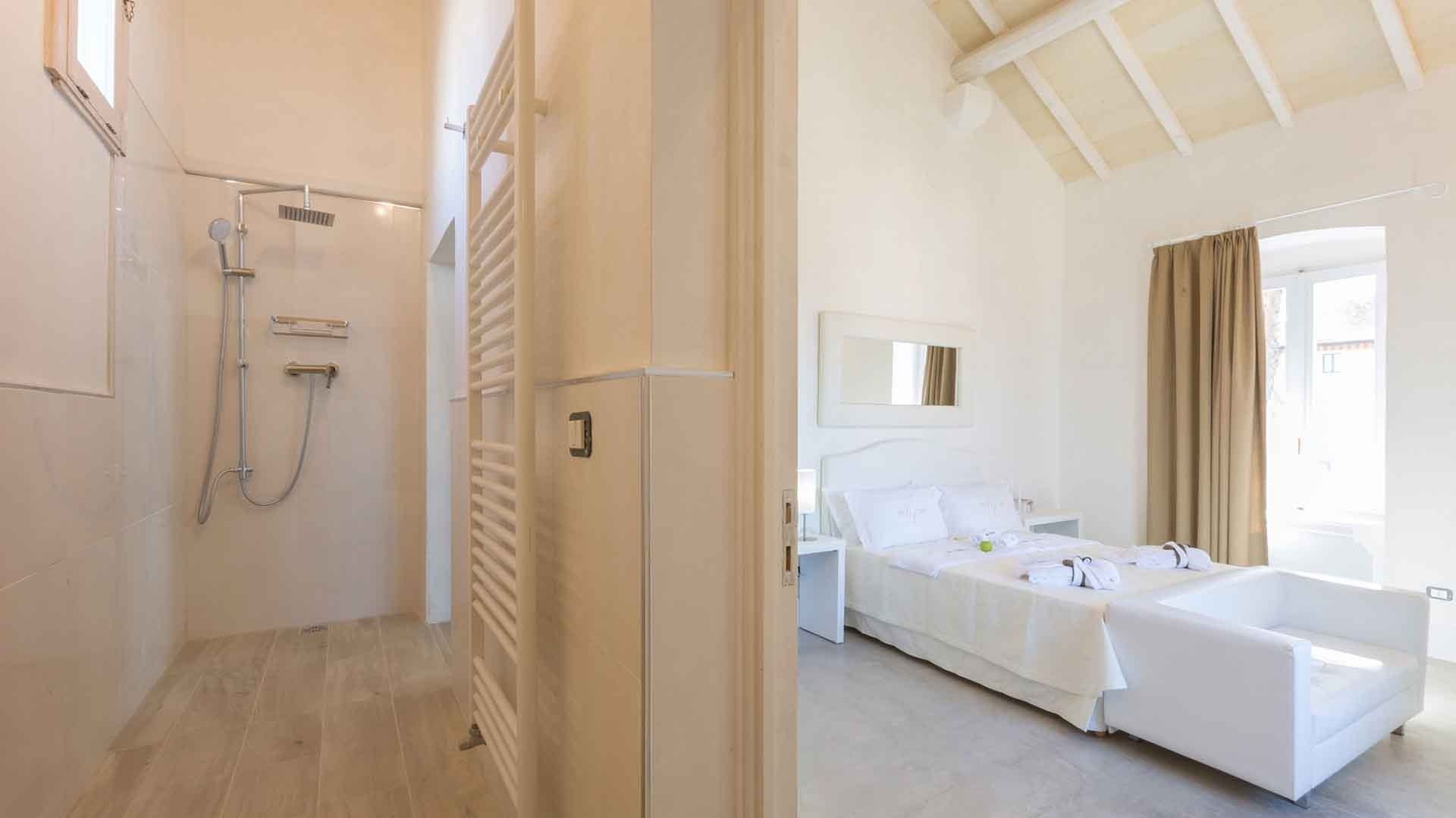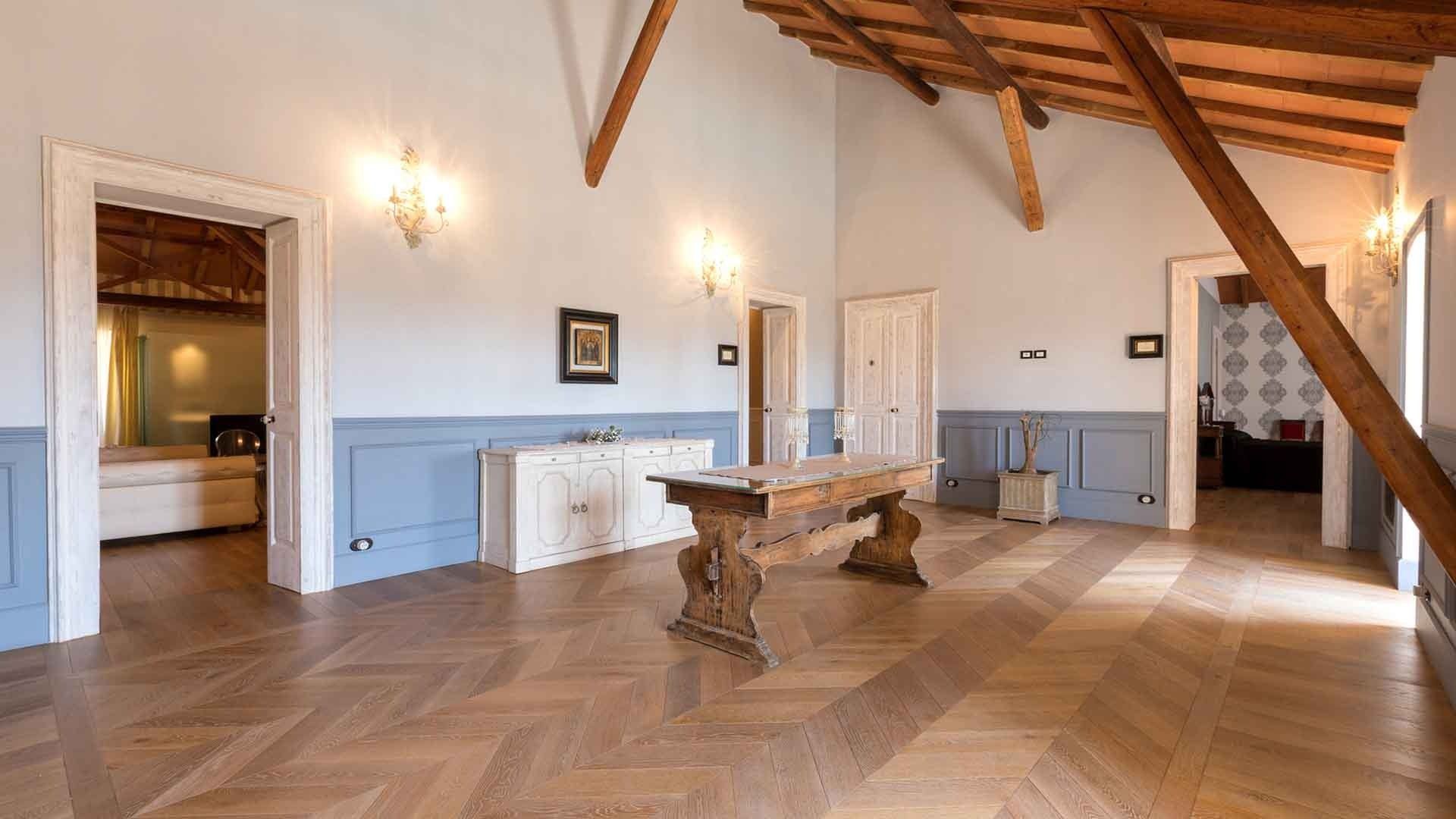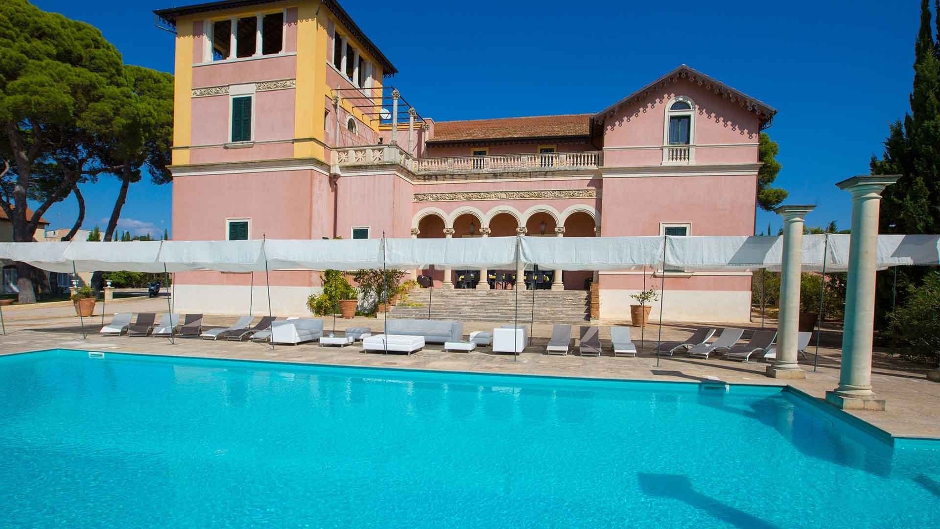 This Art Nouveau-style villa dates back to the early 18th century and is a rare gem for those who love art and design. Outside, you’ll find an elegant portico with columns made of Lecce stone, as well as a courtyard with a private pool. And inside, the living room looks almost like a museum, with large purple stained glass windows reflecting light onto stark white furniture. Enjoy a family meal in the opulent dining area which exudes timeless charm with printed wallpaper and a large table with contrasting modern transparent chairs. Or, try your hand at the grand piano for some after-dinner entertainment. Just wandering through this home is a delight in itself, with precious vases, stunning chandeliers, friezes and mosaics at every turn. But if you can tear yourself away, Casarano allows easy access to the entire province of Lecce and, in particular, the seaside towns of Gallipoli and Santa Maria di Leuca.