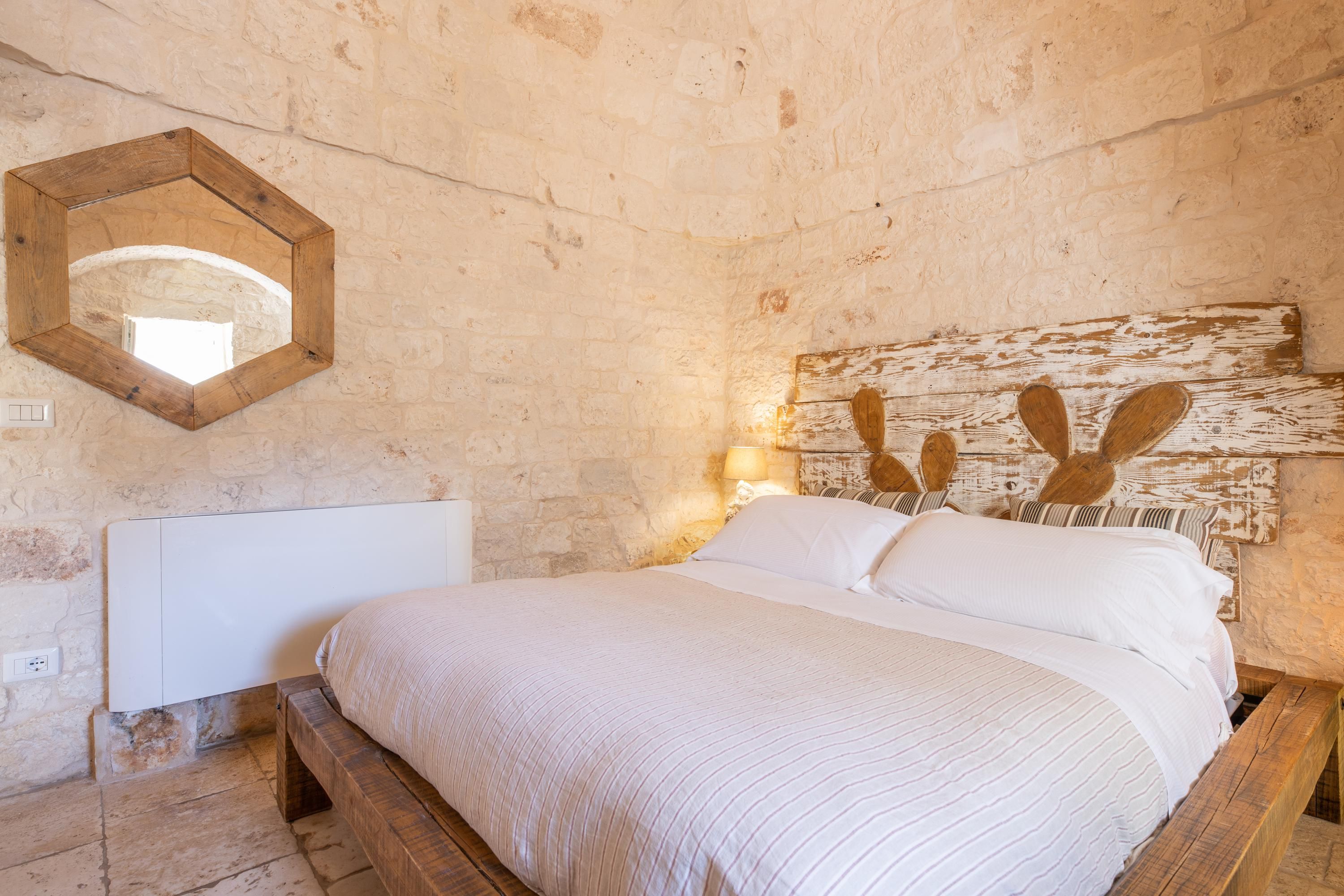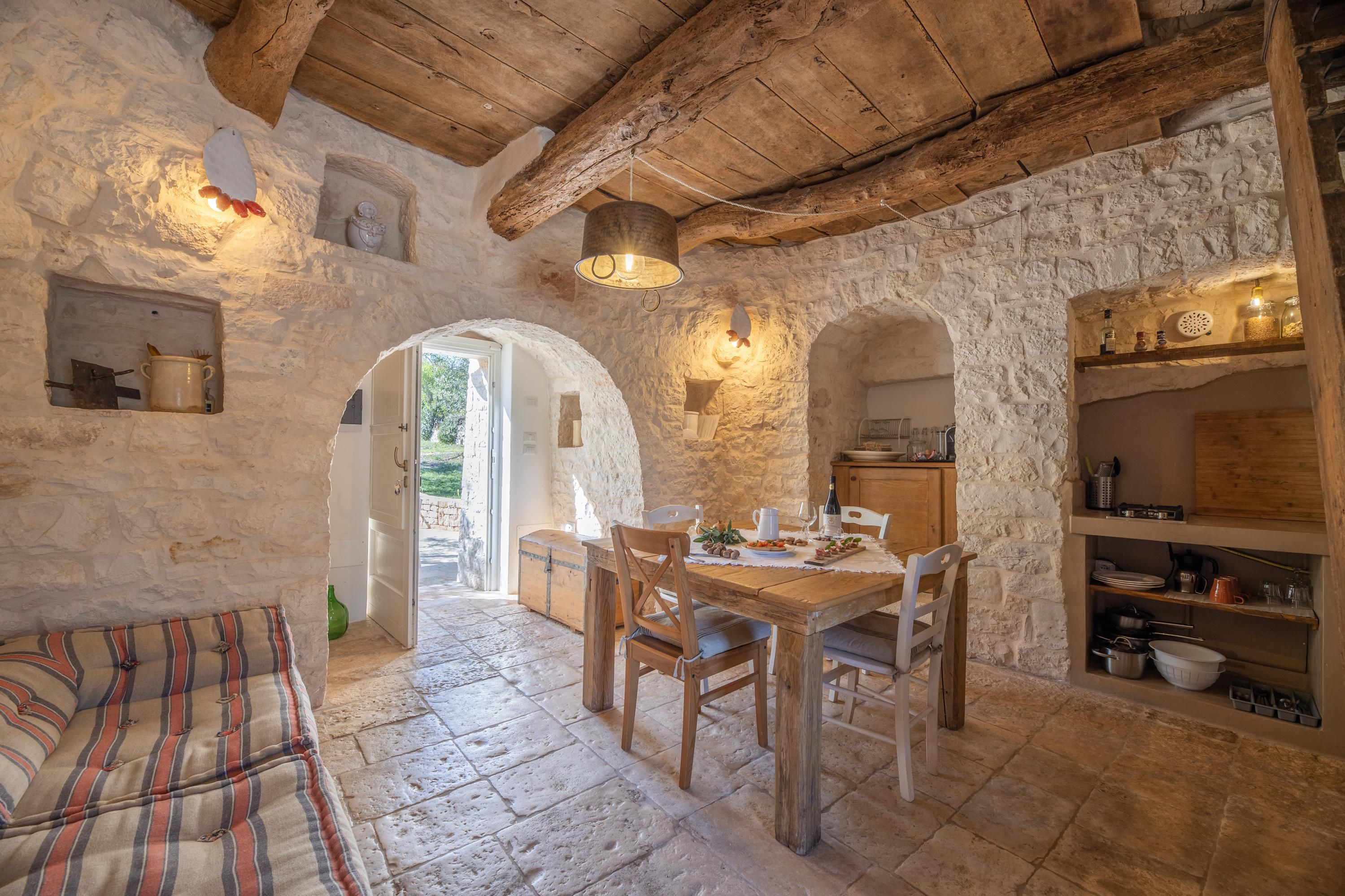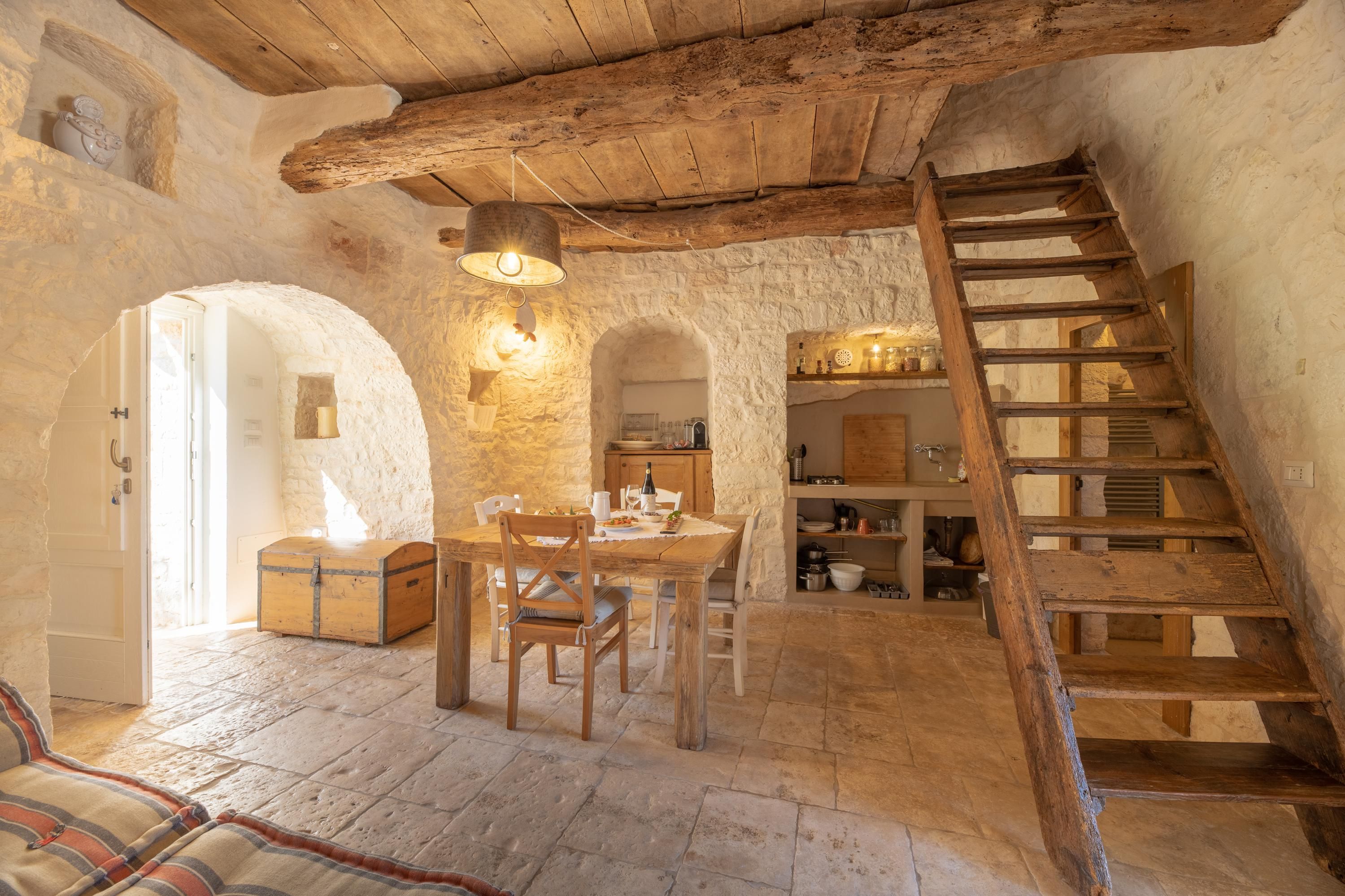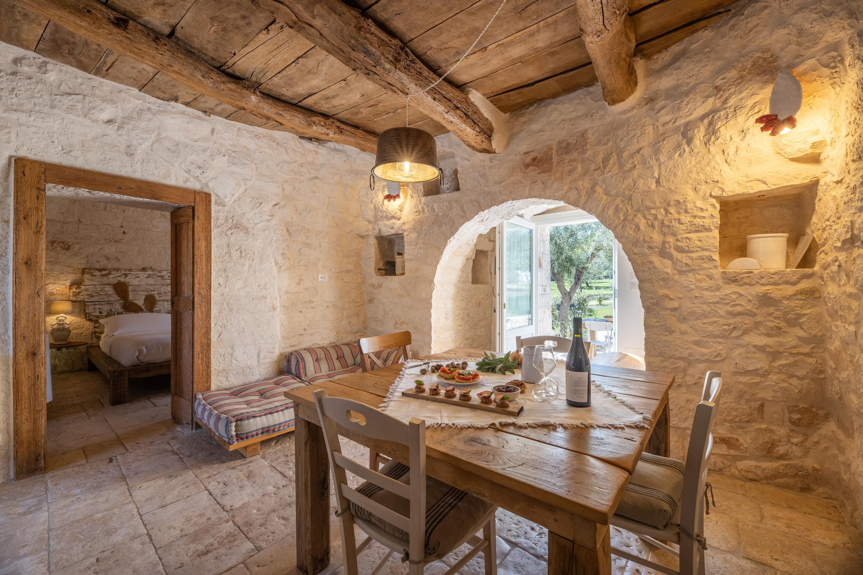 This traditional Italian trulli is the ideal spot to enjoy the allure of rural Italian living. We love the exposed limestone walls and rustic beams inside, and it gets even better when you step outside. The private hot tub is the highlight, but the small outdoor table is a close second, perfect for an afternoon charcuterie board. We think this home is best suited to a couple, though a child could sleep on the sofa in the living room. The location adds to the romantic charm – head to nearby Alberobello to see a town full of trulli.