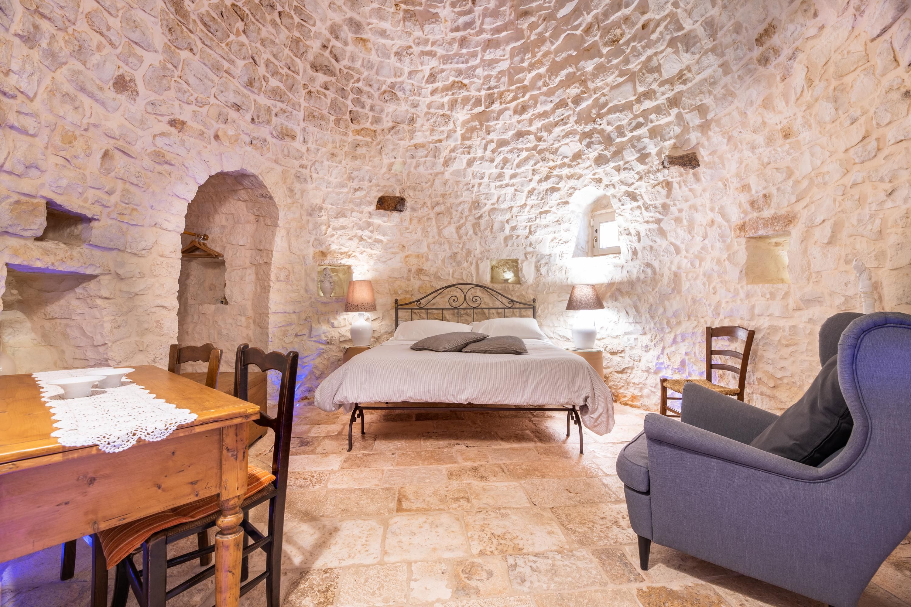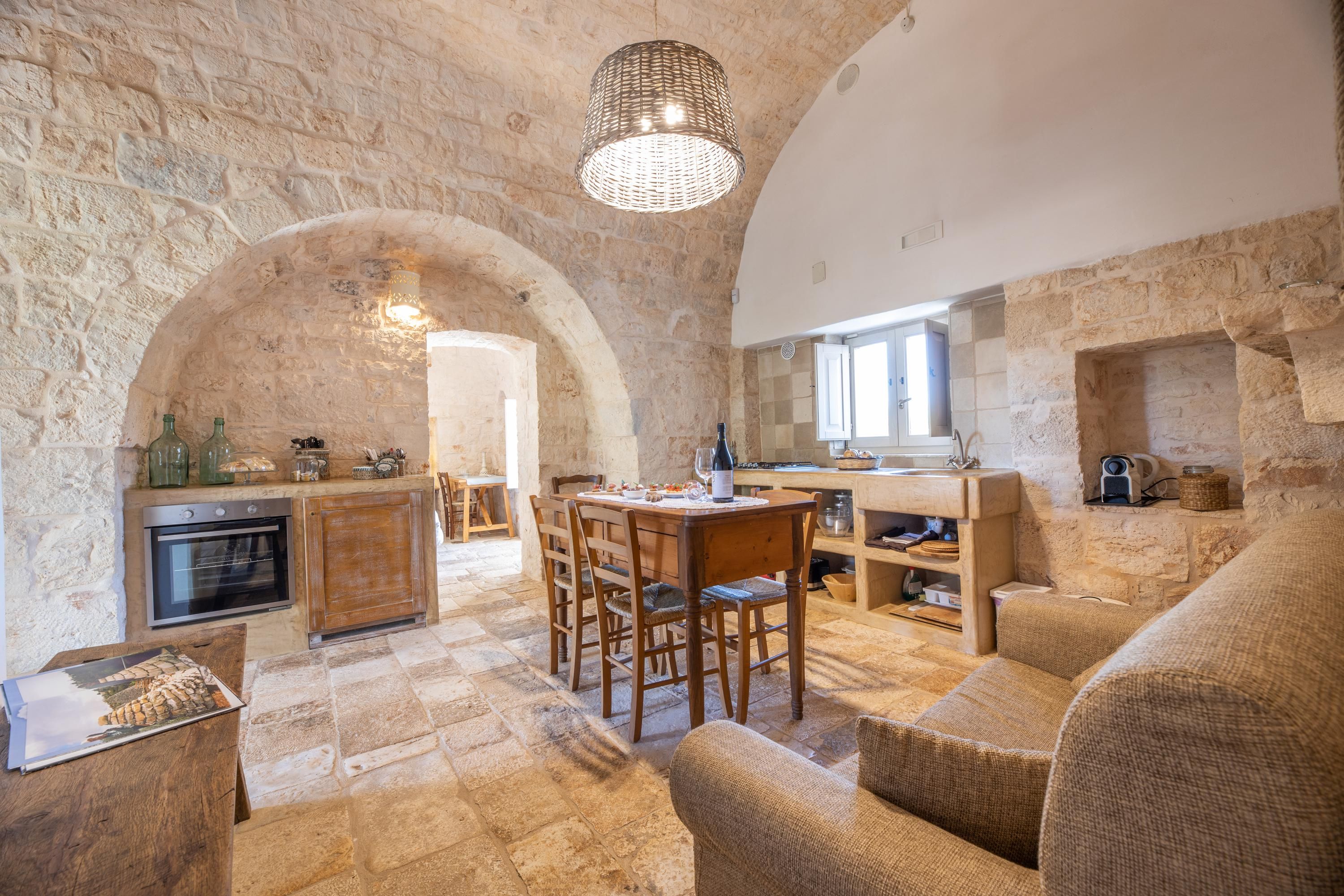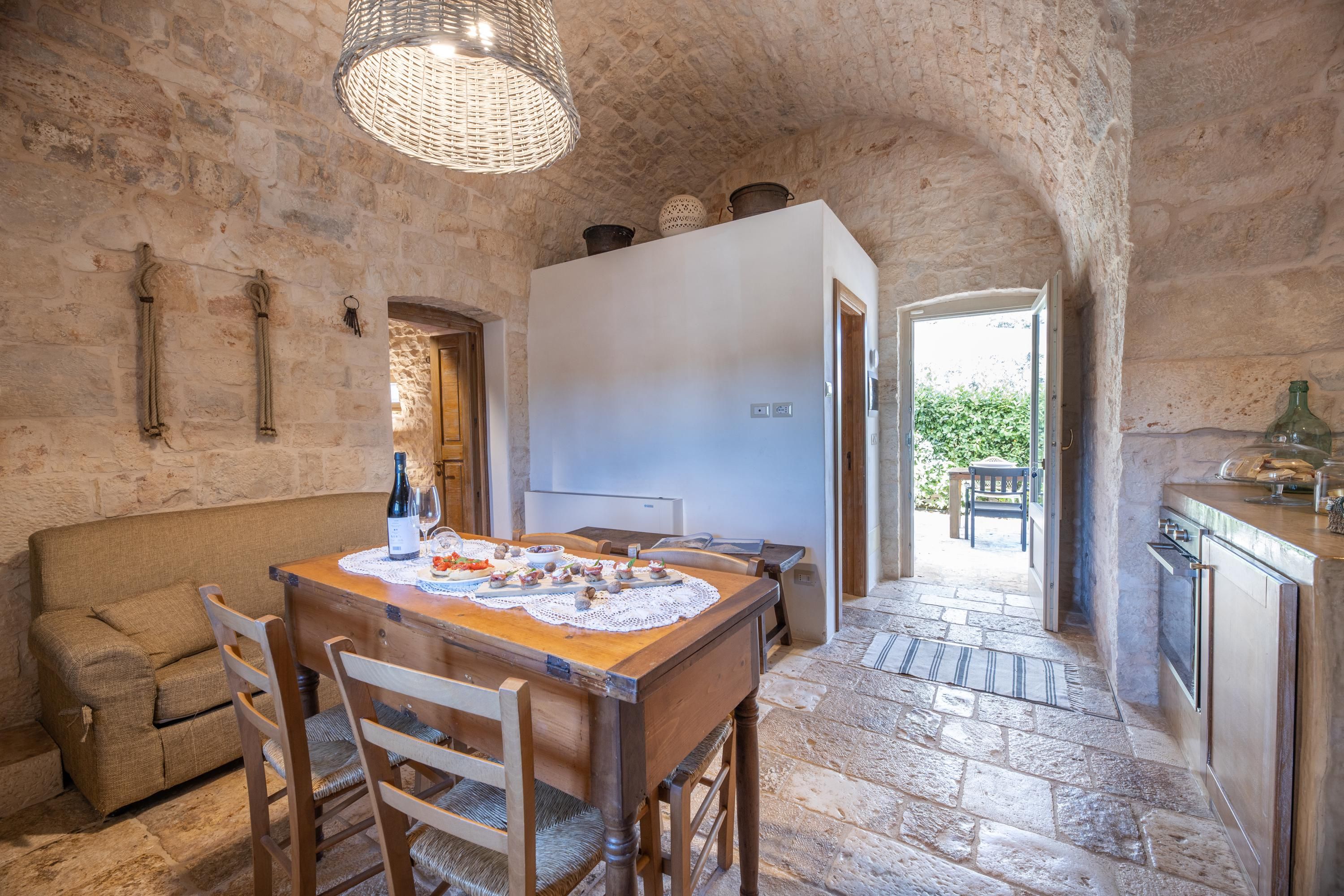 This traditional Trullo is packed full of character. Boasting a small private pool – a rare find for this type of home – and a terrace for alfresco dining, it’ll be easy to adopt the laid-back Italian lifestyle here. The living area may be small, but the kitchenette has everything you’ll need to rustle up a Mediterranean snack, and the sofa doubles up as a bed for guest number five at full occupancy. Location-wise, you’re a short drive from the hilltop town of Locorotondo. And for daytrips, historic Ostuni can be reached in half an hour, and the port city of Brindisi is less than an hour away.