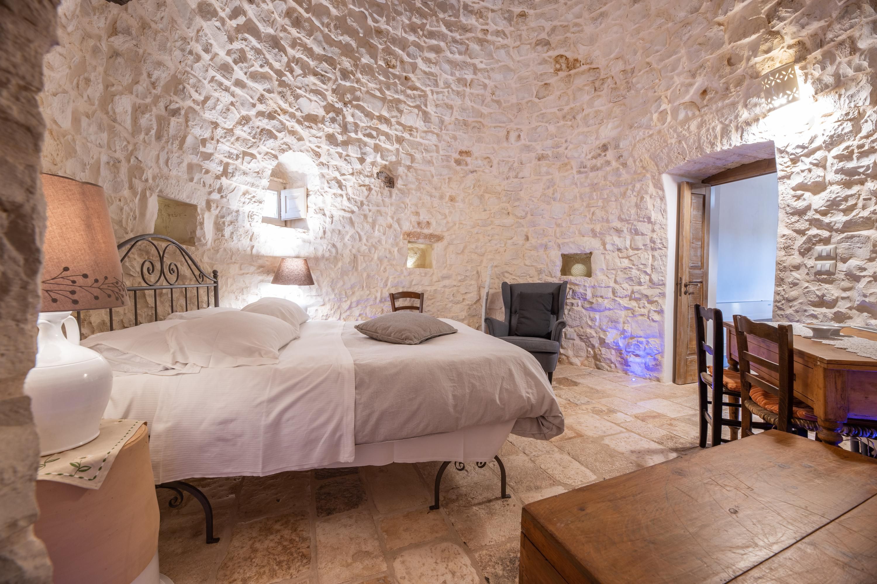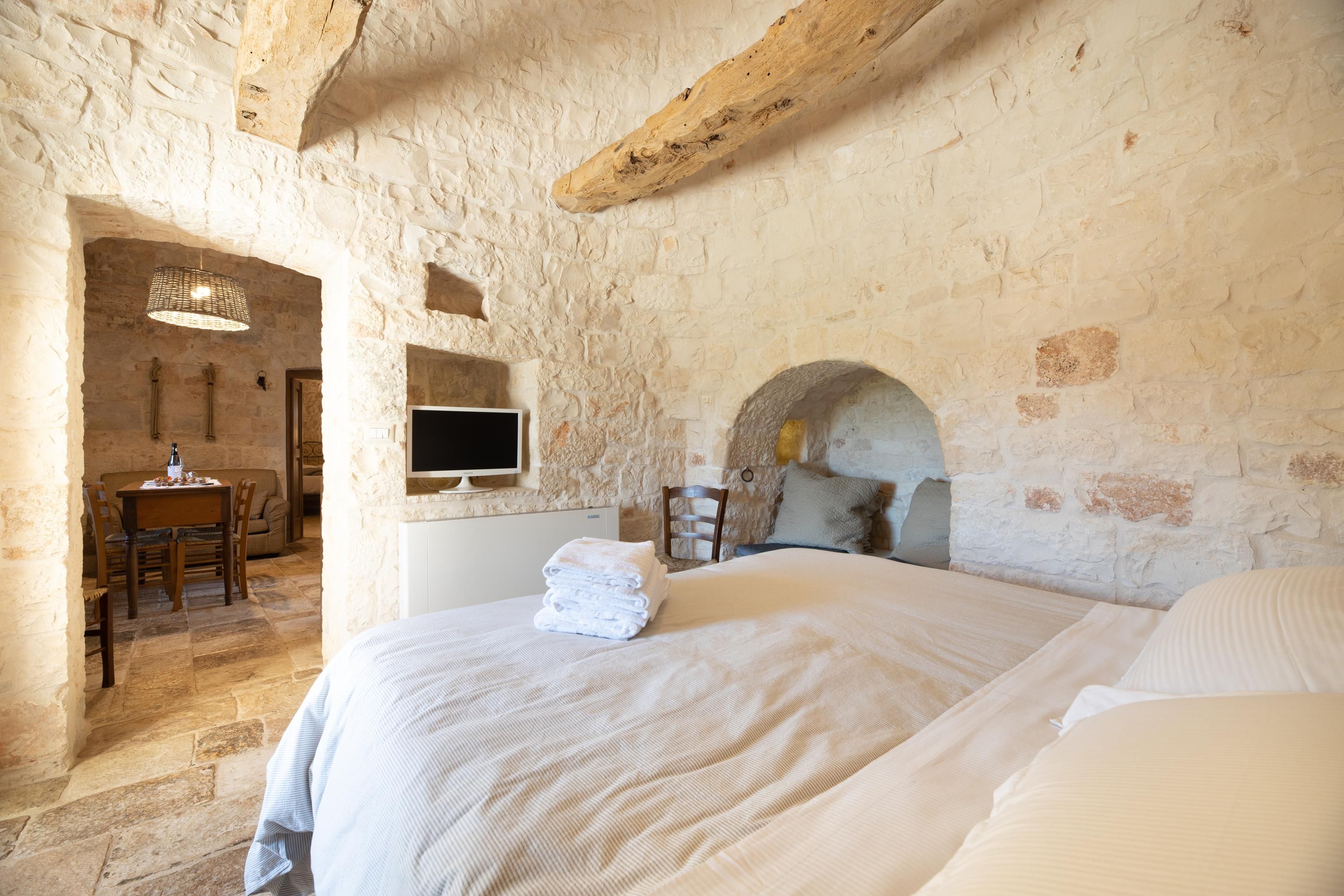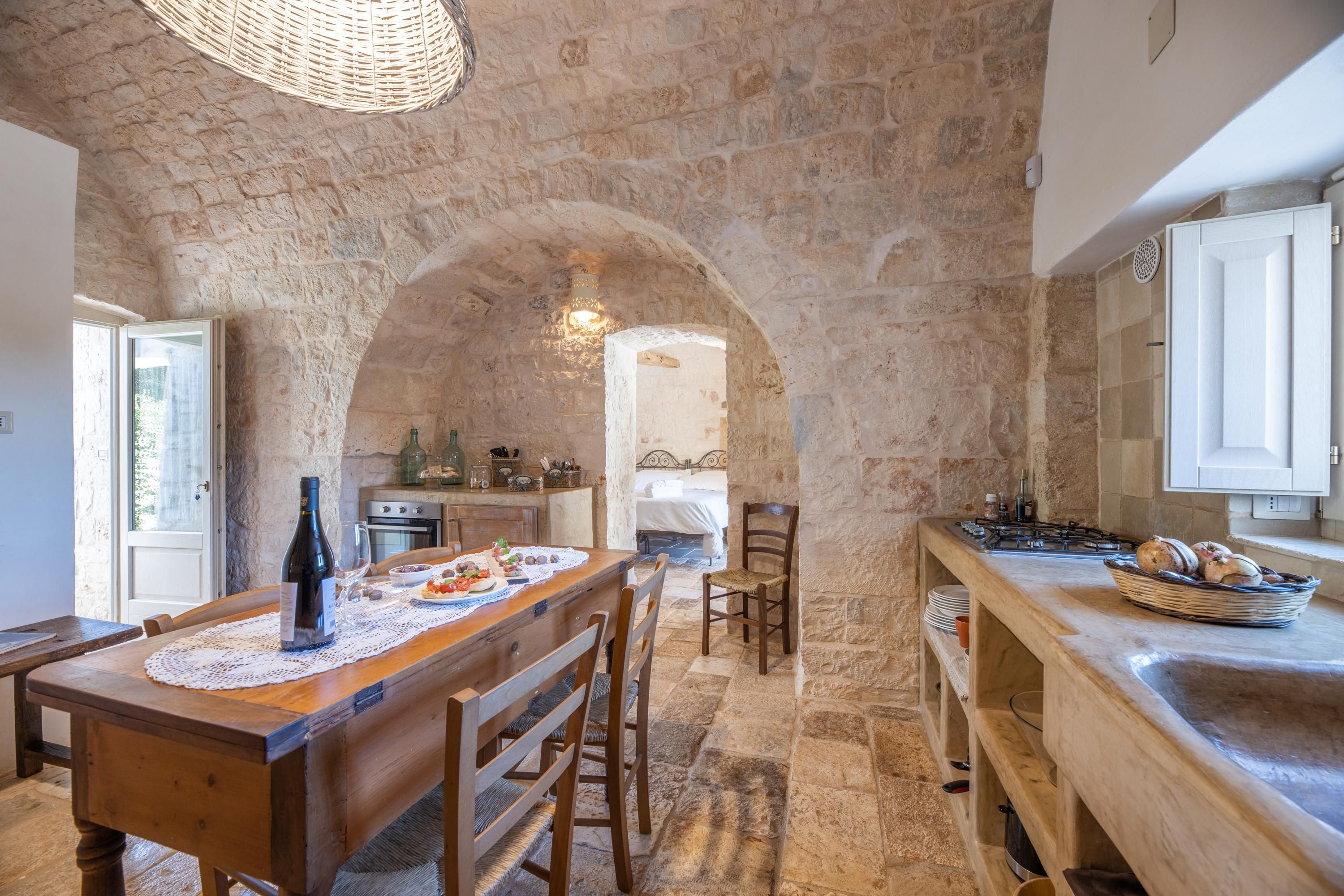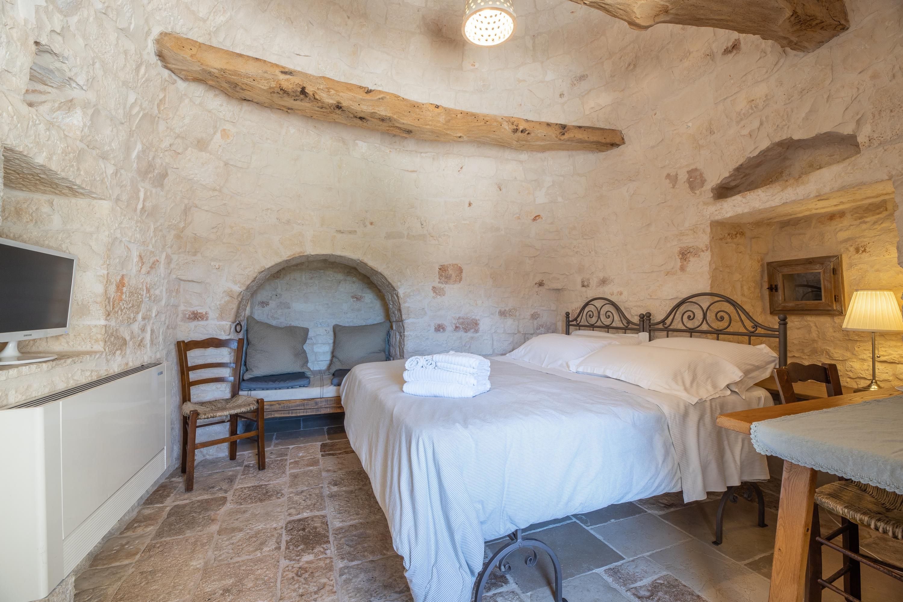 This traditional Trullo is packed full of character. Boasting a small private pool – a rare find for this type of home – and a terrace for alfresco dining, it’ll be easy to adopt the laid-back Italian lifestyle here. The living area may be small, but the kitchenette has everything you’ll need to rustle up a Mediterranean snack, and the sofa doubles up as a bed for guest number five at full occupancy. Location-wise, you’re a short drive from the hilltop town of Locorotondo. And for daytrips, historic Ostuni can be reached in half an hour, and the port city of Brindisi is less than an hour away.