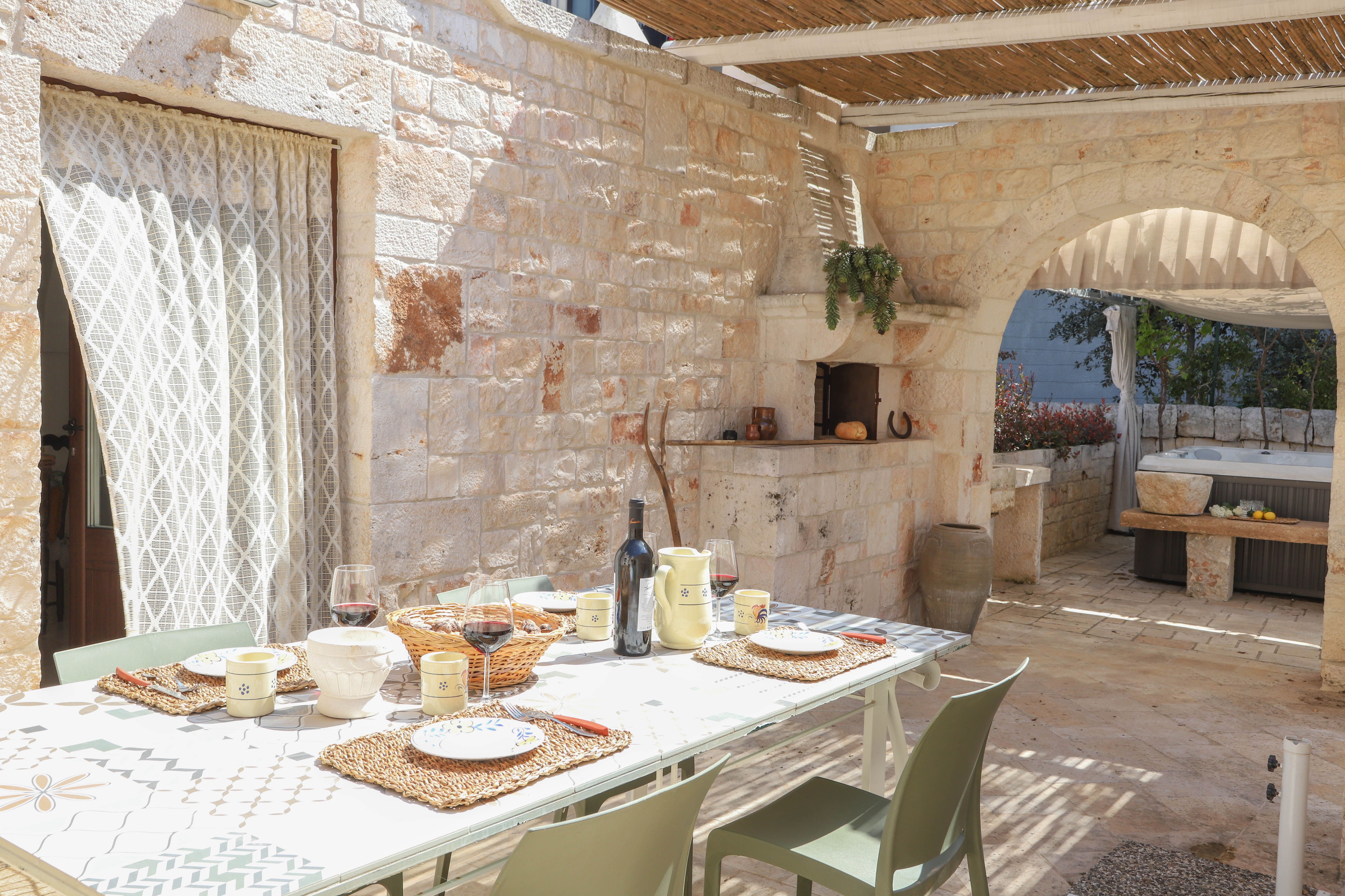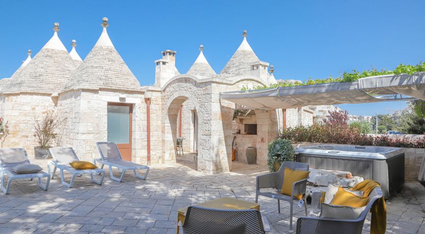 Fancy a taste of true Puglia living? This traditional Trulli villa located in the Itria Valley is spot-on. Despite the property's heritage, this is a surprisingly practical home. Each bedroom has an en-suite bathroom, making it well-suited for two couples sharing, and the shared hot tub leading off the apartment's private terrace is a lovely touch. Guests rave about the attention to detail here, and it's easy to see why. Expect local goodies and wine to help you settle in, and your host is always on hand if you need anything. Make sure to ask them for recommendations on the best trattorias in Locorotondo village (a fifteen-minute walk), or the nearby towns of Ostuni, Fasano, and Monopoli.