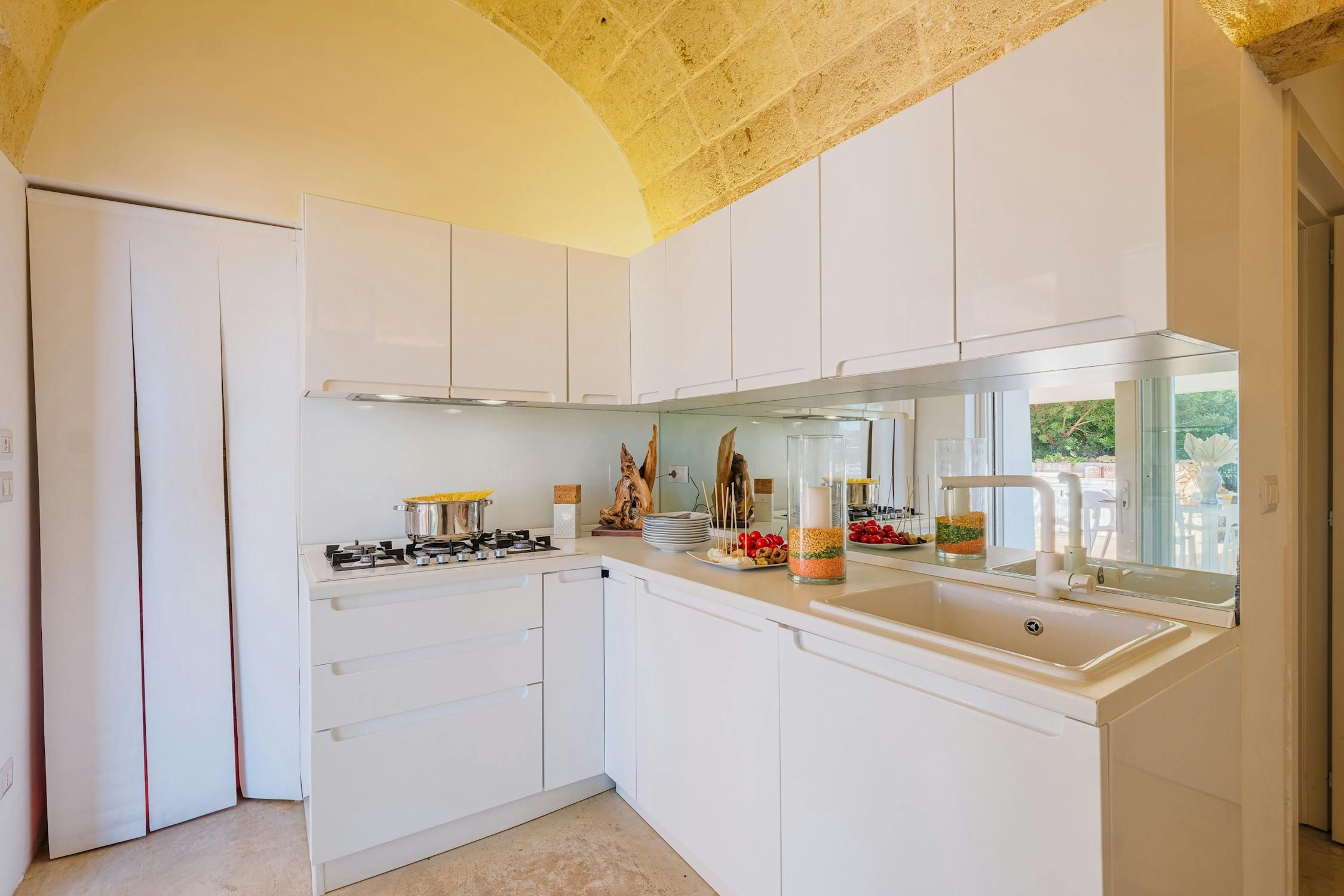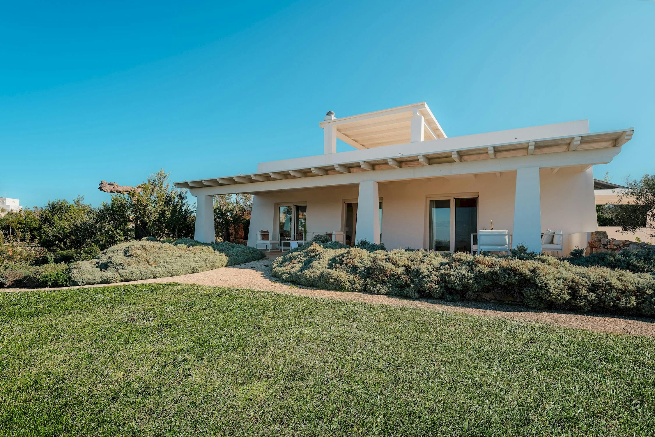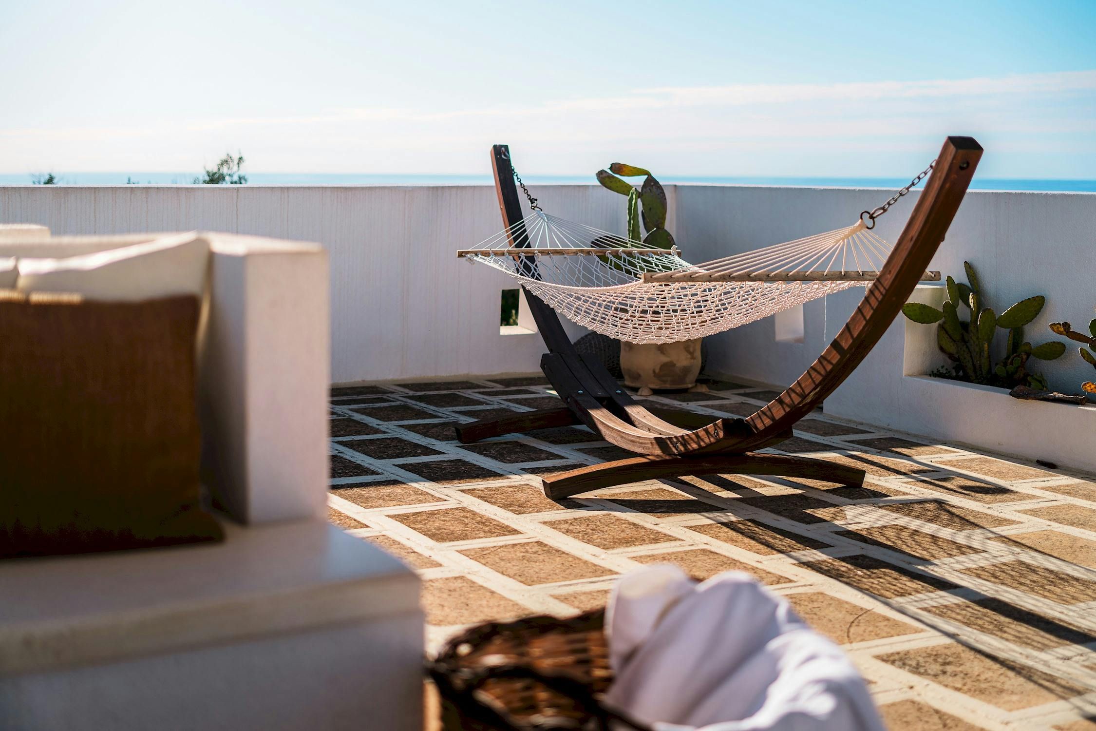 Minimalist and modern, this Santa Maria di Leuca home is ideal for an Italian getaway. You're never more than a short walk or drive from the sea, shops, and beaches. Even so, we can't blame you if you'd rather stay at home and enjoy the sun-kissed garden – and the sea views. Mornings call for alfresco breakfasts on the terrace, afternoons are best spent splashing in the swimming pool, and evenings end with a glass of Italian vino as the sun sets along the coast. It sounds like pure bliss to us.