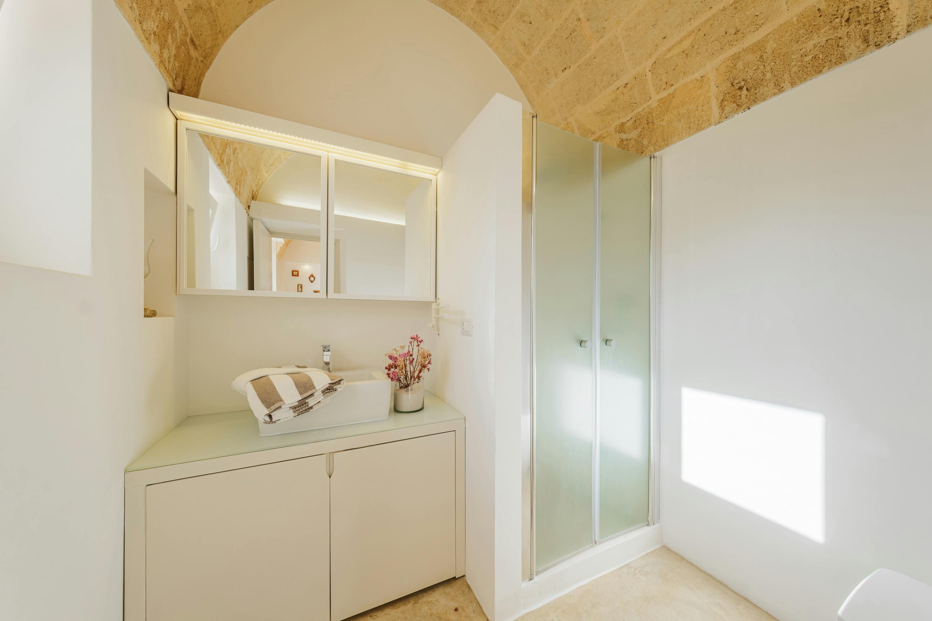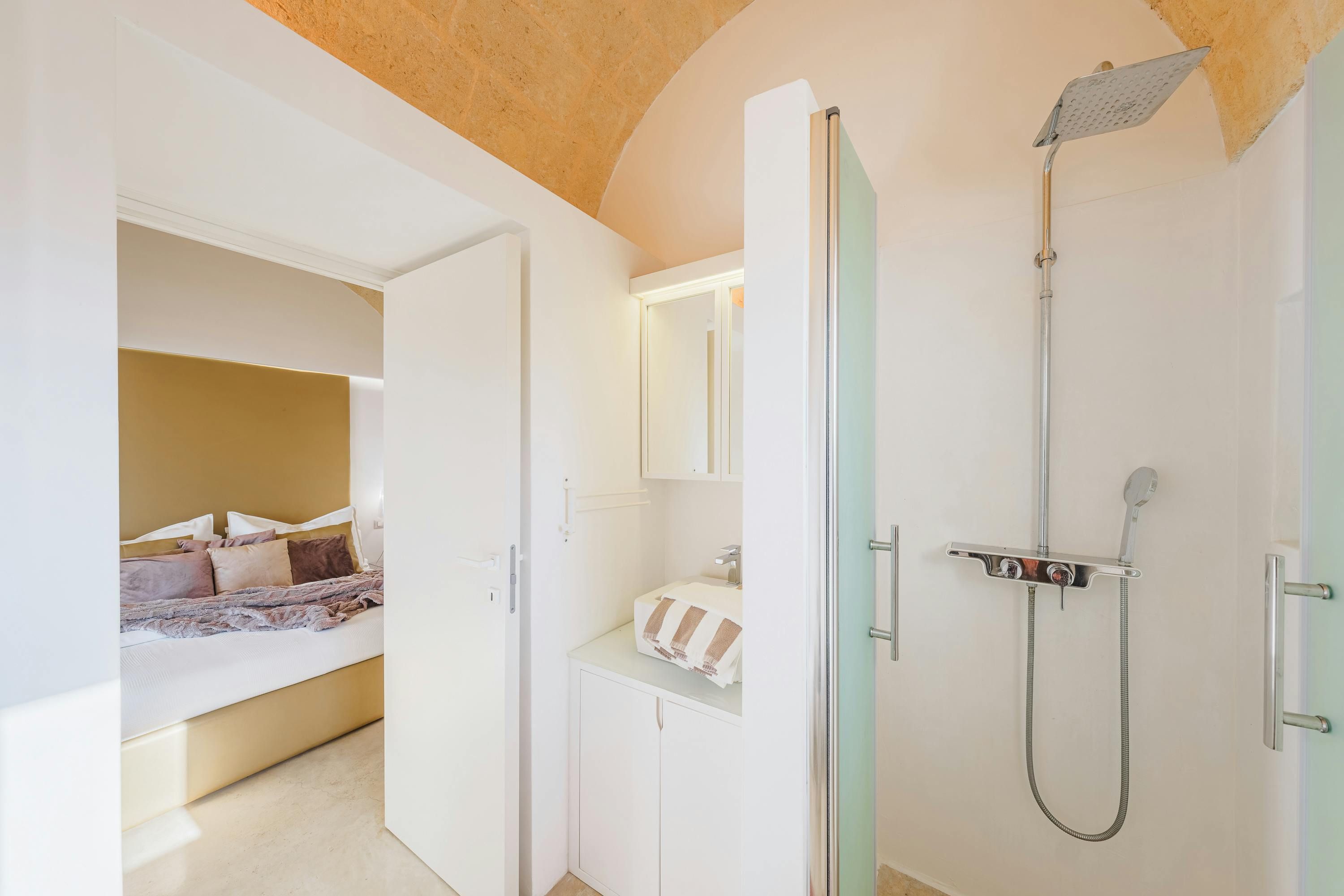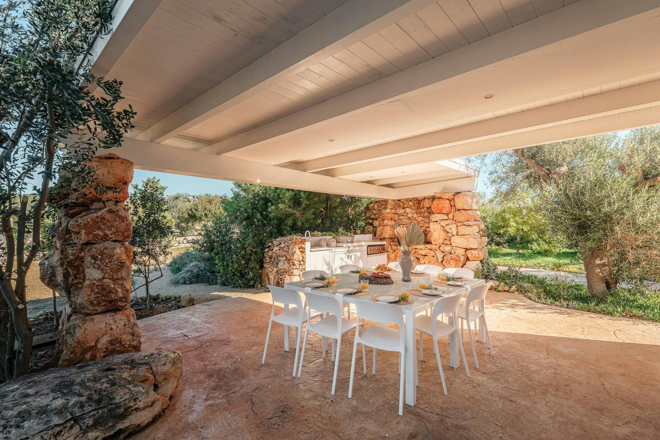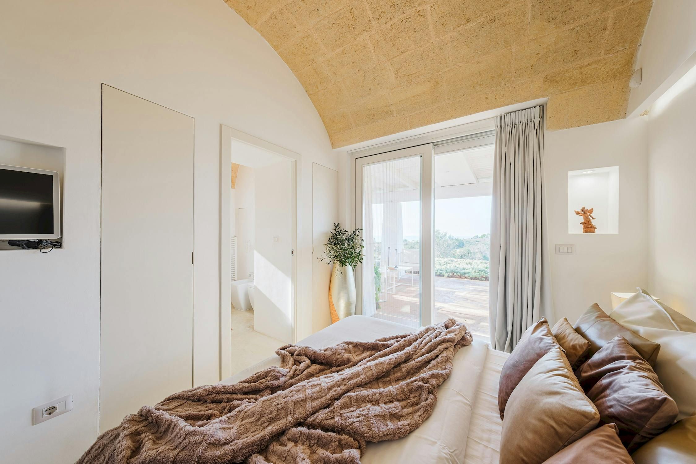 Minimalist and modern, this Santa Maria di Leuca home is ideal for an Italian getaway. You're never more than a short walk or drive from the sea, shops, and beaches. Even so, we can't blame you if you'd rather stay at home and enjoy the sun-kissed garden – and the sea views. Mornings call for alfresco breakfasts on the terrace, afternoons are best spent splashing in the swimming pool, and evenings end with a glass of Italian vino as the sun sets along the coast. It sounds like pure bliss to us.