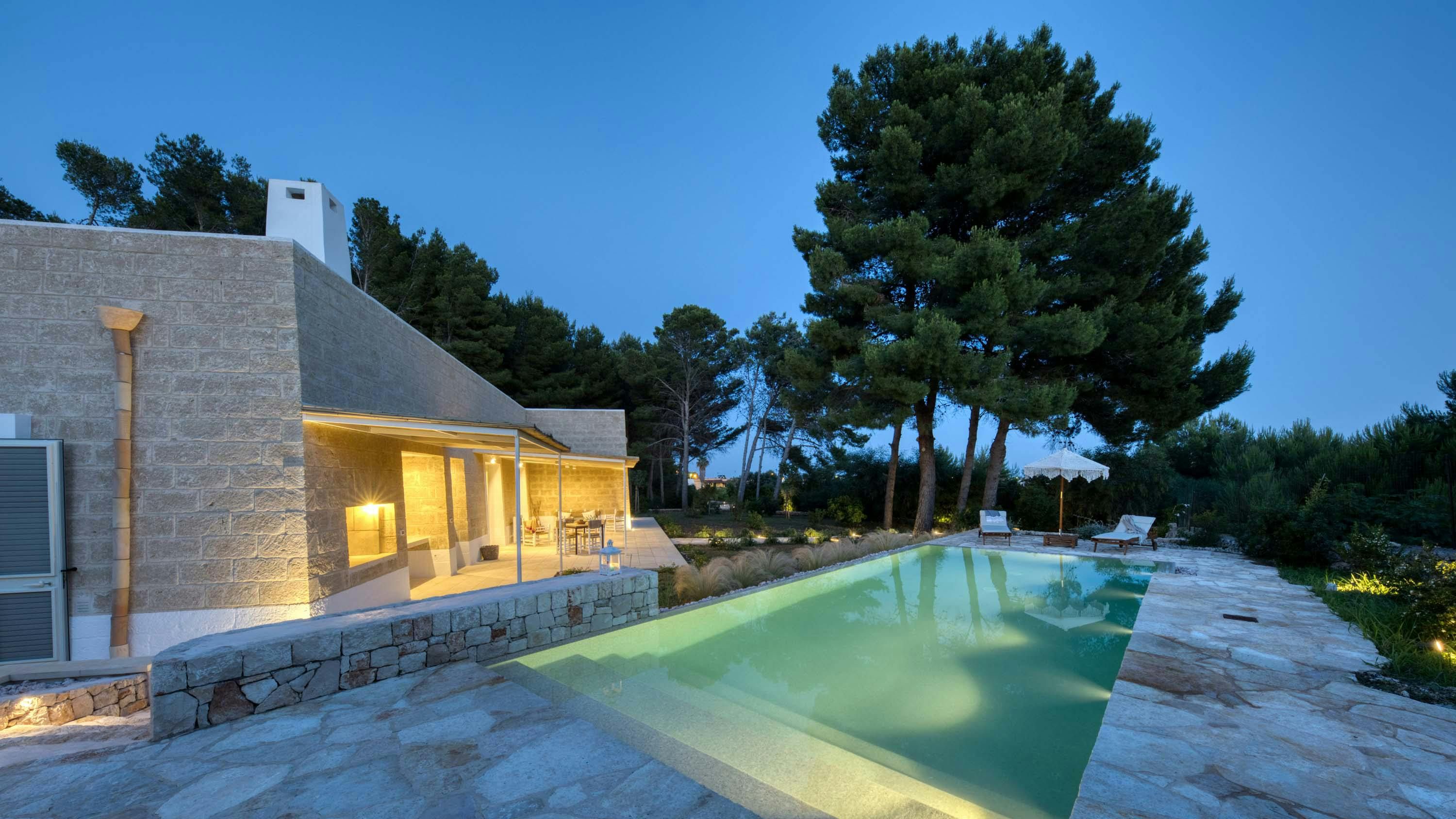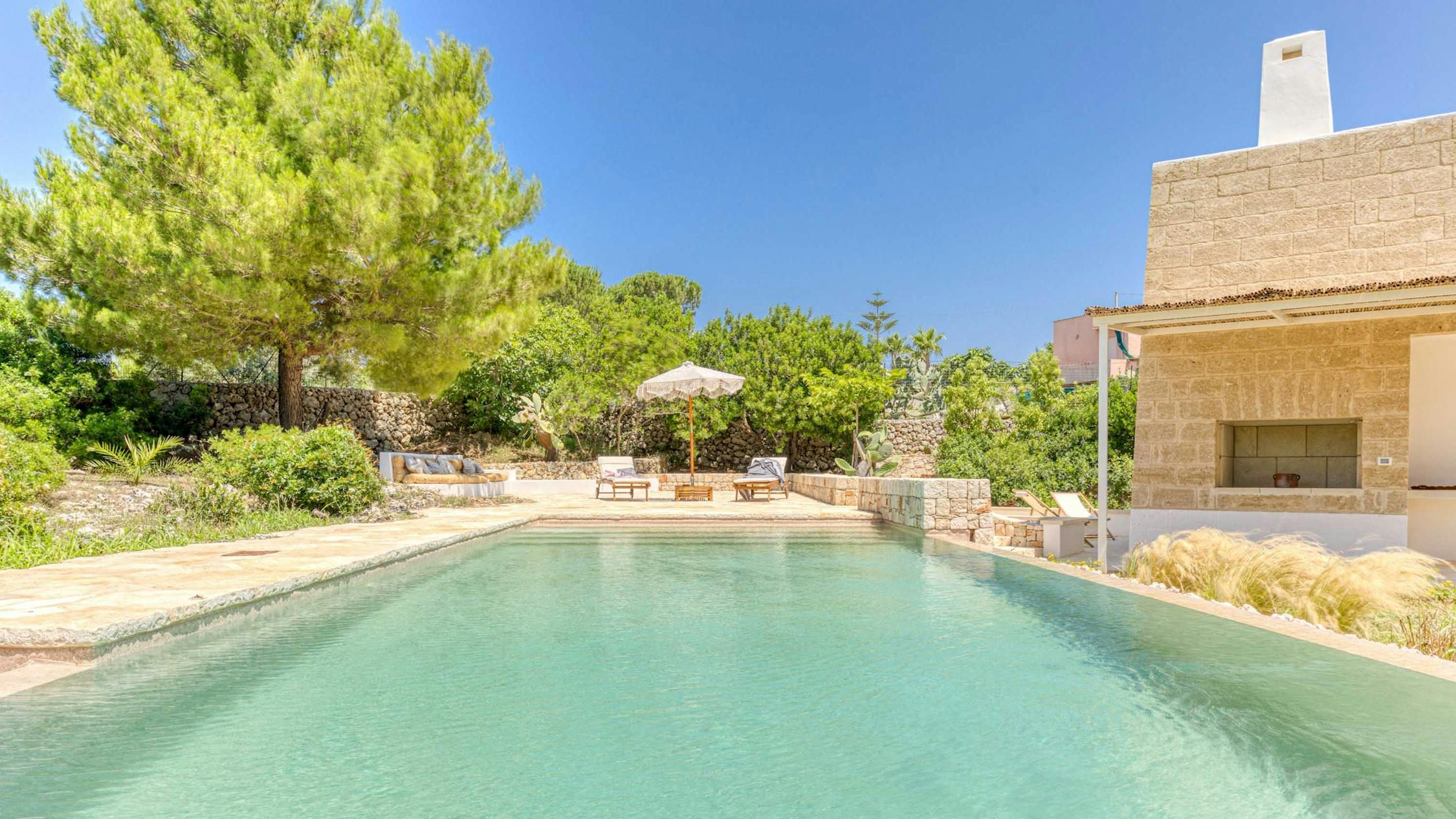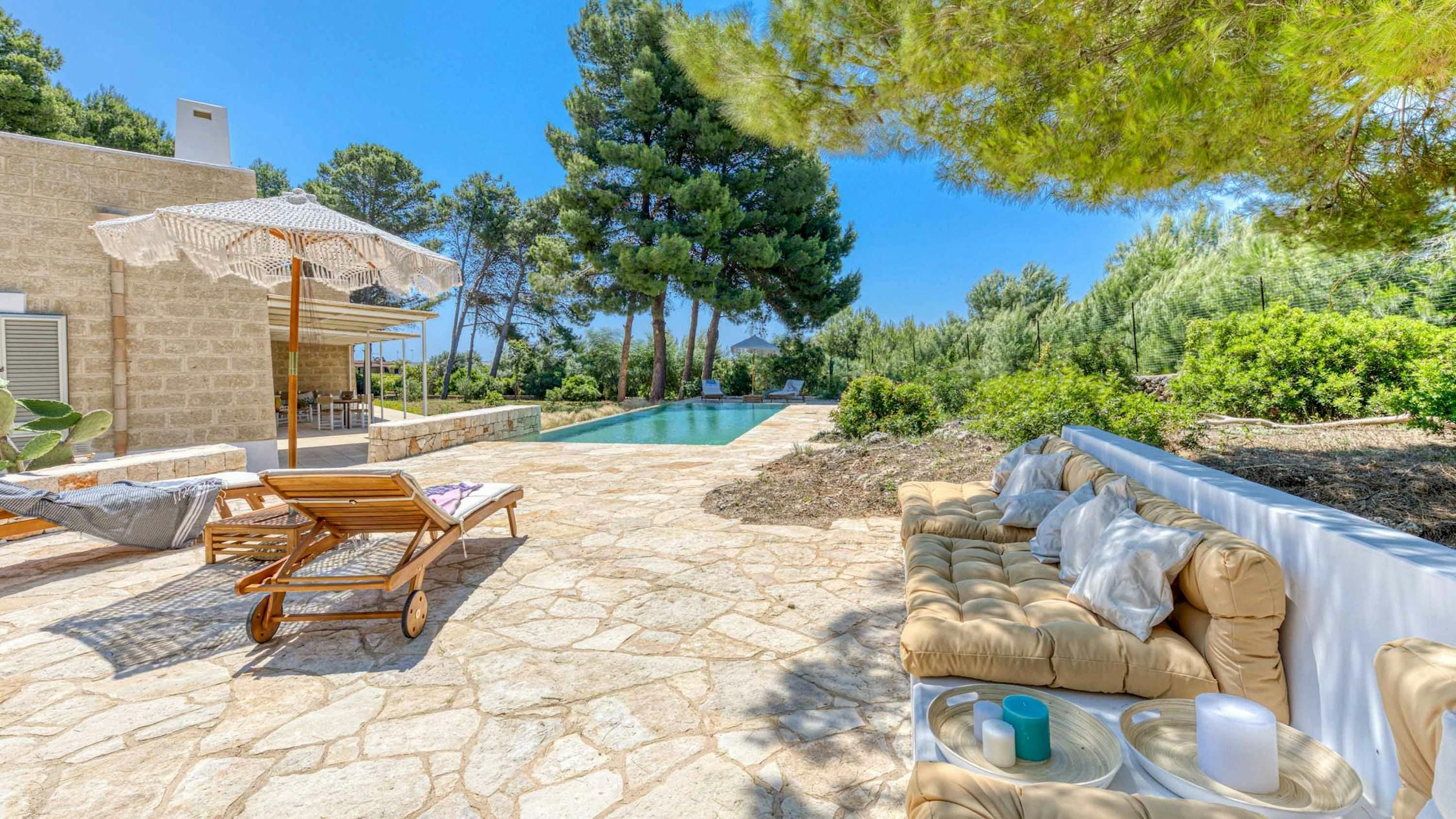 Immerse yourself in the beauty of Salento at this contemporary home. Just a short distance from the beach, you’re guaranteed a tranquil escape when you stay here. We love the open-plan layout indoors, which is bathed in natural light, while the serene bedrooms will have you resting easily at the end of a busy day. Outdoors, there’s a wooded area, covered terrace and a private pool – what’s not to love? If the scent of the sea tempts you away from home, make the short trip to Pescoluse beach. Dubbed the Maldives of Salento, it’s the perfect place to unwind.