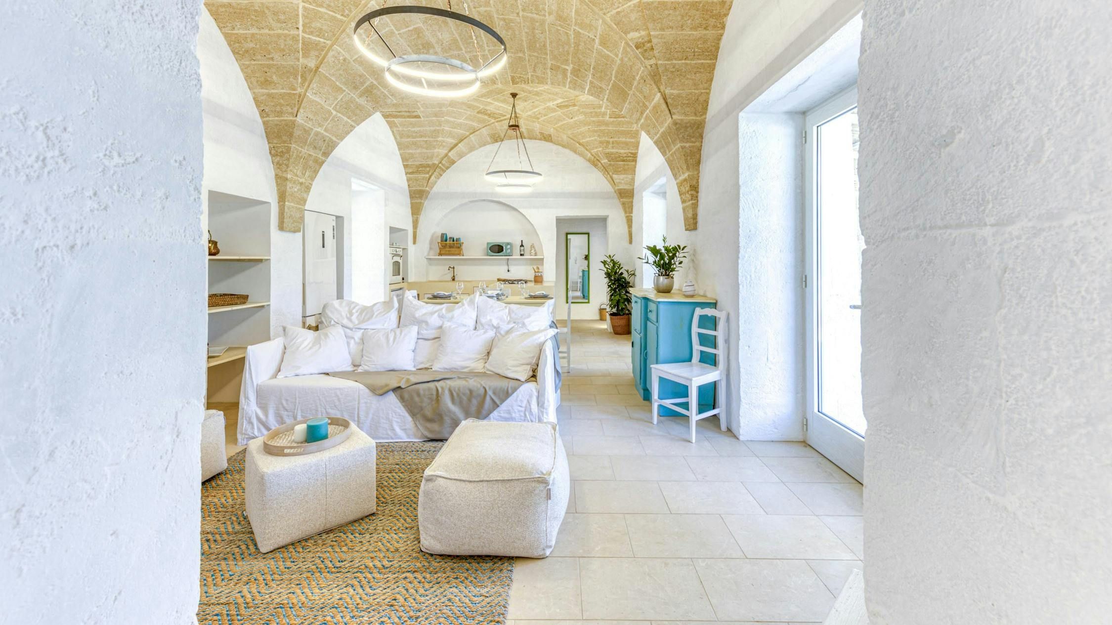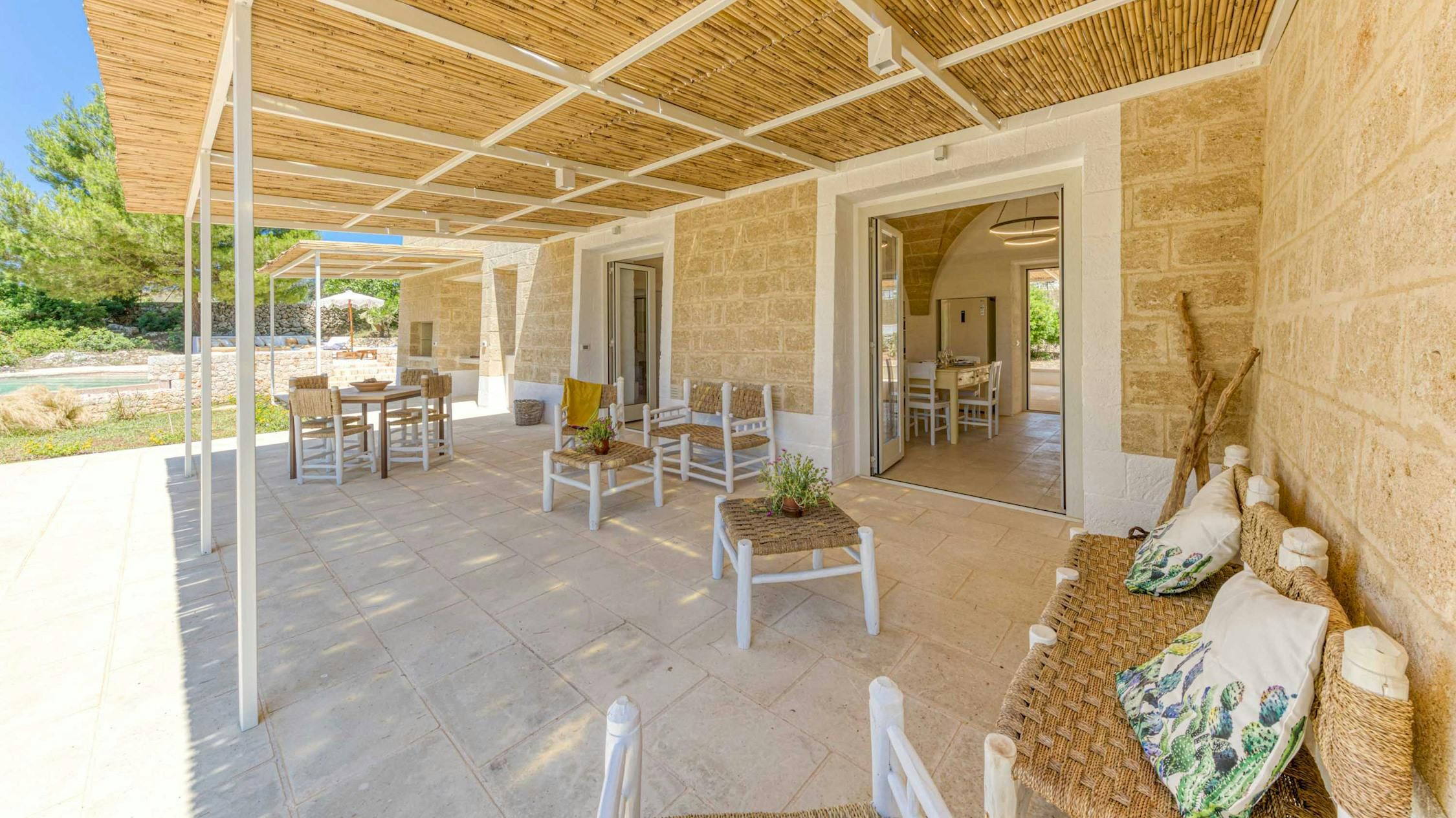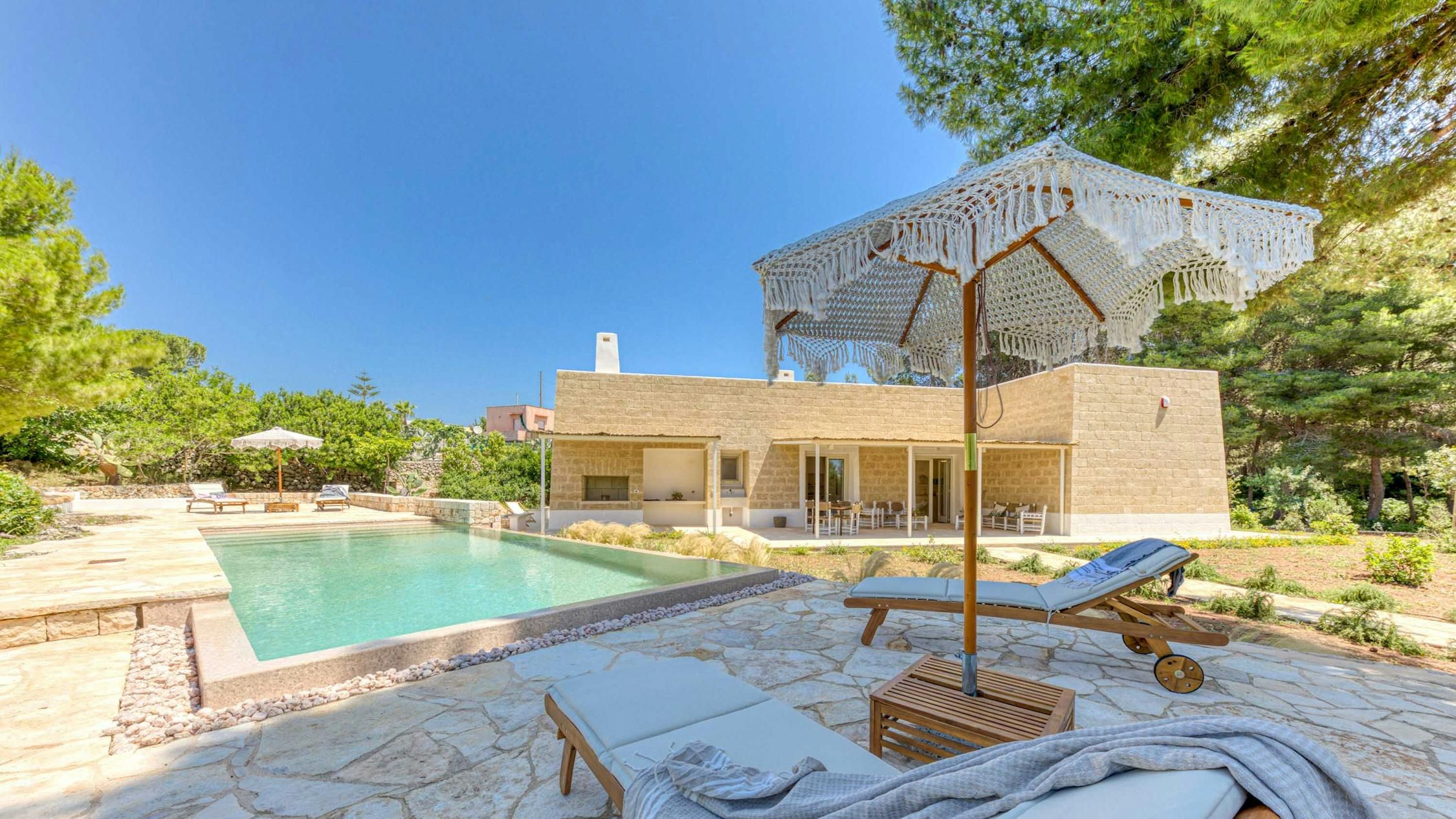 Immerse yourself in the beauty of Salento at this contemporary home. Just a short distance from the beach, you’re guaranteed a tranquil escape when you stay here. We love the open-plan layout indoors, which is bathed in natural light, while the serene bedrooms will have you resting easily at the end of a busy day. Outdoors, there’s a wooded area, covered terrace and a private pool – what’s not to love? If the scent of the sea tempts you away from home, make the short trip to Pescoluse beach. Dubbed the Maldives of Salento, it’s the perfect place to unwind.