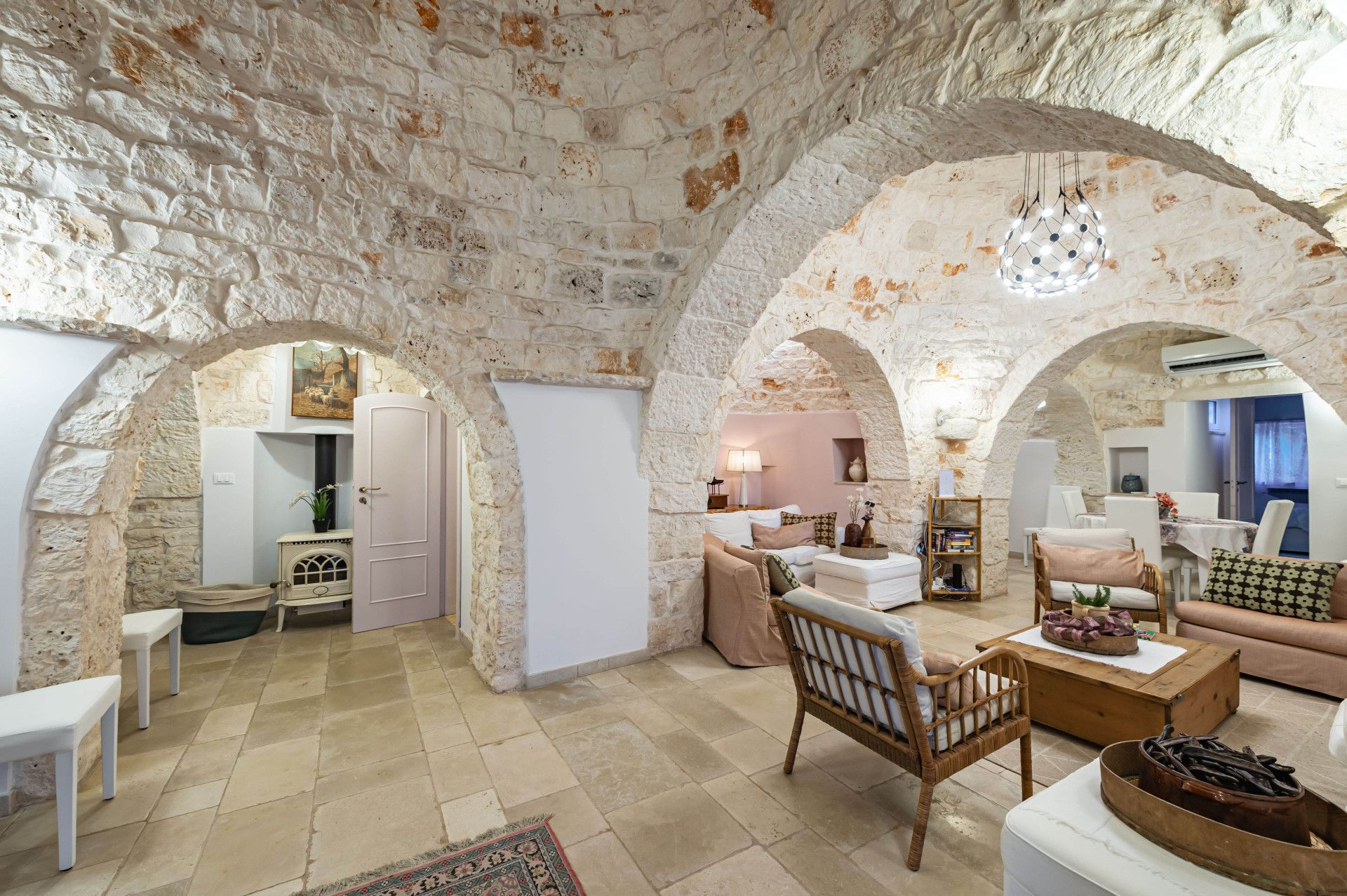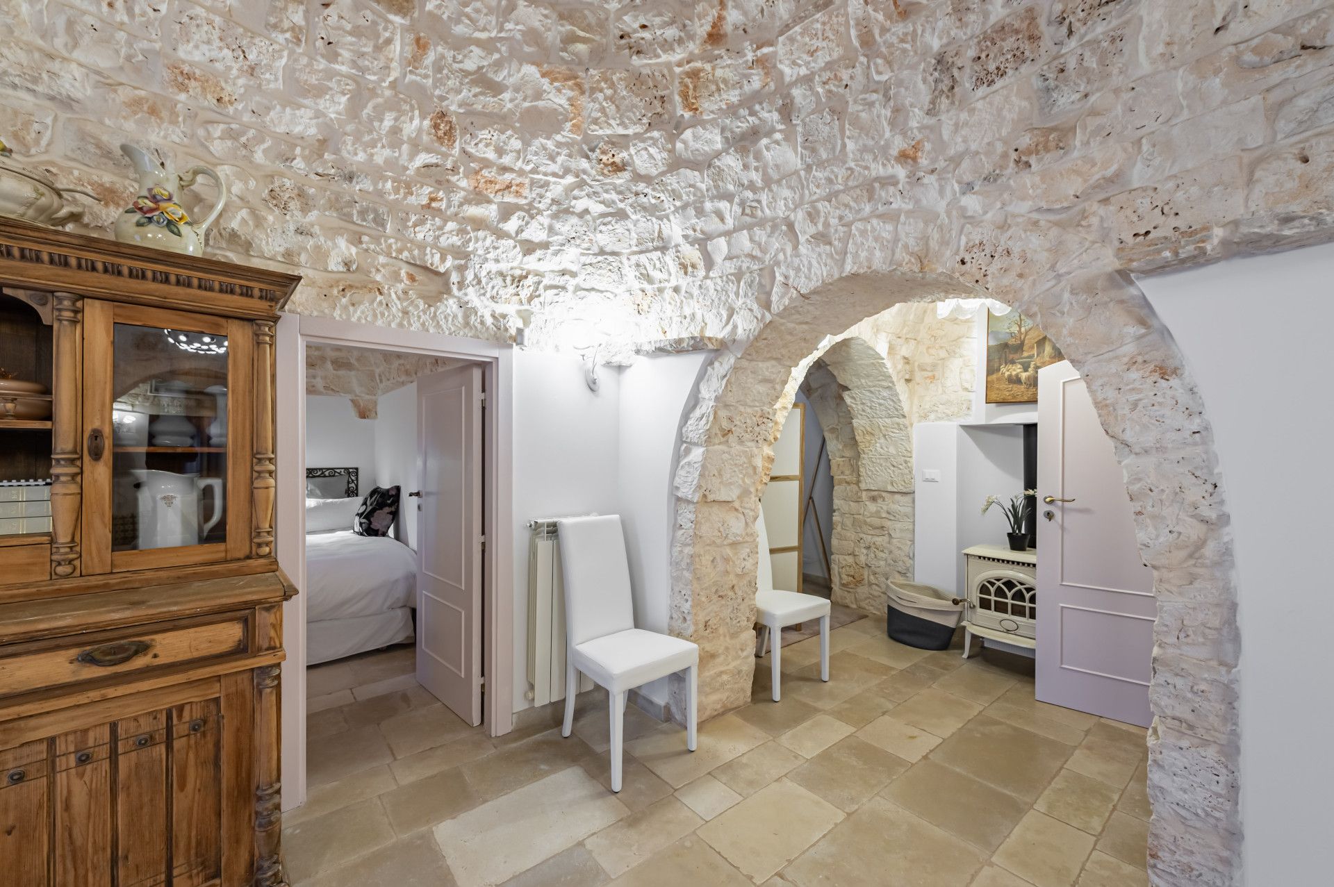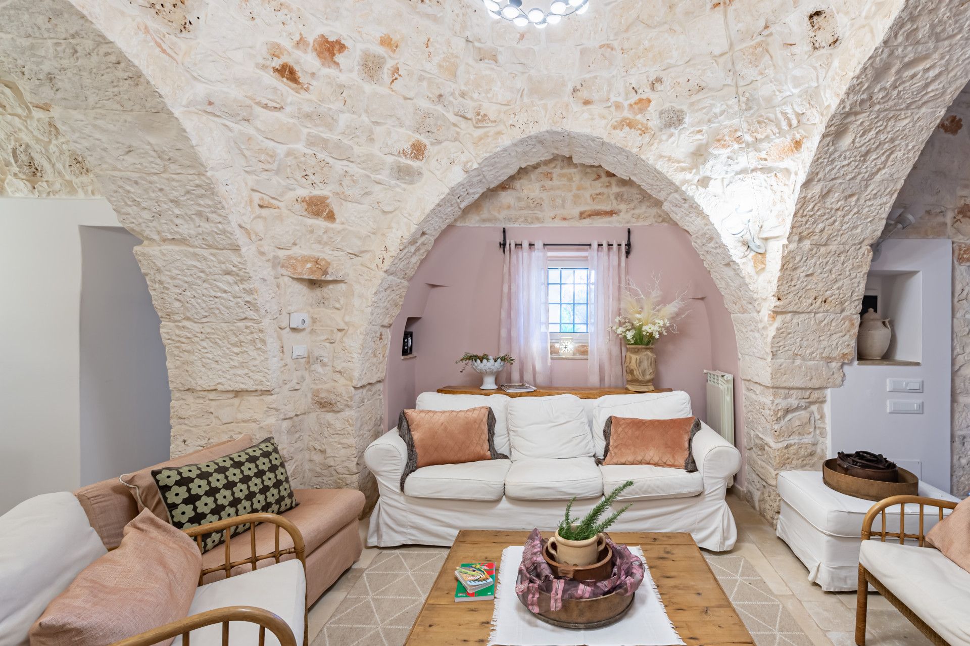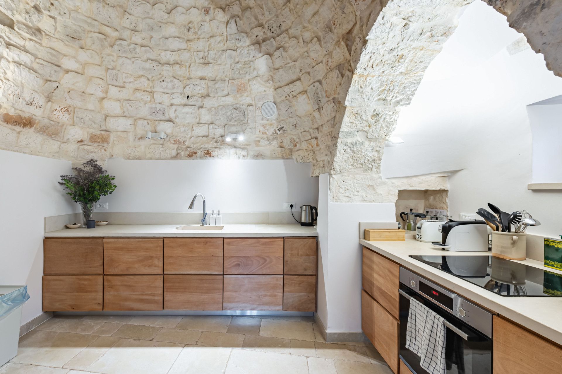Immerse yourself in the Apulian countryside from this charming trullo. The beautiful home is a fine example of traditional Apulian architecture, with a conical roof and pale stone. It sits in the countryside outside of Martina Franca, and is an easy drive to Alberobello, a UNESCO World Heritage Site, and the beaches of the Adriatic Coast. The history of the home has been preserved while incorporating modern comforts, so you can look forward to a cosy home-from-home, though one guest will sleep on a sofa bed in the living space. Outside, a veranda is ideal for alfresco dining. The outside space is shared with guests staying in the annex on the property.
