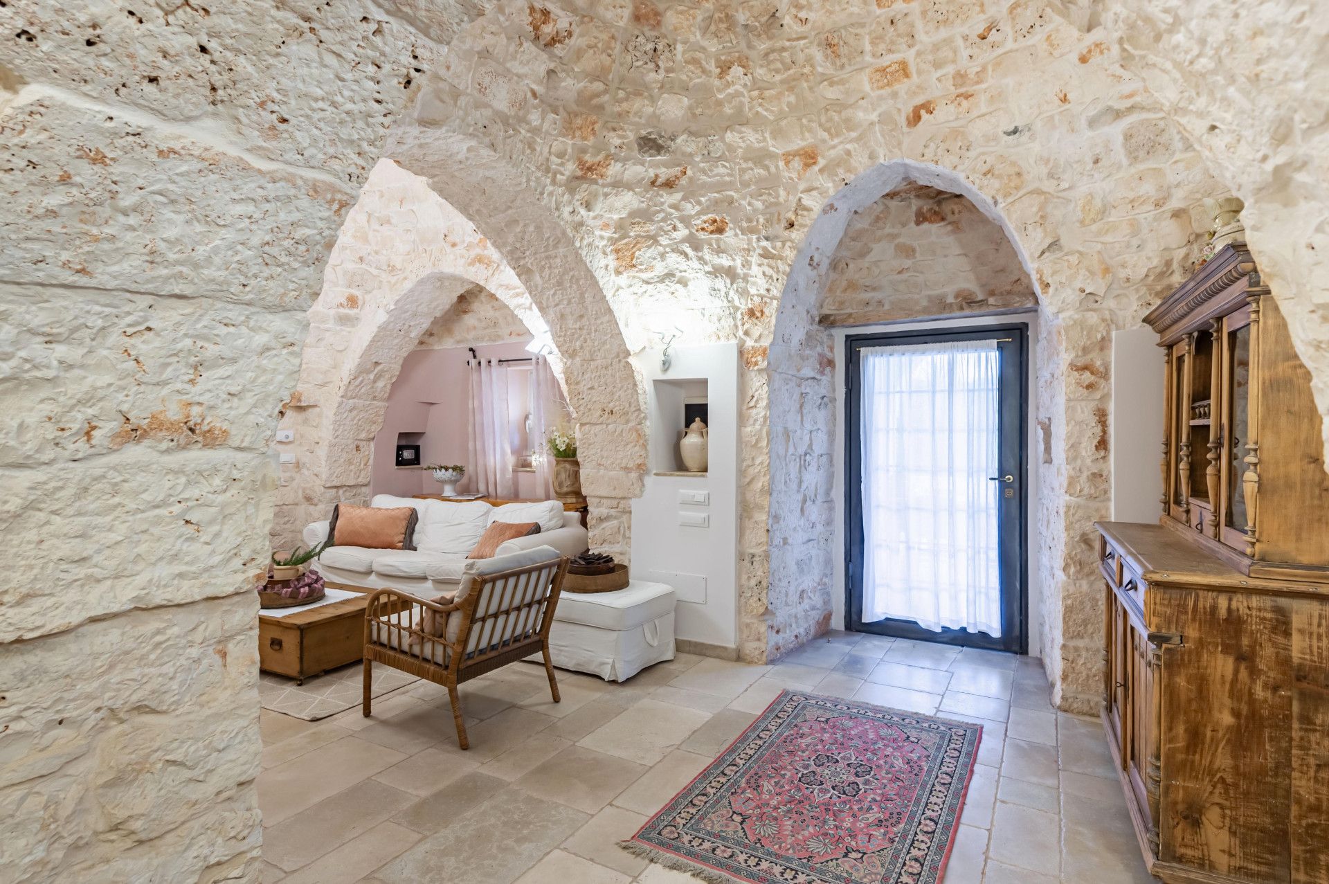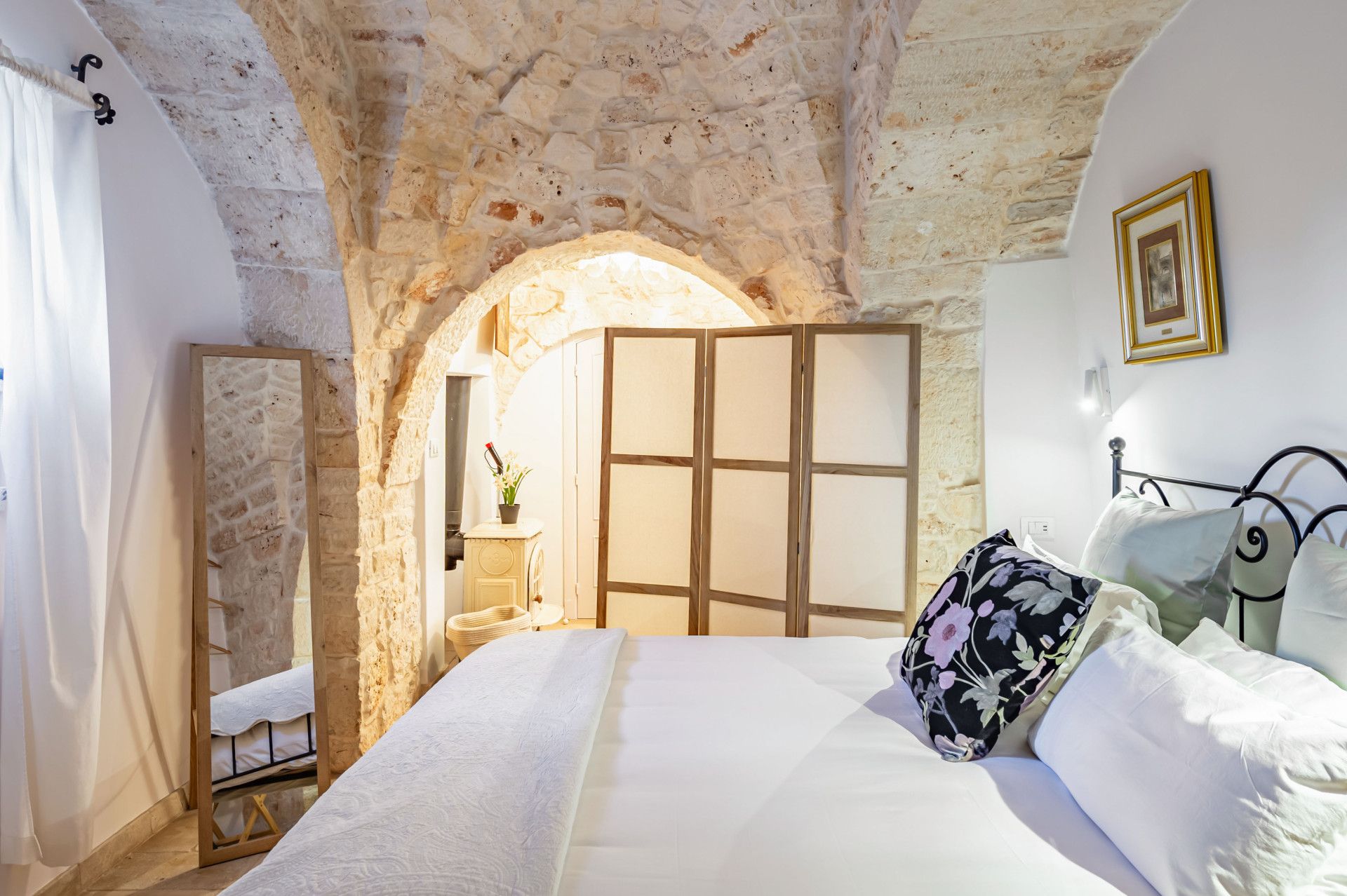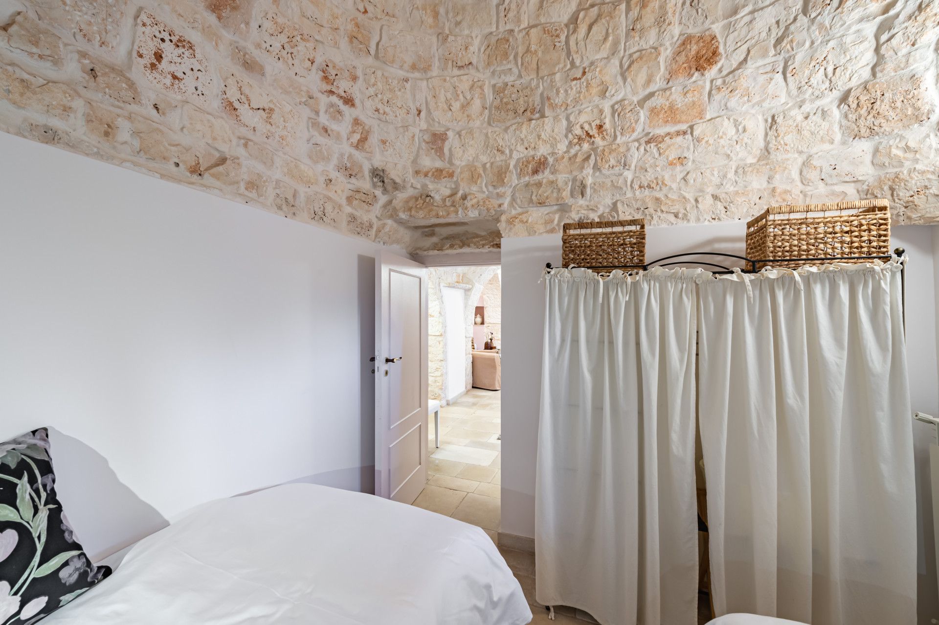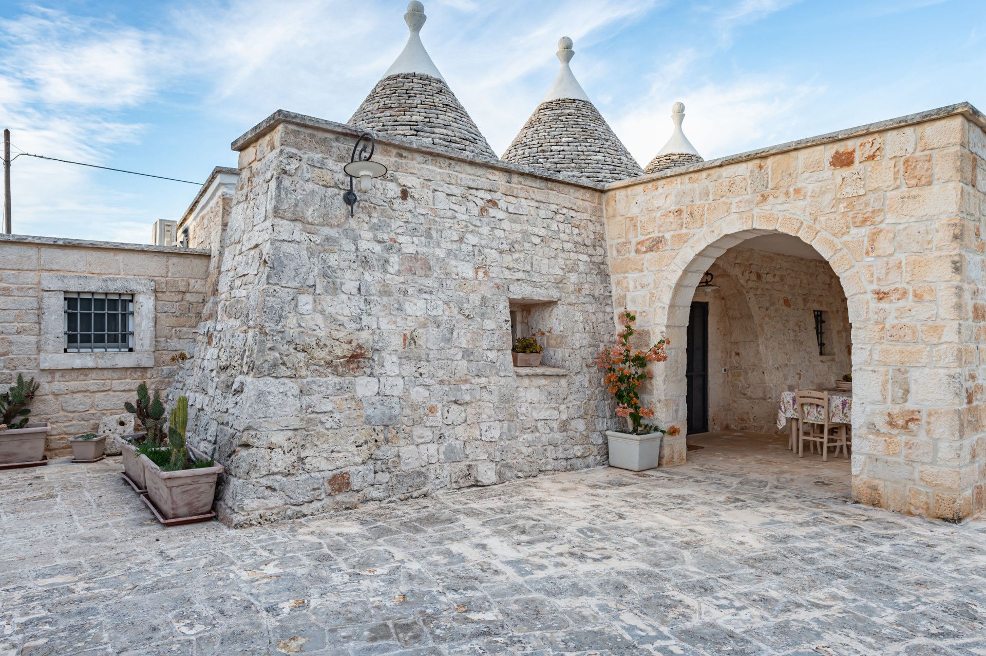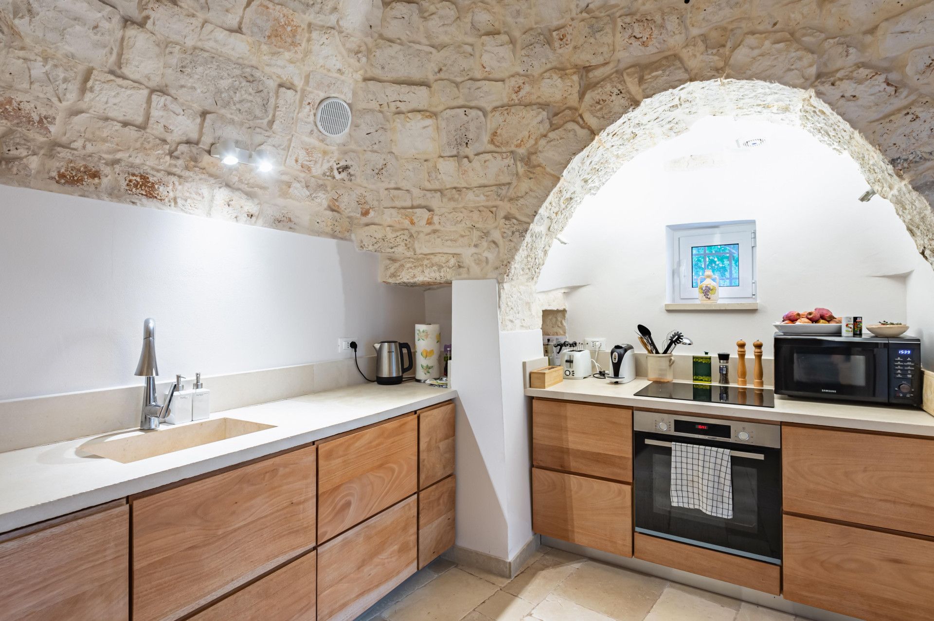Immerse yourself in the Apulian countryside from this charming trullo. The beautiful home is a fine example of traditional Apulian architecture, with a conical roof and pale stone. It sits in the countryside outside of Martina Franca, and is an easy drive to Alberobello, a UNESCO World Heritage Site, and the beaches of the Adriatic Coast. The history of the home has been preserved while incorporating modern comforts, so you can look forward to a cosy home-from-home, though one guest will sleep on a sofa bed in the living space. Outside, a veranda is ideal for alfresco dining. The outside space is shared with guests staying in the annex on the property.