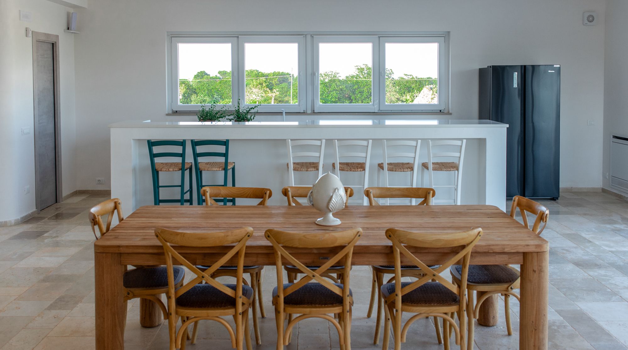 Looking to unwind? This modern and magazine-worthy Italian villa, complete with a private pool and indoor spa, is ideal for families or groups craving a peaceful escape. Located in the countryside and surrounded by trees, it's just thirty minutes from Taranto and an hour and a half from Bari. Shared meals are another highlight here, whether at the long indoor table or outside under the shaded pergola. Spend mornings by the pool, explore nearby villages in the afternoon – Locorotondo’s historic centre is well worth a visit – then wind down in the spa before lighting the barbecue and dining under the stars.