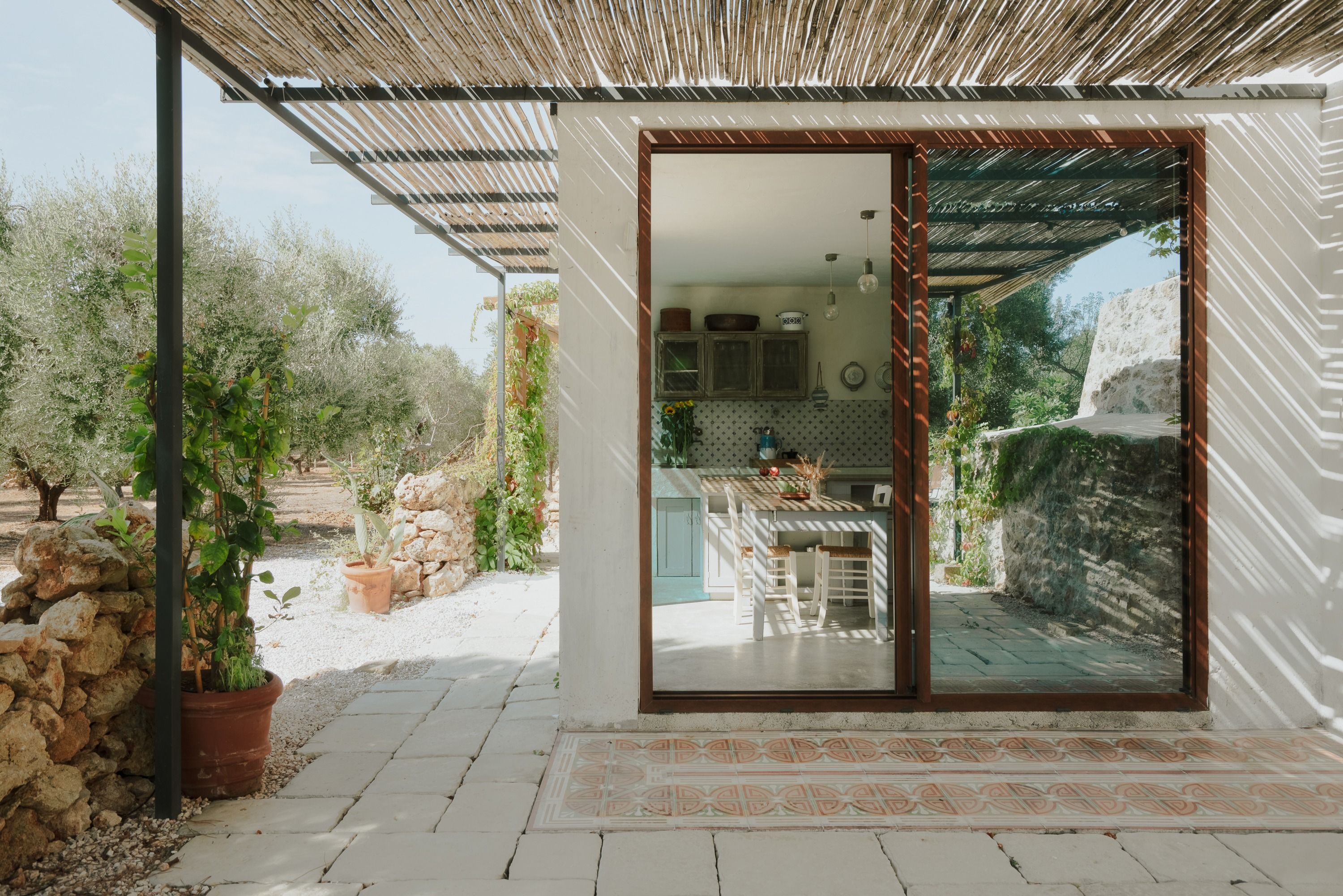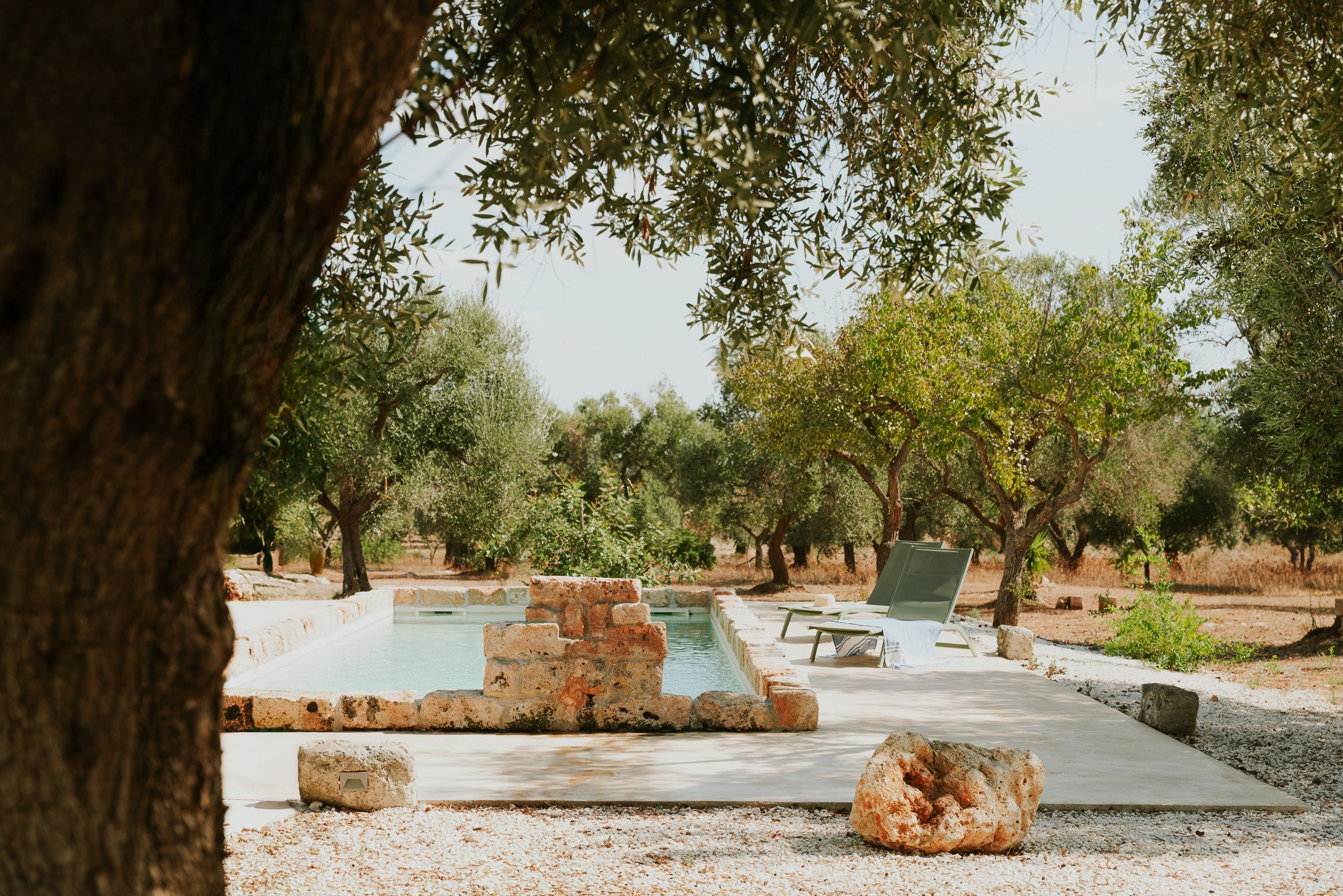 You're guaranteed a peaceful escape at this Puglian trullo. Surrounded by olive trees, the garden is a serene place to unwind, whether you're lounging by the pool or seated in the shade with an aperitif. Bring the outside in by sliding open the glass doors in the rustic kitchen – this also makes for seamless evening dining. All that glass is replaced by traditional stone in the living space and bedroom, where you can fall asleep under a traditional trullo conical roof. This part of Puglia is certainly off the tourist path, and when you're not relaxing at home, you can explore picturesque towns like Maruggio and unspoilt beaches along the coast.