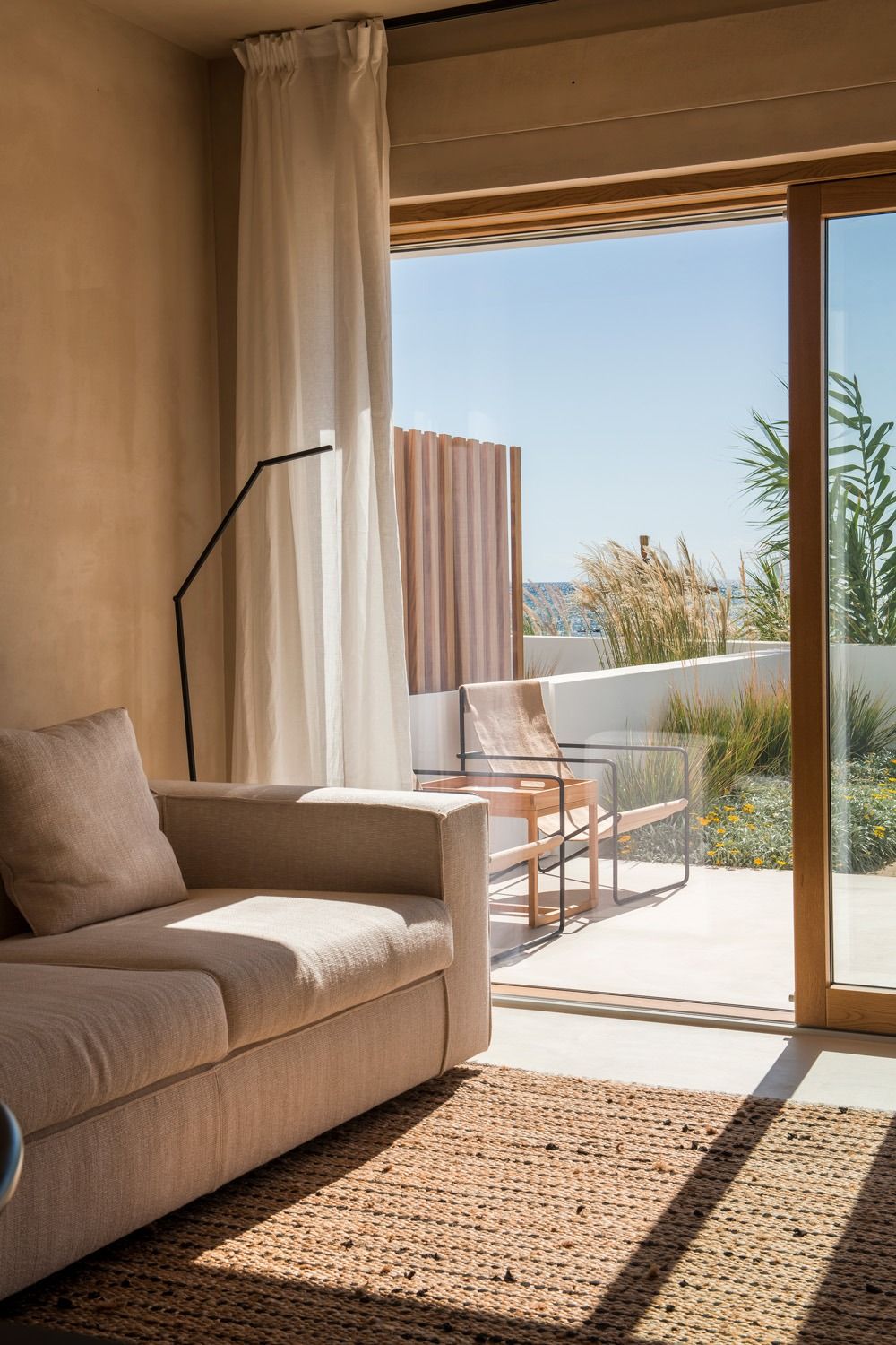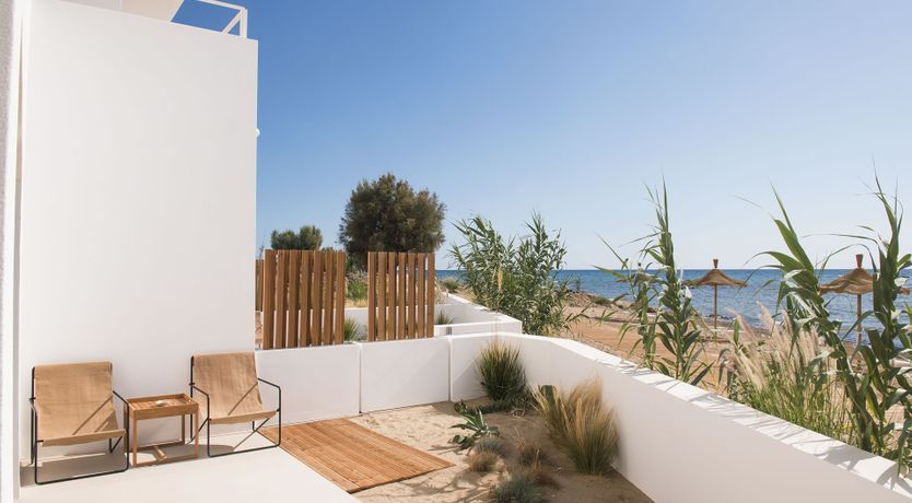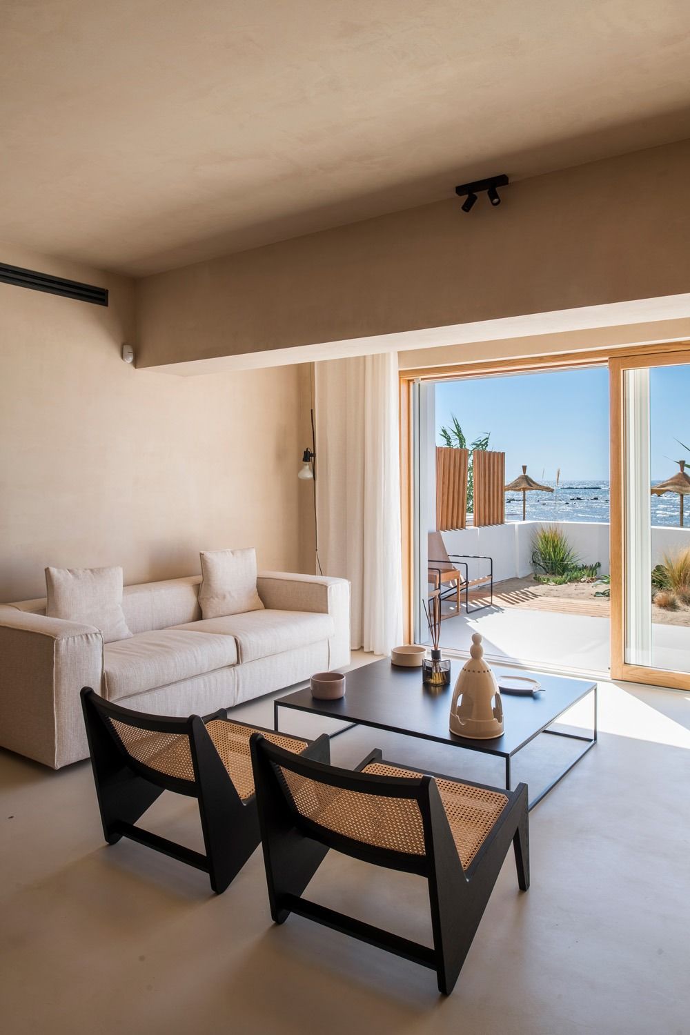 As beach holidays go, this home is hard to beat. It’s right on the sand, putting the seashore seconds from your door. The beach is private too, shared between this apartment and four others, so you’ll always find somewhere to stretch out (there are two sun loungers and a parasol for your exclusive use). Inside, the apartment has a relaxed, beachy vibe, with lots of natural tones and textures. It could feel a little compact when the sofa bed is set up. But let’s be realistic – you’ll be spending most of your time on the beach. Or on the communal terrace, which we love for sunbathing or sunset drinks.