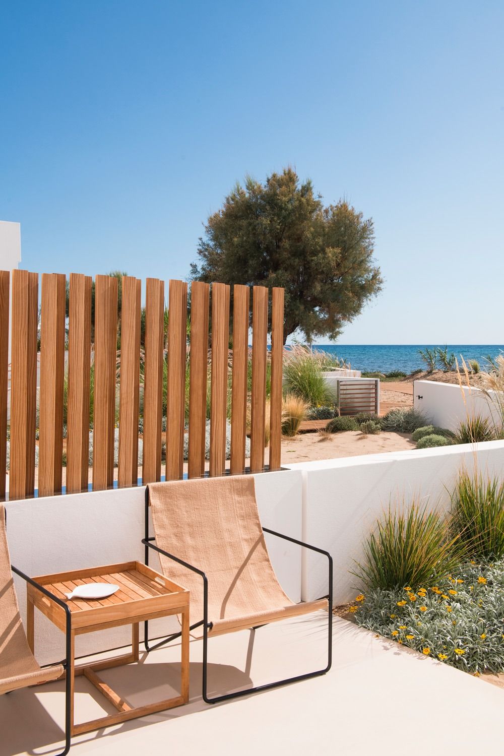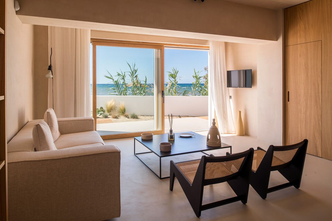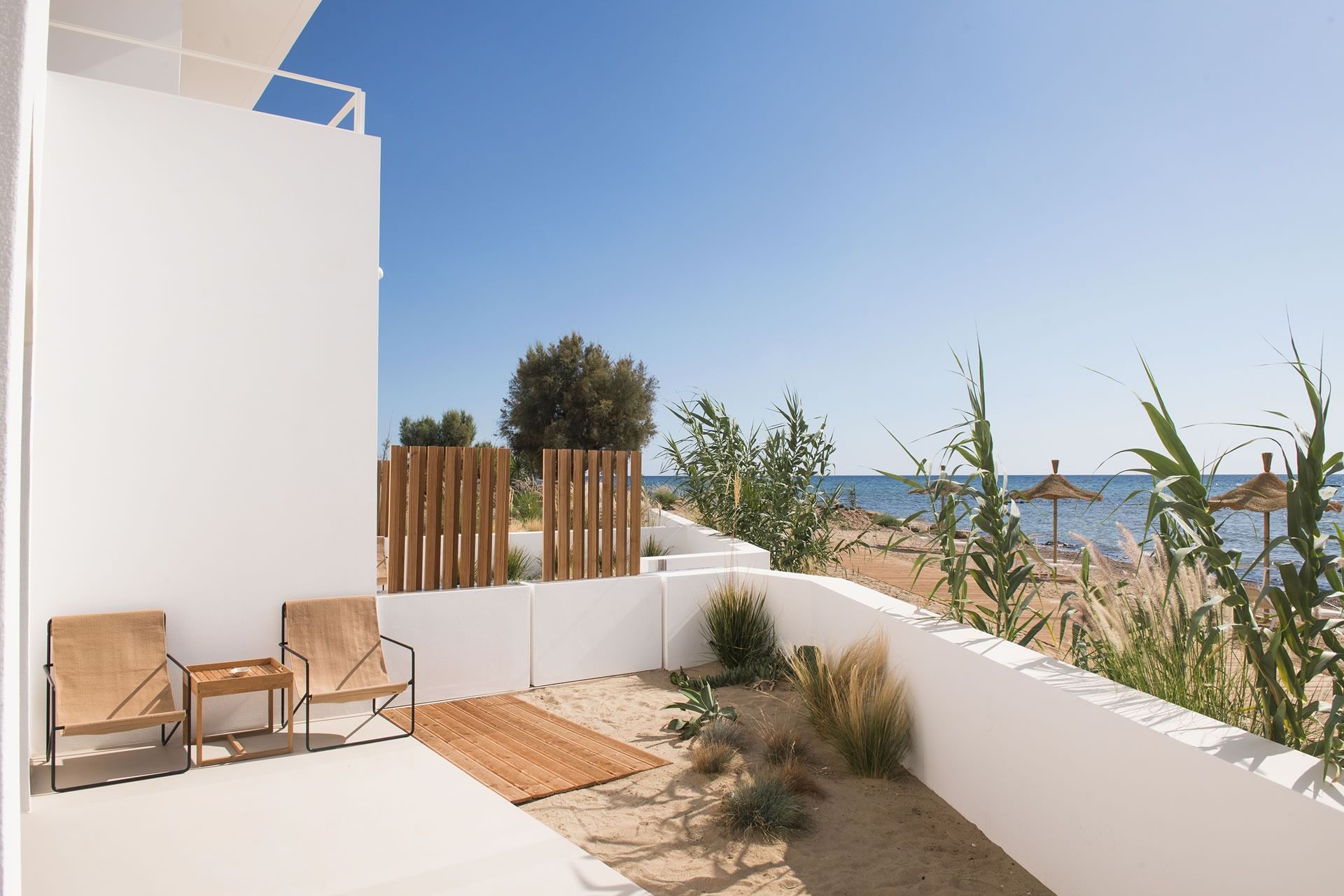 As beach holidays go, this home is hard to beat. It’s right on the sand, putting the seashore seconds from your door. The beach is private too, shared between this apartment and four others, so you’ll always find somewhere to stretch out (there are two sun loungers and a parasol for your exclusive use). Inside, the apartment has a relaxed, beachy vibe, with lots of natural tones and textures. It could feel a little compact when the sofa bed is set up. But let’s be realistic – you’ll be spending most of your time on the beach. Or on the communal terrace, which we love for sunbathing or sunset drinks.