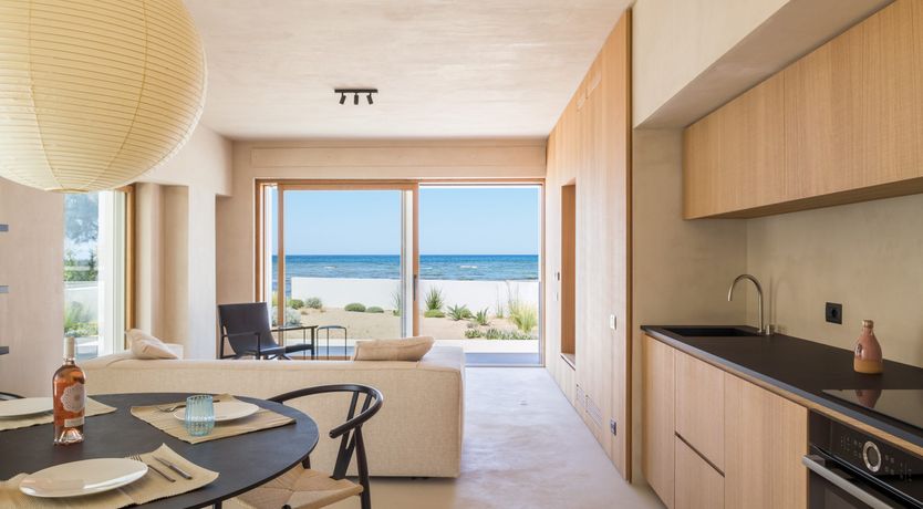 This home caught our eye for its beachfront location, just steps from the Ionian Sea. You’ll have your own private garden, which opens out onto a private beach – shared with the building’s other guests. With two dedicated loungers and a parasol, you won’t have to get up early to bag a good beach spot here. To make your holiday even more memorable, your host can help arrange treats, like a private chef to cook for you. And for days out, the coastal town of Taranto is a thirty-six-minute drive away. It’s worth noting that the only bathroom here is an en-suite, accessed via the bedroom. With that in mind, we think this home is best suited to a couple or a family.