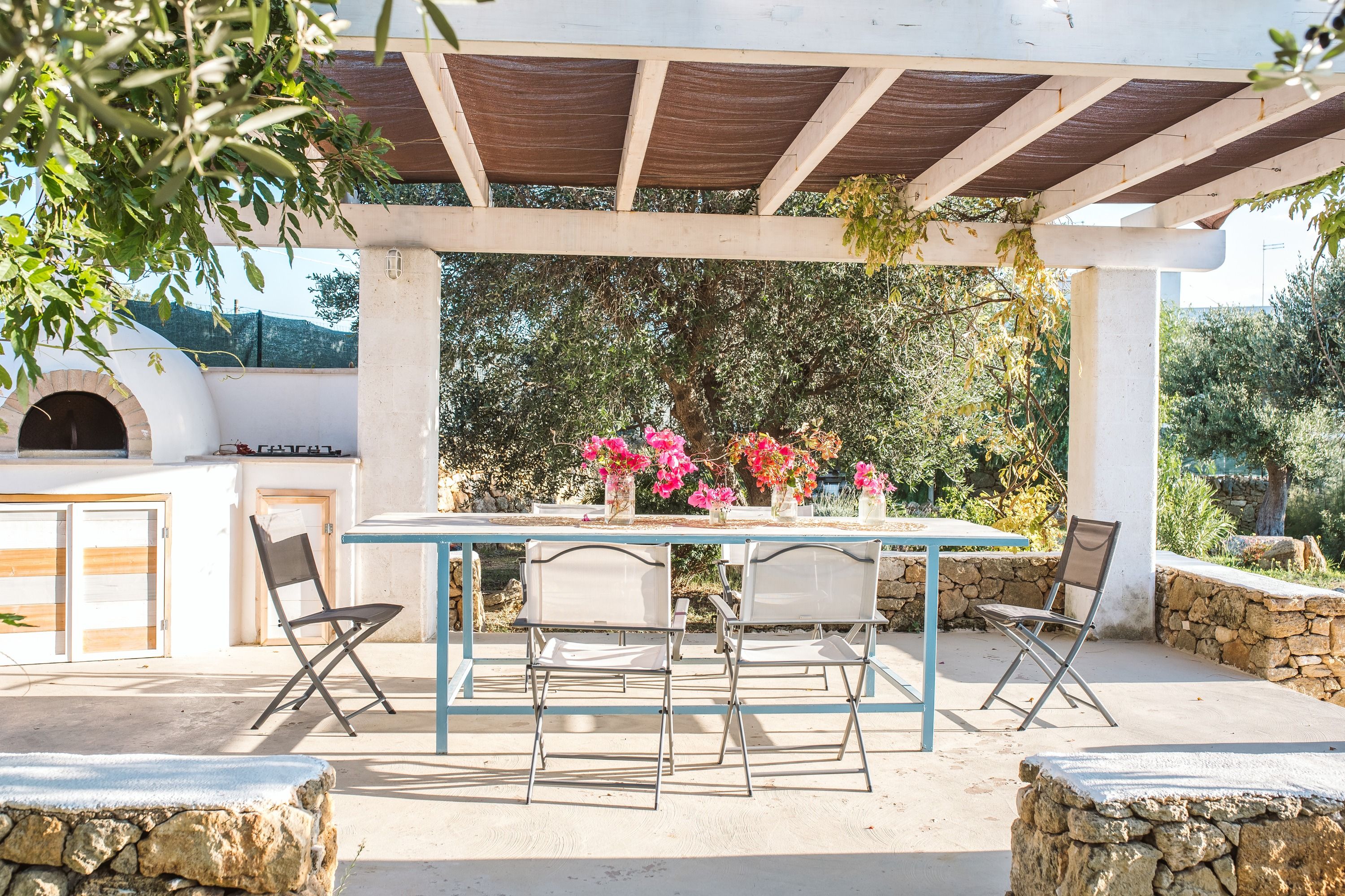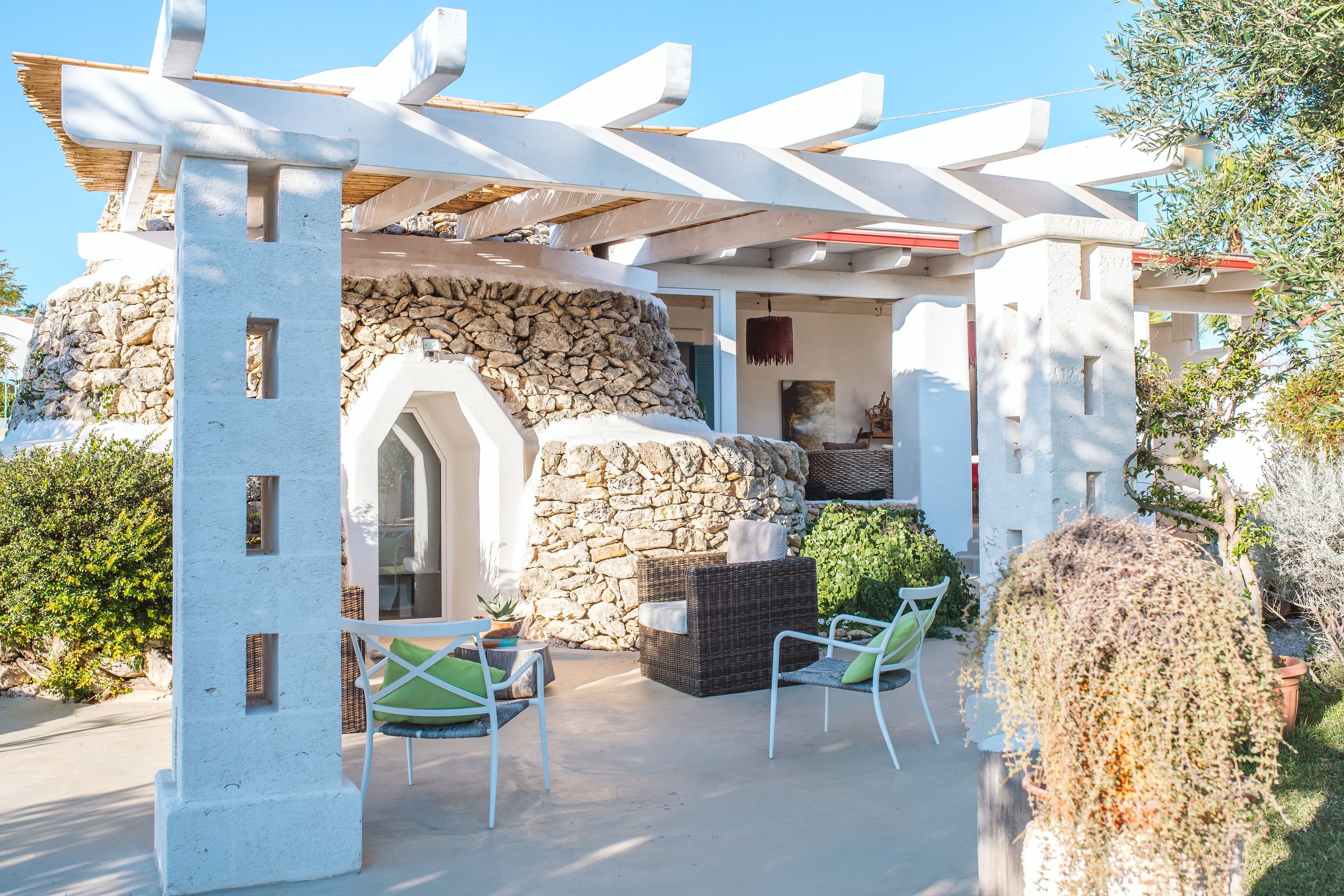 Just a few minutes stroll from the beach, this home opens its doors to a laidback coastal getaway. Surrounded by olive trees, the garden sets the tone for slow days relaxing by the pool. There’s also a wood-burning oven and a barbecue for alfresco dining and you’ll have a ping pong table for family fun. Inside, the rooms are set across the main house and the independent trullo – perfect for those seeking a little extra privacy. And when it comes to explorations further afield, it’s just a short drive to the village of Torricella, while Taranto and Porto Cesareo are also within easy driving distance.
