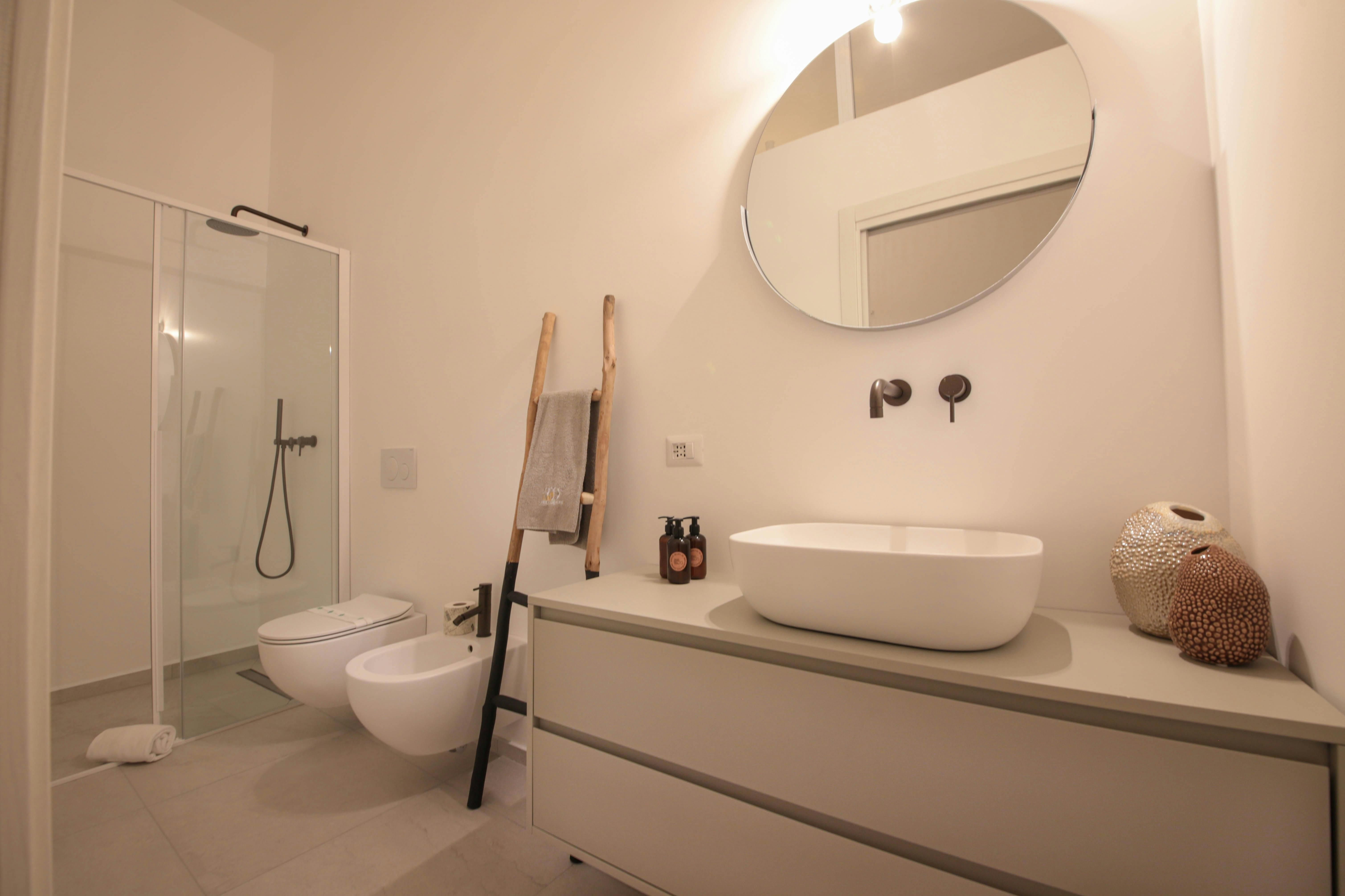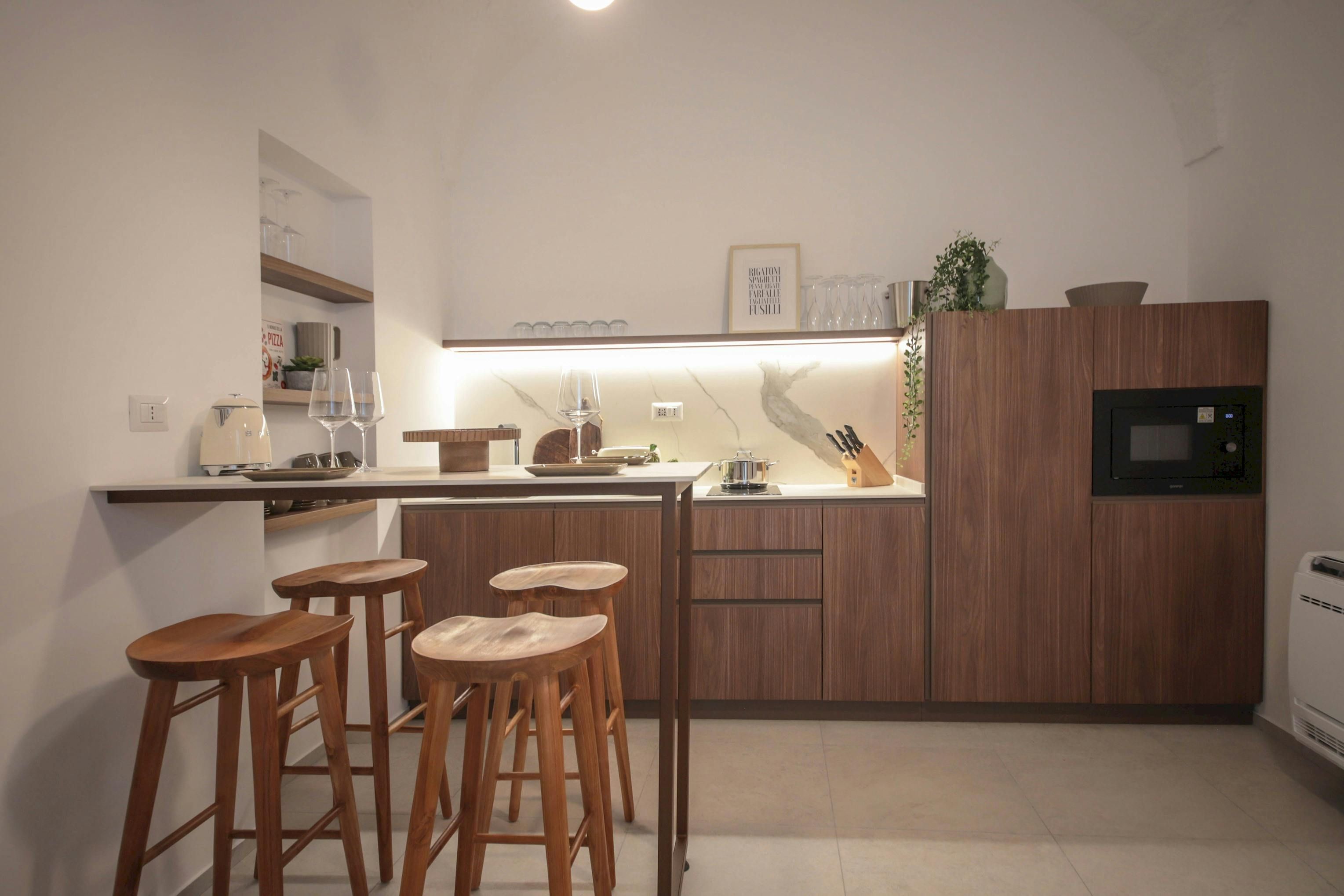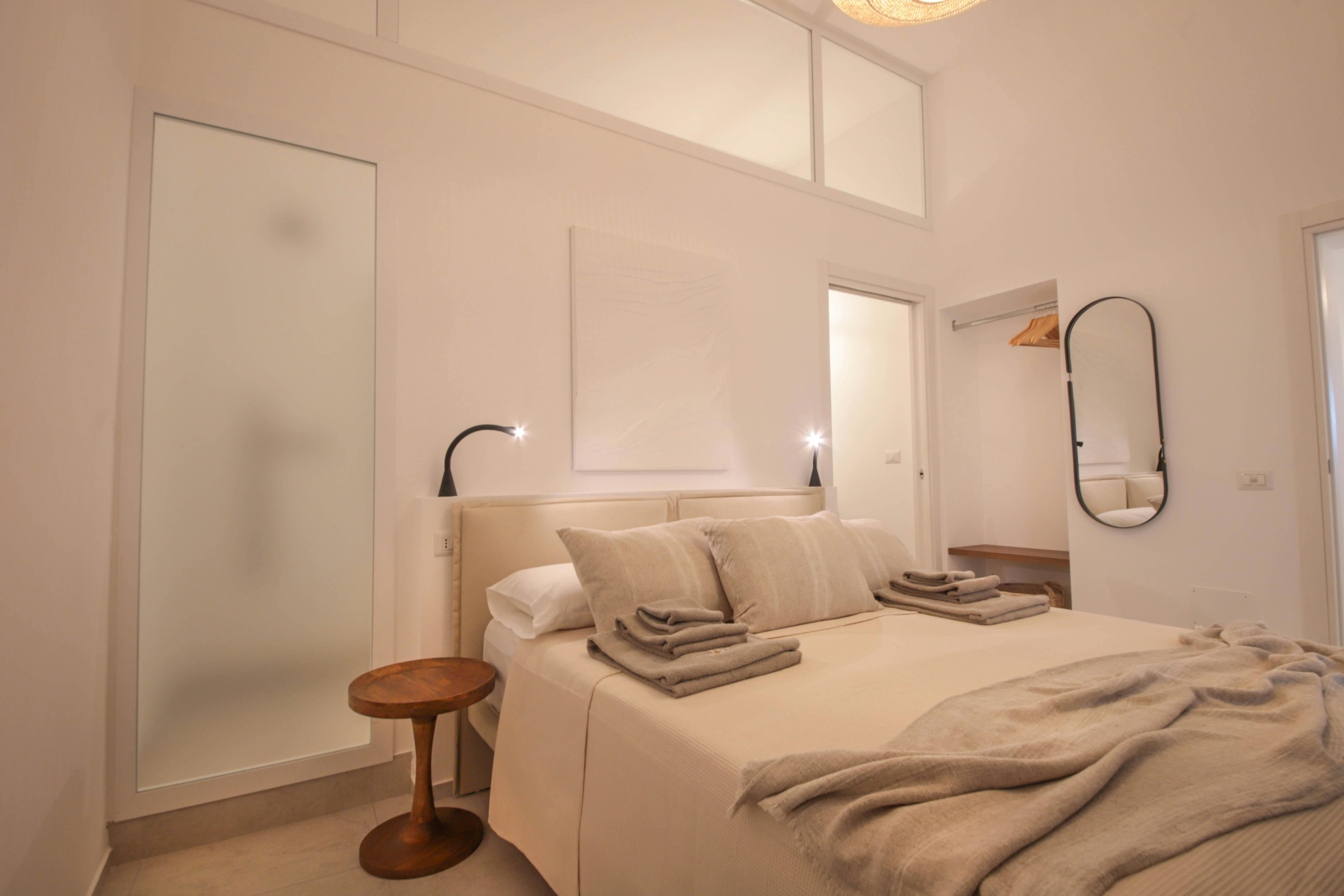 Housed in a former fishermen's building, this apartment is located in the heart of Monopoli, just steps away from the historic centre and the picturesque harbour. The apartment’s living room, off the well-equipped kitchen, sleeps two guests on a sofa bed at full capacity. Both the living area and the bedroom have a small balcony overlooking the street, while on the top floor, there’s a communal rooftop terrace with a 360-degree view of the harbour, lighthouse and the town’s rooftops.