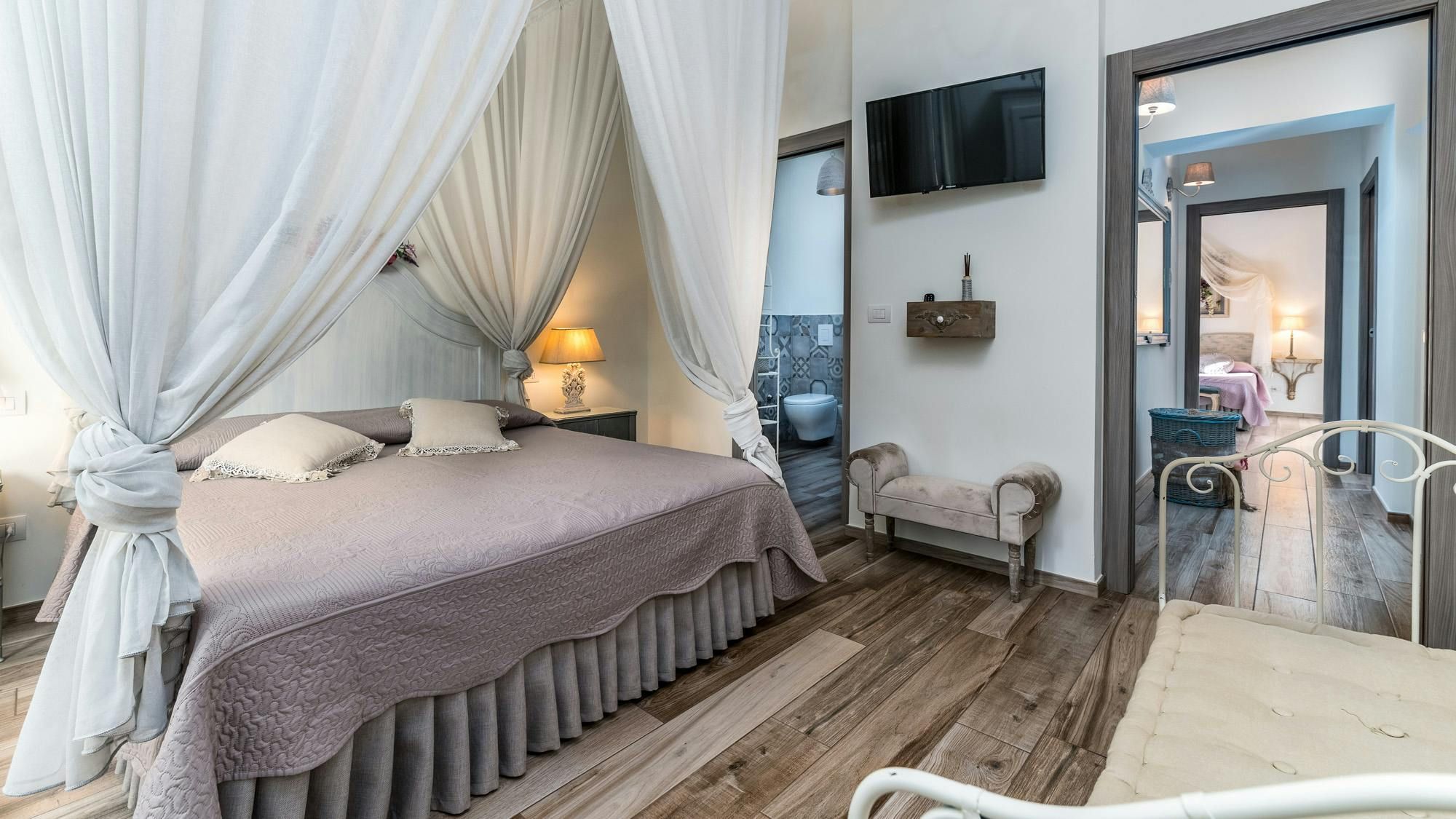 Tucked between the countryside and the stunning Puglian coast, this home offers the best of both worlds. Set off by car and explore the UNESCO-listed Valle d'Itria, or dive East towards Monopoli and Polignano a Mare for a day by the sea. During downtime, make yourself comfortable back home. Keen cooks will have three kitchens at their disposal here, including one outdoors ideal for barbecues. The swimming pool (which can be heated for a fee) will entice you for an afternoon dip, while the covered terrace makes a sweet spot for sundowners. With four en-suite bedrooms, including a sprawling main suite on the top floor, we think it's the perfect family pad.