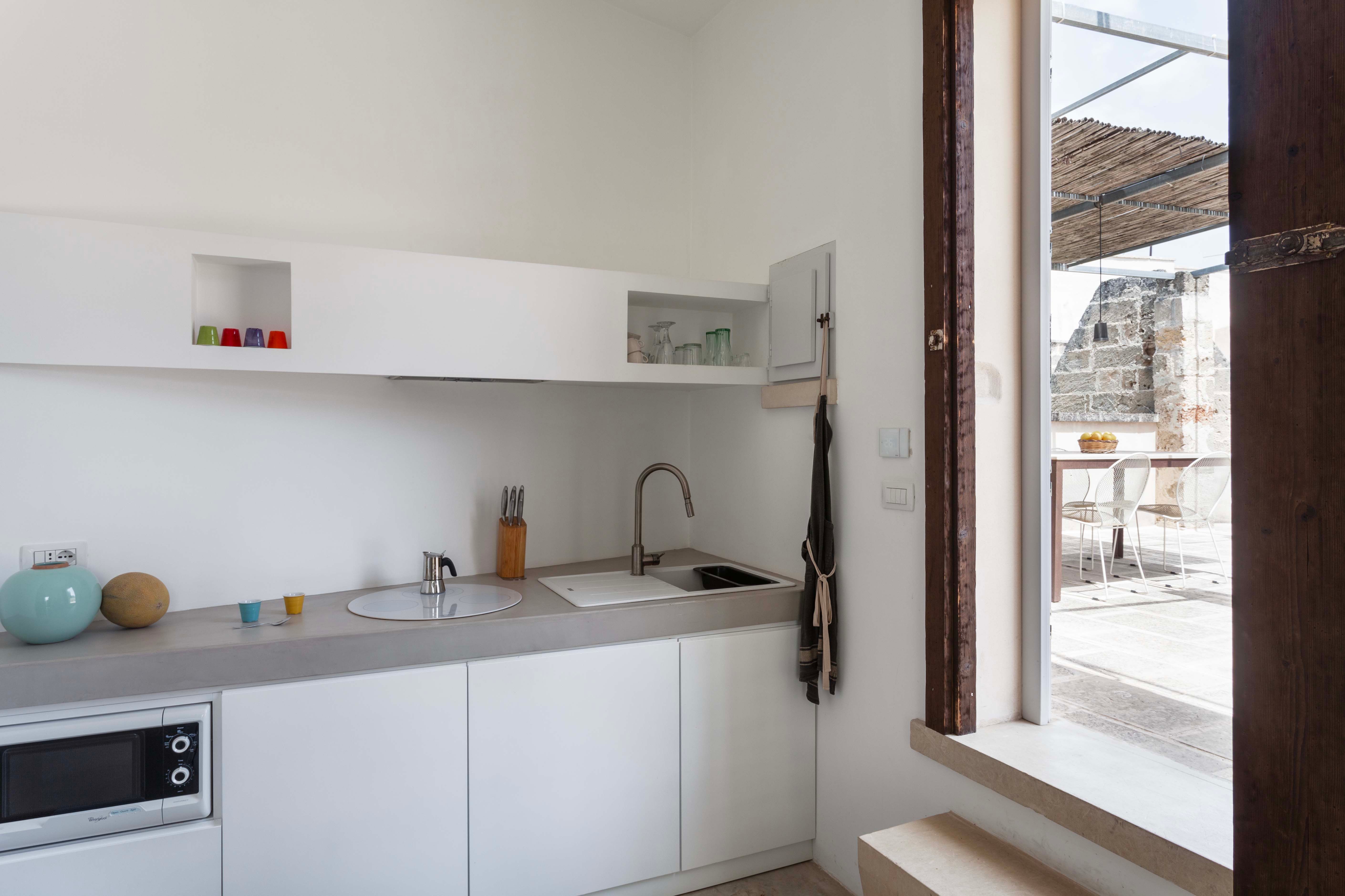 Tucked among fragrant citrus gardens in the Baroque town of Nardò, this 17th-century home blends original architecture with modern comfort. You're just moments from the lively Piazza Salandra and a host of excellent restaurants, bars, and cafes. Inside, vaulted ceilings, antique tiles, and airy spaces create a relaxed, elegant atmosphere. One bedroom even has its own additional kitchen for extra independence. Outside, leafy terraces, shady nooks, and a small saltwater pool with a jacuzzi invite you to unwind. The outdoor spaces are spread across different levels, so there are a few steps to climb – but the views of the town are worth it. With food, culture, and sunshine all around you, this is a soulful and stylish escape in the heart of southern Italy.