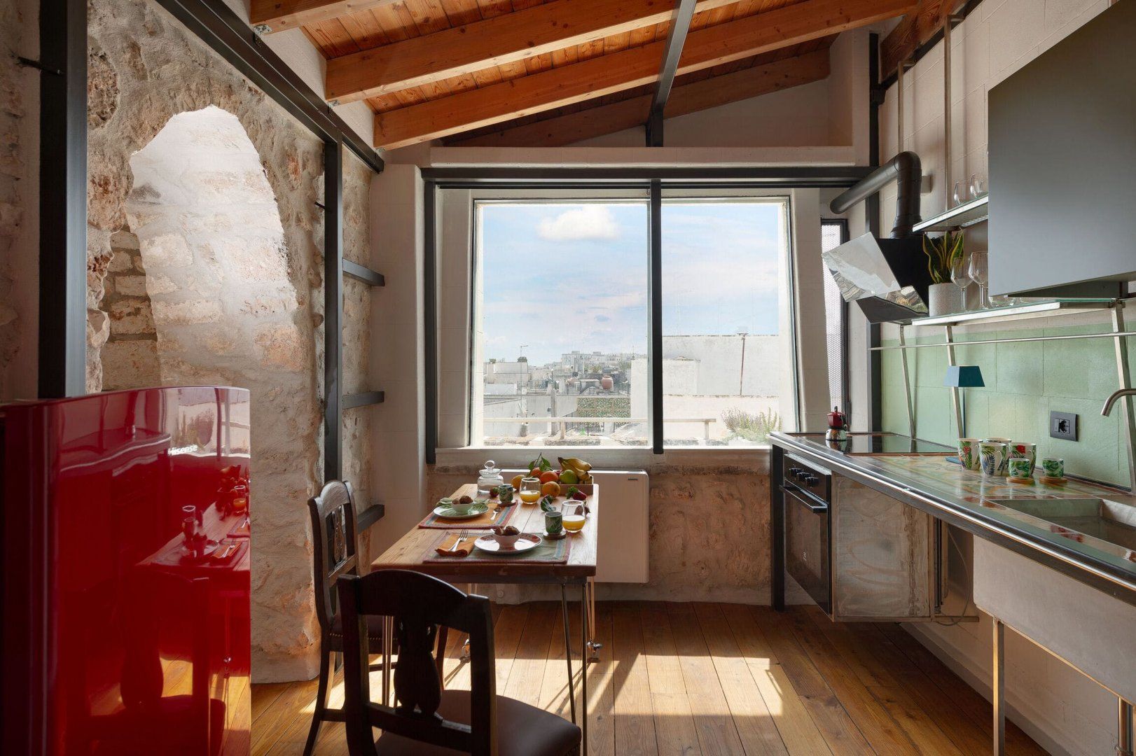 Part of a grand 16th-century mansion that’s been lovingly restored into apartments, this home is an excellent base in Ostuni for a couple or a small family. We think at most two adults can stay here comfortably as it’s on the smaller side – the pull-out bed is definitely better suited to children. It’s not massive but it does have heaps of charm, and the kitchen window looks out over the city’s rooftops. You’ll also have access to shared facilities including a relaxation area and an ancient chapel.