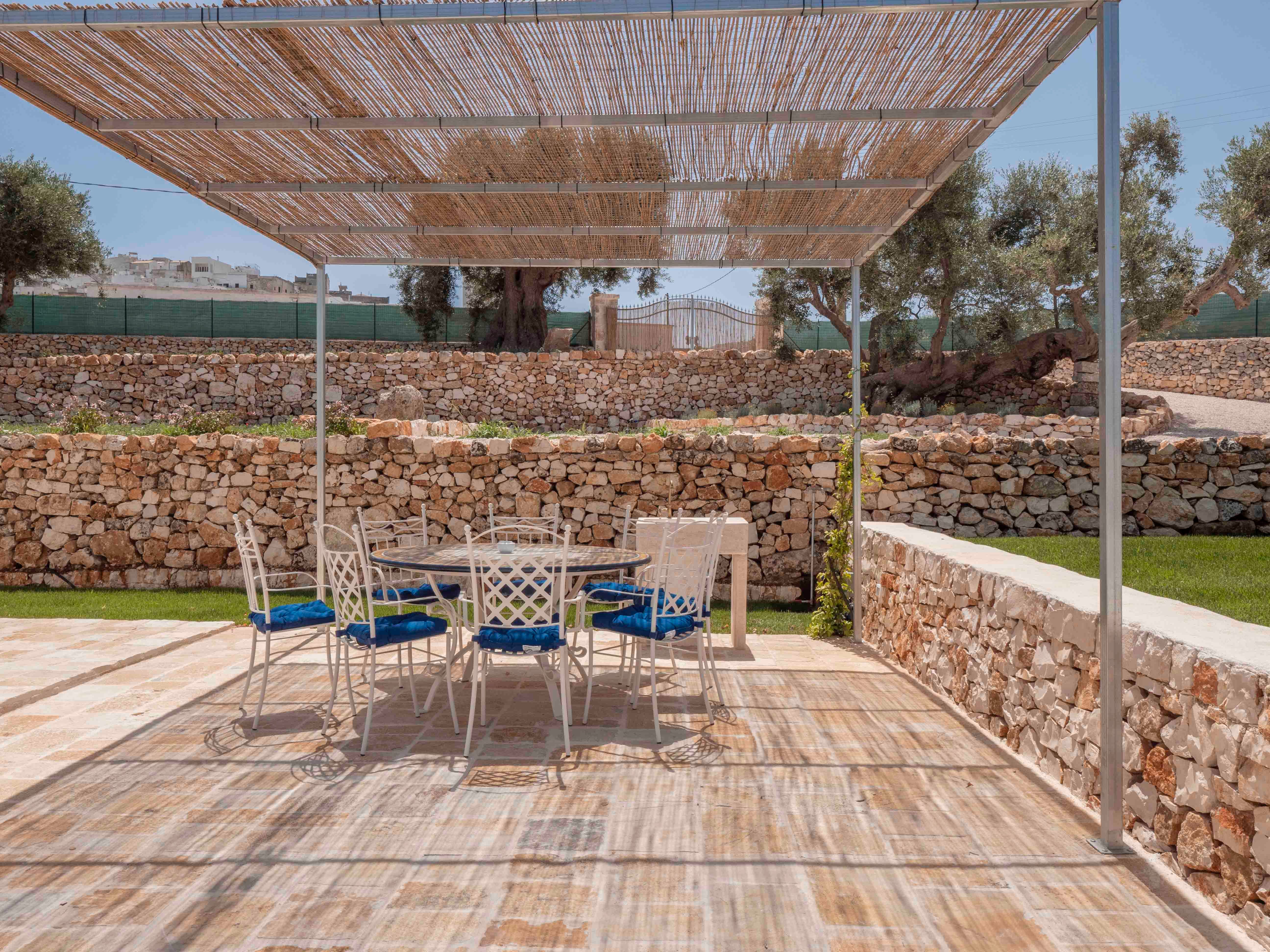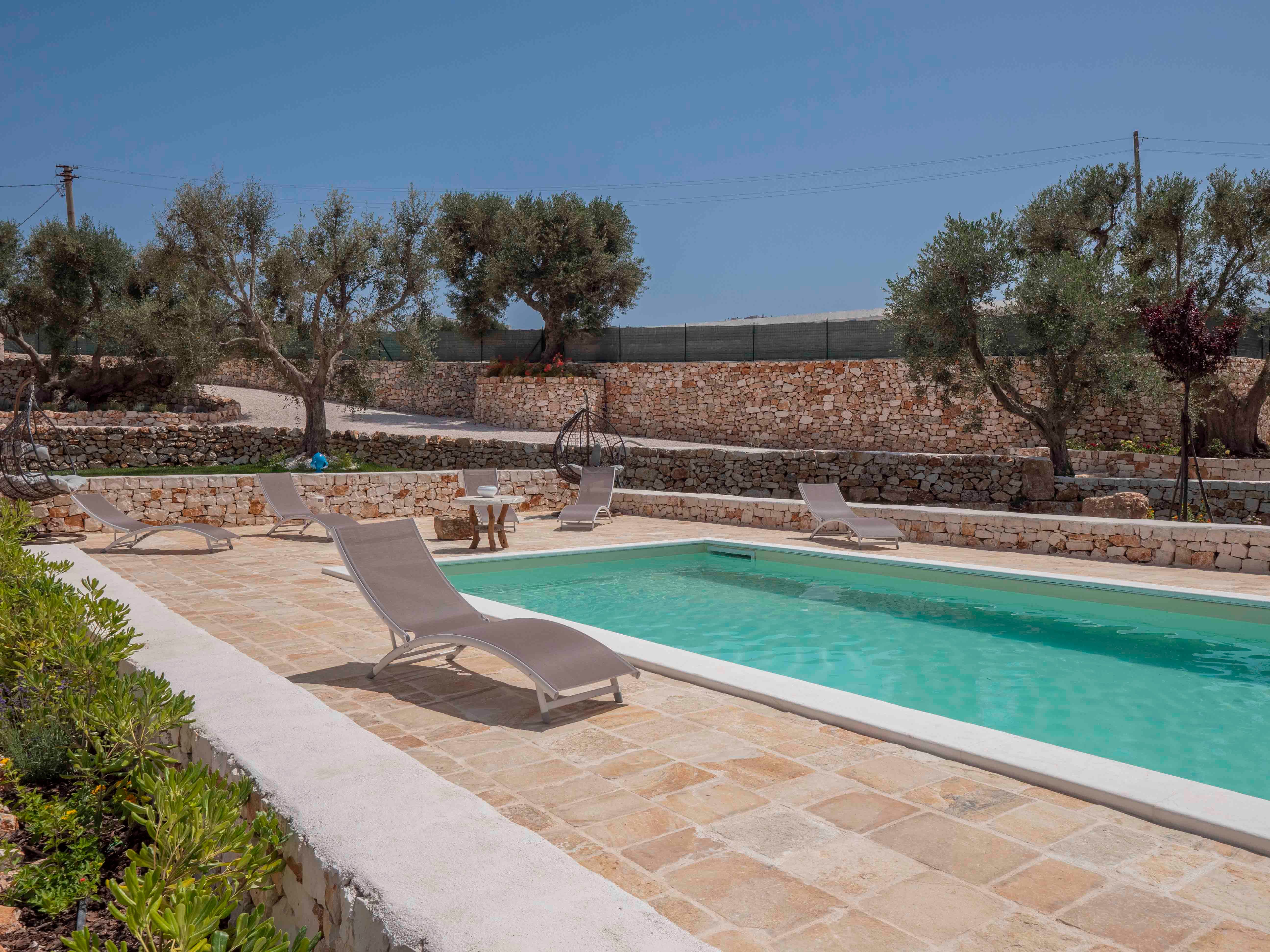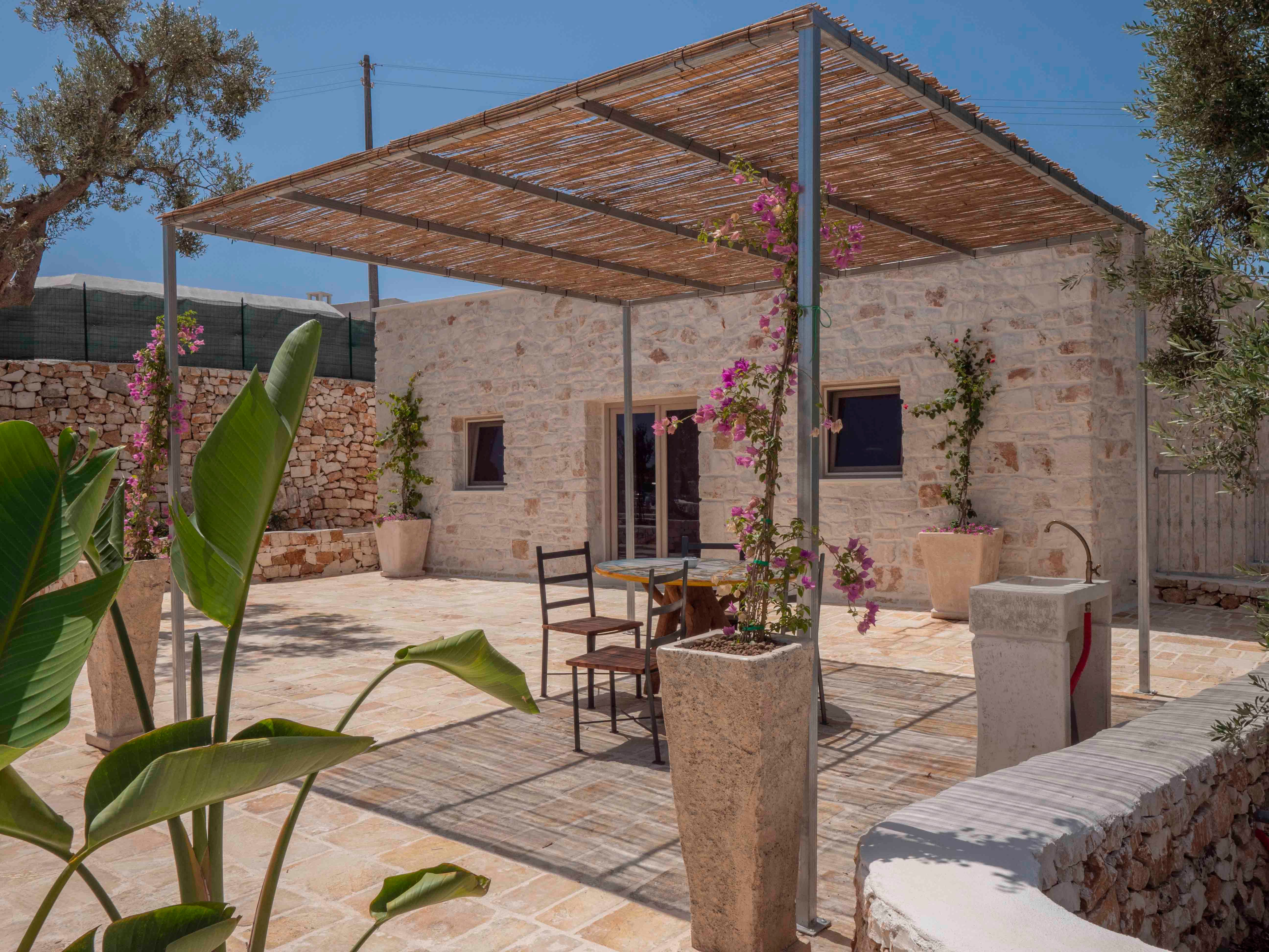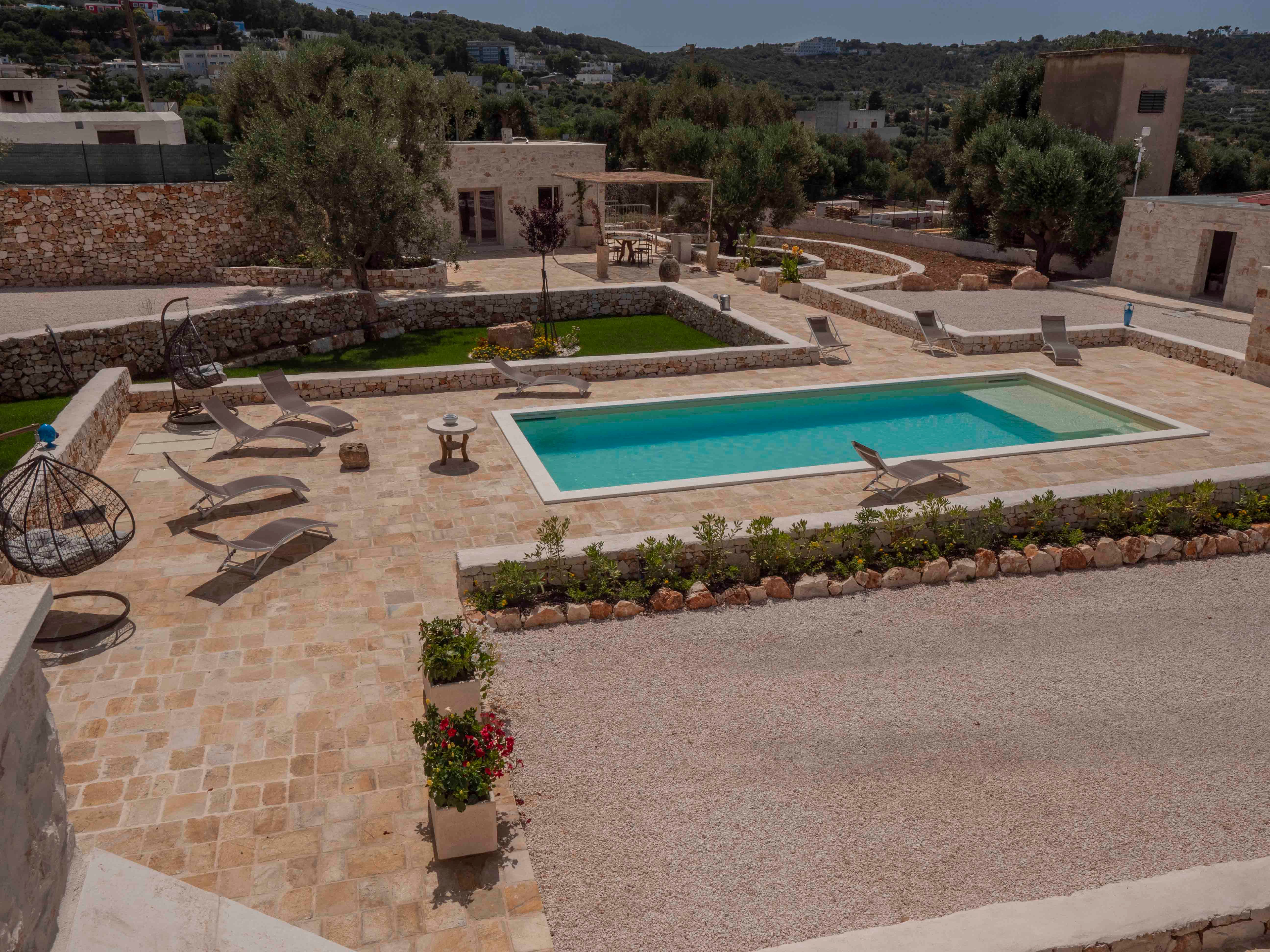 This traditional home is packed full of character. Made up of two separate stone dwellings – a trullo and a lamia – rented as one, it’s a great choice for a group getaway. While the authentic buildings won’t be everyone’s cup of tea, we love the cone-shaped roof and dry stone walls here. With a private pool, alfresco kitchen, and shaded eating areas, outdoor living is easy. And when you’re ready to explore, the historic town of Ostuni, with its Medieval architecture and Adriatic views, is just a walk away.
