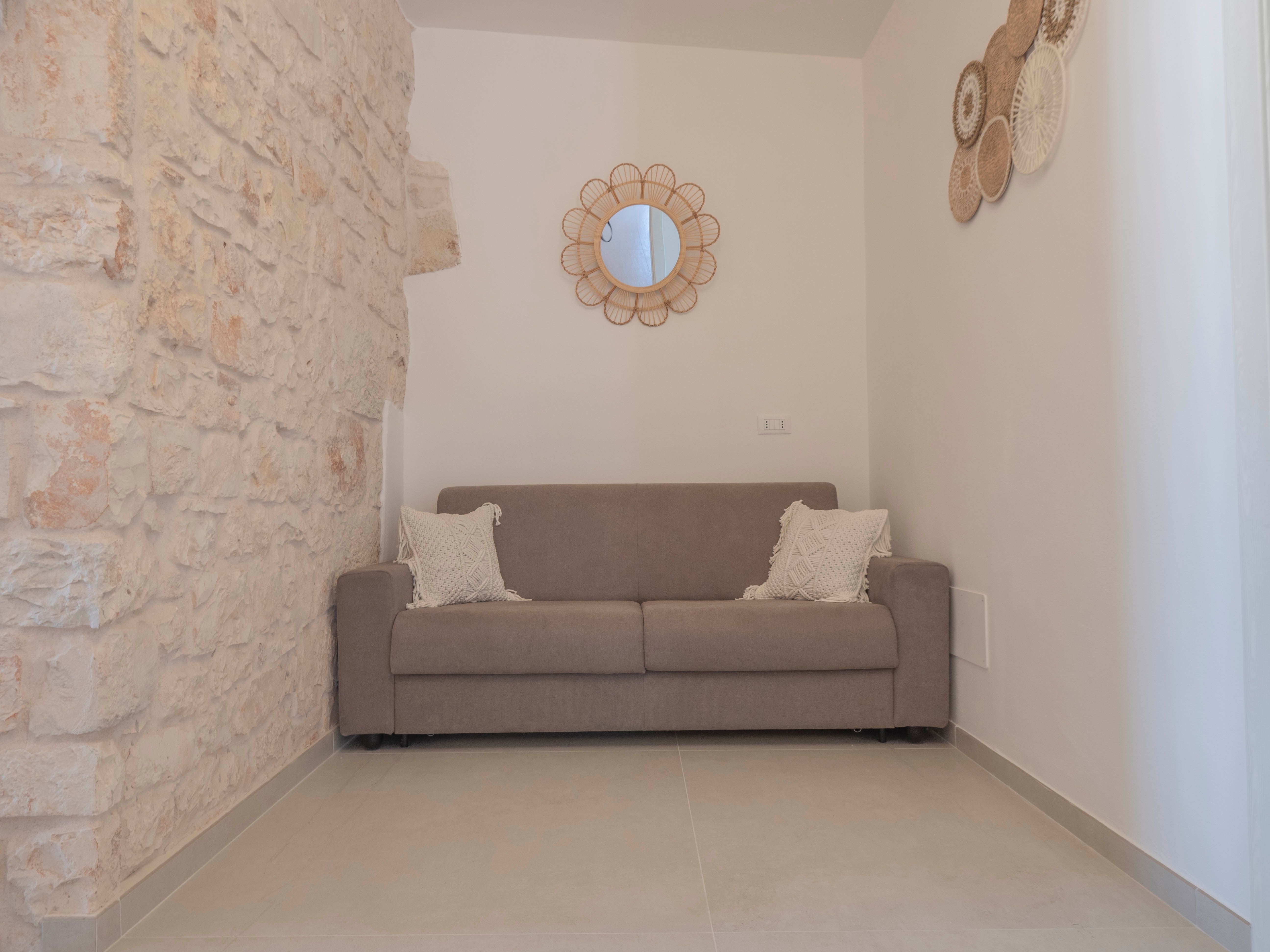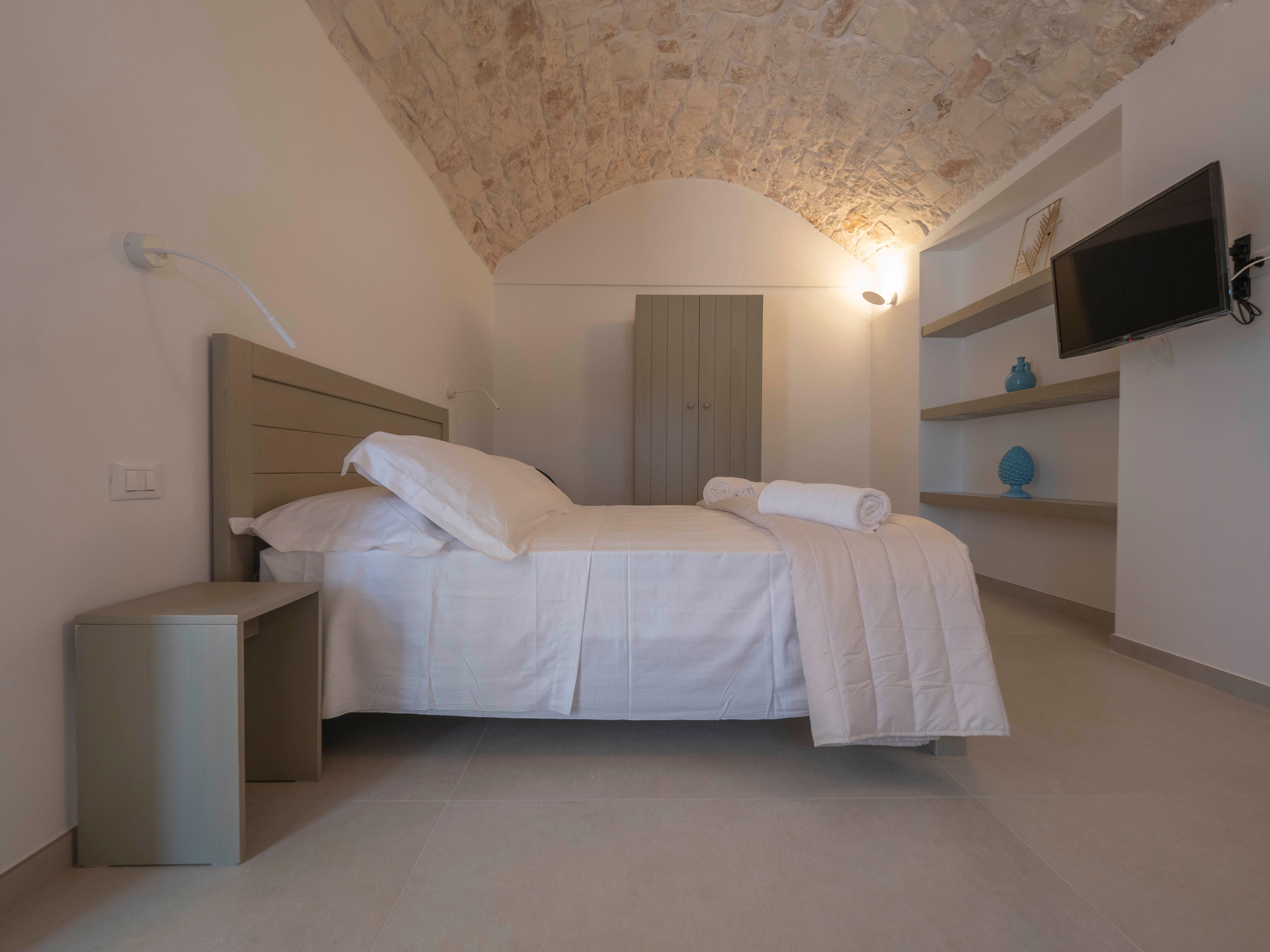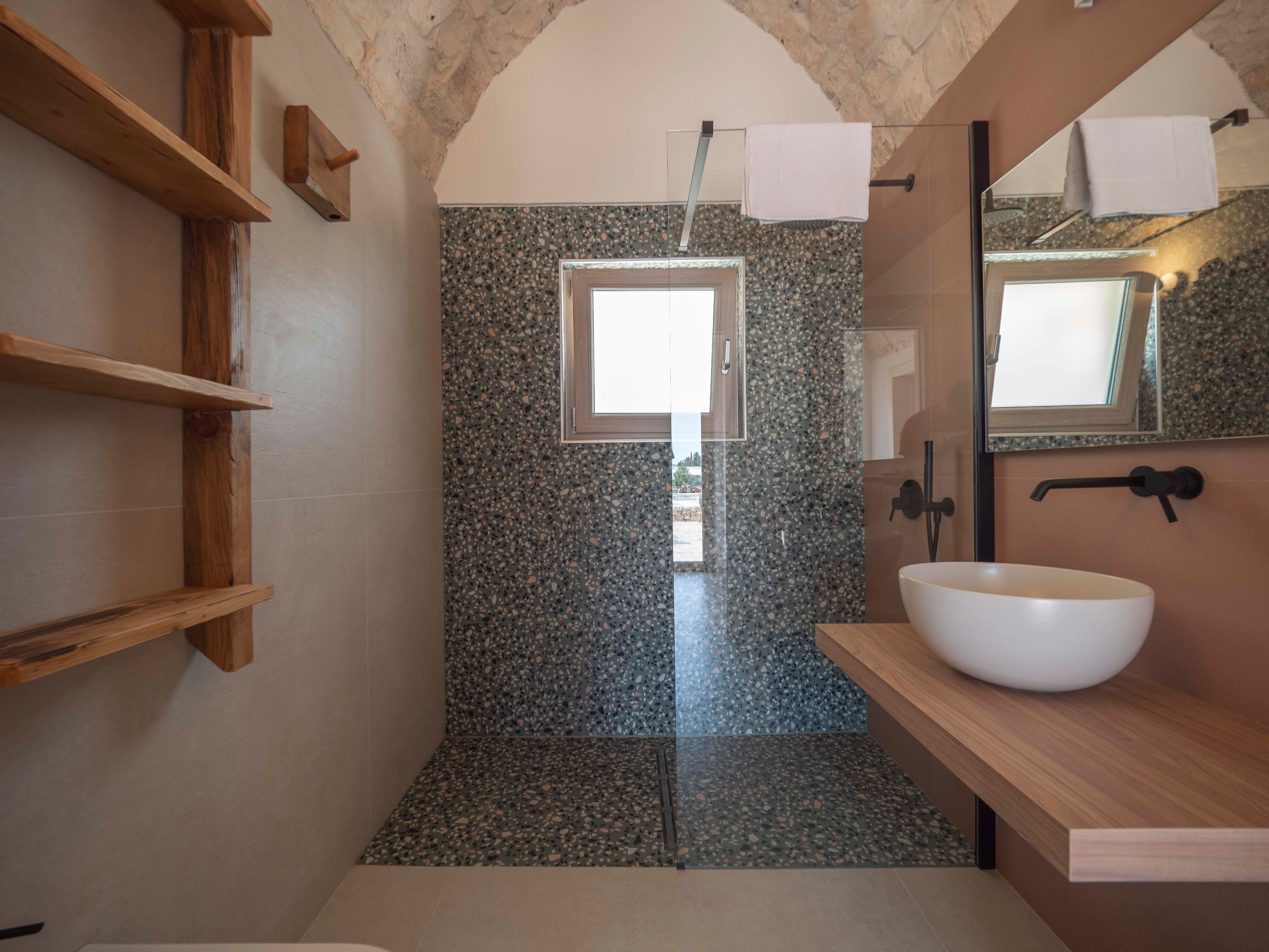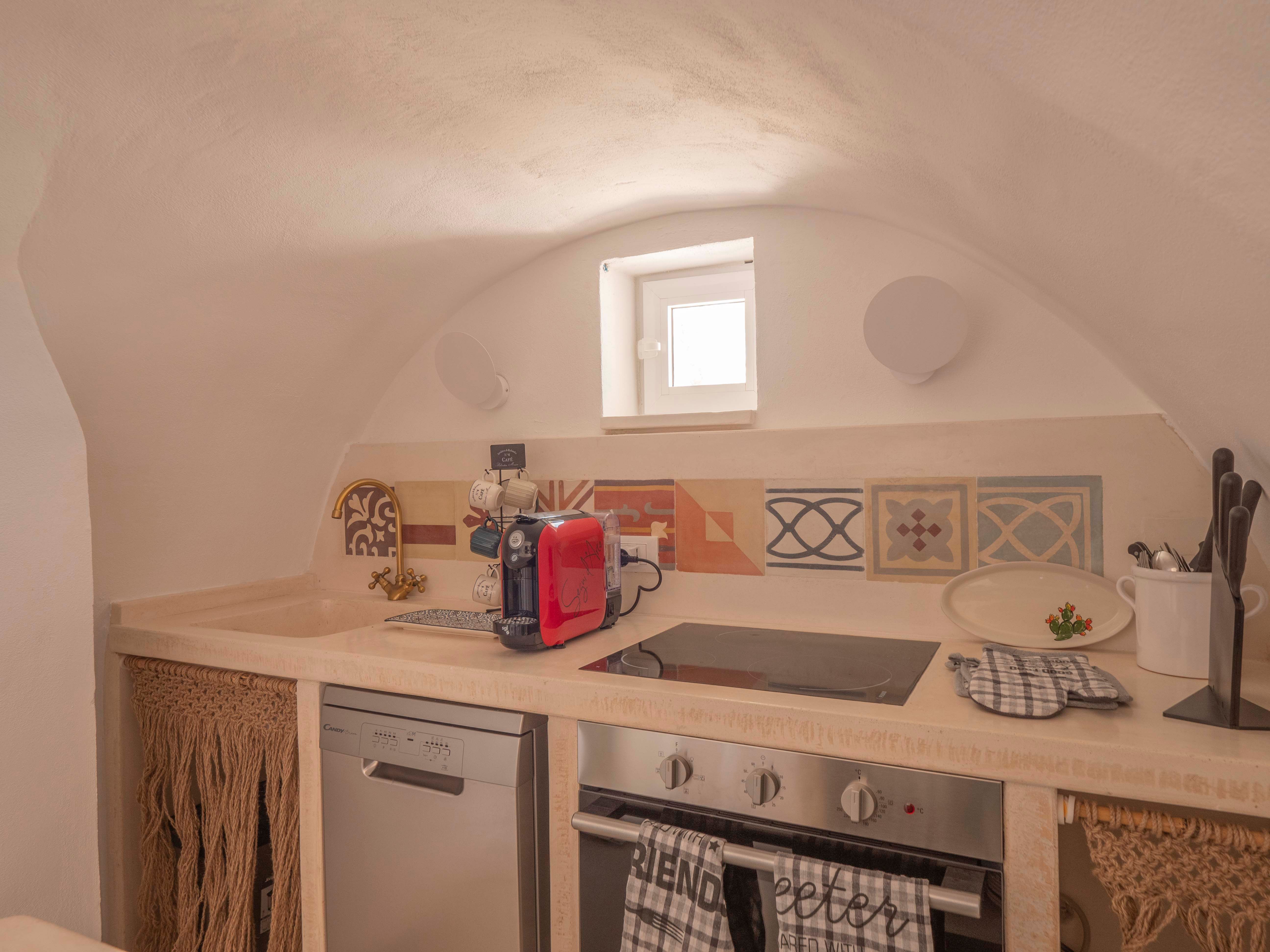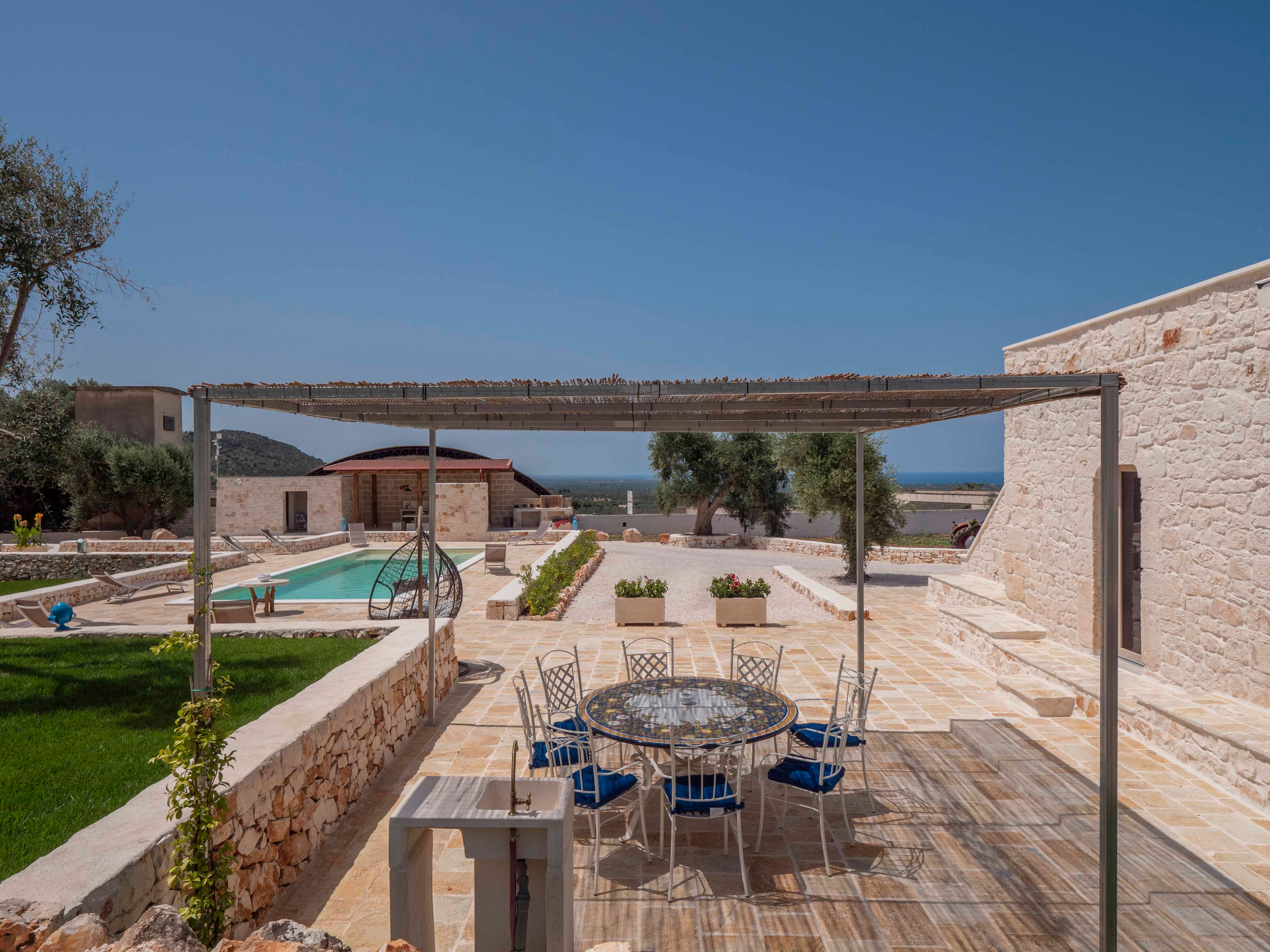 This traditional home is packed full of character. Made up of two separate stone dwellings – a trullo and a lamia – rented as one, it’s a great choice for a group getaway. While the authentic buildings won’t be everyone’s cup of tea, we love the cone-shaped roof and dry stone walls here. With a private pool, alfresco kitchen, and shaded eating areas, outdoor living is easy. And when you’re ready to explore, the historic town of Ostuni, with its Medieval architecture and Adriatic views, is just a walk away.