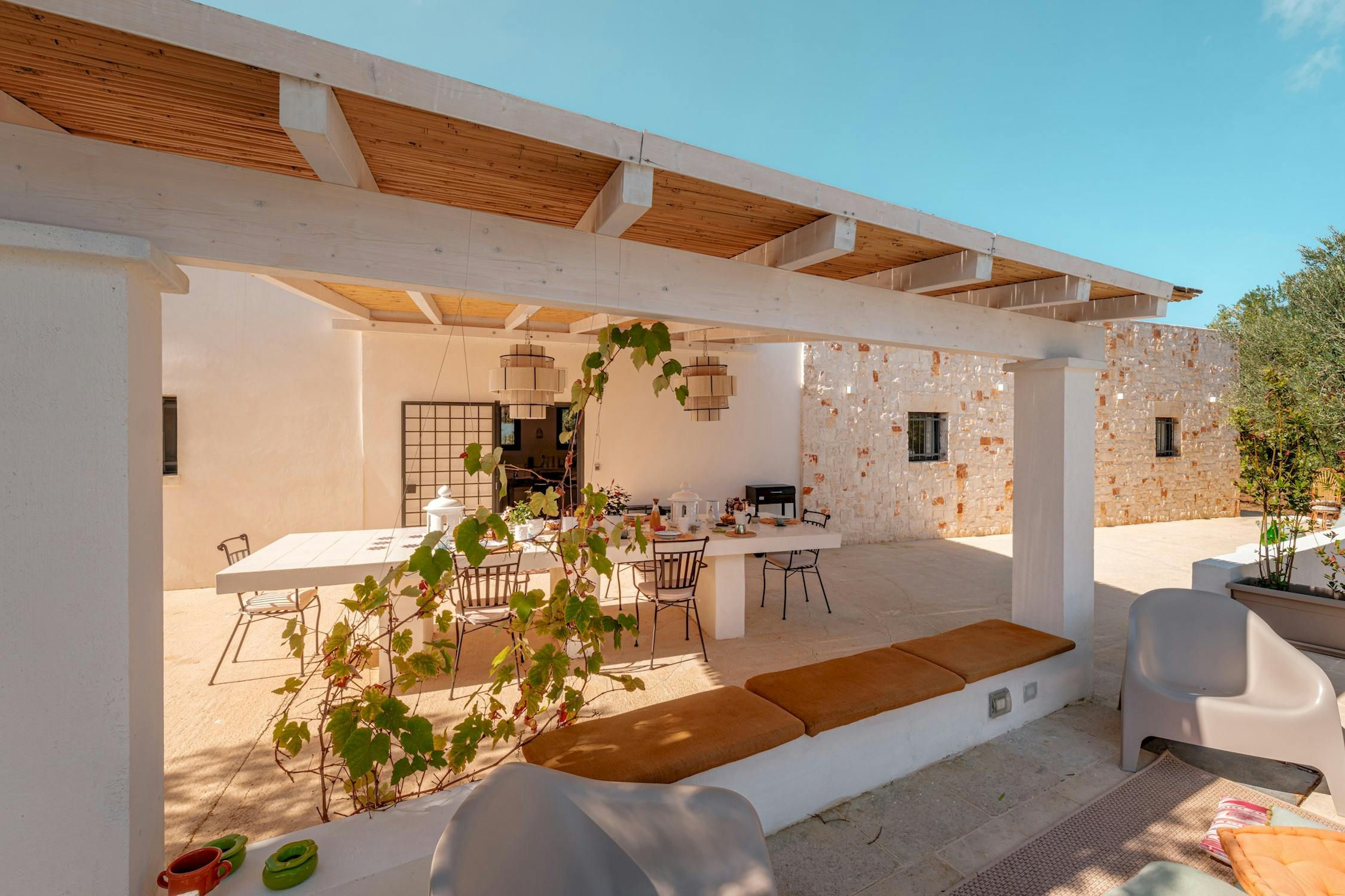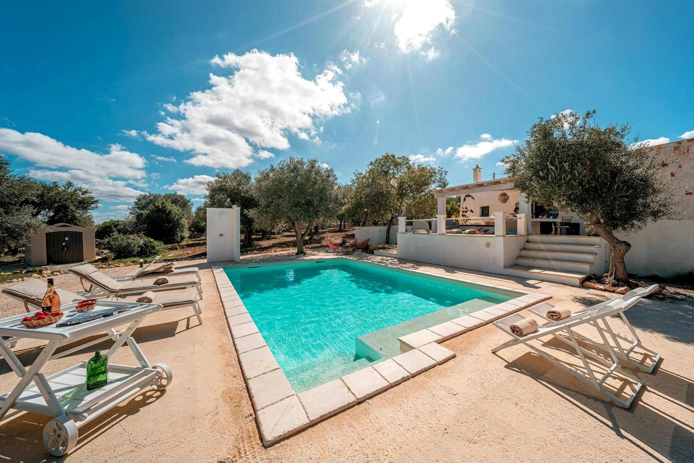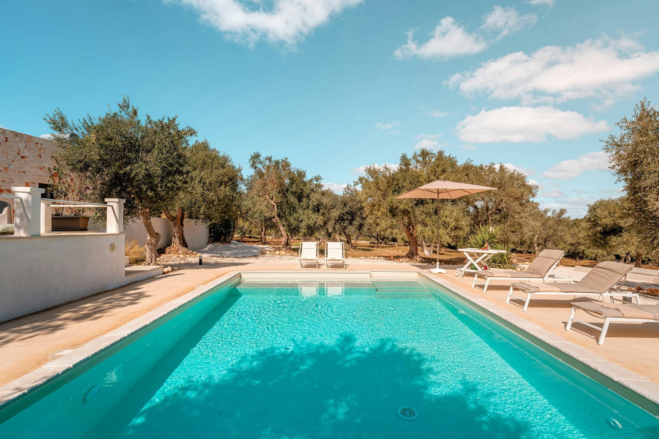 Looking for a relaxed stay in Apulia? You've found it. This home is sun-kissed, stylish, and set just 9 kilometres from Ostuni. Though modern, the design embodies the spirit of the area's famous trulli – think white-washed walls, simple decor, and natural elements. But it's the outside space here that really shines. There's a private pool surrounded by sun loungers, perfect for summer days, and a terrace where you can sit back with a cocktail and bask in the fresh air.