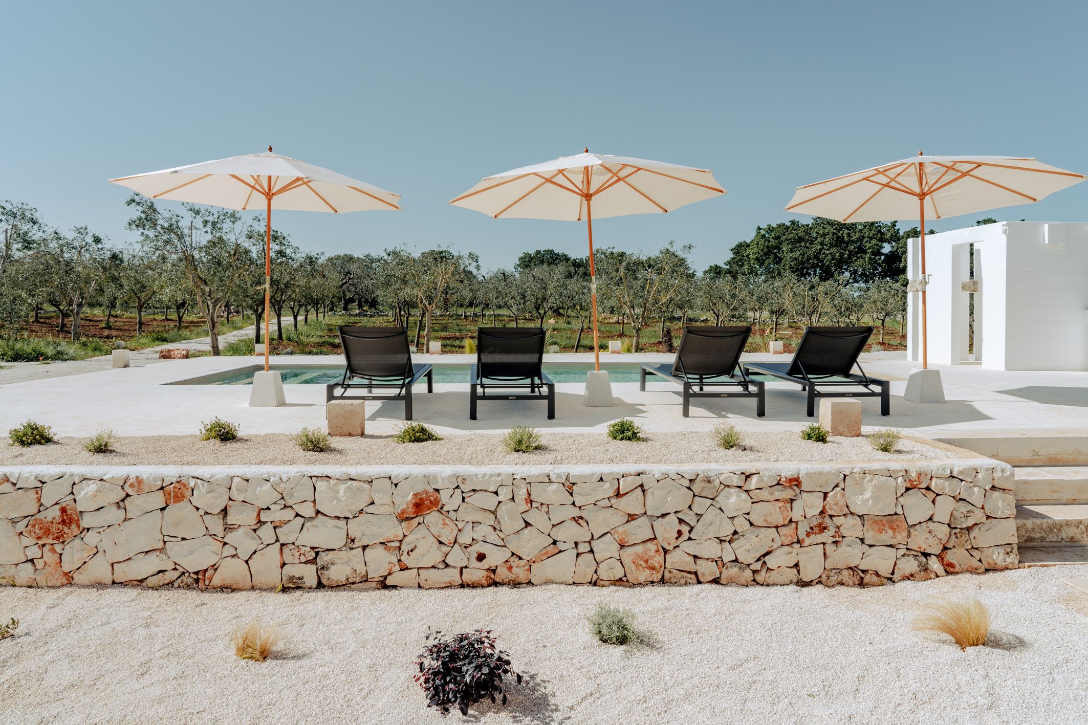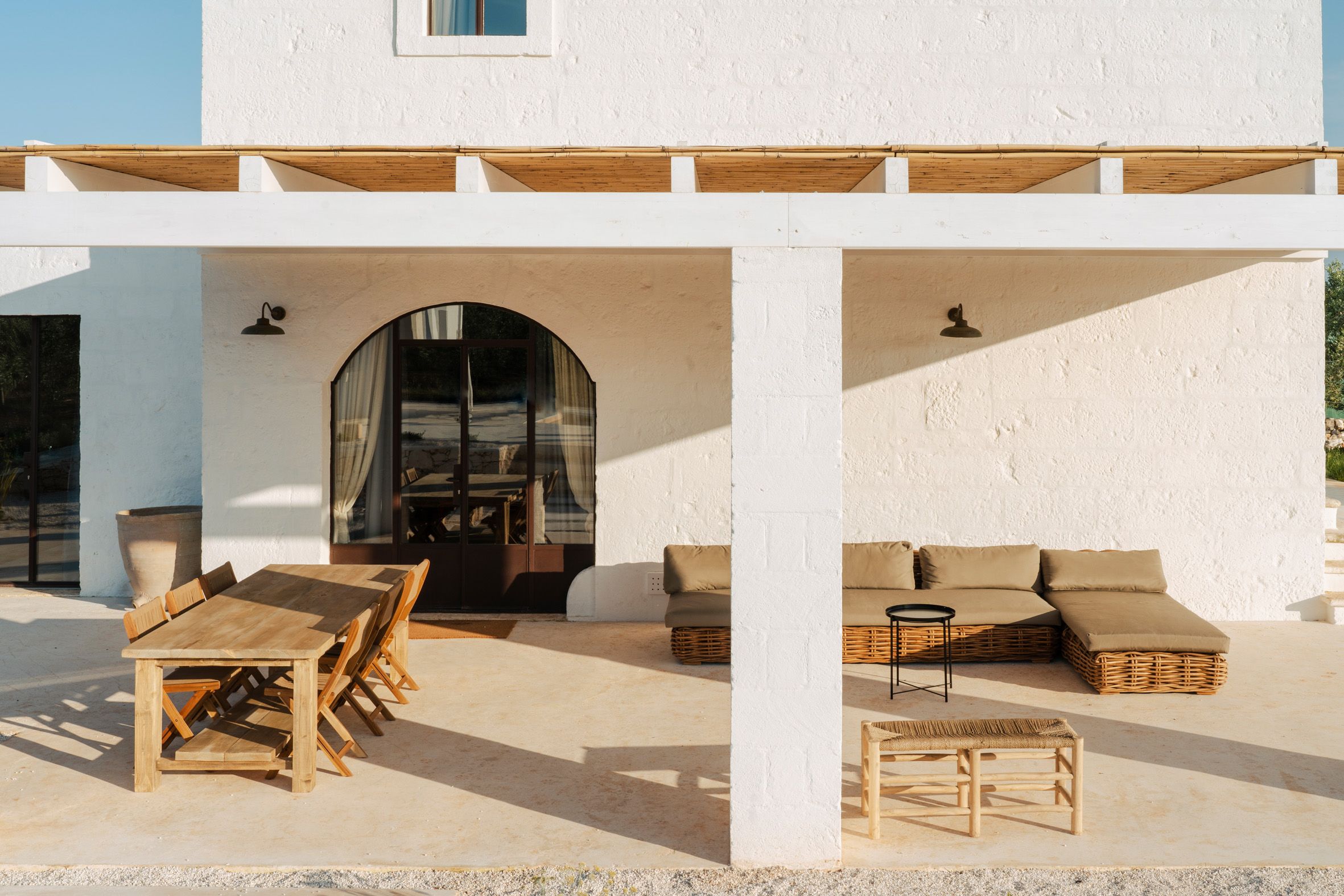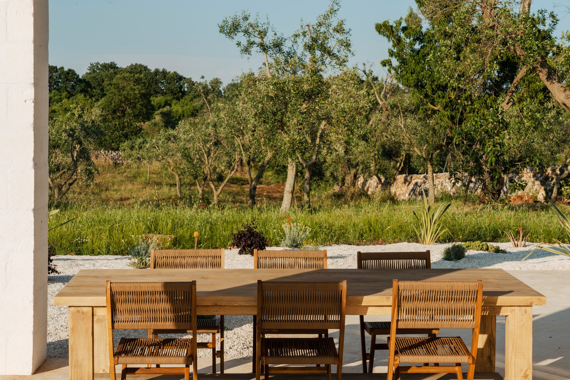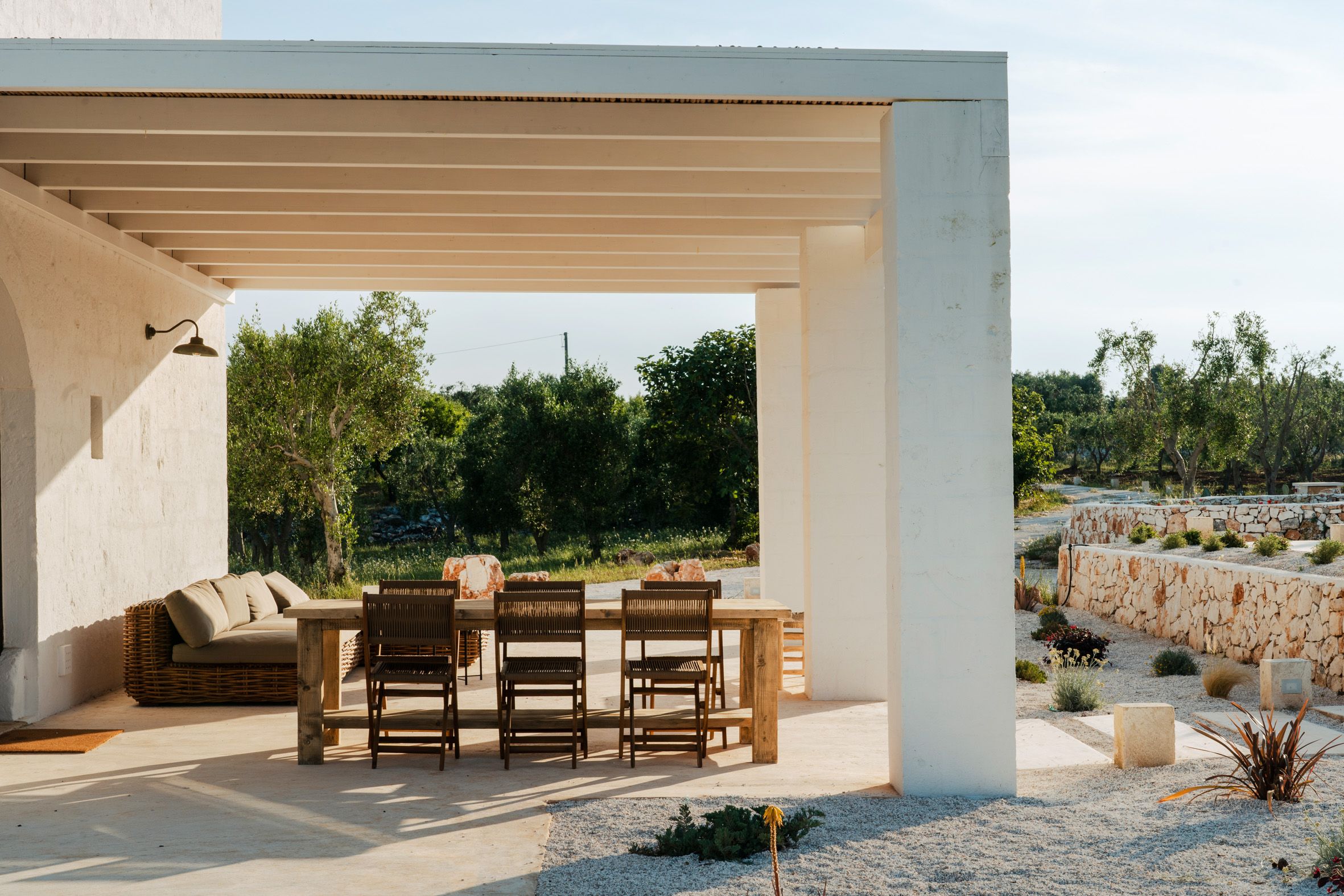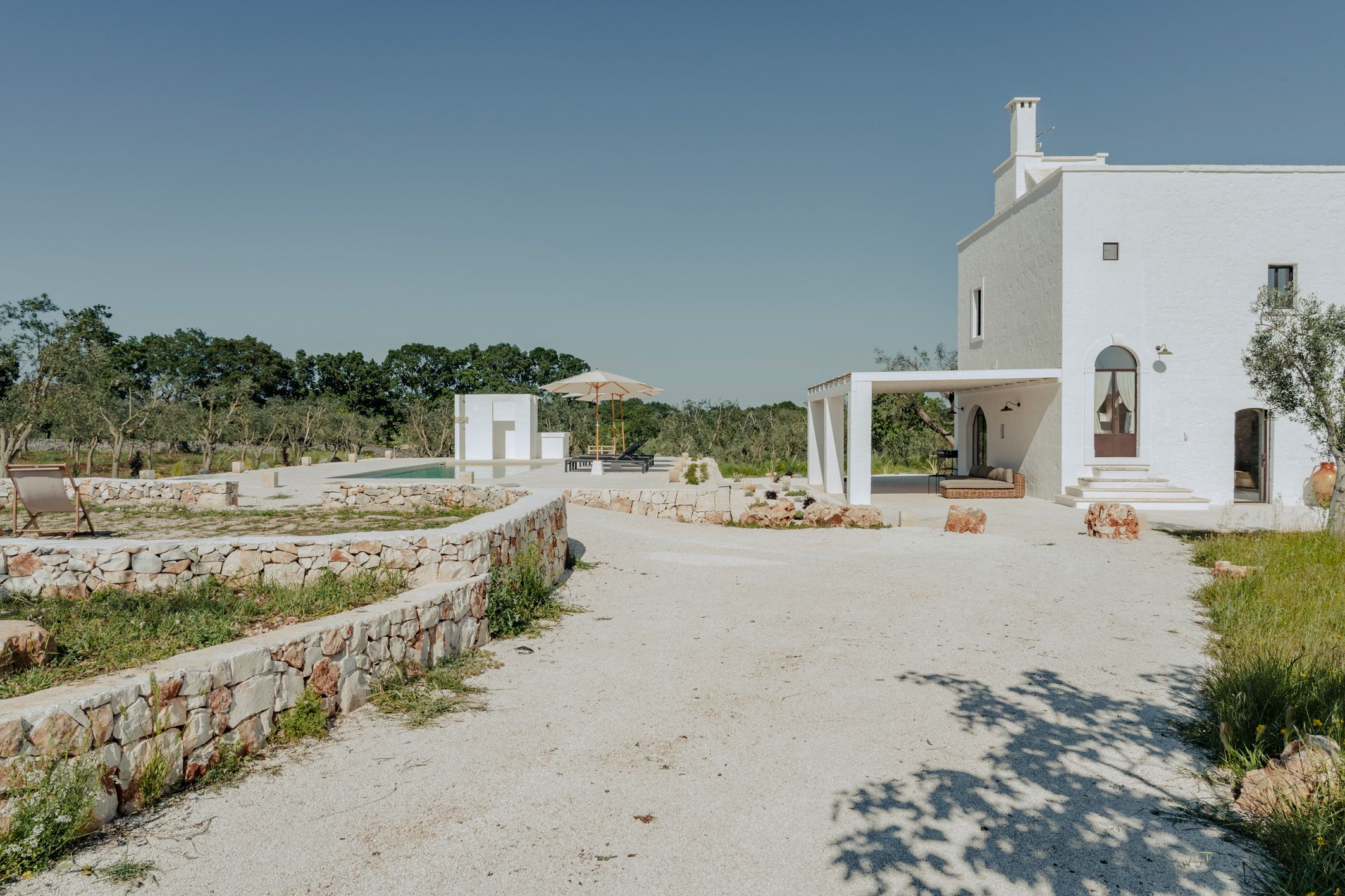 Filled with the authentic spirit of Puglia, this traditional country farmhouse has been transformed into a serene Italian retreat. Surrounded by ancient olive and almond trees, the grounds set the tone for total relaxation. There’s a swimming pool, a terrace and an organic vegetable garden where guests can sample the home-grown produce. Inside, the rooms are elegant, considered and well suited to groups and families in search of a mindful stay. You can also enhance your stay with a range of extra services – including a private chef, breakfast and massage treatments. You will need a car to get around here, but it’s a short drive to Ostuni and the coast.