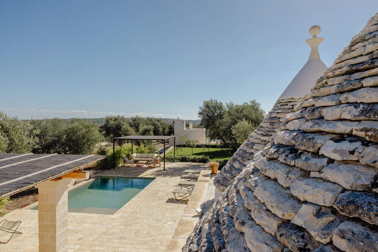 An excellent choice for an authentic Puglian escape, this home ticks a lot of boxes. It’s spread between a traditional trullo – built in local stone – and a separate building for two, which is ideal for a couple seeking a bit more privacy. There’s plenty of space outside for everyone to spend time together, with a private infinity pool, garden, and a gazebo that houses an outdoor kitchen. We love the rooftop terrace and its sweeping views of the surrounding olive groves.