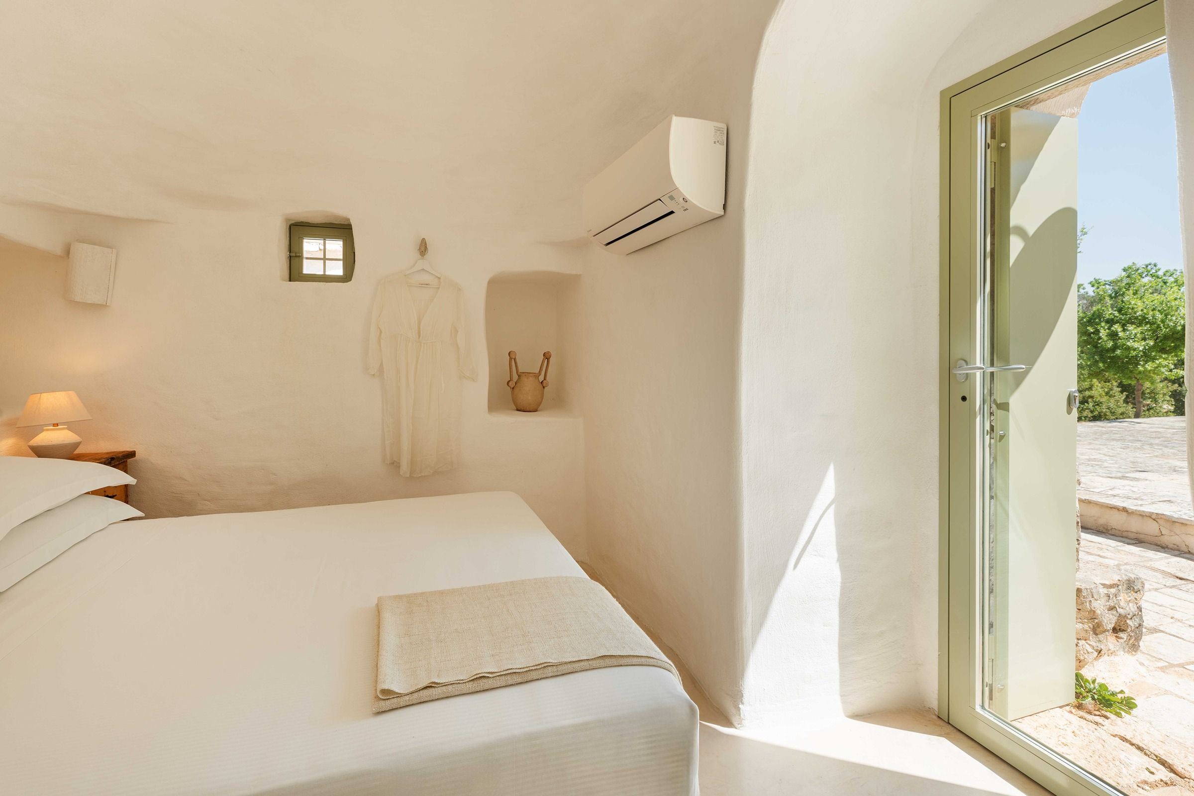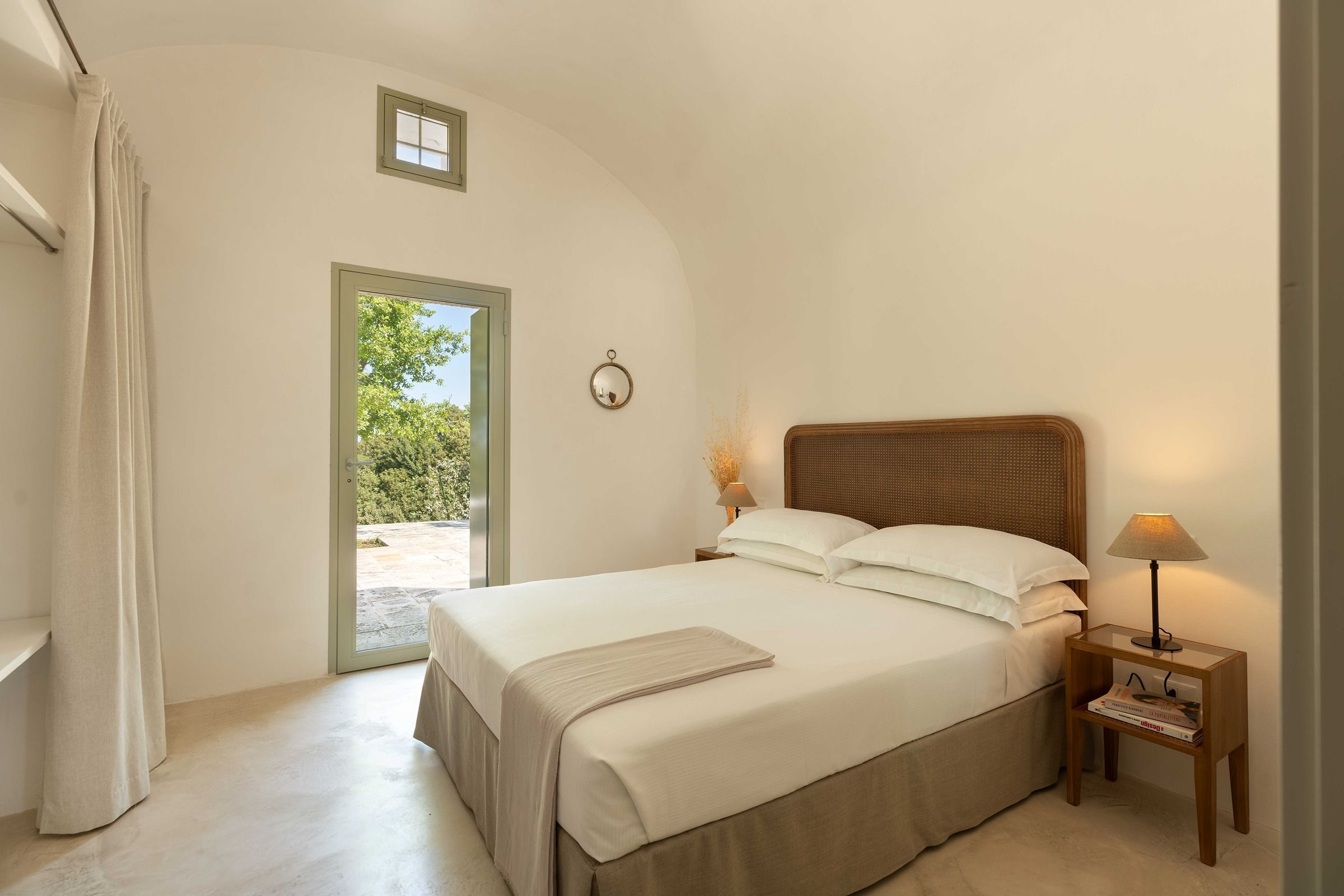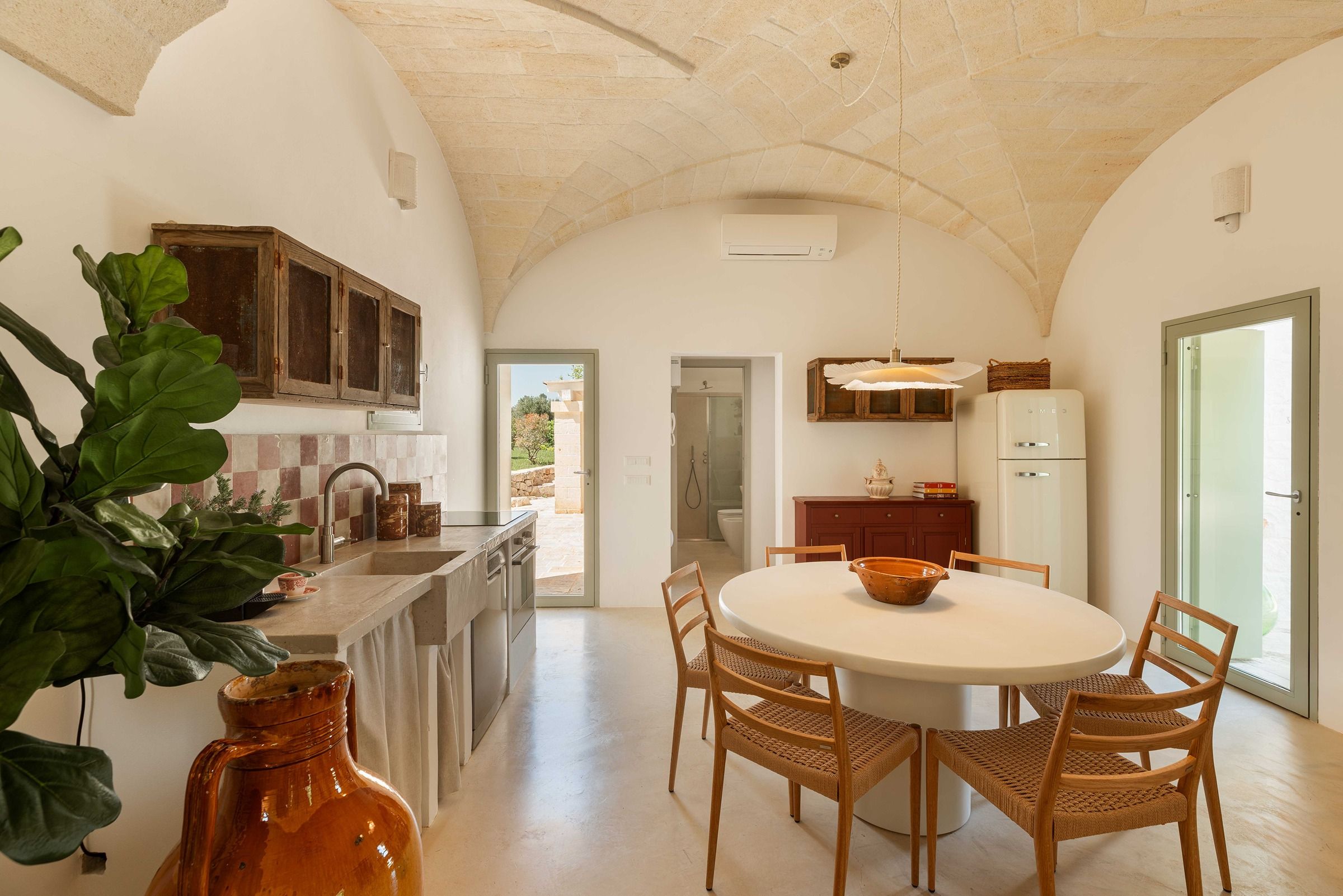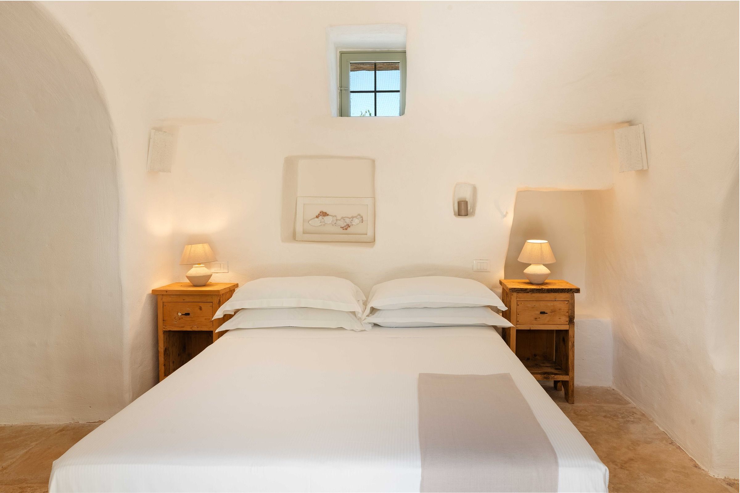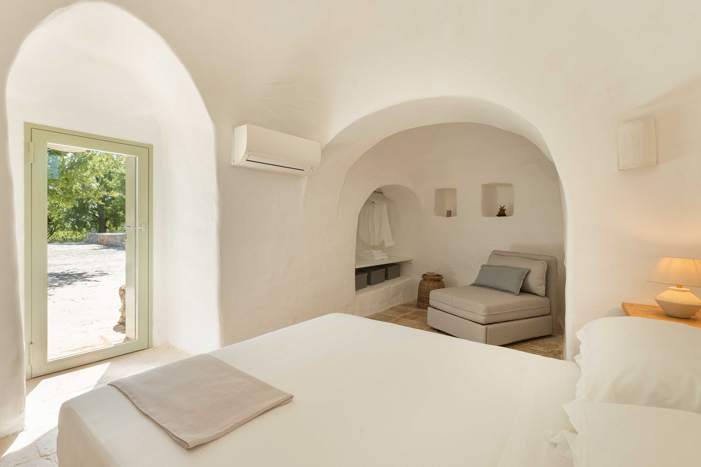 Don’t be fooled by the ancient bones of this Itria Valley trullo fringing Ostuni. Behind its historic character lies a super practical home. The central lamia houses a sociable living and dining area. Meanwhile, the bedrooms are thoughtfully spread across the main house and two neighbouring trullos, so everyone’s got a little extra privacy here. Better still, each bedroom opens directly onto sun-baked terraces, with the private swimming pool just steps away. Wrapped in olive groves for as far as the eye can see, the setting is blissfully secluded. But when it’s time to explore, the postcard-perfect hilltop towns are just a short drive away.
