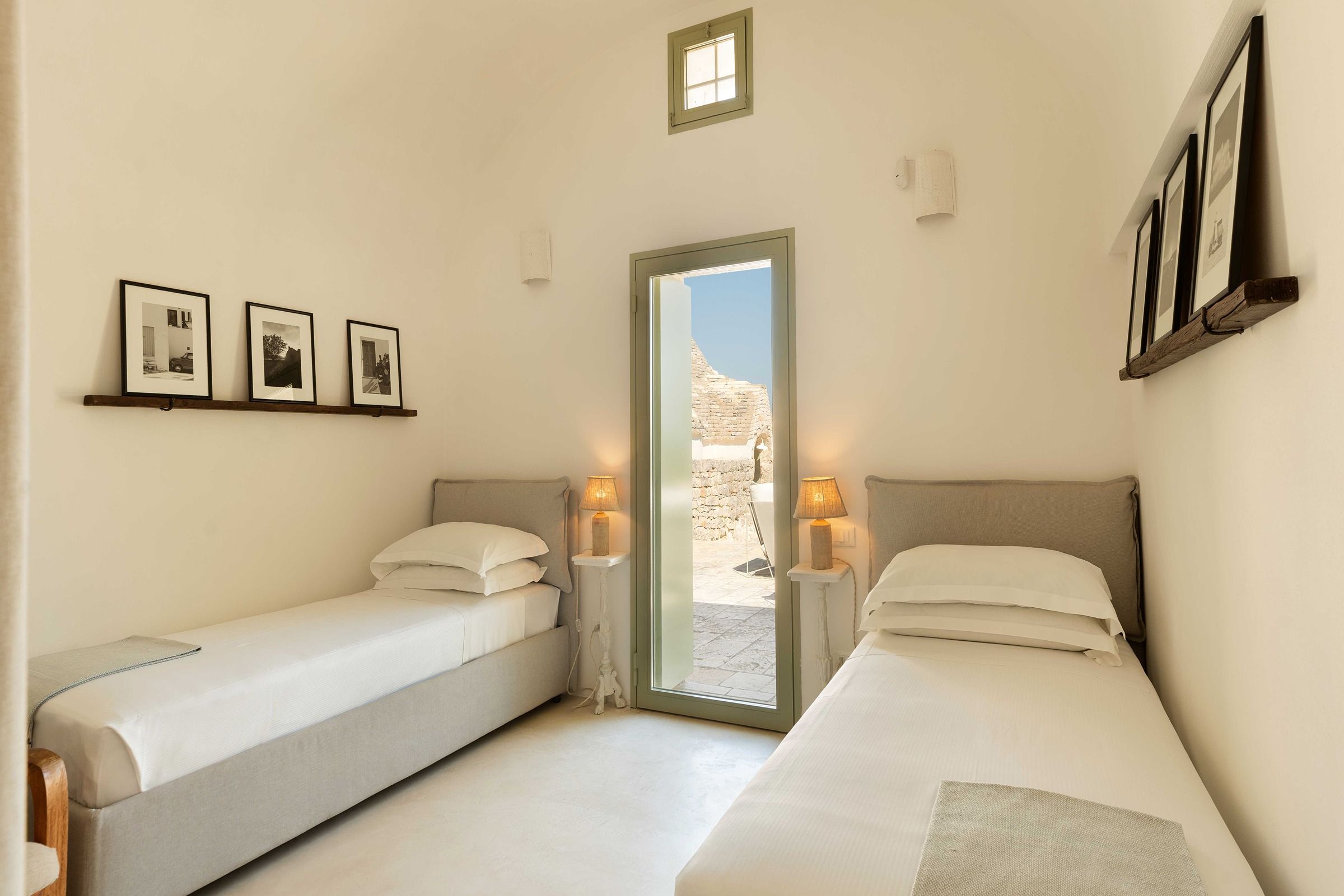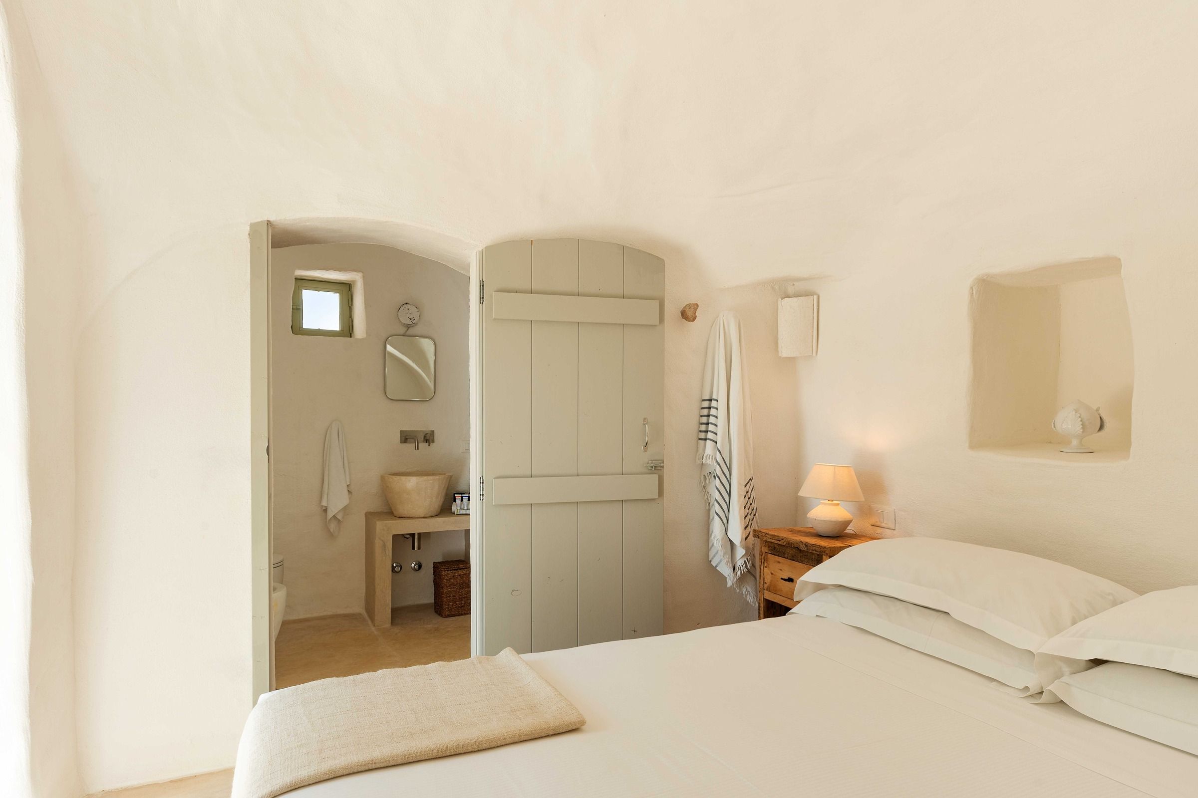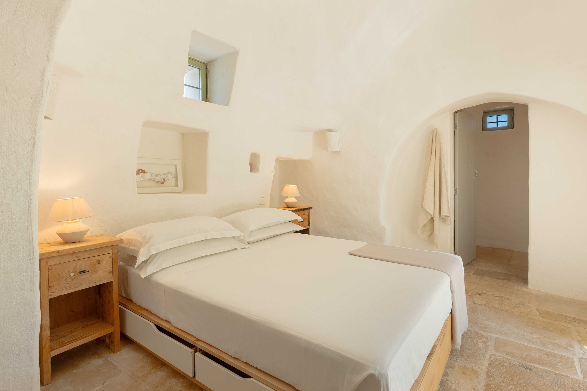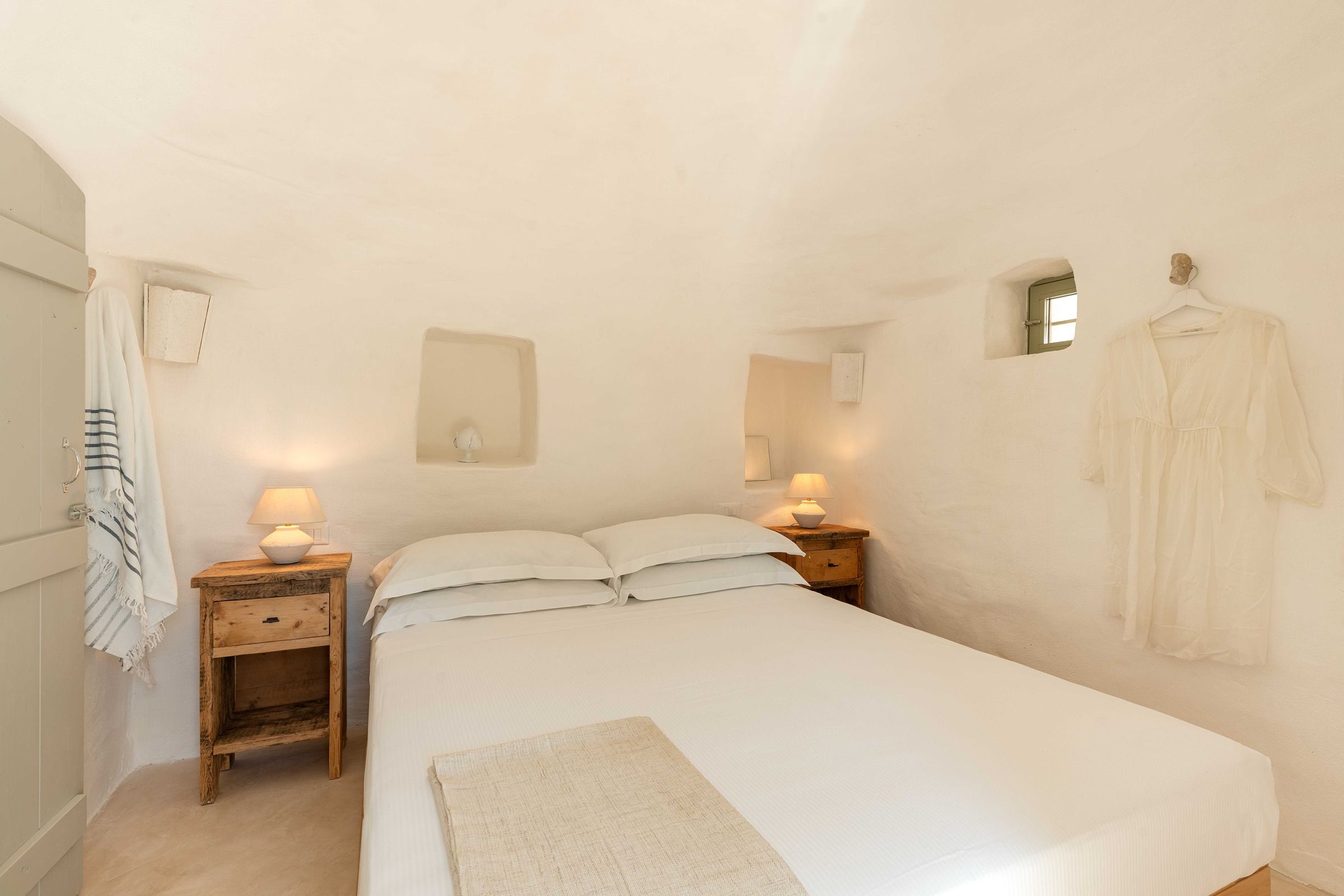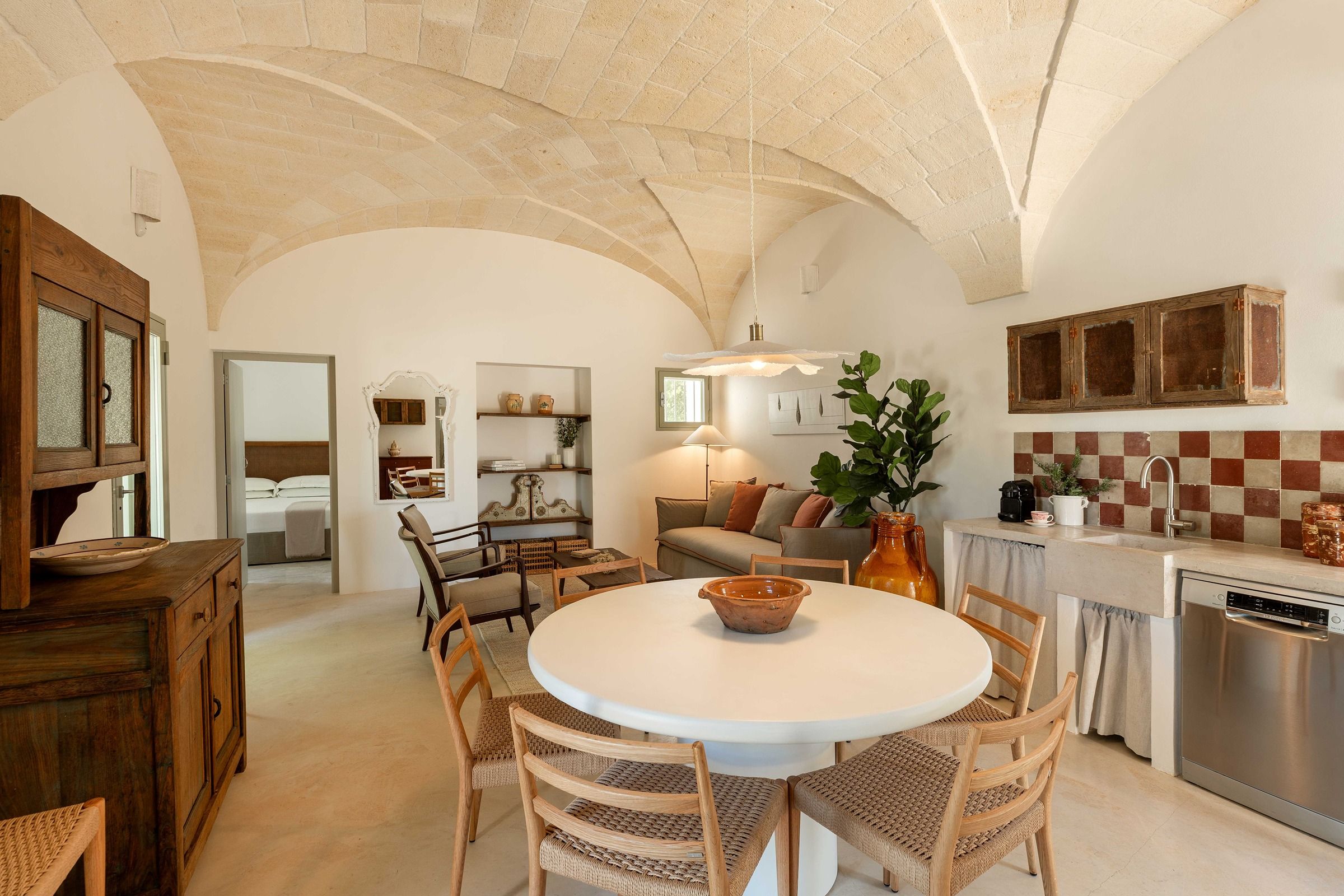 Don’t be fooled by the ancient bones of this Itria Valley trullo fringing Ostuni. Behind its historic character lies a super practical home. The central lamia houses a sociable living and dining area. Meanwhile, the bedrooms are thoughtfully spread across the main house and two neighbouring trullos, so everyone’s got a little extra privacy here. Better still, each bedroom opens directly onto sun-baked terraces, with the private swimming pool just steps away. Wrapped in olive groves for as far as the eye can see, the setting is blissfully secluded. But when it’s time to explore, the postcard-perfect hilltop towns are just a short drive away.