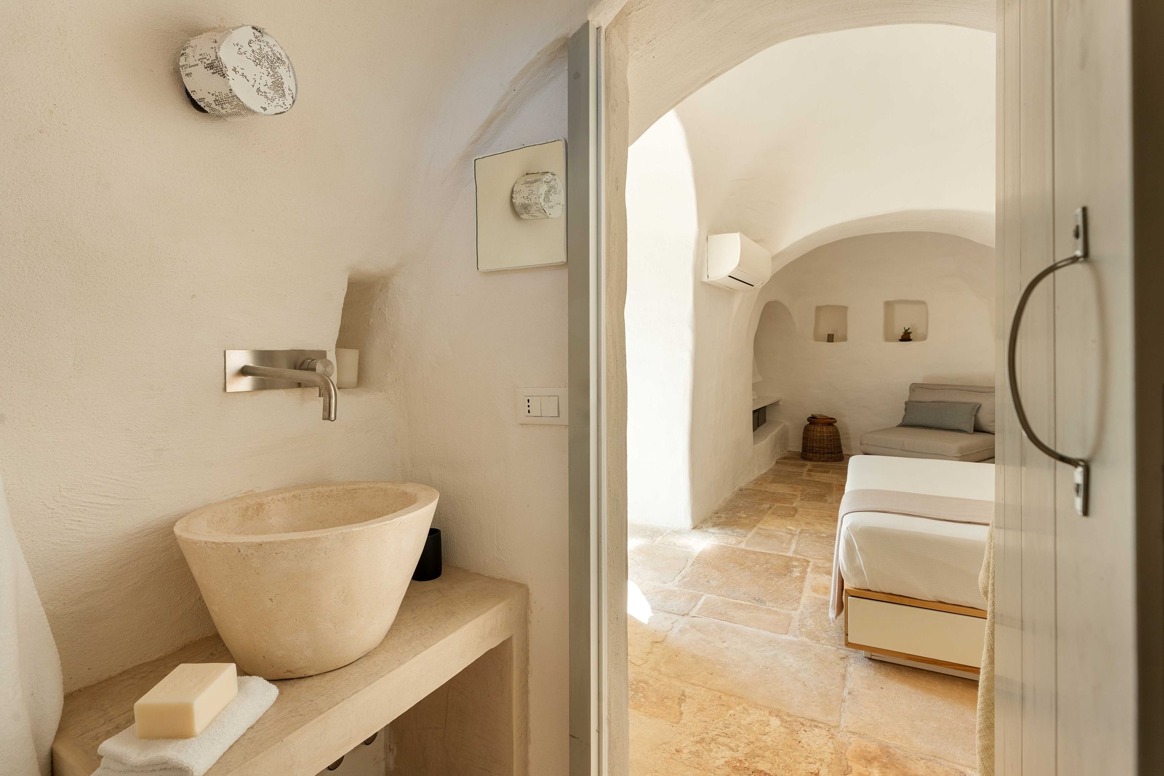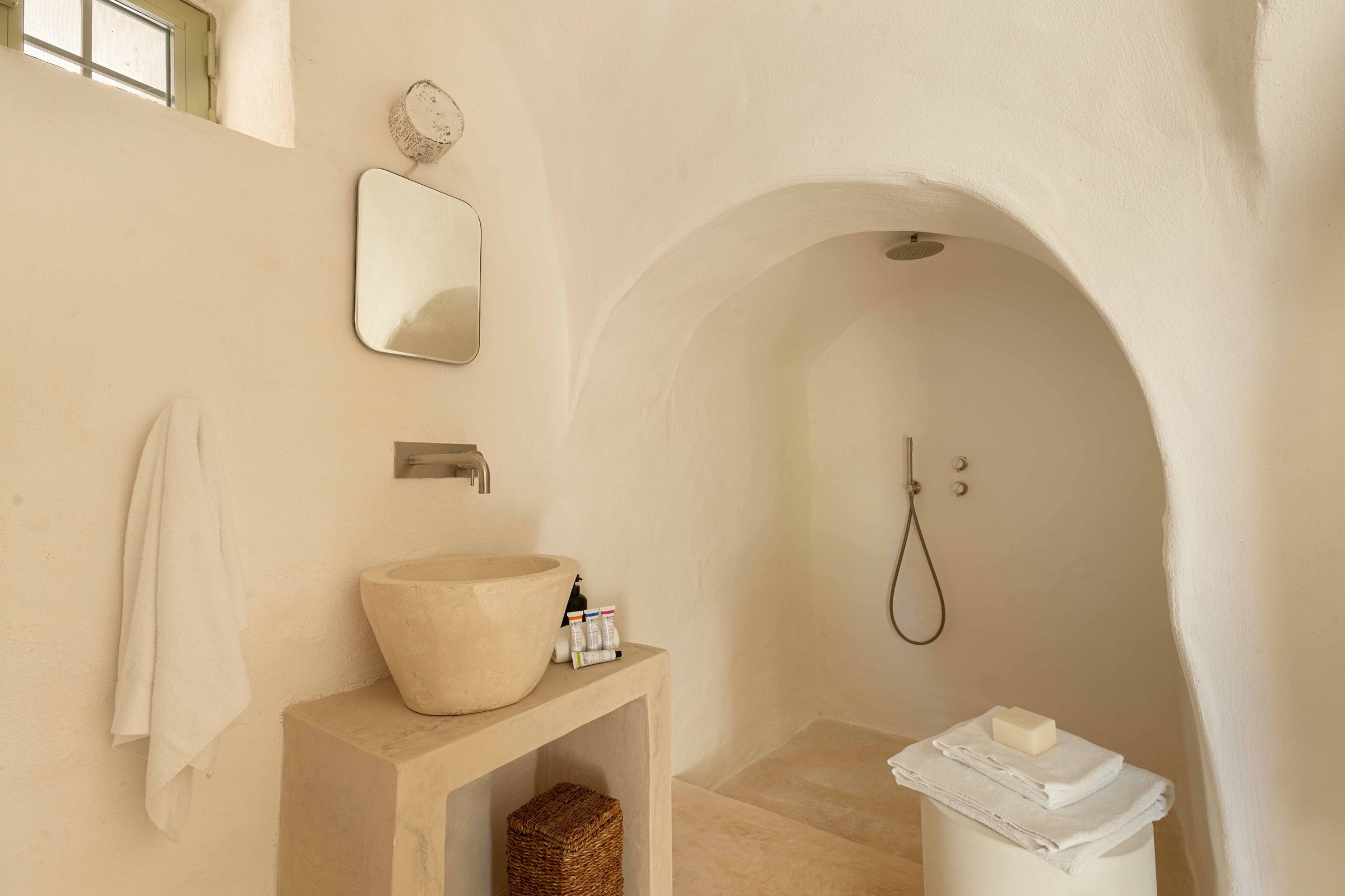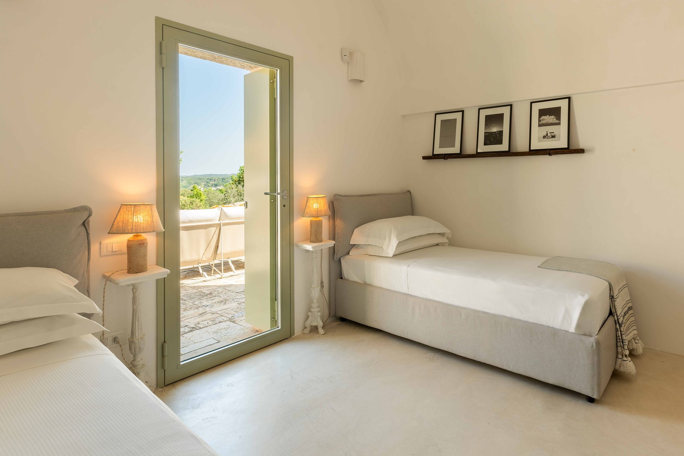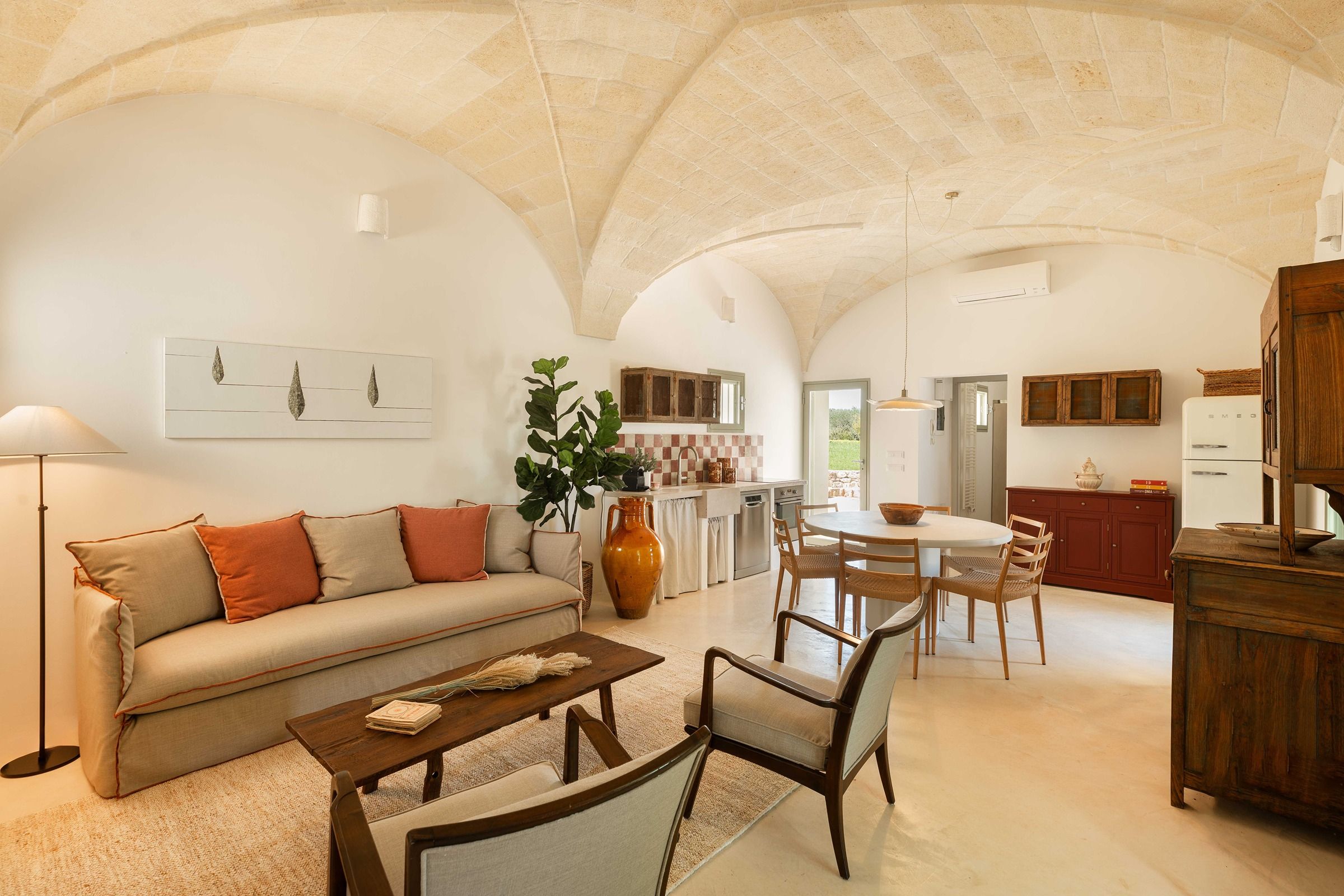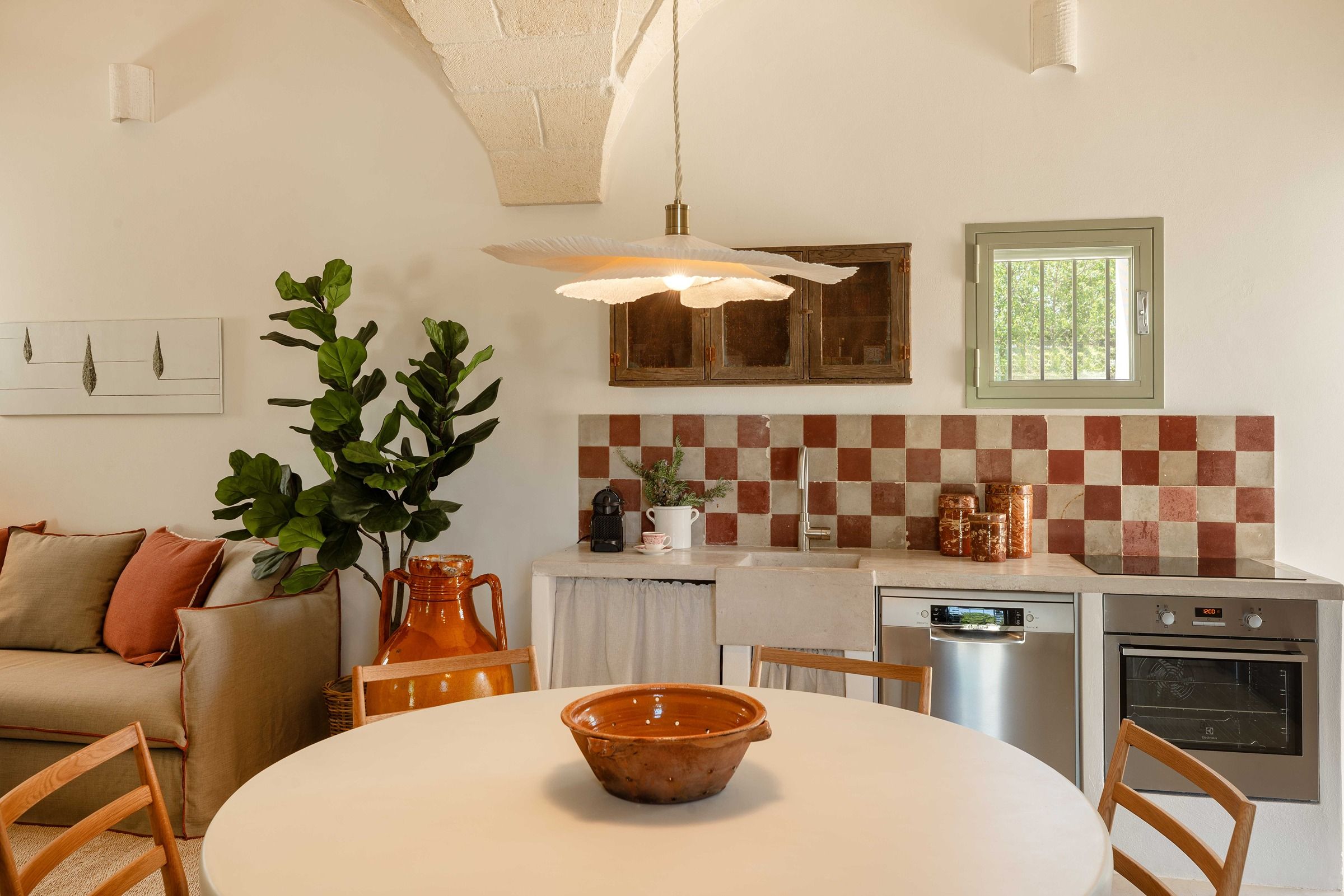 Don’t be fooled by the ancient bones of this Itria Valley trullo fringing Ostuni. Behind its historic character lies a super practical home. The central lamia houses a sociable living and dining area. Meanwhile, the bedrooms are thoughtfully spread across the main house and two neighbouring trullos, so everyone’s got a little extra privacy here. Better still, each bedroom opens directly onto sun-baked terraces, with the private swimming pool just steps away. Wrapped in olive groves for as far as the eye can see, the setting is blissfully secluded. But when it’s time to explore, the postcard-perfect hilltop towns are just a short drive away.