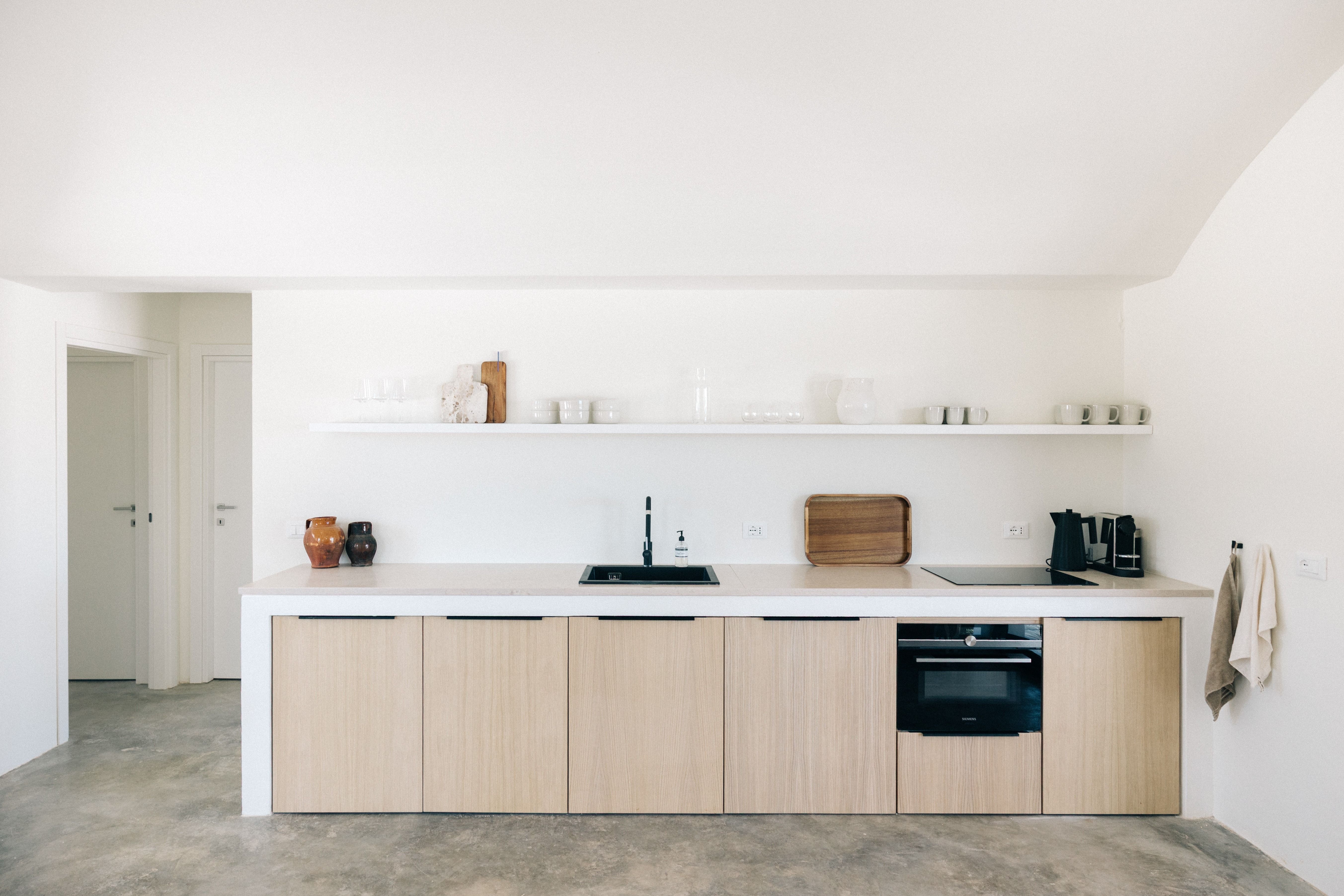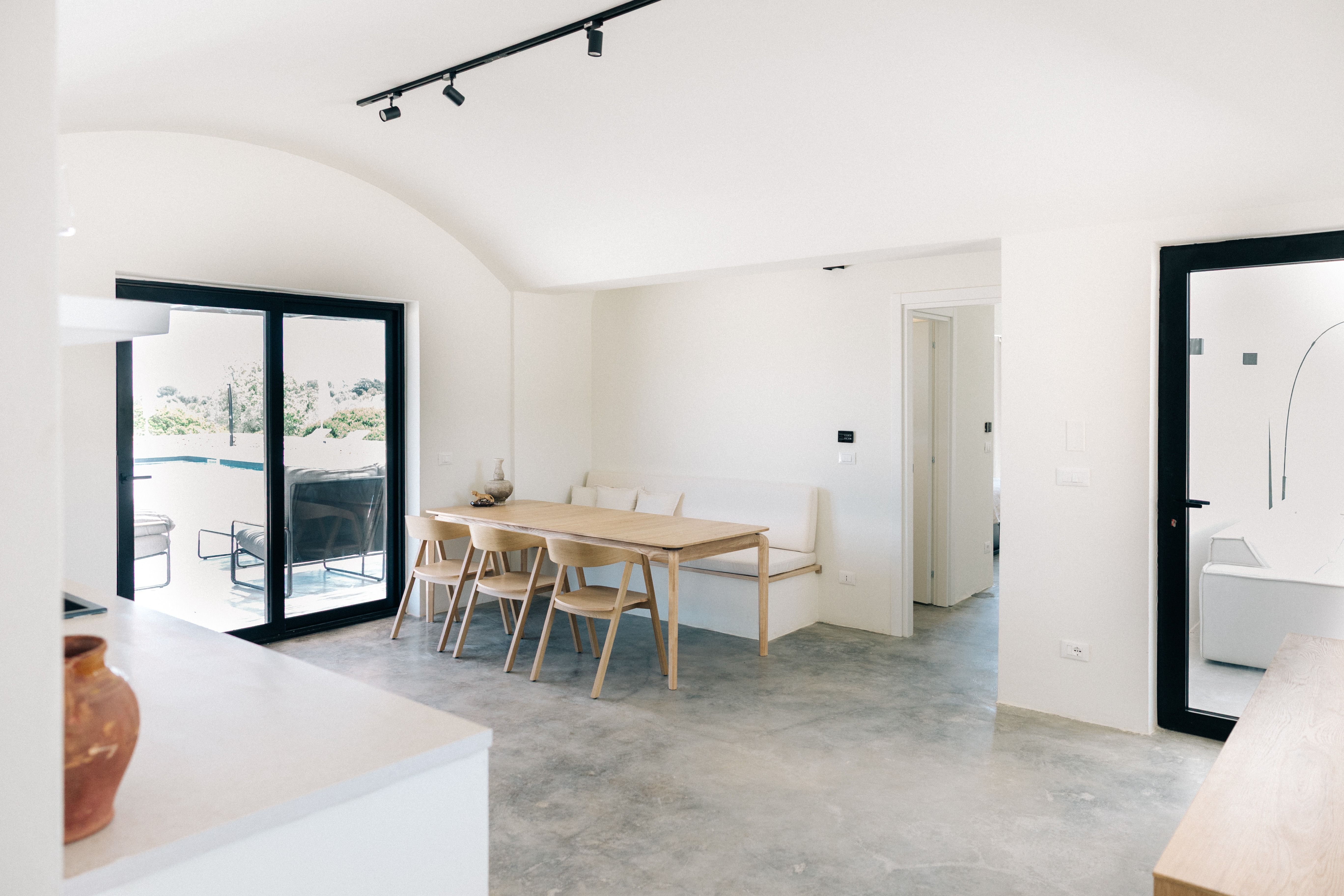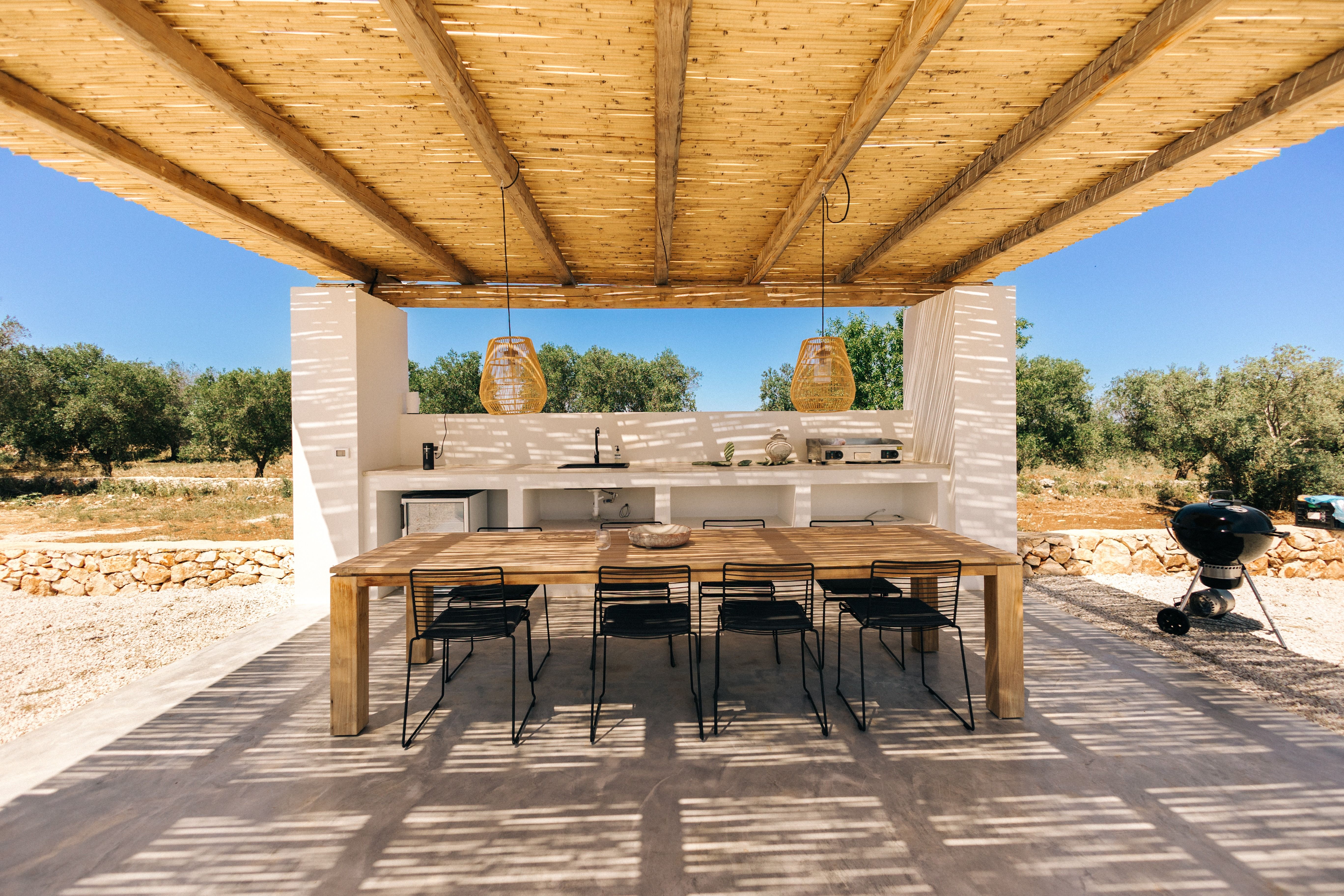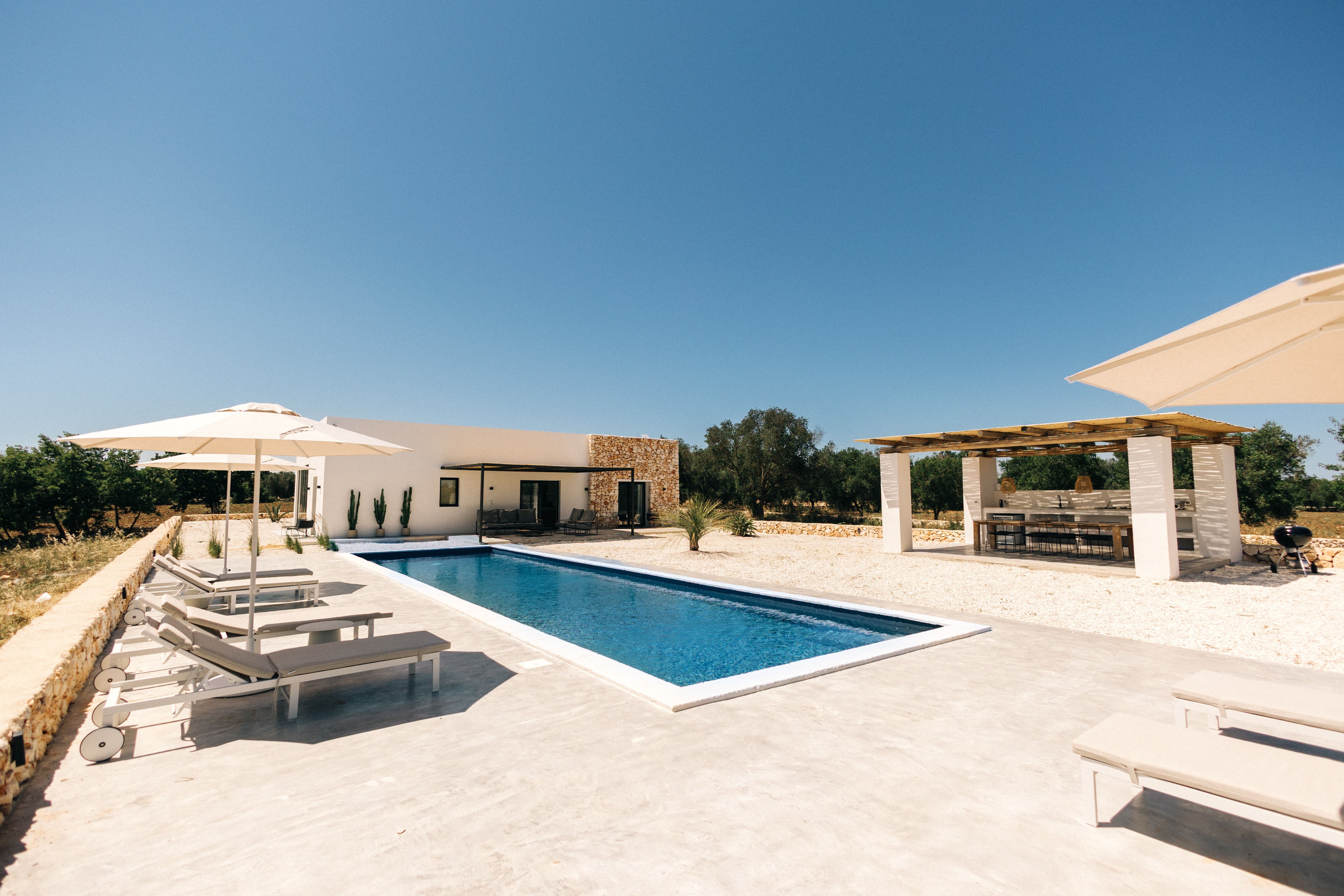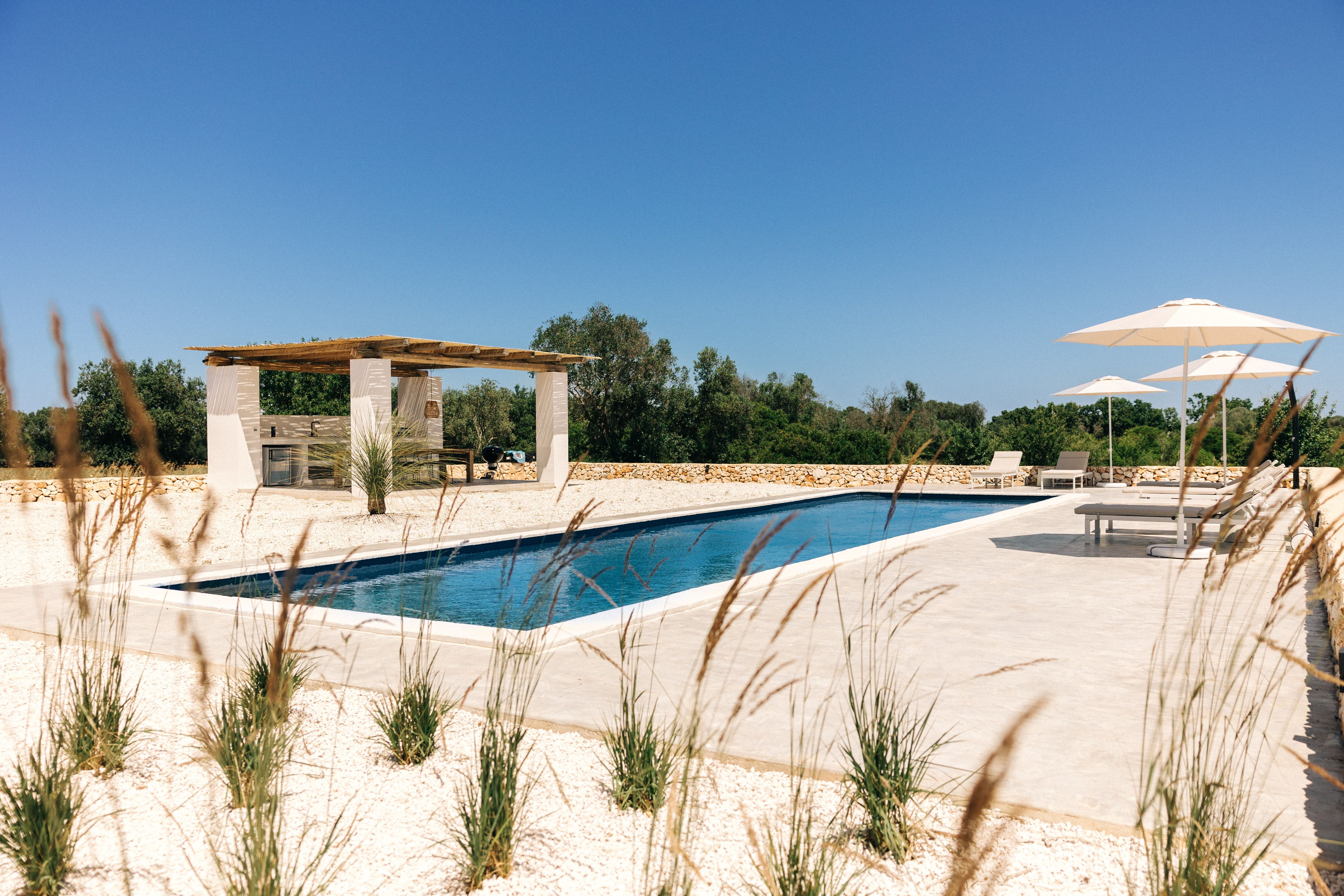 This sleek, minimal home does everything it can to keep your attention on the sun-soaked terrace space. Whitewashed walls and neutral tones only emphasise the Puglian sky and greenery – and this is impossible to miss from the tall glass doors surrounding the home. Although it may look sparse, this home has everything you need for an effortless stay, including a fully equipped kitchen and an alfresco dining area with a barbecue. You could easily spend all day relaxing by the pool or on the shady patio – but we suggest making time to visit Ostuni, where you can wander the Medieval streets lined with its characteristic whitewashed buildings.