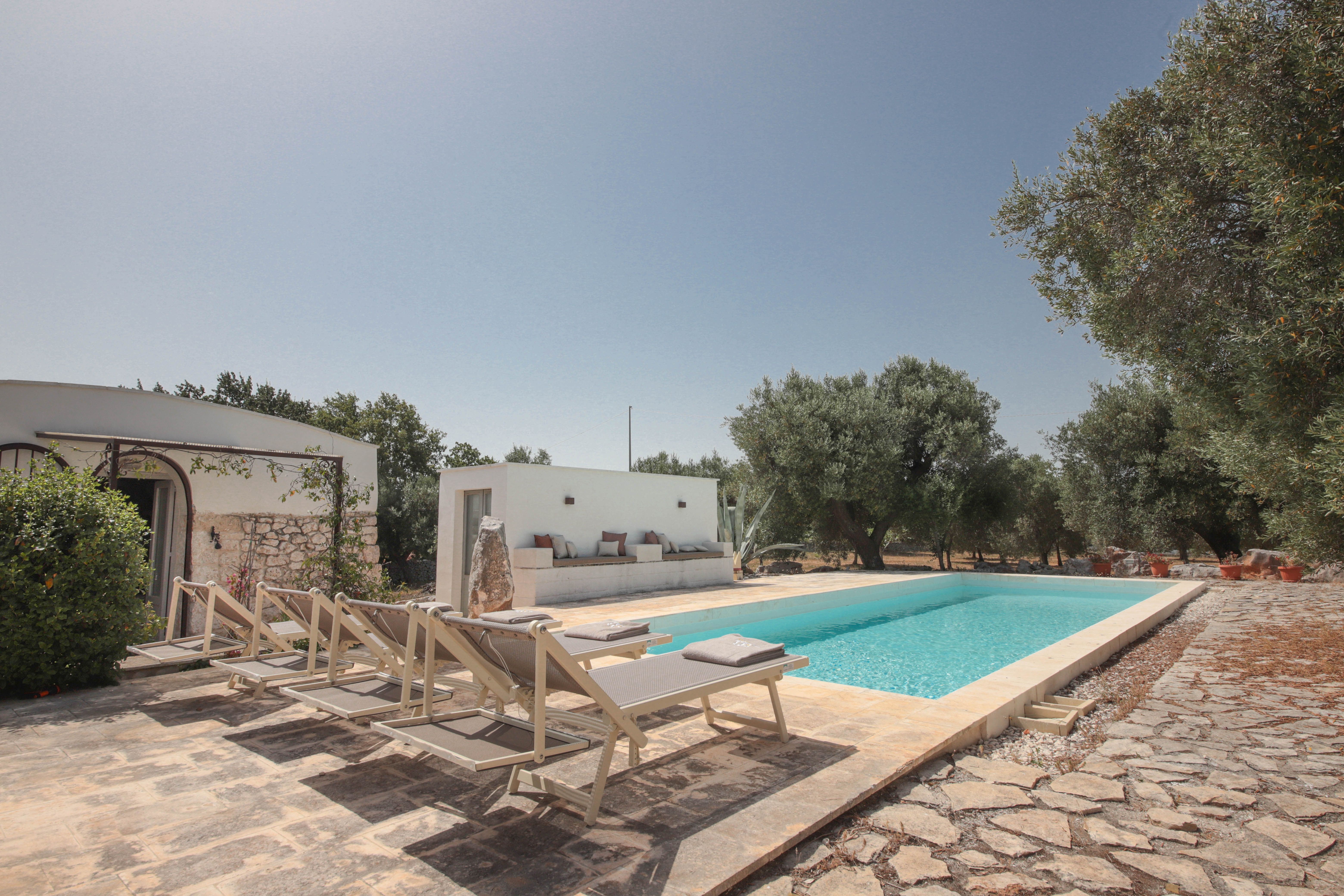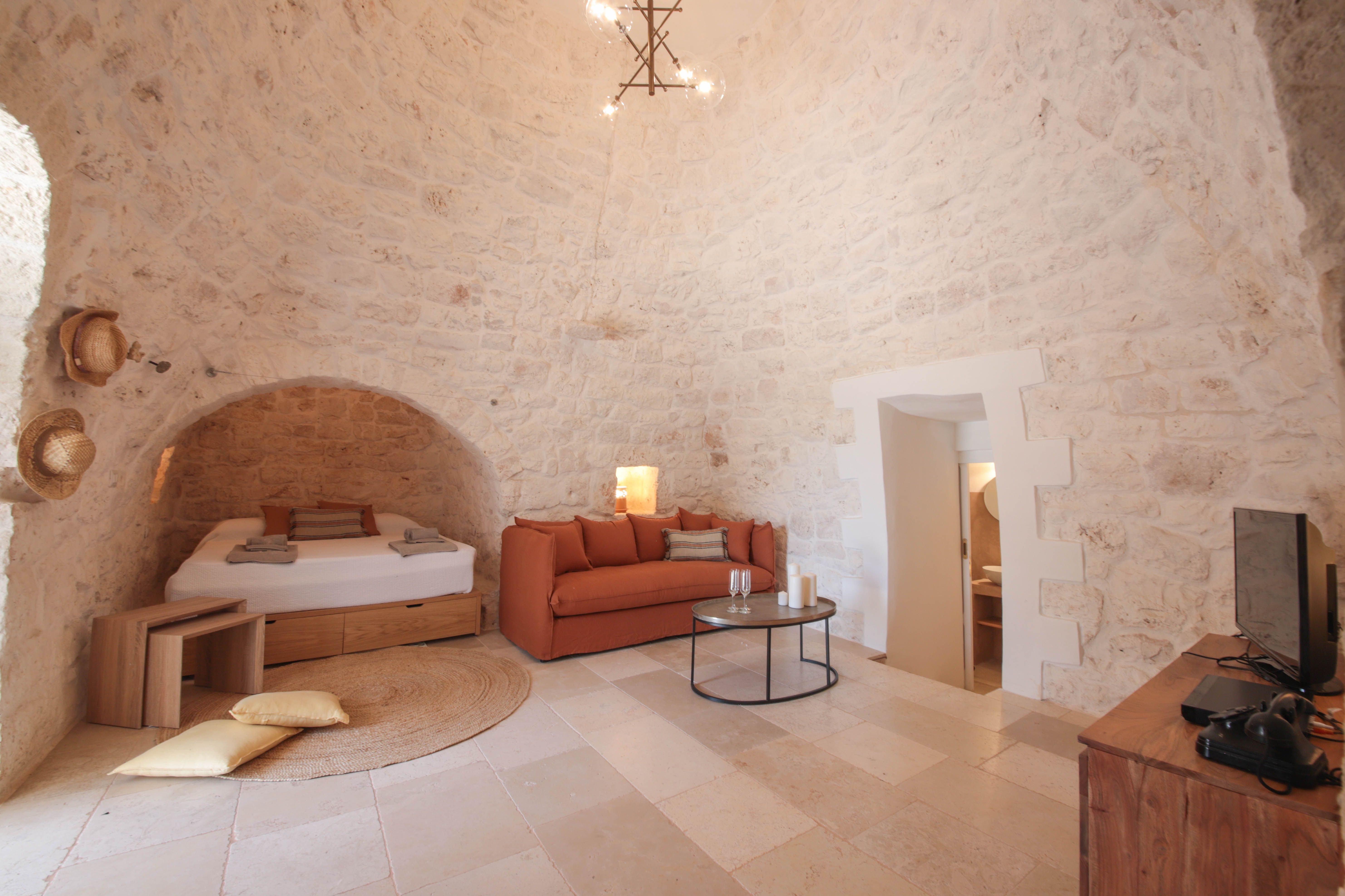 Hidden amongst olive trees, this villa is a great base for a Puglia adventure. The outdoor spaces stand out here – the private pool is sure to be a crowd-pleaser, while the alfresco dining area and outdoor kitchen mean you'll rarely need to venture inside. The interior is pleasant, though it lacks natural light in places. And while we loved the exposed brickwork in the living area, one of the beds is here – this might prove inconvenient and makes the home more suitable for families in our eyes. Location-wise, you're well served, because not only is the coast not far away, the charming city of Ostuni is just a 3km drive.