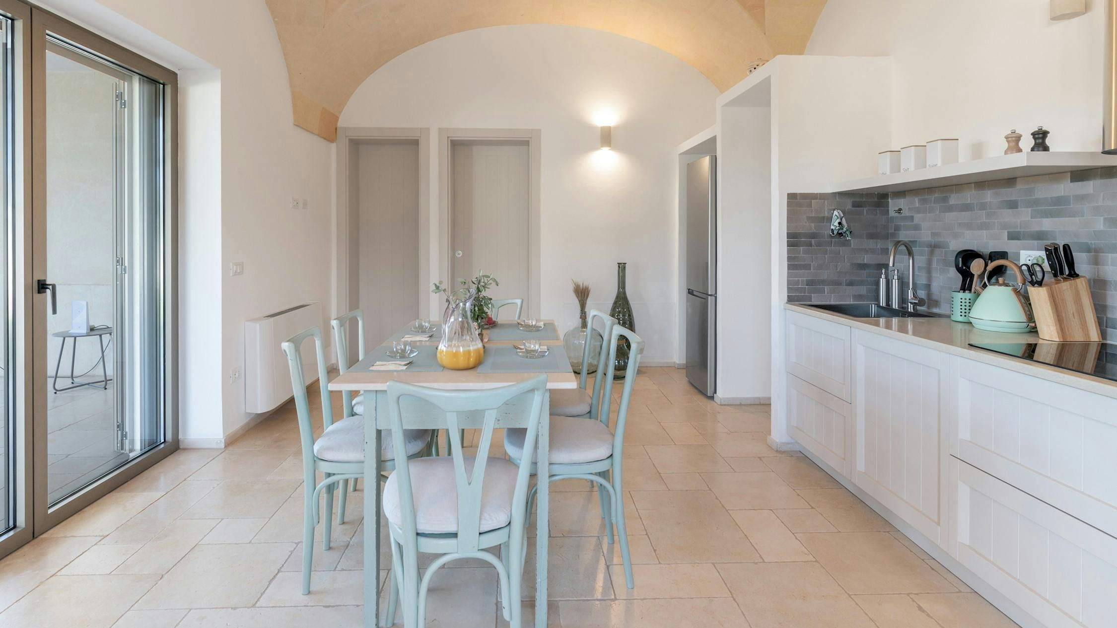Amidst the olive trees of the Itria Valley, this home offers a rustic sanctuary for a dreamy Italian getaway. Outside, there’s a private pool, an outdoor kitchen and a barbecue – perfect for alfresco dining. Inside, the rooms are simple, fresh and family friendly with all the essentials you could need to switch off and unwind. Private parking is available and you’ll find plenty to explore in the surroundings. From here, it’s a short drive to Ostuni, Ceglie Messapica and Alberobello.