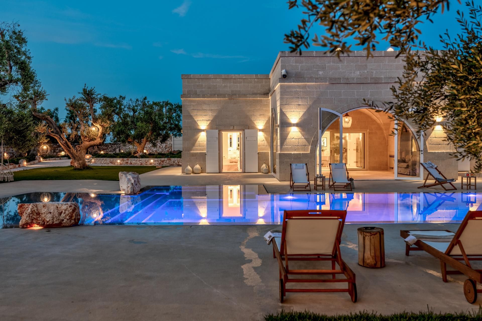 Primed for relaxation, this home is truly special. It features a beautiful pool surrounded by ancient olive trees, and the outdoor kitchen with its wood-fired oven allows you to enjoy alfresco meals. The icing on the cake, literally, is the rooftop space complete with a lounge area and hot tub. Inside, there’s plenty of room for everyone to unwind, and we love that every bedroom is en-suite. As for the location, it’s just as impressive. The charming, whitewashed town of Ostuni is a short drive away, and there are countless stunning beaches to explore nearby.