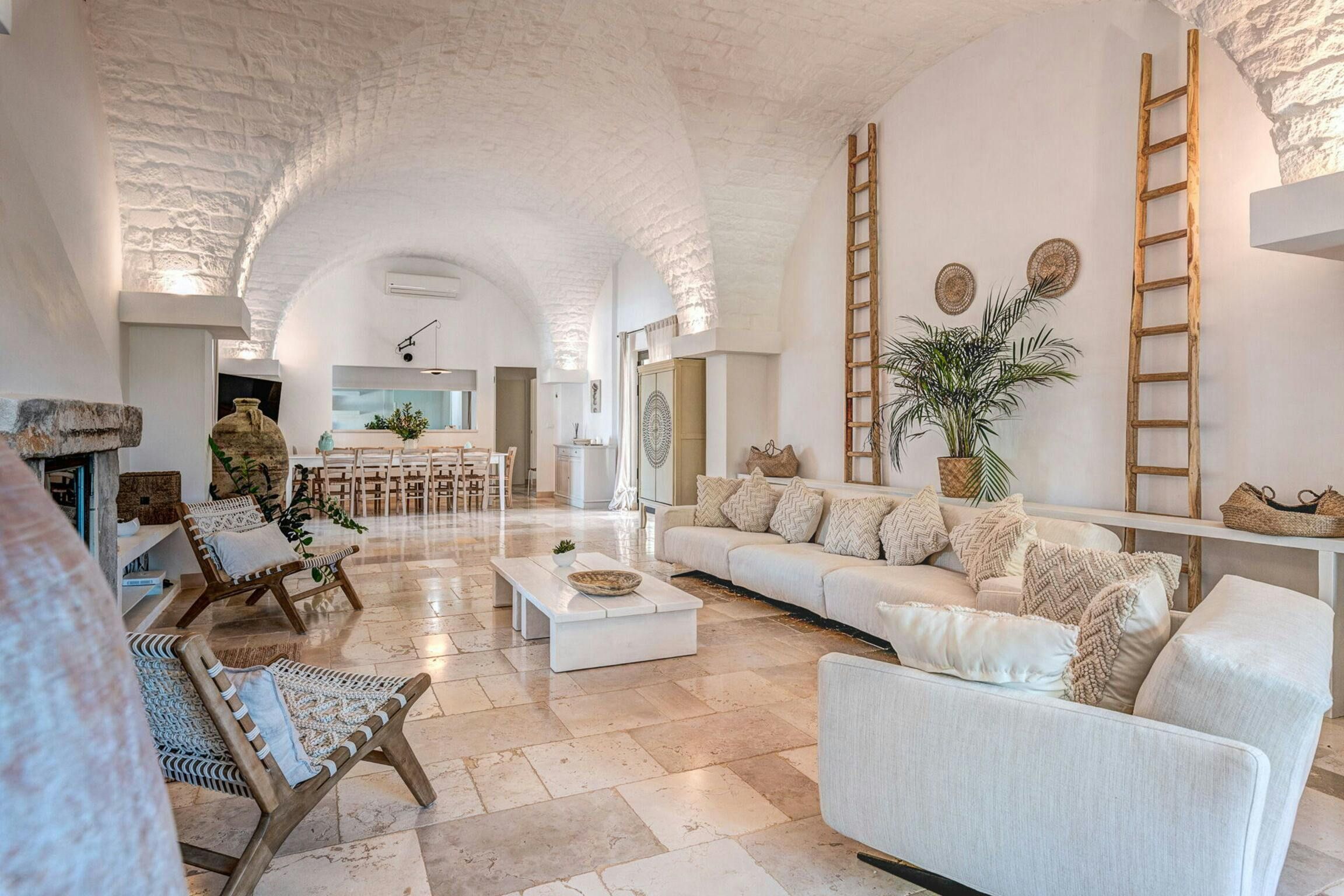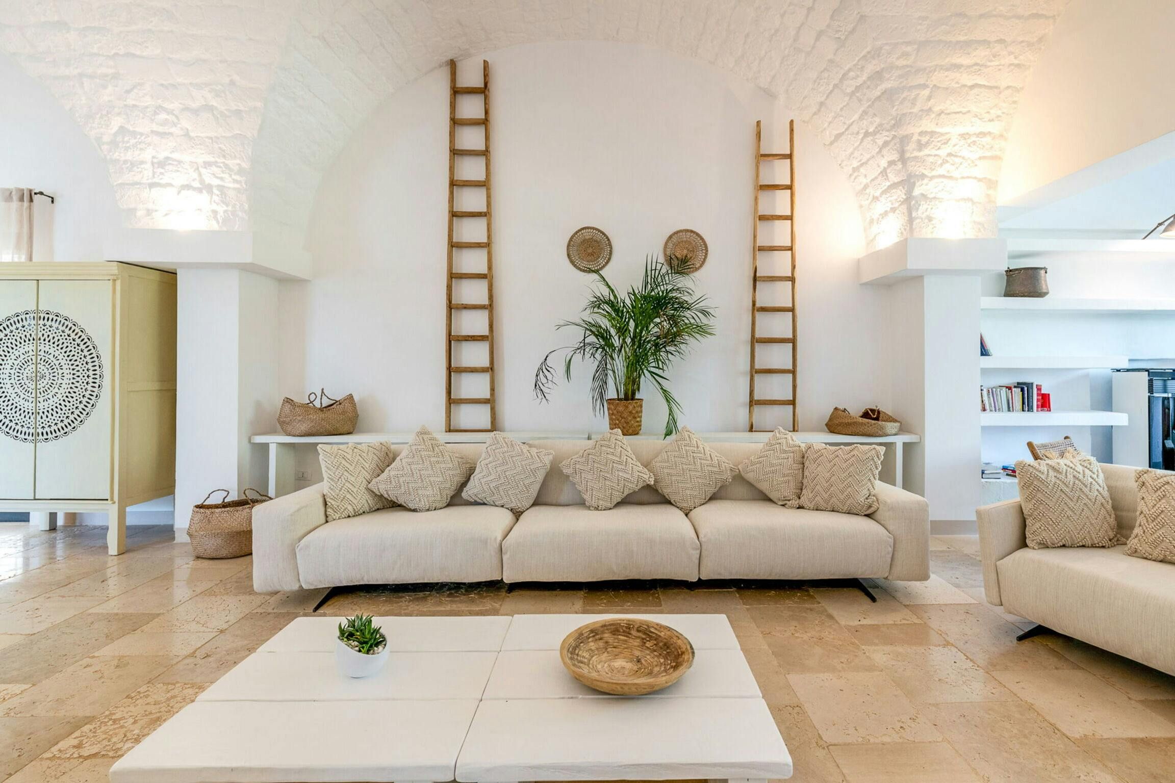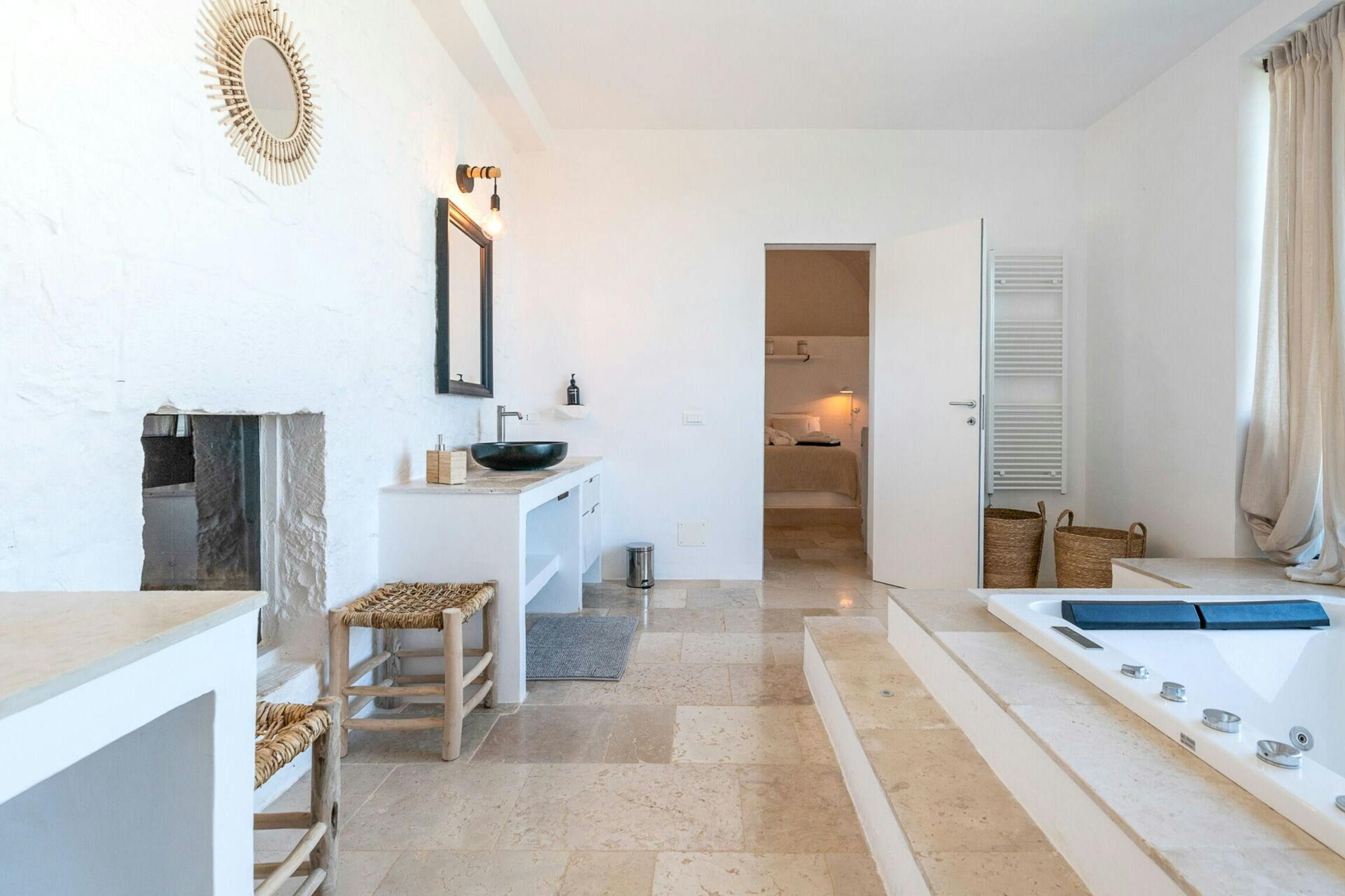 A ten-minute drive from Ostuni, this villa offers a dreamy escape in Puglia. The garden was designed to take advantage of the sunshine. You can work out in the outdoor gym, cool off with a dip in the pool, or tuck into an Italian feast on the terrace. Inside, the ivory hues and natural accents fit in perfectly with Puglia's white-washed towns. Our favourite space is the main bedroom, where a relaxing soak in the Jacuzzi bath is the perfect way to end the day. Just note that two bedrooms don't have air conditioning.