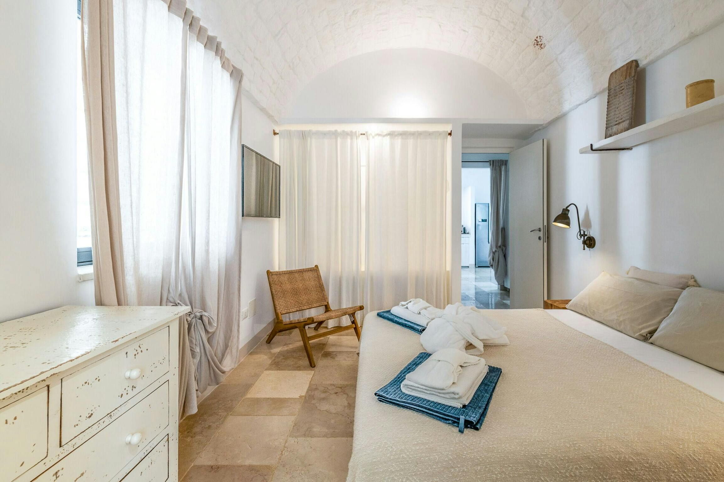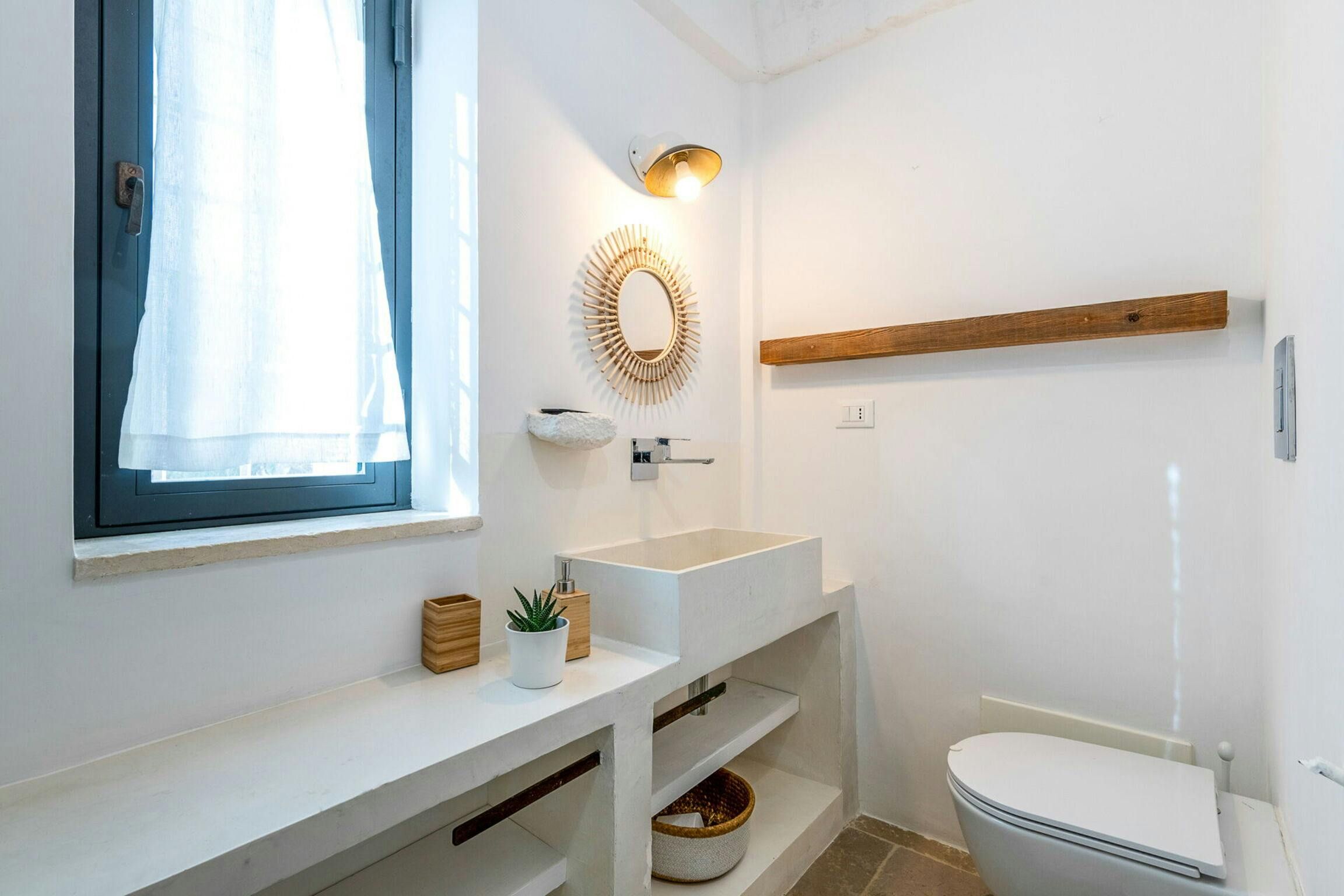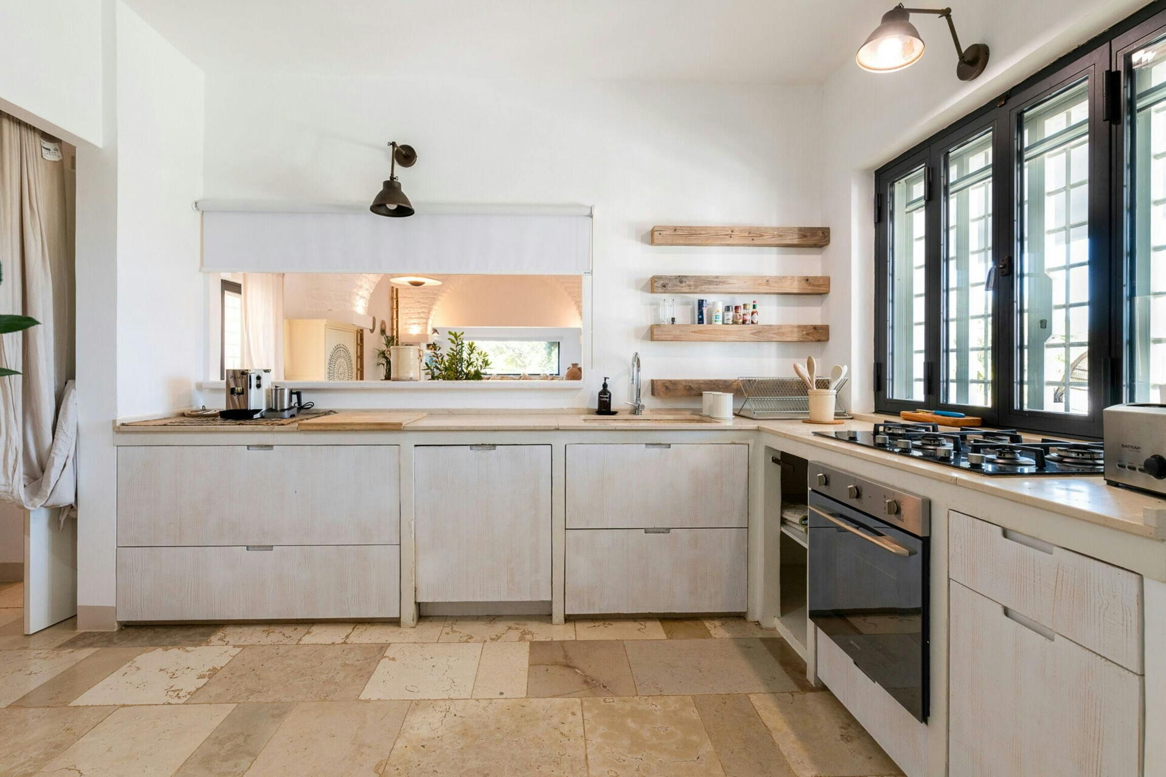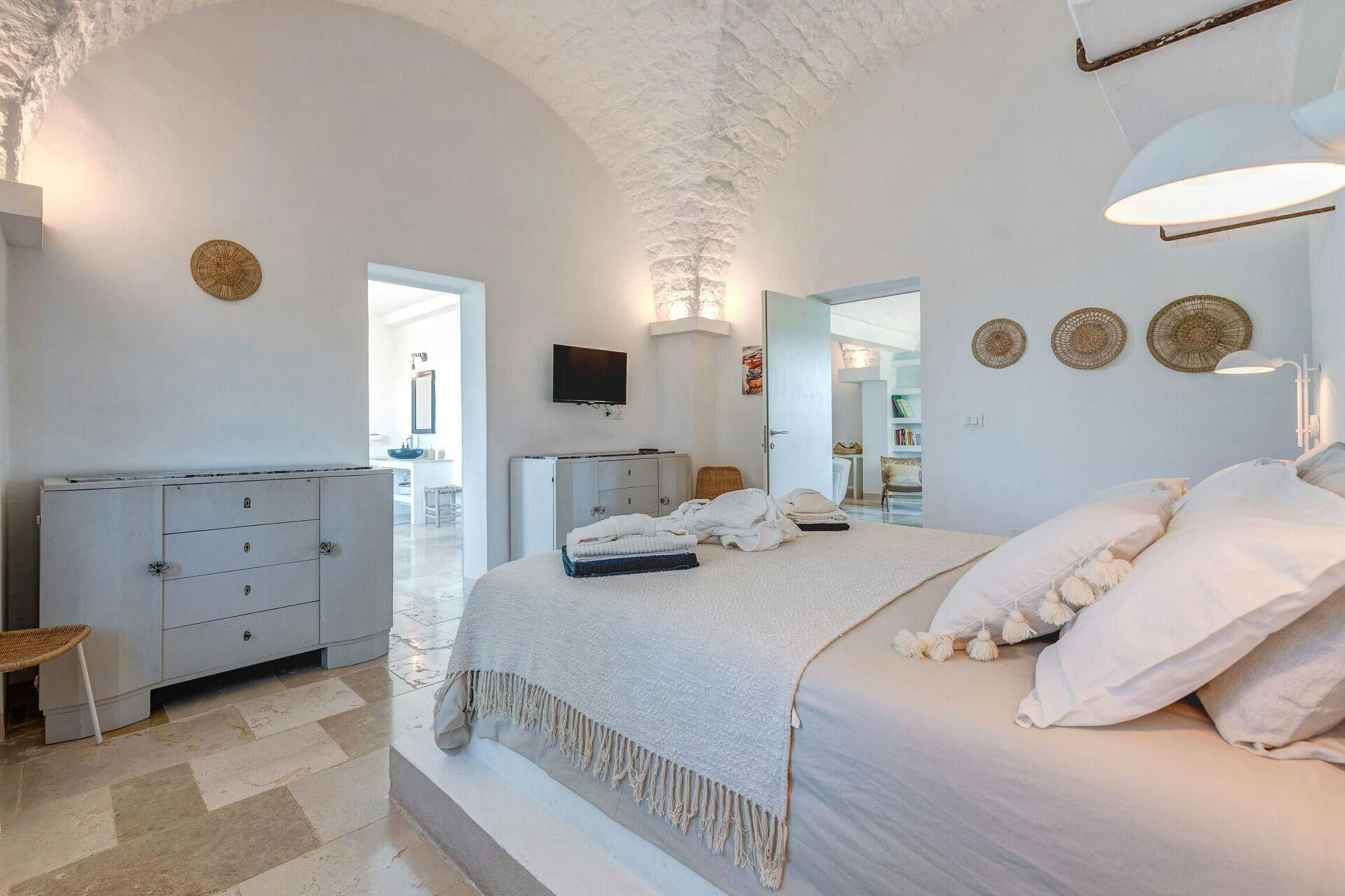 A ten-minute drive from Ostuni, this villa offers a dreamy escape in Puglia. The garden was designed to take advantage of the sunshine. You can work out in the outdoor gym, cool off with a dip in the pool, or tuck into an Italian feast on the terrace. Inside, the ivory hues and natural accents fit in perfectly with Puglia's white-washed towns. Our favourite space is the main bedroom, where a relaxing soak in the Jacuzzi bath is the perfect way to end the day. Just note that two bedrooms don't have air conditioning.