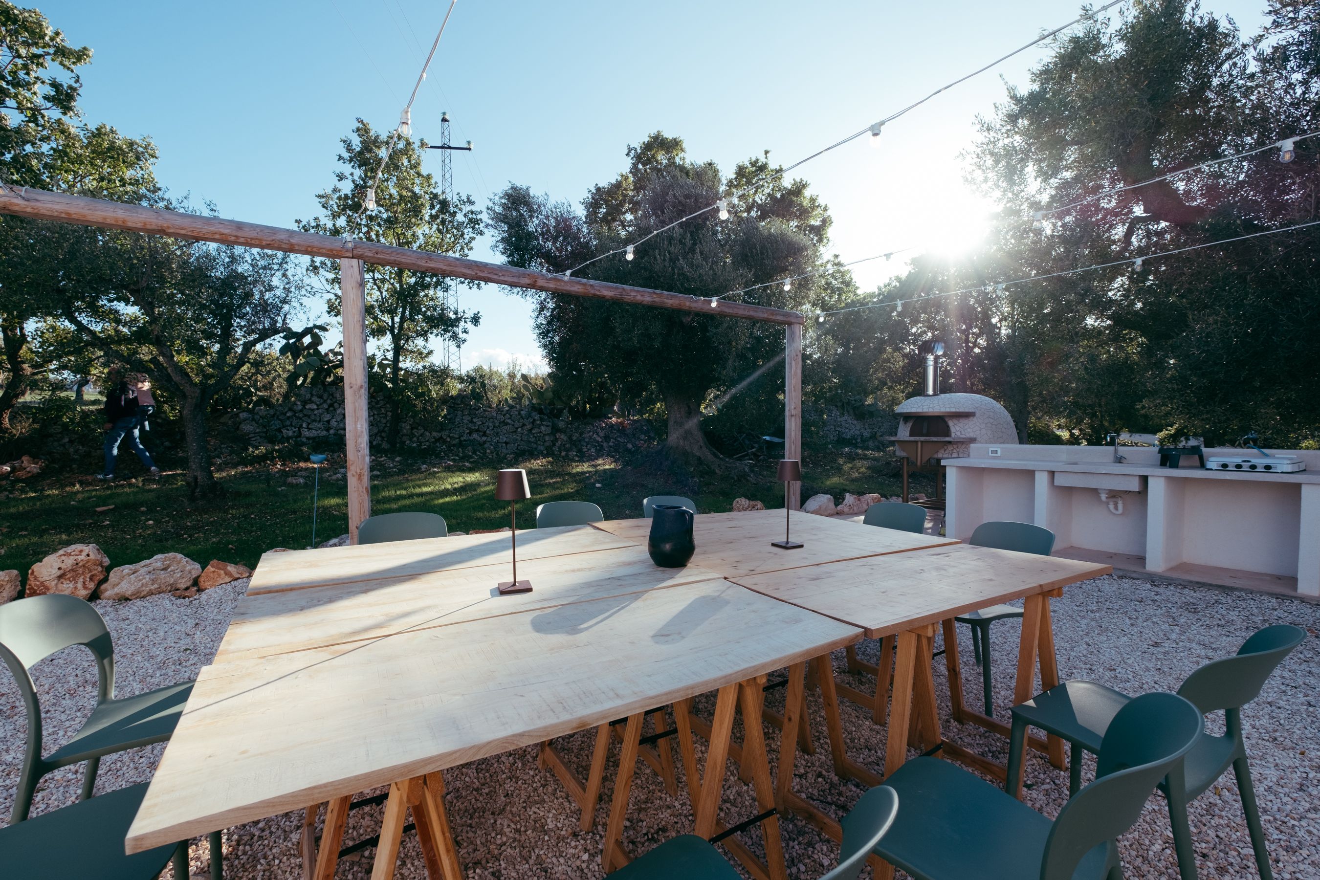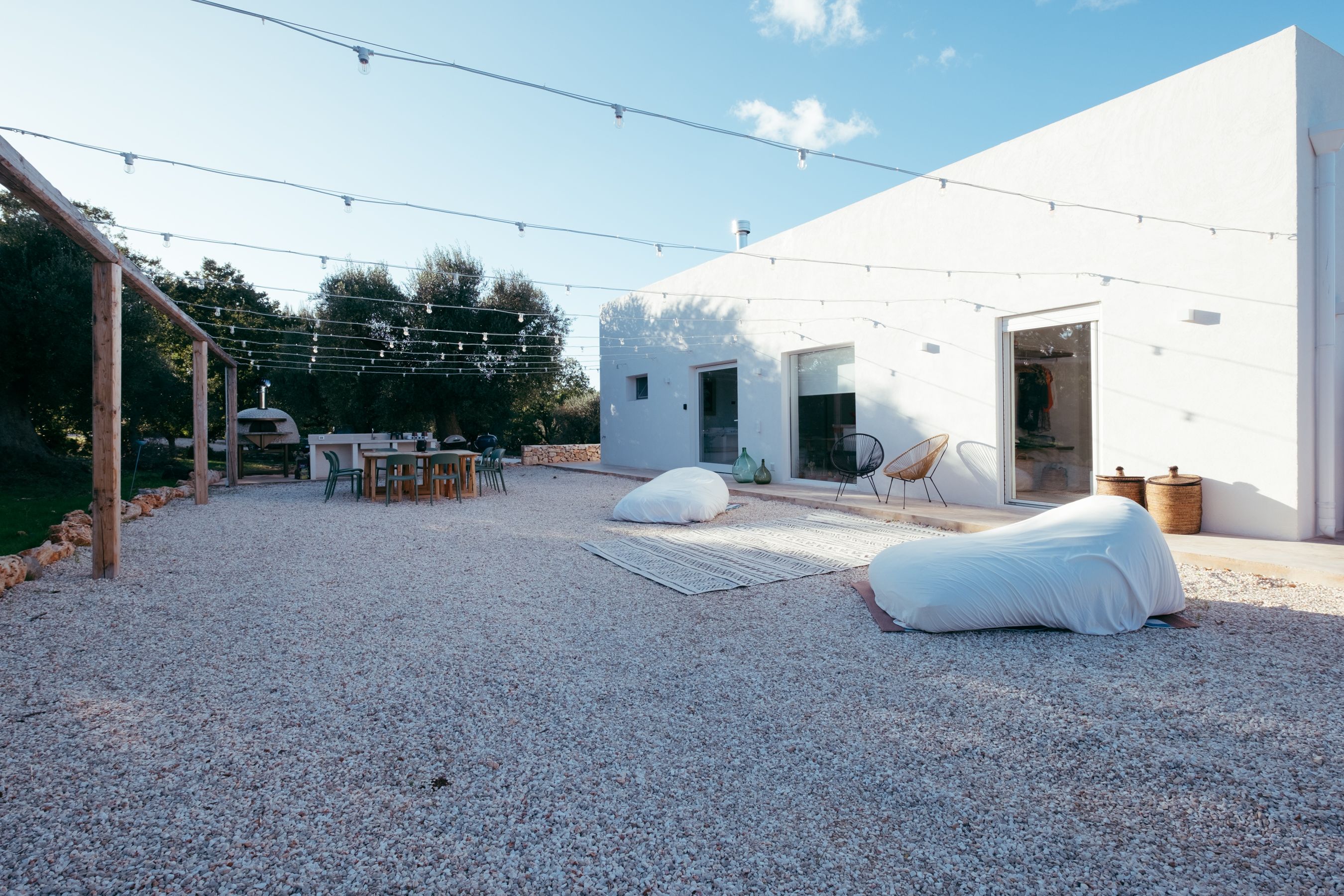 The interiors of this Italian villa are full of typical rustic charm – but it's outdoors where you'll be spending most of your time. There are multiple alfresco spaces for entertaining, including a bocce court, a ping-pong table, and a large outdoor kitchen equipped with a wood-fired oven – perfect for making homemade pizza. As night draws in, set up the outdoor projector for movie nights or relax in the hot tub under the stars. Within easy reach of historic Ostuni and the beaches of Lecce, this home is perfect for a quiet Italian getaway.