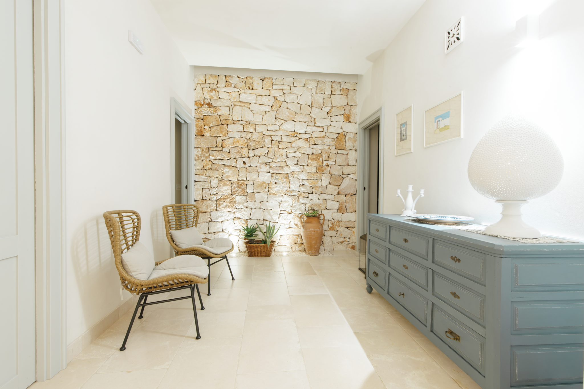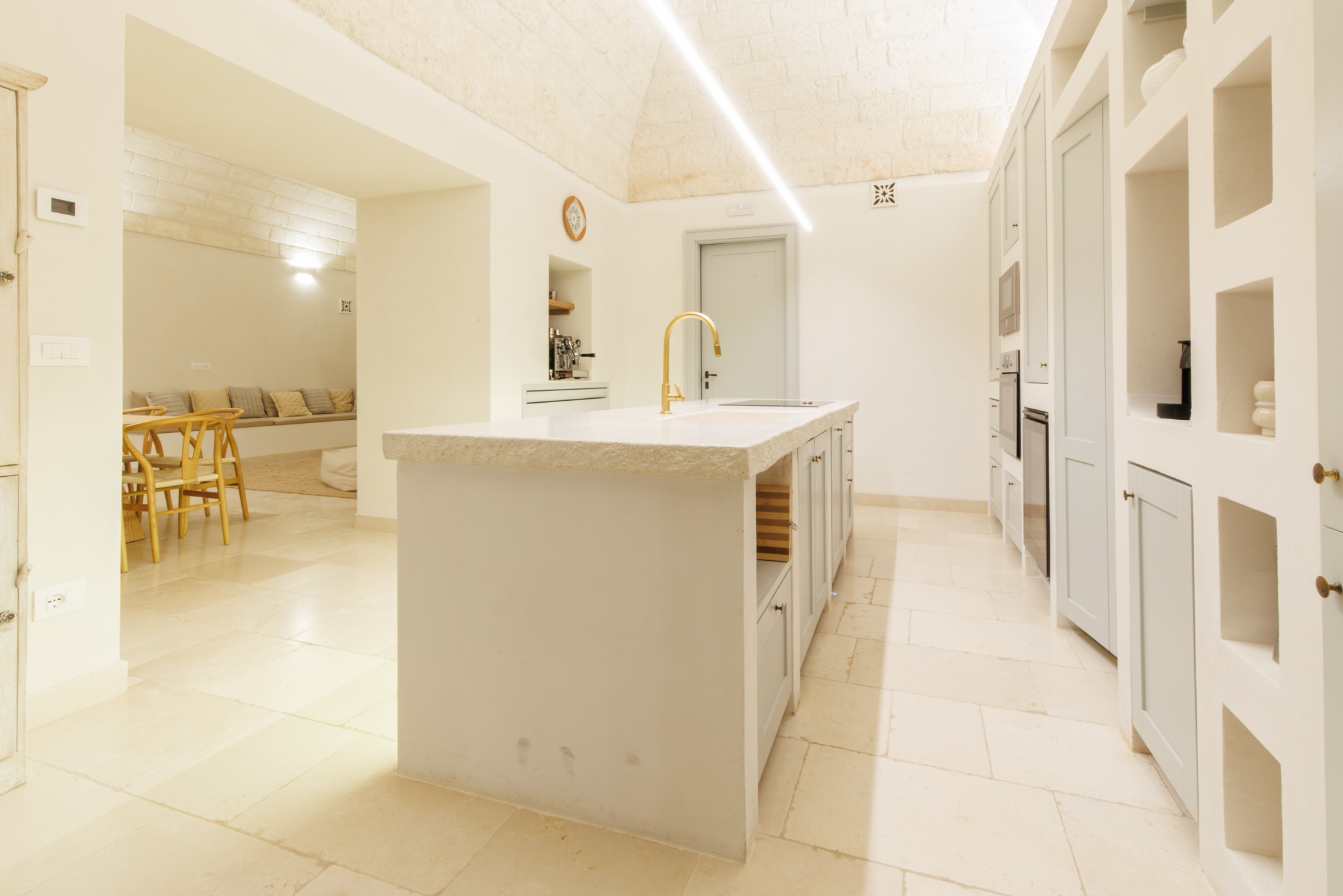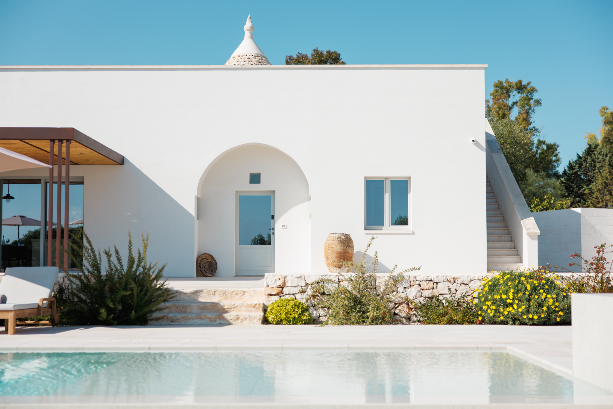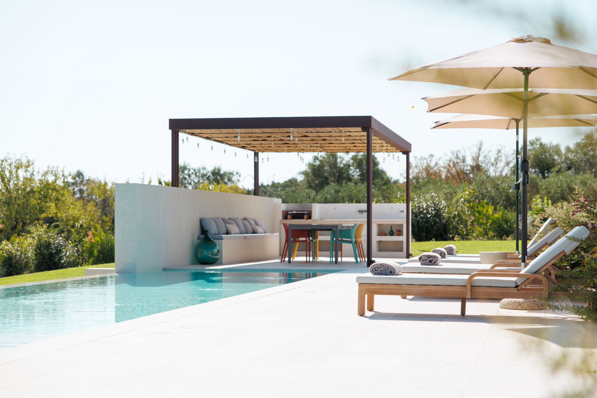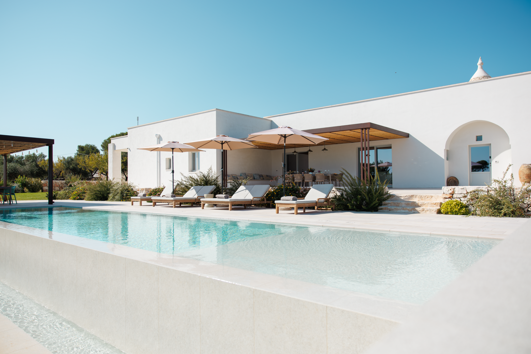 This stunning villa is made for sun-filled days outside. Although the home's three-wing layout is ideal for larger groups seeking privacy, you'll surely spend the most time gathered outside. There's space for the whole family to dine under the veranda, and you'll appreciate the chance to prepare meals outside with the barbecue and outdoor kitchen. In the evening, take drinks up to the villa's rooftop – it's the best vantage point to catch the sunset over the surrounding olive groves. A short drive from the White City of Ostuni and picturesque beaches, you won't be short of ways to spend your time.