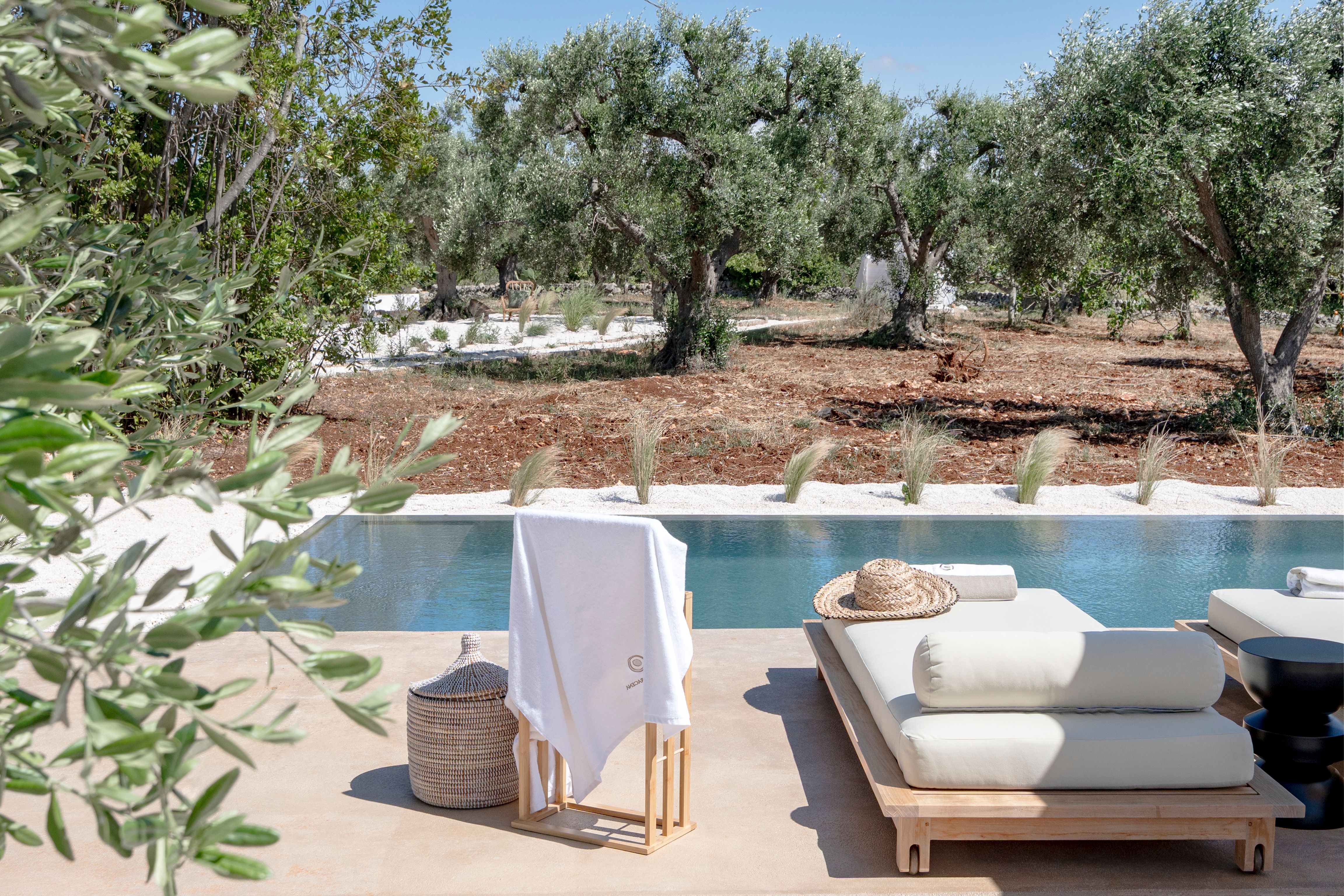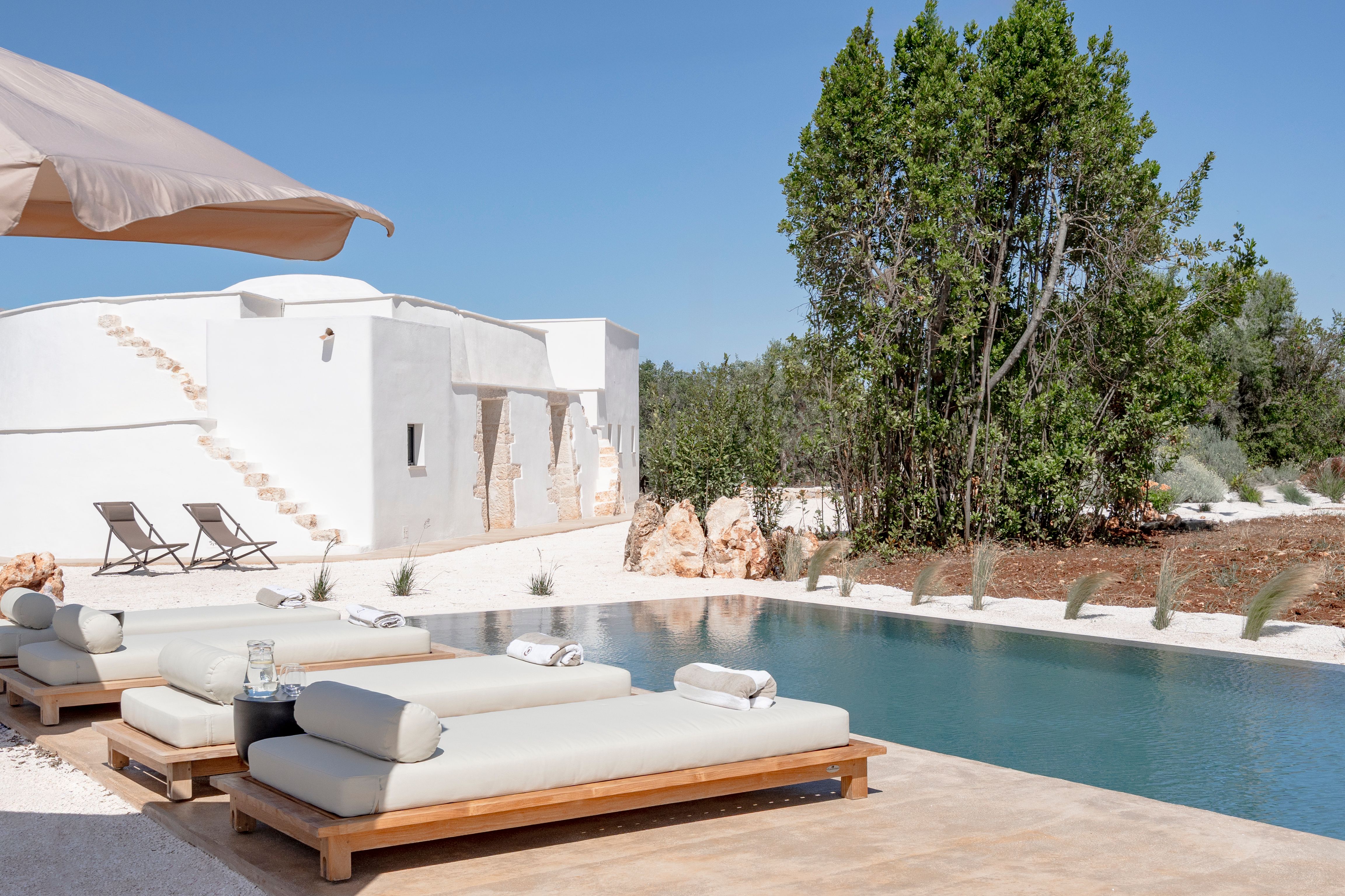 Tucked among ancient olive trees near Ostuni, this villa is a masterclass in slow living. Designed by an architect and interior designer, it blends traditional trulli charm with natural materials — think beds carved into arched stone alcoves, woven textiles, and smooth concrete floors made for barefoot wandering. Outside, there’s an infinity pool, spots for lounging in the sun and shade, and a fully equipped outdoor kitchen ideal for long lunches and summer suppers. Though just a short drive from the Adriatic and 35 minutes from Brindisi Airport, it feels blissfully off-grid — a true escape.