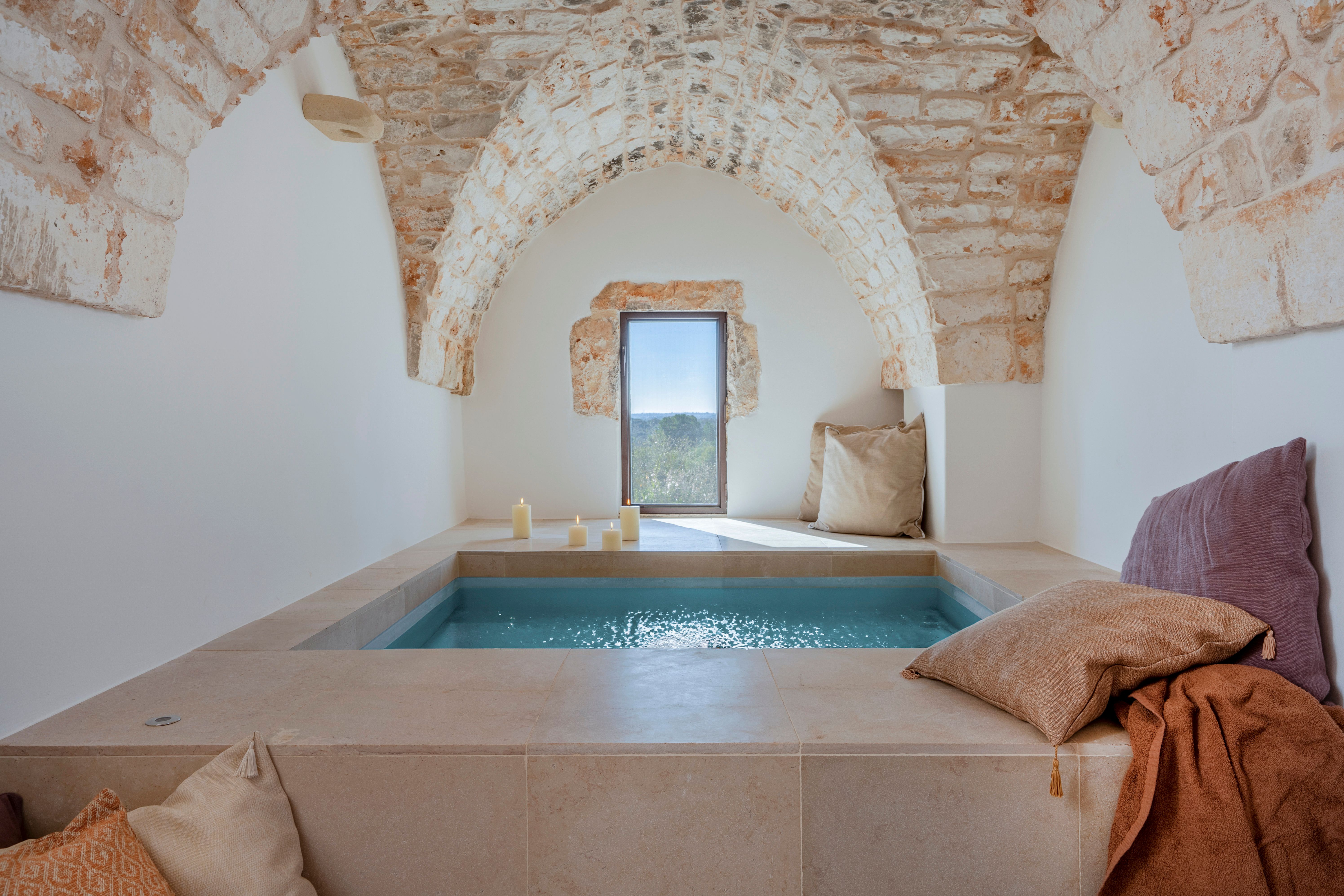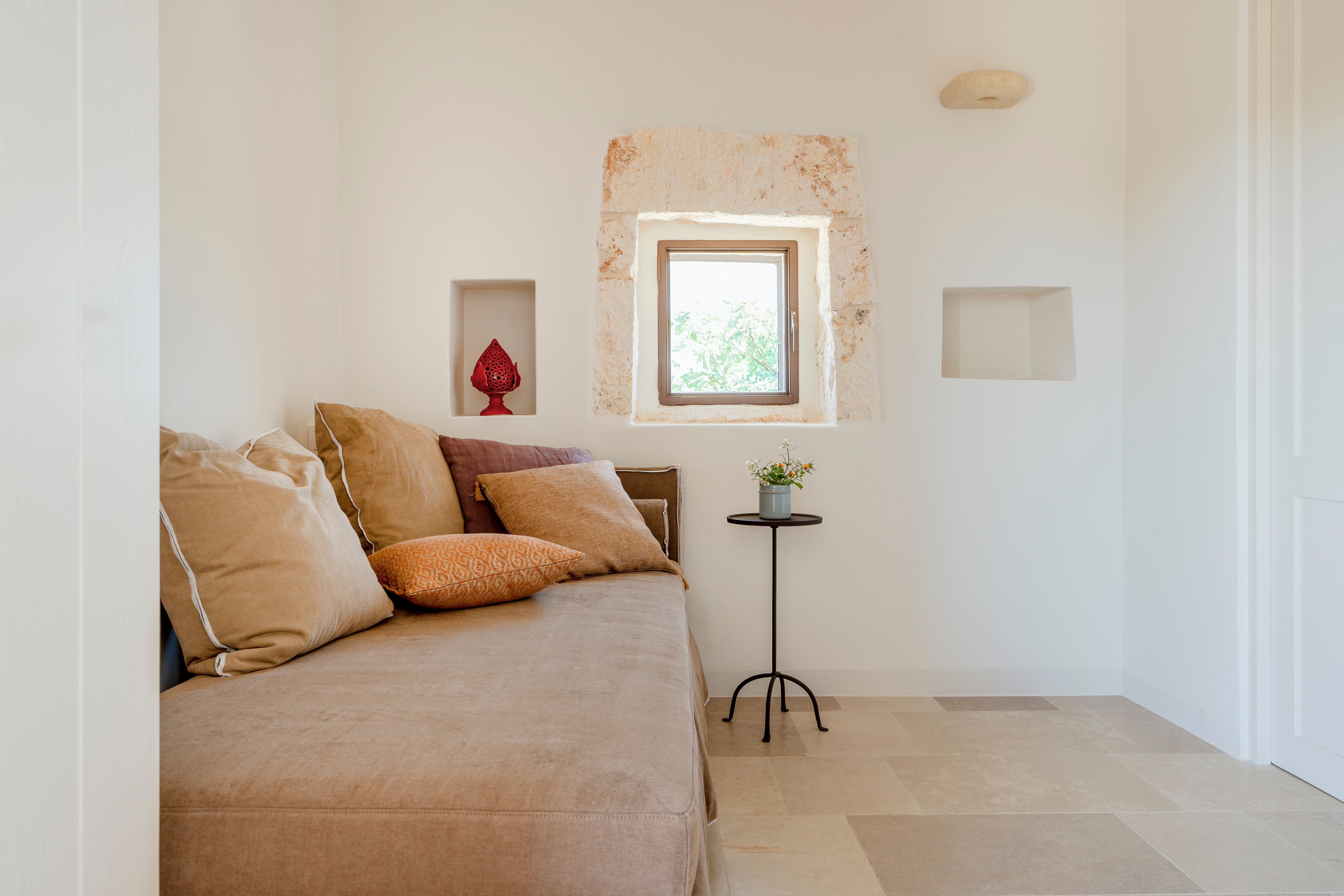 Set among ancient olive trees this historic stone Masseria is a charming place to stay. The property was once the summer retreat for a religious order and has been transformed into a holiday villa, seamlessly blending history with contemporary design. At the heart of the property is the spacious courtyard and private garden, surrounded by ancient dry-stone walls. In addition to the serene infinity pool there are panoramic terraces offering views of the traditional Trulli houses and a shaded lounge area, fringed by a citrus grove. There's a well-equipped kitchen indoors but we're particularly fond of the outdoor kitchen, perfect for enjoying Italian feasts alfresco.