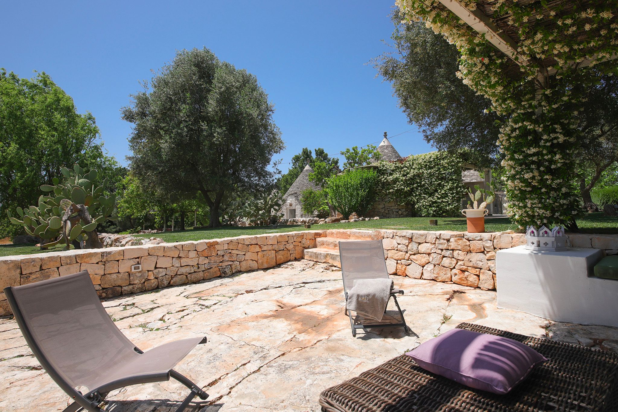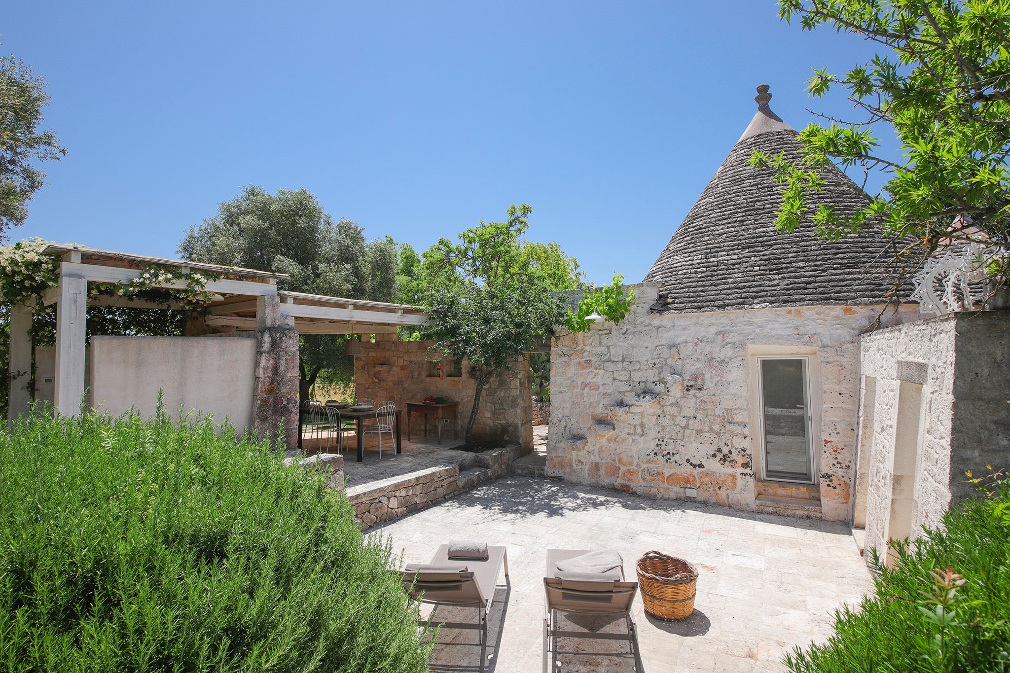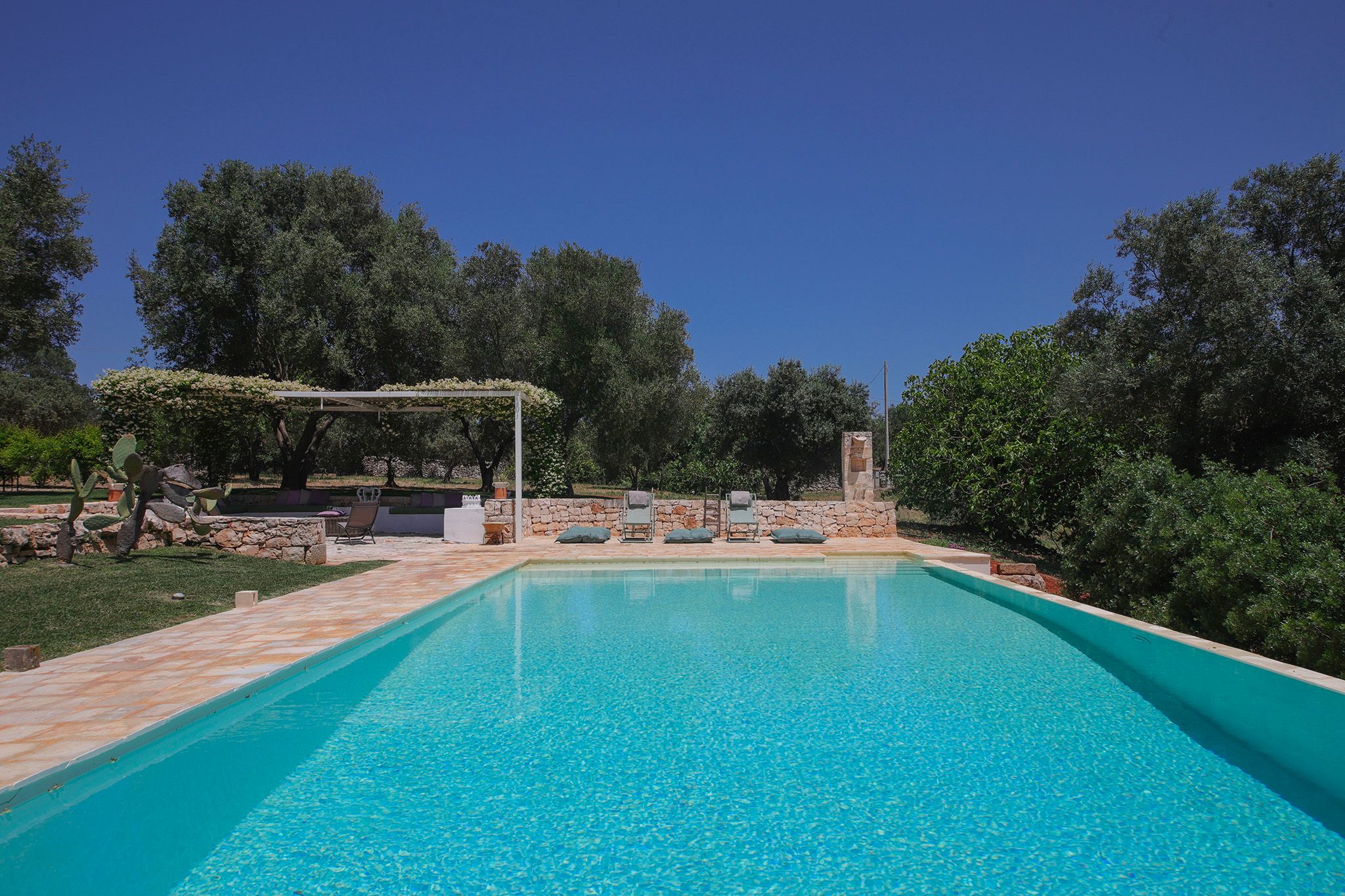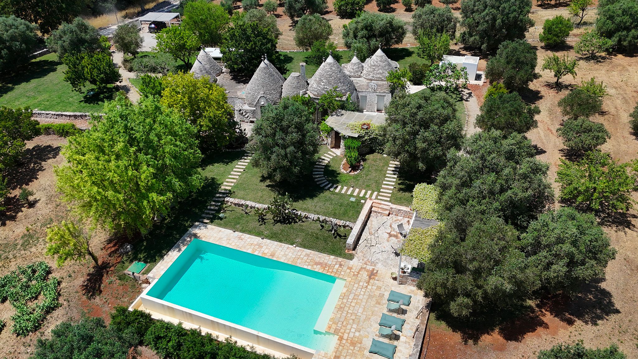 Surrounded by centuries-old olive trees, this complex of traditional trulli offers a magical stay in the heart of the Apulian countryside. Set across three independent buildings, the house delivers plenty of character and charm as well as space to stretch out and socialise. There’s a serene garden with a pool and an outdoor kitchen for alfresco dining. You can spend your days lounging at home or out exploring the region. From here, its just a short strive to Ostuni and Cisternino, while the nearest beaches are also within easy reach.