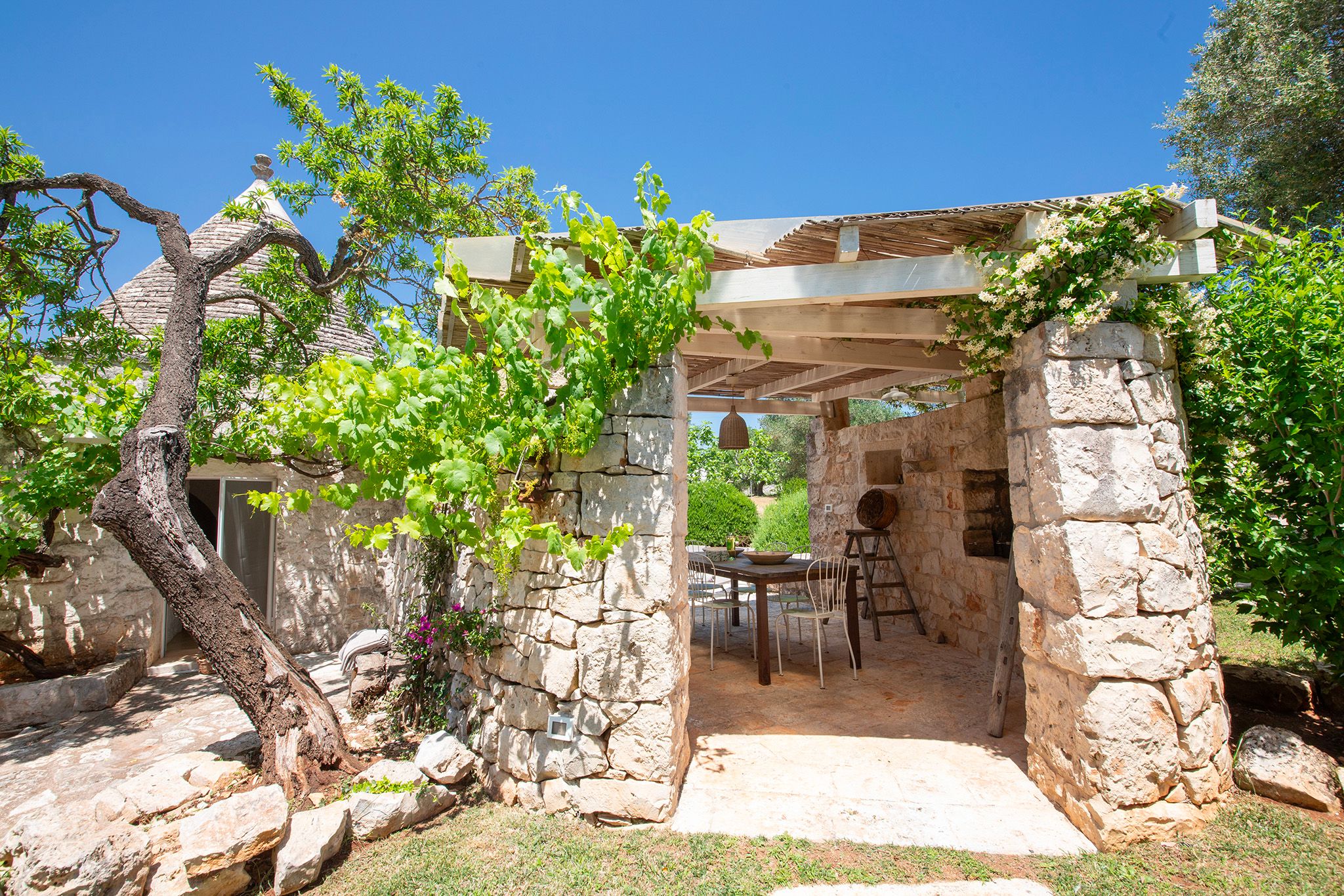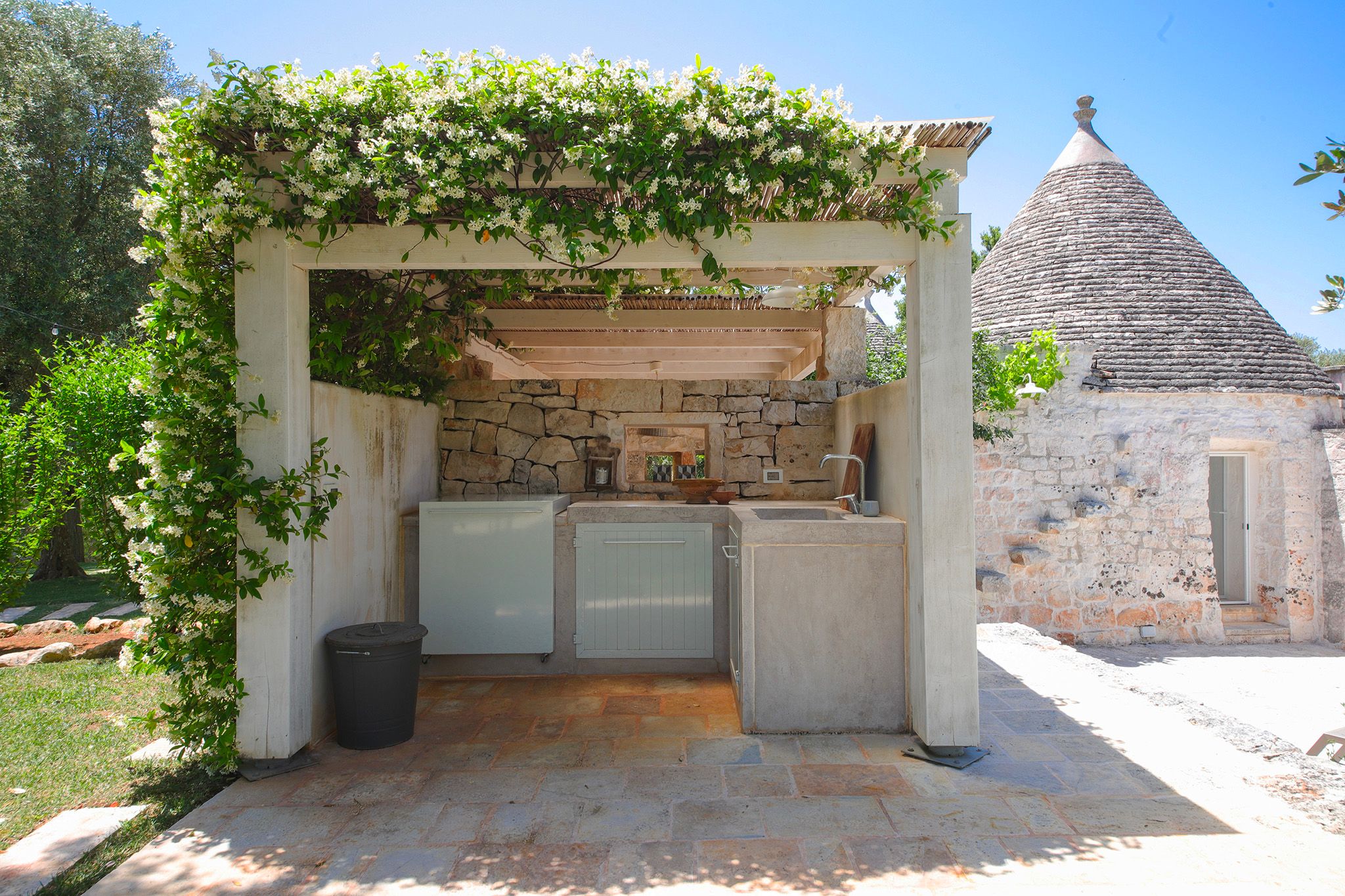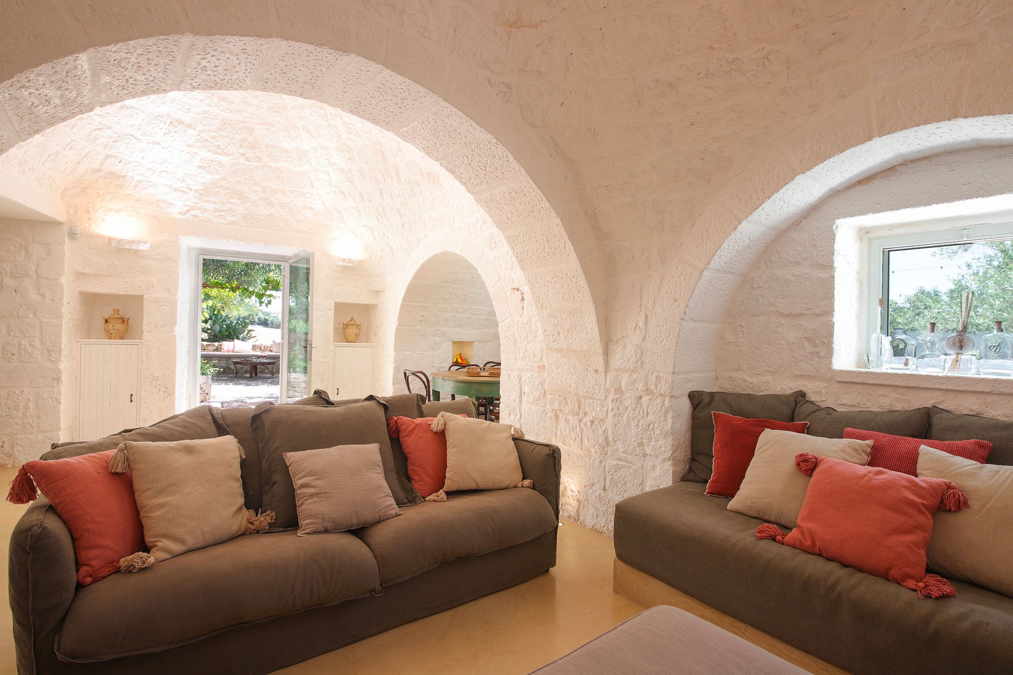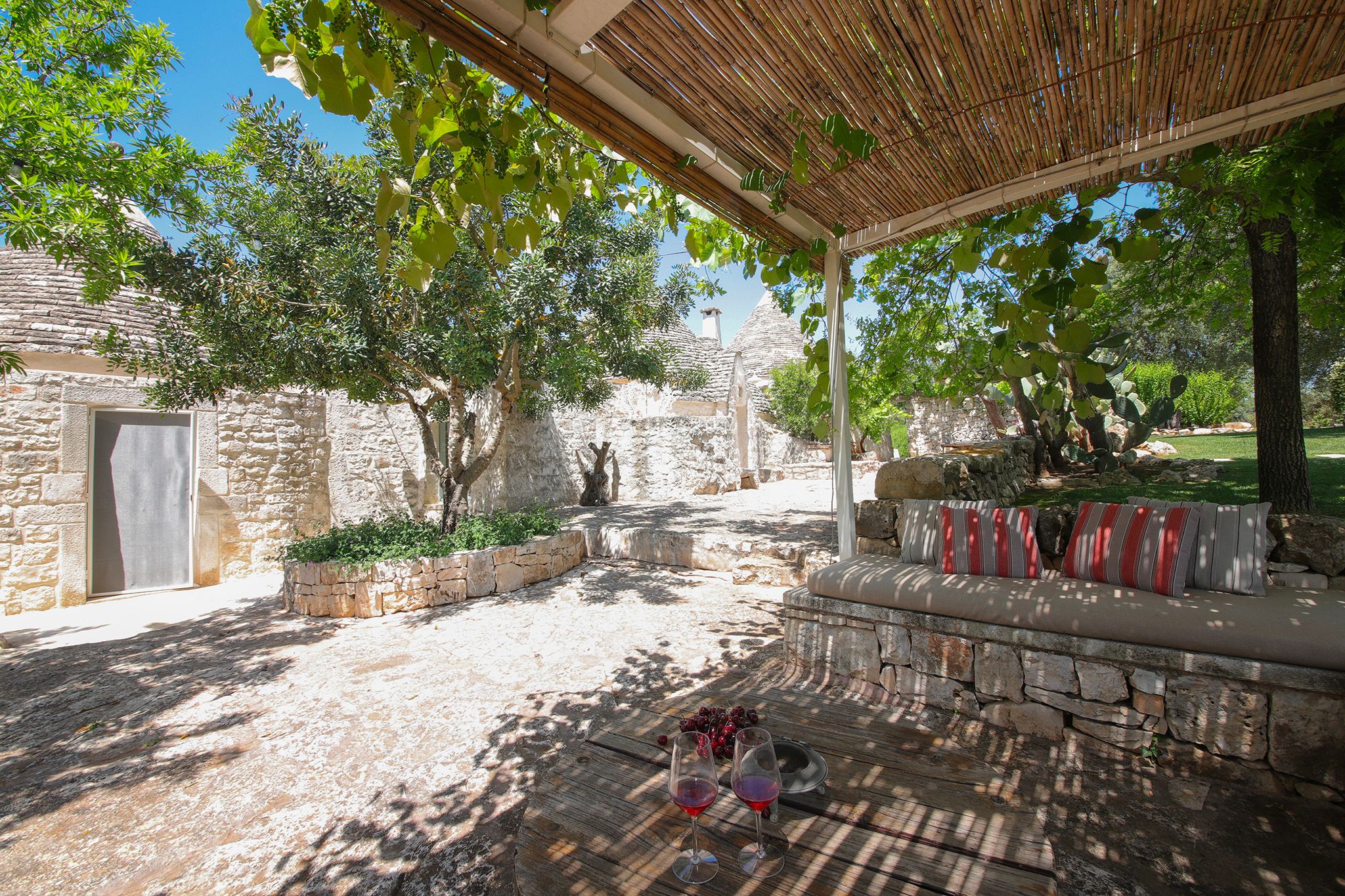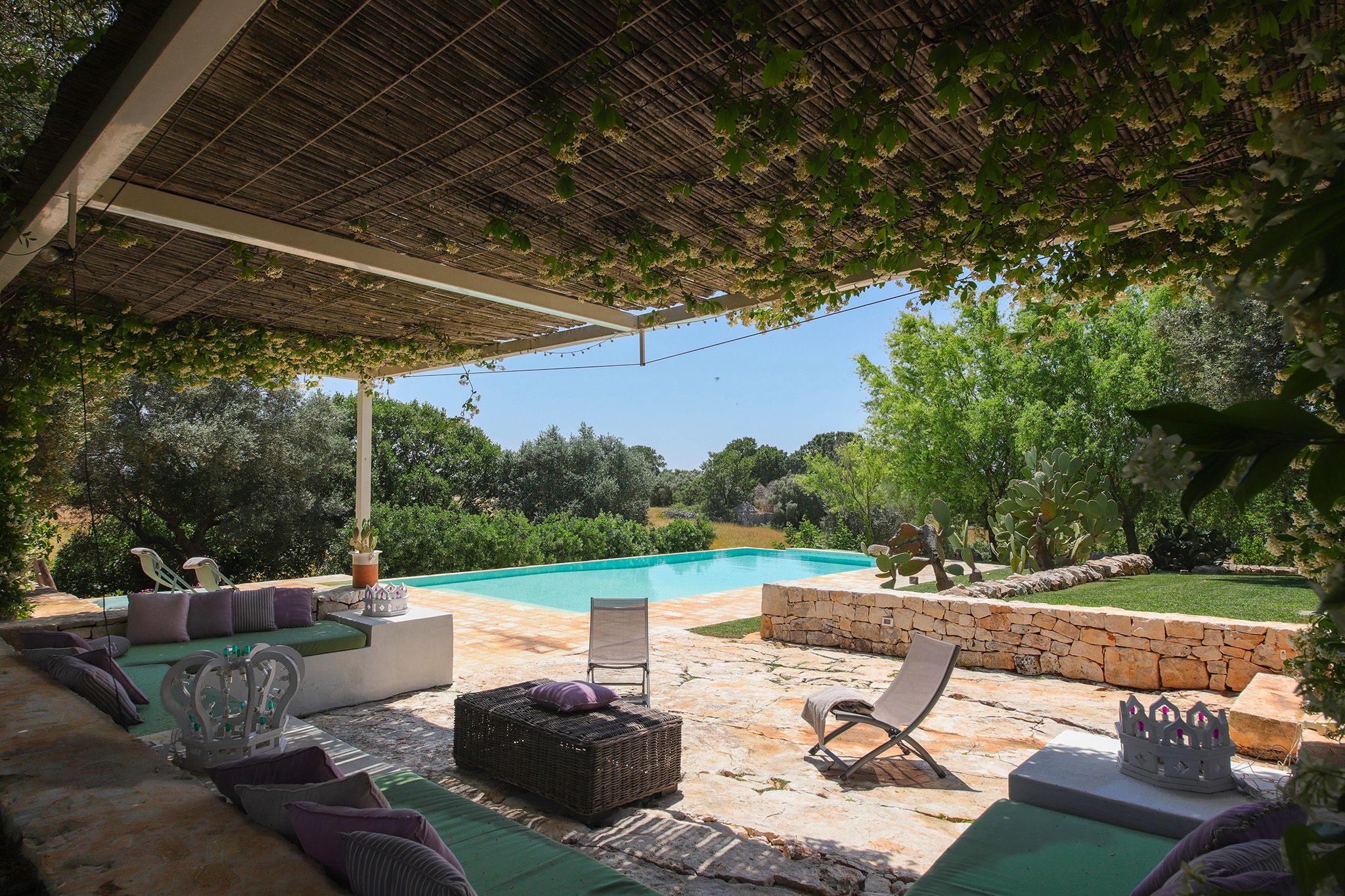 Surrounded by centuries-old olive trees, this complex of traditional trulli offers a magical stay in the heart of the Apulian countryside. Set across three independent buildings, the house delivers plenty of character and charm as well as space to stretch out and socialise. There’s a serene garden with a pool and an outdoor kitchen for alfresco dining. You can spend your days lounging at home or out exploring the region. From here, its just a short strive to Ostuni and Cisternino, while the nearest beaches are also within easy reach.