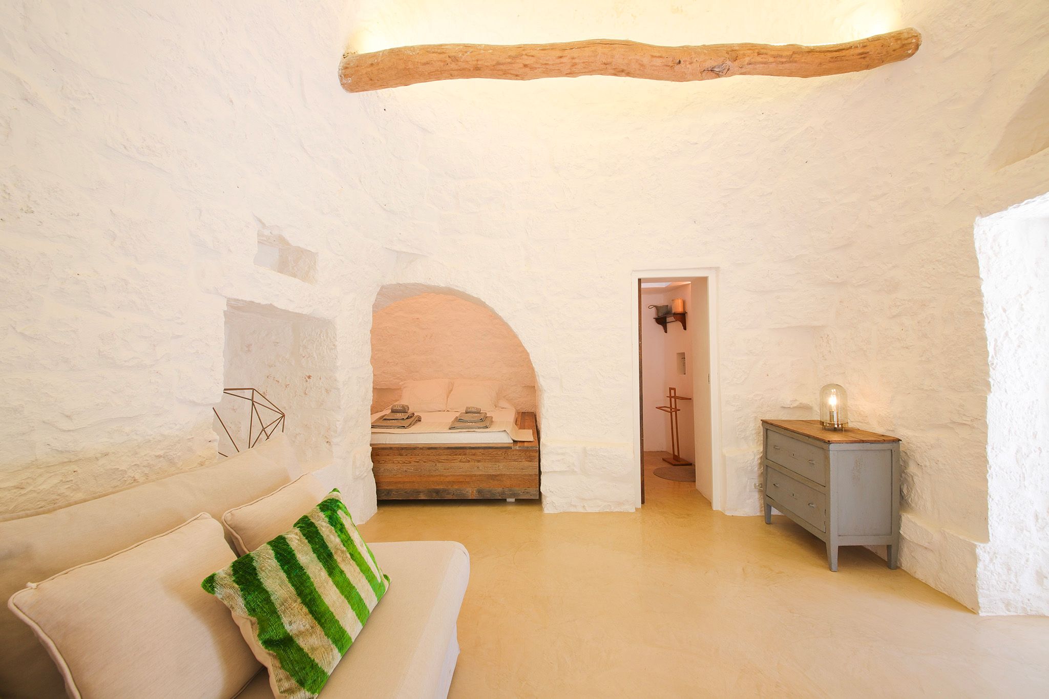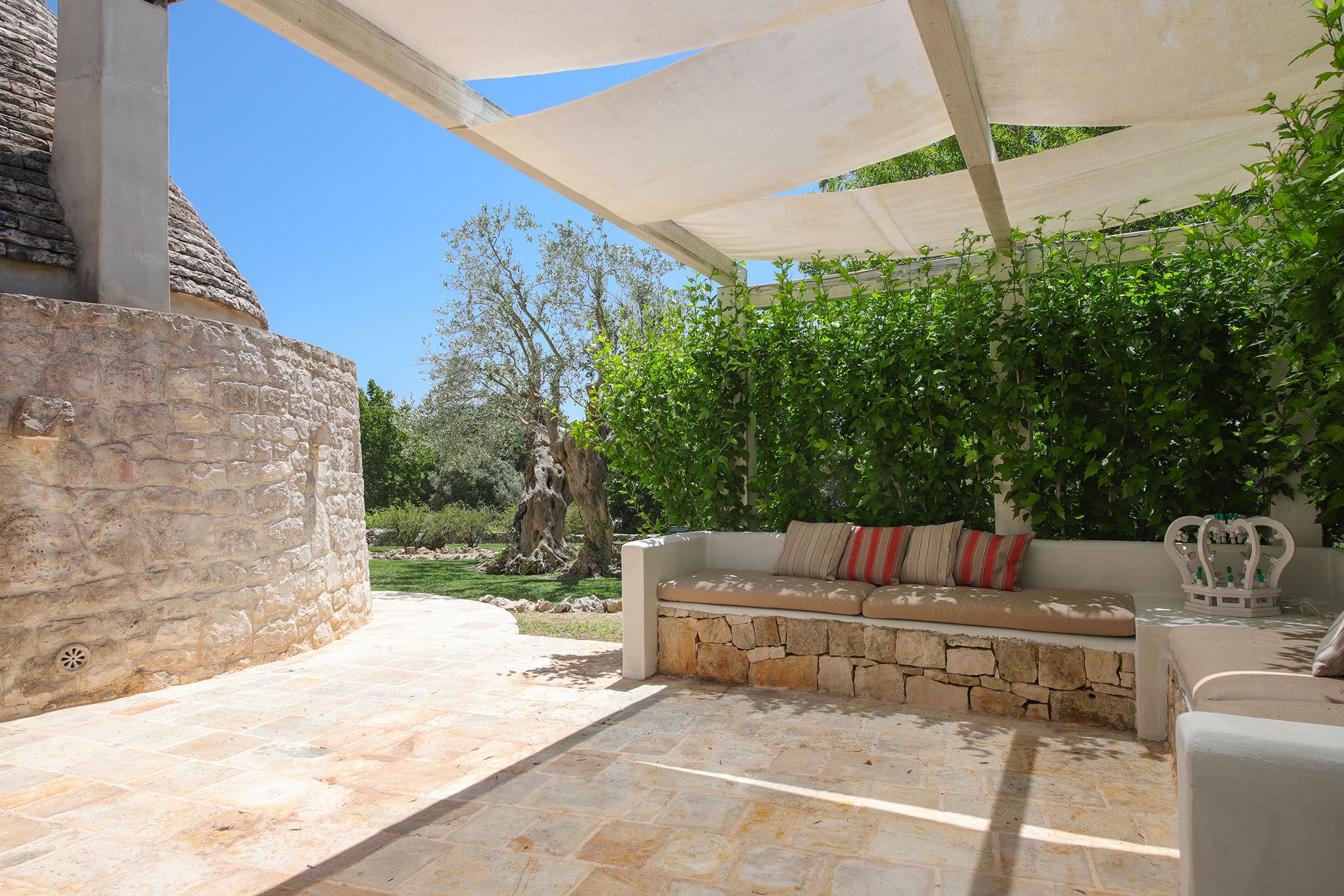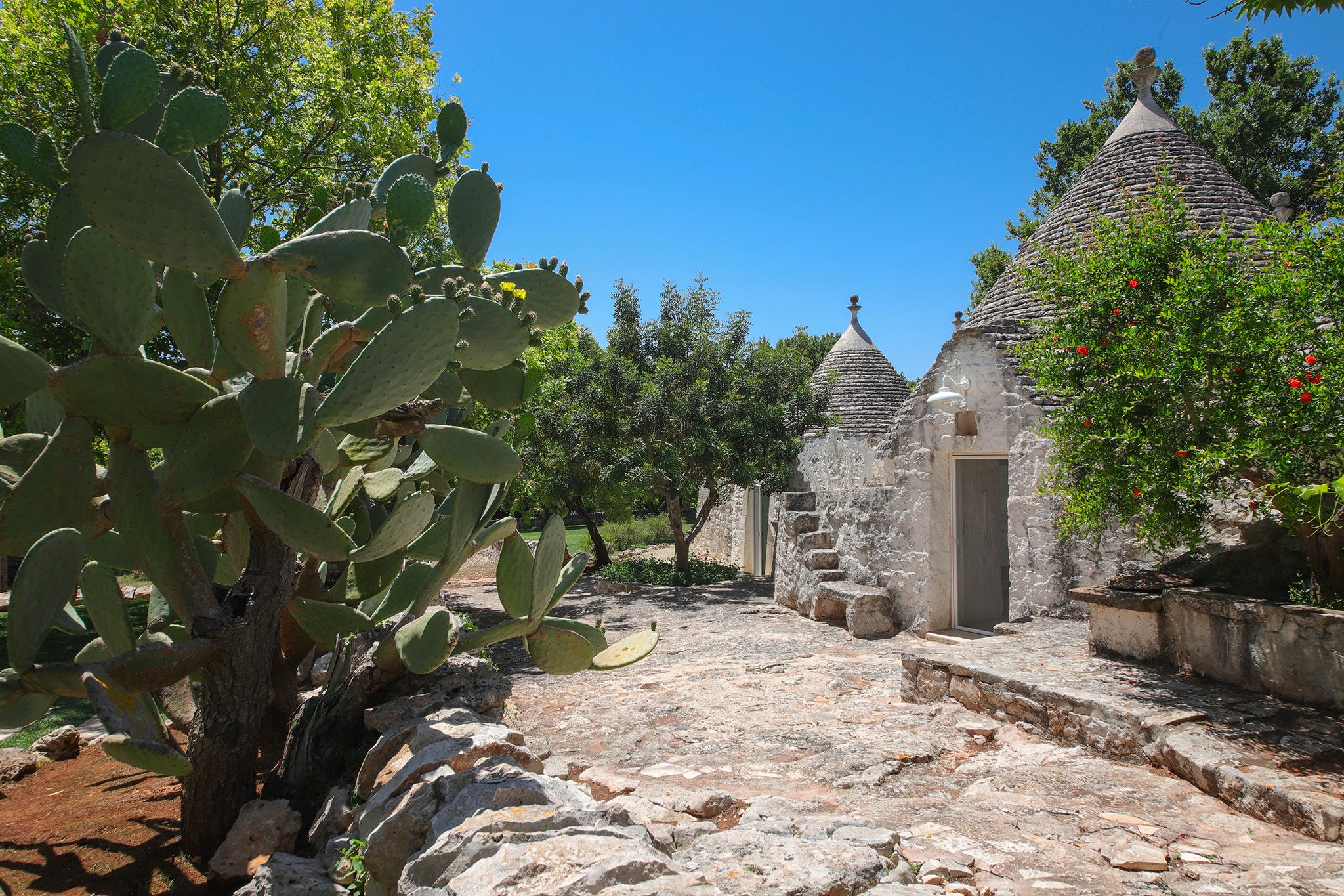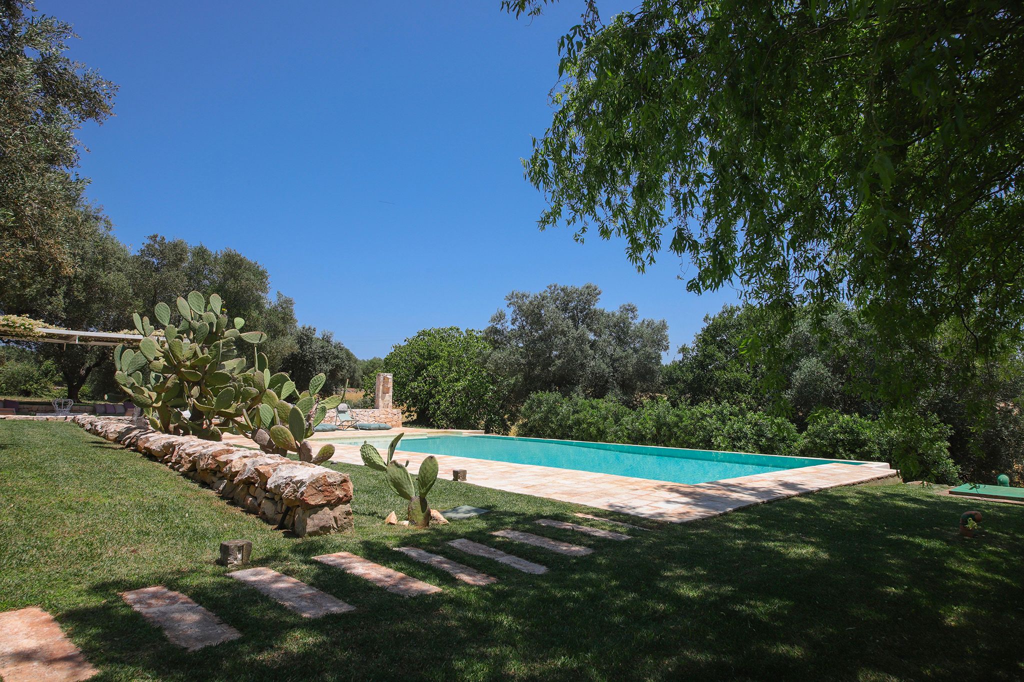 Surrounded by centuries-old olive trees, this complex of traditional trulli offers a magical stay in the heart of the Apulian countryside. Set across three independent buildings, the house delivers plenty of character and charm as well as space to stretch out and socialise. There’s a serene garden with a pool and an outdoor kitchen for alfresco dining. You can spend your days lounging at home or out exploring the region. From here, its just a short strive to Ostuni and Cisternino, while the nearest beaches are also within easy reach.