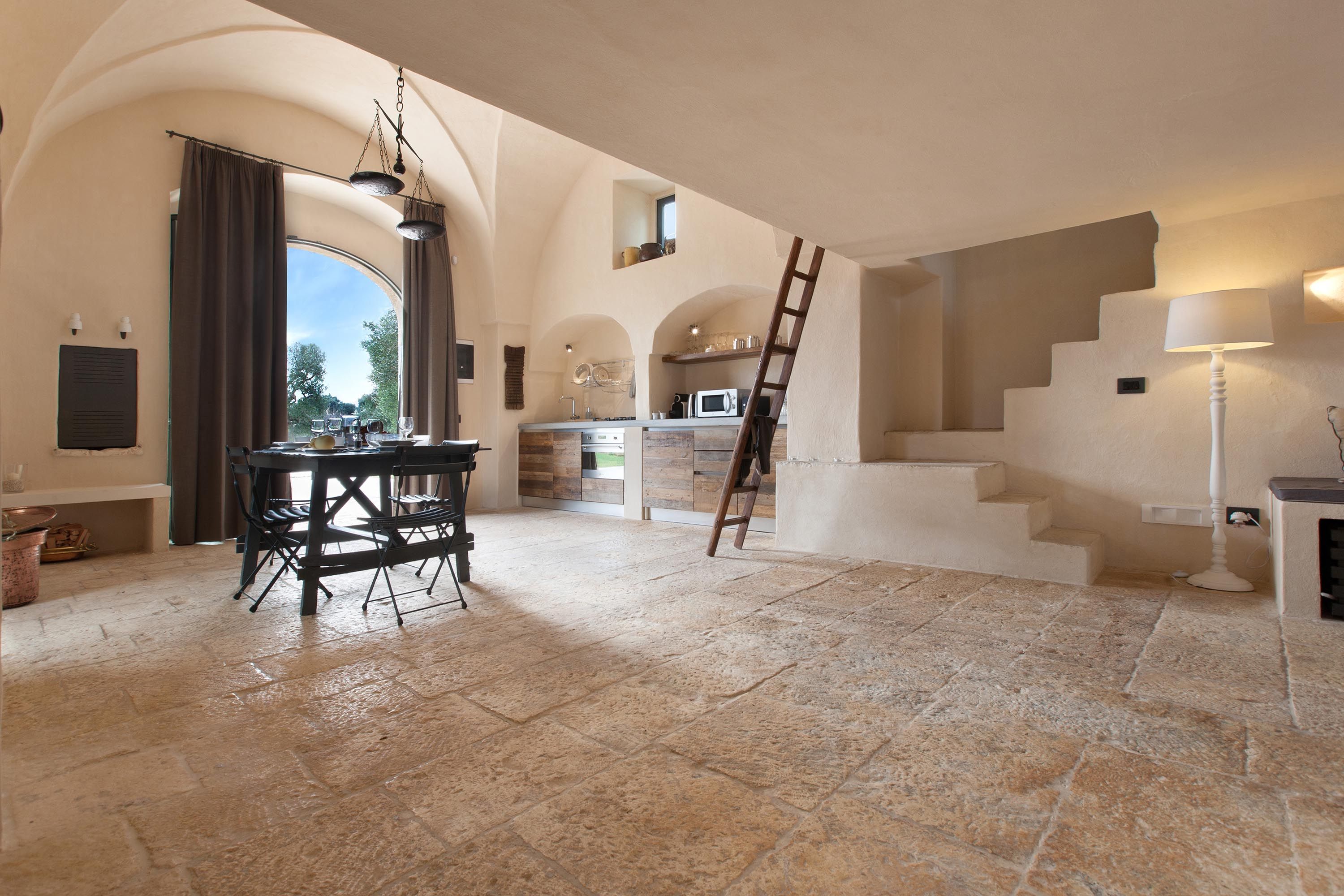 Sitting pretty amongst century-old olive trees, this typical Apulian house is the ideal getaway to the Ostuni area. Though perfect for a romantic trip, it can sleep up to four with the additional sofa bed in the mezzanine area. Thanks to the vaulted ceilings and bright open spaces, it won't feel cramped either. And if, for some reason, it does, you can always take to the sprawling garden to stretch your legs. The shaded terrace creates the opportunity for alfresco meals, and there's a private pool too. Throw in a rooftop terrace and barbecue area, and it's obvious why we added this home to our collection. Monticelli Beach is minutes away, and so is the whitewashed town of Ostuni.