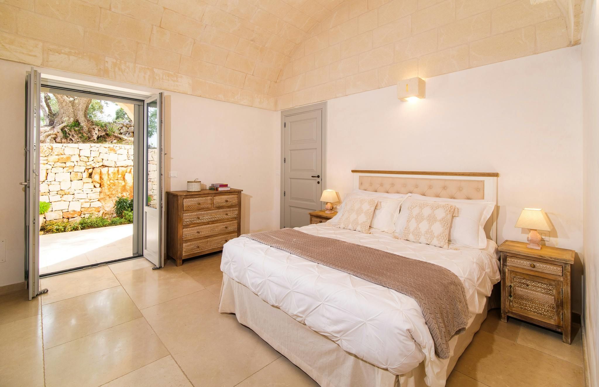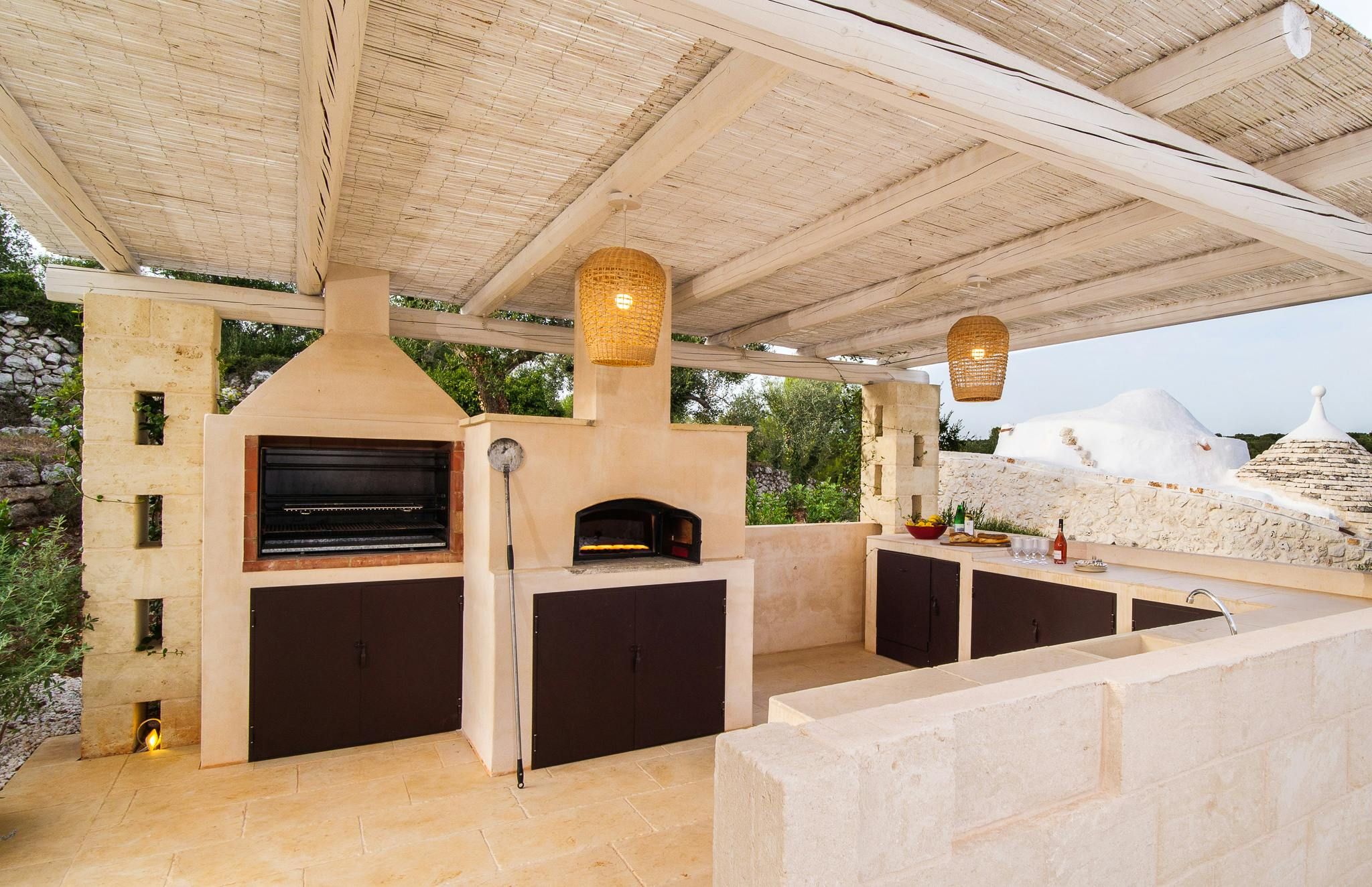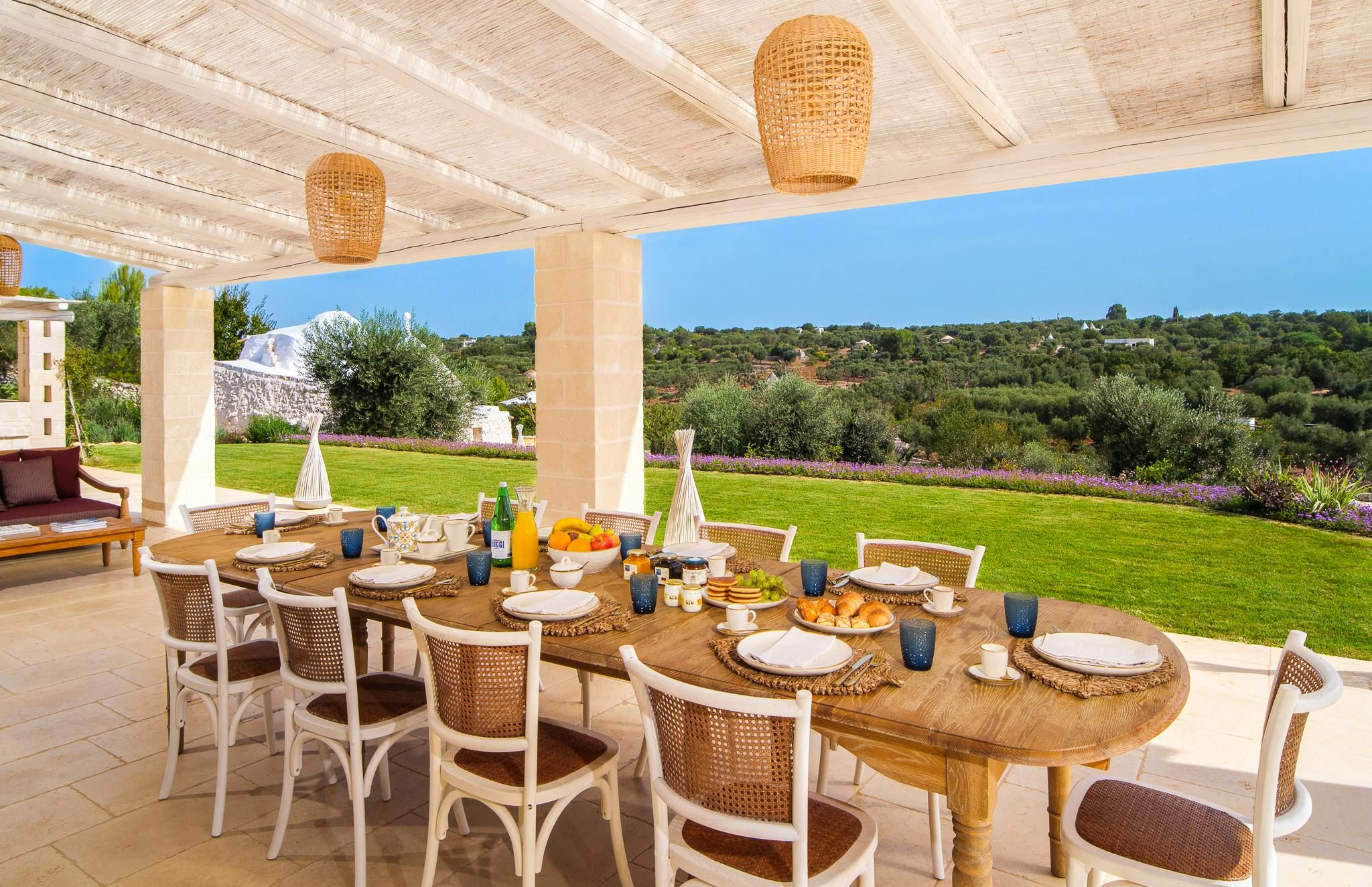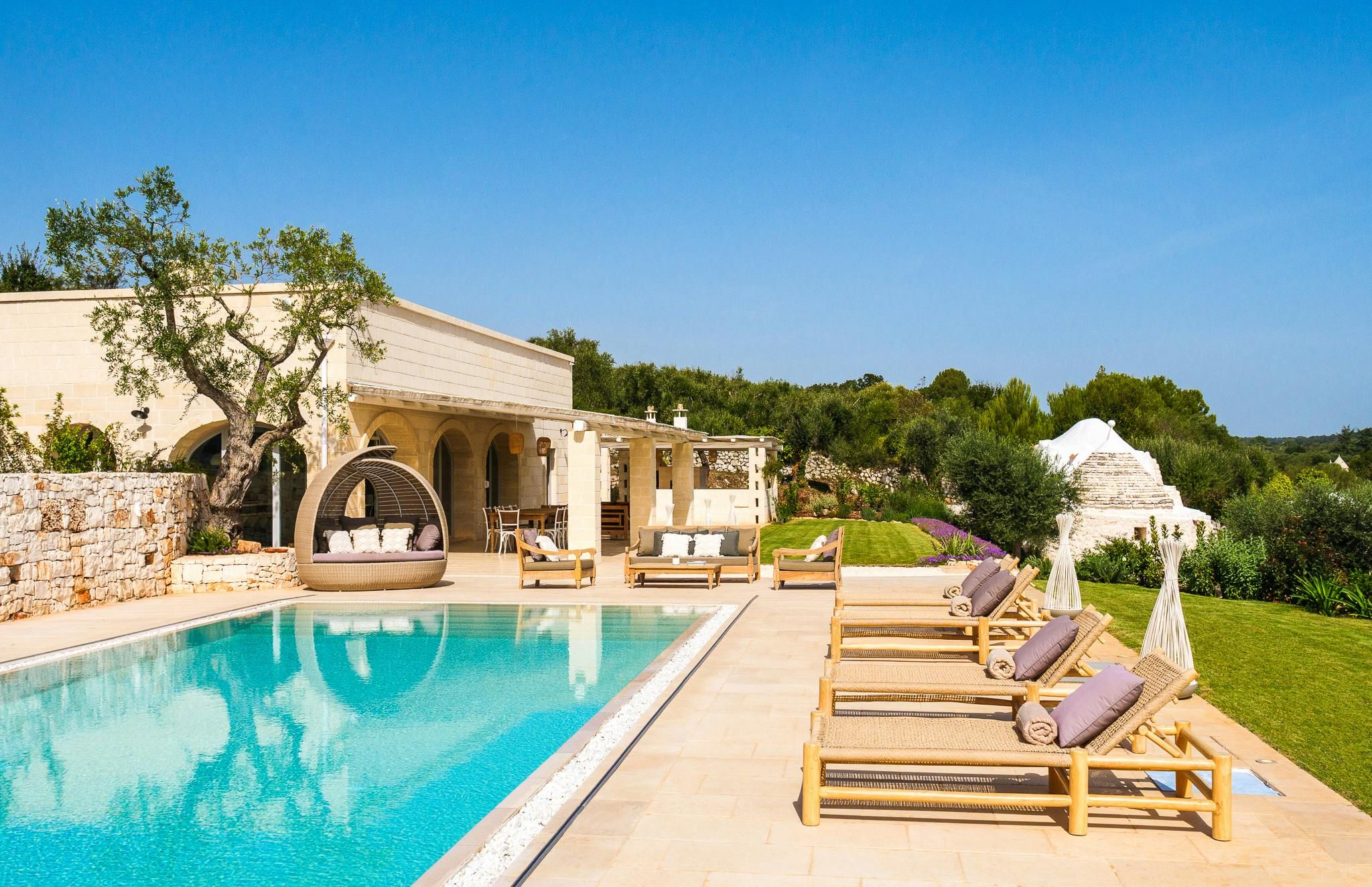 In the heart of Valle d'Itria, surrounded by olive groves, this home has an idyllic setting. The main house has an impressive open-plan living space with vaulted ceilings crafted from local stone. An original trullo has also been transformed into an annexe and offers privacy with its own en-suite double bedroom, outdoor space and a Jacuzzi. We love the countryside views from the elevated pool terrace and there’s an outdoor kitchen, equipped with a pizza oven and barbecue, to enjoy leisurely meals on the veranda. When you want to explore, this home offers easy access to nearby attractions such as Alberobello, Ostuni, and the Adriatic beaches.